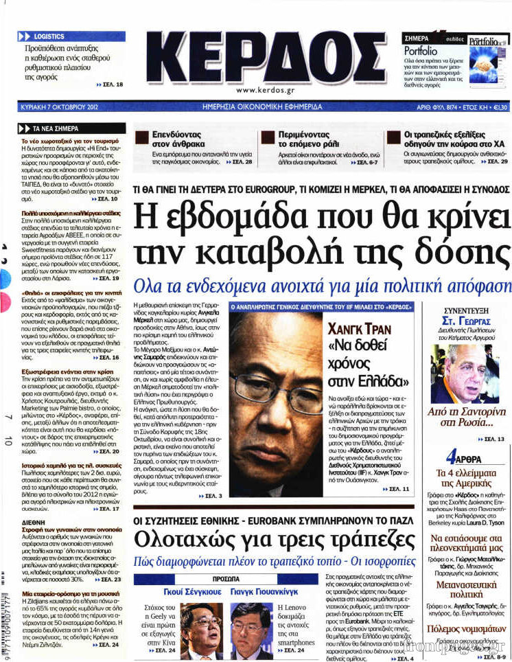 Διαβάστε τα πρωτοσέλιδα των οικονομικών εφημερίδων.