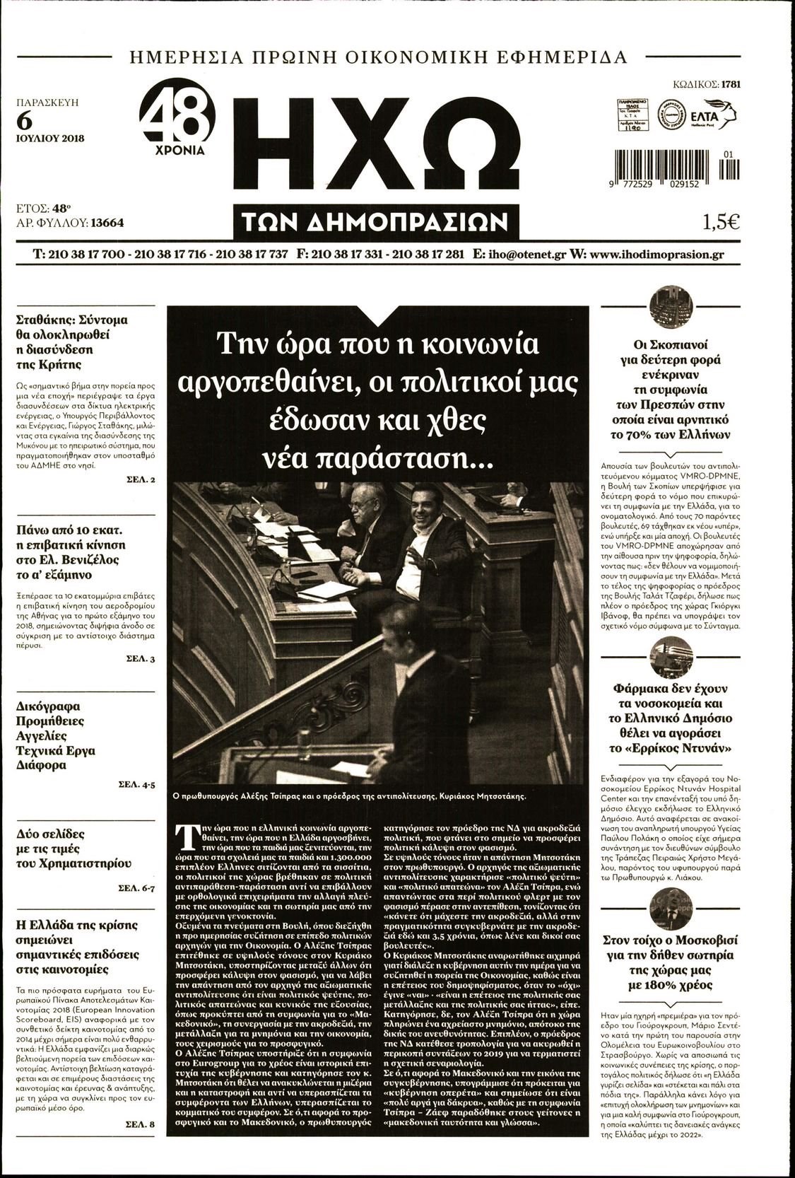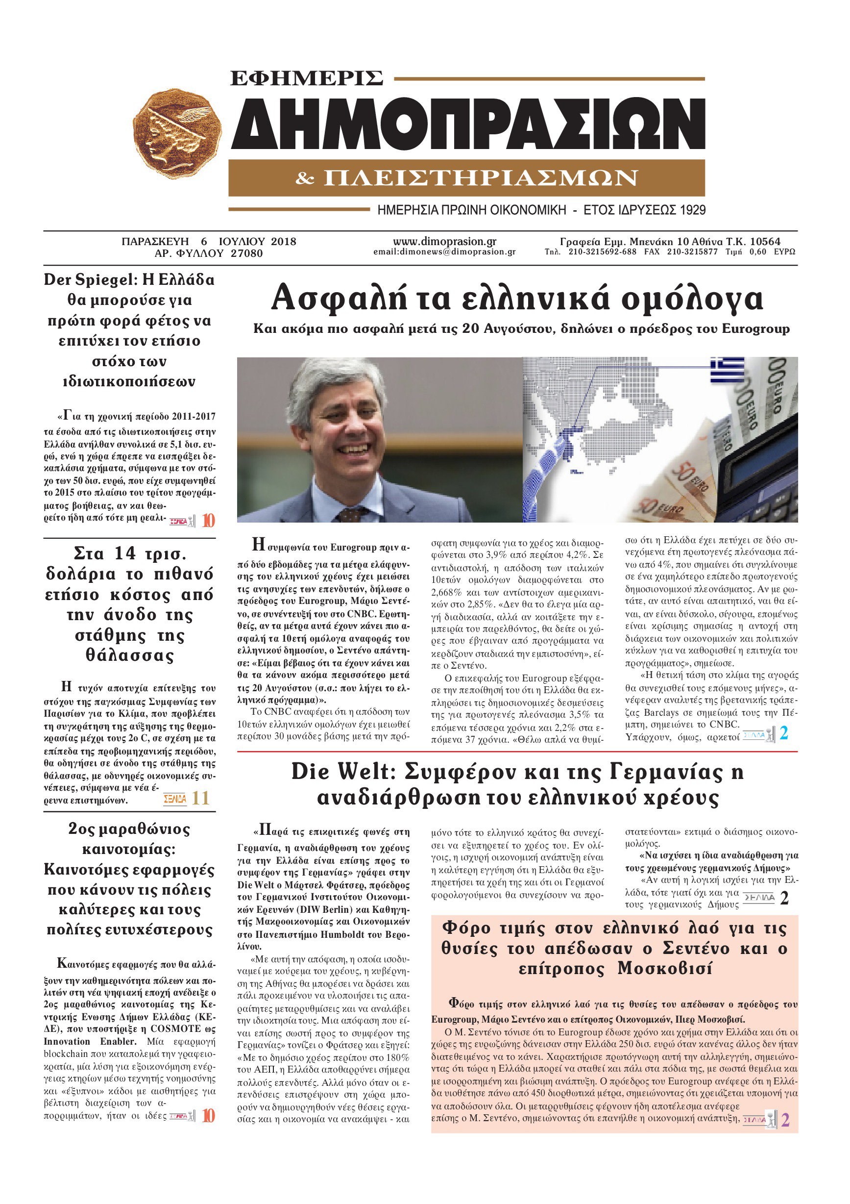 Οι οικονομικές εφημερίδες 6/7/18 Enikos Newsroom 06:32, Παρασκευή 06 Ιουλίου 2018 Media Διαβάστε τα σημερινά πρωτοσέλιδα των οικονομικών εφημερίδων. ΟΙΚΟΝΟΜΙΚΕΣ ΕΦΗΜΕΡΙΔΕΣ ΠΡΩΤΟΣΕΛΙΔΑ Μοιράσου το: σχολίασε κι εσύ (0 σχόλια) Ακολουθήστε το enikos.gr στο Google News και μάθετε πρώτοι όλες τις ειδήσεις Δείτε όλες τις τελευταίες ειδήσεις από την Ελλάδα και τον Κόσμο στο enikos.gr Ειδήσεις Ροή Ειδήσεων 3 ώρες πριν Αγρότες: «Όχι στον διάλογο, μας εμπαίζει η κυβέρνηση» – Αποφάσισαν κλιμάκωση των κινητοποιήσεων, τι θα γίνει τα Χριστούγεννα 3 ώρες πριν Την πρώτη Belharra παρέλαβε η χώρα μας, υψώθηκε η ελληνική σημαία στη φρεγάτα «Κίμων» – Δένδιας: «Το ισχυρότερο Πολεμικό Ναυτικό που είχε ποτέ ο ελληνισμός» 1 ώρα πριν Γιώργος Μαζωνάκης: «Έχει υποστεί ένα σωρό εκβιαστικές πρακτικές – Του είπαν ότι θα του βάλουν τον συγκεκριμένο άνθρωπο να τον καταγγείλει» 2 ώρες πριν Μιχάλης Χουρδάκης: «Είμαι διαθέσιμος να συμβάλω στην προσωρινή κάλυψη του ιατρείου της Ψερίμου» – Η επιστολή στον Άδωνι Γεωργιάδη 3 ώρες πριν Εξώδικο Γεωργιάδη στην Κωνσταντοπούλου – «Με κατηγόρησε ότι έχω καταδικαστεί για παιδεραστία» 30 λεπτά πριν Γάμος: 11 ψυχρές αλλά ευγενικές φράσεις, που λέει ένας άνδρας όταν σκέφτεται τον χωρισμό 4 ώρες πριν Τα 5 ζώδια που θα ευνοηθούν στα οικονομικά τους το 2026 – «Τραβούν το χρήμα σαν μαγνήτες» 5 ώρες πριν Αυτό που κρύβεται κάτω από τη Γροιλανδία θα μπορούσε να ανατρέψει όσα γνωρίζουμε για την άνοδο της στάθμης των θαλασσών 1 ημέρα πριν 20 χρόνια τα Χριστούγεννα ξεκινούν στα Public με μεγάλη ποικιλία σε δώρα! 5 λεπτά πριν Live η κίνηση: Στο «κόκκινο» Κηφισός, Κηφισίας και οι δρόμοι στο κέντρο – Καθυστερήσεις και στην Αττική Οδό 9 λεπτά πριν Εξεταστική για ΟΠΕΚΕΠΕ: Νέο επεισόδιο Κωνσταντοπούλου με Λαζαρίδη και Συρεγγέλα – ΒΙΝΤΕΟ 15 λεπτά πριν Συνάντηση Γεραπετρίτη με την Βρετανή ομόλογό του – Έθεσε και το θέμα των Γλυπτών του Παρθενώνα 20 λεπτά πριν ΗΠΑ: Συντριβή ιδιωτικού αεροσκάφους στη Βόρεια Καρολίνα – «Υπάρχουν νεκροί» 25 λεπτά πριν Ρία Ελληνίδου: Πώς απέφυγε να απαντήσει για την προσωπική της ζωή – «Δεν έχουμε να πούμε κάτι» ENIKOS NETWORK Ξεκίνησε η «επέλαση» της γρίπης στην Ελλάδα-Ποιοι κινδυνεύουν ΕΟΔΥ: Δωρεάν τεστ για HIV, Ηπατίτιδες, Σύφιλη, Χλαμύδια, Γονόρροια Ευλογιά αιγοπροβάτων: Νέες αποζημιώσεις ύψους 26,02 εκατ. ευρώ σε κτηνοτρόφους – Η κατανομή ανά Περιφέρεια Προσλήψεις σε Δήμο: Ποιοι μπορούν να κάνουν αίτηση έως αύριο – Οι ειδικότητες Χαρτογραφώντας το «σημείο χωρίς επιστροφή»: Για πρώτη φορά αποκαλύπτεται με λεπτομέρεια το ακανθώδες όριο της ατμόσφαιρας τ... Η Google καταργεί τη λειτουργία «dark web report» – Πώς θα μπορούν οι χρήστες να διαγράφουν τα δεδομένα τους περισσότερα 17:45 , Πέμπτη 18 Δεκεμβρίου 2025 ROUK ZOUK: Εορταστικό επεισόδιο με καλεσμένους τους πρωταγωνιστές του «Γιατί ρε πατέρα» Το Σάββατο 20 Δεκεμβρίου στις 21:00, η Ζέτα Μακρυπούλια υποδέχεται εκλεκτούς ηθοποιούς που όλο... 17:20 , Πέμπτη 18 Δεκεμβρίου 2025 Άγιος έρωτας: Η Χριστίνα εξομολογείται στον πατέρα Νικόλαο, απόψε στις 21:00 στον Alpha Η Νότα αποφασίζει να εκδικηθεί τον Πέτρο και τον Στέφανο, για χάρη του Λούη, όμως τα πράγματα ... 16:50 , Πέμπτη 18 Δεκεμβρίου 2025 Να μ’ αγαπάς: Ζωή και Φωτεινή συμφιλιώνονται ως μάνα με κόρη, απόψε στις 20:00 Η ταυτότητα του Άγγελου αποκαλύπτεται στο νέο επεισόδιο της σειράς “Να μ’ αγαπάς... 15:52 , Πέμπτη 18 Δεκεμβρίου 2025 Το Σπίτι Δίπλα Στο Ποτάμι: Το καθηλωτικό τελευταίο επεισόδιο για το 2025 απόψε στις 22:30 Καθηλώ