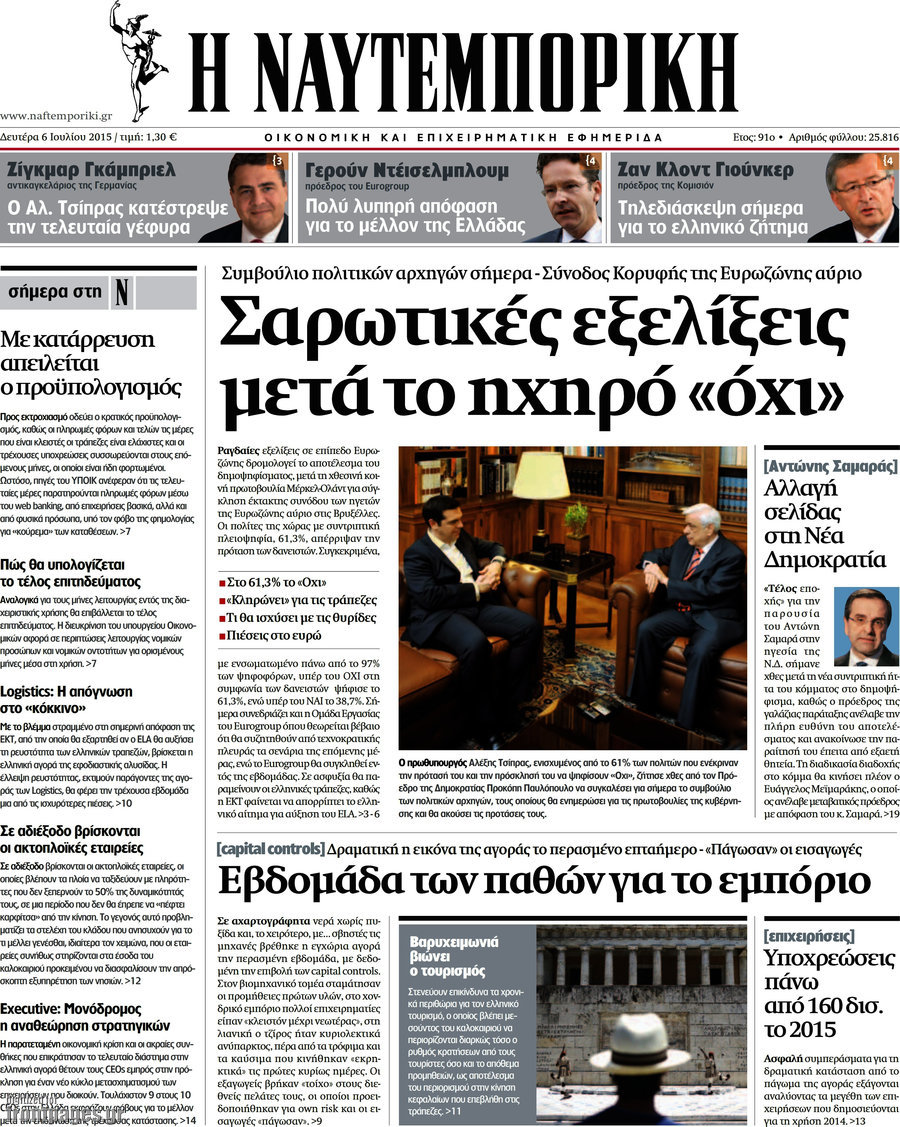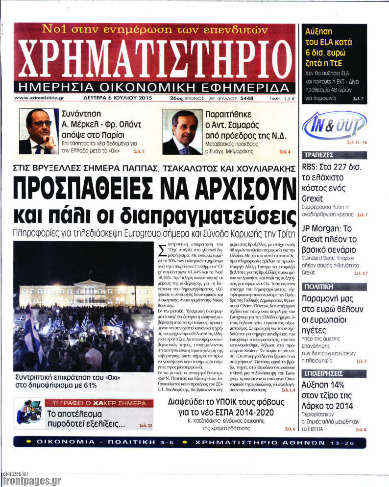 Οι οικονομικές εφημερίδες 6/7/2015 Enikos Newsroom 07:37, Δευτέρα 06 Ιουλίου 2015 Media Διαβάστε τα σημερινά πρωτοσέλιδα των οικονομικών εφημερίδων: ΟΙΚΟΝΟΜΙΚΕΣ ΕΦΗΜΕΡΙΔΕΣ ΠΡΩΤΟΣΕΛΙΔΑ Μοιράσου το: σχολίασε κι εσύ (0 σχόλια) Ακολουθήστε το enikos.gr στο Google News και μάθετε πρώτοι όλες τις ειδήσεις Δείτε όλες τις τελευταίες ειδήσεις από την Ελλάδα και τον Κόσμο στο enikos.gr Ειδήσεις Ροή Ειδήσεων 8 ώρες πριν Μητσοτάκης: Αναγκαία η μεταρρύθμιση του πρωτογενούς τομέα – Τα 6 νέα μέτρα για το στεγαστικό και οι αναφορές σε «Ιθάκη» και «πολιτικούς του καναπέ» 7 ώρες πριν Δάνεια σε ελβετικό φράγκο: Τα βασικά σημεία της ρύθμισης – ανάσας για 40.000 δανειολήπτες – Αναλυτικός οδηγός με ερωτήσεις και απαντήσεις 6 ώρες πριν Κυψέλη: Εξιτήριο πήρε η 14χρονη μαθήτρια που μαχαιρώθηκε από την 16χρονη σε σχολείο – «Θέλω να βοηθήσω το παιδί, έχει μπλέξει με κακές παρέες» 6 ώρες πριν Τραμπ: Γιατί κατέθεσε τώρα την αγωγή κατά του BBC – Πώς η κίνησή του εξυπηρετεί το νέο δόγμα του για «αντίσταση» στην Ευρώπη, υπέρ των συντηρητικών 7 ώρες πριν ΟΠΕΚΕΠΕ – Παράνομες επιδοτήσεις: Ελεύθεροι με περιοριστικούς όρους και οι 7 κατηγορούμενοι που απολογήθηκαν σήμερα 6 ώρες πριν Ανακαλύφθηκε βυθισμένη πέτρινη κατασκευή ανοιχτά της Κριμαίας – Αποτελεί μέρος αρχαίας ελληνικής αποικίας 7 ώρες πριν Ύπνος: Αυτό μπορεί να είναι το χειρότερο λάθος για το βιολογικό ρολόι σας, σύμφωνα με ειδικό 8 ώρες πριν Αριθμολογία: Οι άνθρωποι που έχουν γεννηθεί αυτές τις 3 ημερομηνίες, προσελκύουν μεγάλη τύχη πριν από το τέλος του 2025 10 ώρες πριν Οι 7 συμπεριφορές που μαρτυρούν ότι ένας άνδρας επενδύει μακροπρόθεσμα σε μια σχέση 6 λεπτά πριν Κολομβία: Νεκροί τέσσερις αστυνομικοί σε βομβιστικές επιθέσεις ανταρτών 14 λεπτά πριν Στάση εργασίας 11:00 – 17:00 σήμερα στα λεωφορεία του ΟΑΣΑ – Ποιες γραμμές θα λειτουργήσουν 29 λεπτά πριν Παλαιστινιακό: «Η λύση των δύο κρατών είναι ο μόνος βιώσιμος δρόμος», τόνισε η Ελλάδα στο Συμβούλιο Ασφαλείας του ΟΗΕ 37 λεπτά πριν Ελένη Καρακάση: «Ένιωθα πολύ αδικημένη, δεν μπορούσα να ελέγξω τον εαυτό μου σε δύσκολες στιγμές» 45 λεπτά πριν Κλαούδια Σέινμπαουμ προς Ντόναλντ Τραμπ για φαιντανύλη: Να επιτεθούμε στα αίτια κατανάλωσης αντί να την κατατάσσουμε στα «όπλα μαζικής καταστροφής» ENIKOS NETWORK Αίτημα ΙΣΑ για την εξαίρεση των προσωπικών γιατρών από τις κατ’ οίκον επισκέψεις Η σκανδιναβική μέθοδος στον ύπνο που μπορεί να σώσει έναν γάμο Πιερρακάκης: Ο προϋπολογισμός συμβάλλει ουσιαστικά στην ενίσχυση της αγοραστικής δύναμης της πλειονότητας των εργαζομένων e-ΕΦΚΑ: Παρατείνεται η προθεσμία για την υποβολή ΑΠΔ – Ποιους αφορά Σύγχρονος Νοστράδαμος: Προειδοποιεί για «μεγάλο γεγονός» τους επόμενους μήνες που θα συγκλονίσει τη Βρετανία και τον κόσμο Τεστ παρατηρητικότητας: Μπορείτε να βρείτε τις 3 διαφορές στις εικόνες με έναν πιγκουίνο σε 14 δευτερόλεπτα περισσότερα 20:06 , Τρίτη 16 Δεκεμβρίου 2025 Ο ΣΚΑΙ καταγγέλλει τον ΕΚΚΟΜΕΔ Επιστολή με την οποία καταγράφει την έντονη διαμαρτυρία του προς τον διευθύνοντα σύμβουλο του... 17:40 , Τρίτη 16 Δεκεμβρίου 2025 Eurovision: Στις 4 Ιανουαρίου αποκαλύπτονται τα 28 τραγούδια του ελληνικού τελικού Η αγωνία τελειώνει, η γιορτή της Eurovision αρχίζει στην ΕΡΤ από τις πρώτες ημέρες της νέας χρ... 17:09 , Τρίτη 16 Δεκεμβρίου 2025 Alter Ego Media: Βαθύτατη θλίψη και ειλικρινή συλλυπητήρια για την απώλεια της Ειρήνης Μαρινάκη Τη βαθύτατη θλίψη και τα ειλικρινή συλλυπητήριά της εκφράζει η Alter Ego Media για τον 