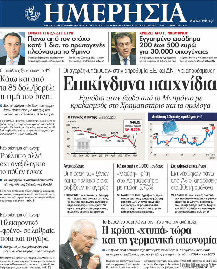 Οι οικονομικές εφημερίδες Enikos Newsroom 08:15, Τετάρτη 15 Οκτωβρίου 2014 Media Οι οικονομικές εφημερίδες Διαβάστε τα πρωτοσέλιδα των οικονομικών εφημερίδων: ΕΦΗΜΕΡΙΔΕΣ ΟΙΚΟΝΟΜΙΚΕΣ ΕΦΗΜΕΡΙΔΕΣ ΠΡΩΤΟΣΕΛΙΔΑ Μοιράσου το: σχολίασε κι εσύ (0 σχόλια) Ακολουθήστε το enikos.gr στο Google News και μάθετε πρώτοι όλες τις ειδήσεις Δείτε όλες τις τελευταίες ειδήσεις από την Ελλάδα και τον Κόσμο στο enikos.gr Ειδήσεις Ροή Ειδήσεων 2 ώρες πριν Δημοσκόπηση Metron Analysis: Στις 10 μονάδες η διαφορά ΝΔ-ΠΑΣΟΚ, στην 3η θέση η Πλεύση Ελευθερίας – 8 στους 10 στηρίζουν τον αγώνα των αγροτών 6 ώρες πριν Αγρότες: «Όχι στον διάλογο, μας εμπαίζει η κυβέρνηση» – Αποφάσισαν κλιμάκωση των κινητοποιήσεων, τι θα γίνει τα Χριστούγεννα 1 ώρα πριν Νίκος Παππάς στον ΑΝΤ1: «Δεν κρύβομαι – Μετά το συμβάν ακολούθησα κανονικά το πρόγραμμά μου» – ΒΙΝΤΕΟ 3 ώρες πριν Αθήνα: Εξαρθρώθηκε εγκληματική οργάνωση που διακινούσε ναρκωτικά σε μορφή σοκολάτας – Δύο τράπερ ανάμεσα στους 4 συλληφθέντες – ΒΙΝΤΕΟ 1 ώρα πριν Διαμαντής Καραναστάσης: Οδηγούσε υπό την επήρεια αλκοόλ – Του αφαιρέθηκε το δίπλωμα και του επιβλήθηκε πρόστιμο 350 ευρώ 2 ώρες πριν Manifesting: Πώς να συναντήσετε τον σύντροφο της ζωής σας, ανάλογα με τον μήνα γέννησής σας 4 ώρες πριν Γάμος: 11 ψυχρές αλλά ευγενικές φράσεις, που λέει ένας άνδρας όταν σκέφτεται τον χωρισμό 3 ώρες πριν Σφουγγάρισμα: Η συνήθεια που θα σας βοηθήσει να διατηρήσετε το σπίτι σας καθαρό και τακτοποιημένο 2 ημέρες πριν 20 χρόνια τα Χριστούγεννα ξεκινούν στα Public με μεγάλη ποικιλία σε δώρα! 53 δευτερόλεπτα πριν Ούρσουλα φον ντερ Λάιεν: Μετατίθεται για τον Ιανουάριο η υπογραφή της εμπορικής συμφωνίας «ΕΕ-MERCOSUR» 6 λεπτά πριν Φοινικούντα: Το Σάββατο απολογείται ο 30χρονος γιος γνωστού επιχειρηματία της Πλάκας που παραδόθηκε – Όσα είπε στους αστυνομικούς και ο ρόλος του στο έγκλημα 16 λεπτά πριν Αυξάνουν την πίεση προς την κυβέρνηση οι αγρότες: Κλείνουν παρακαμπτήριους και ανοίγουν διόδια – Τι θα γίνει τις γιορτές 21 λεπτά πριν Ελισάβετ Κωνσταντινίδου για τον Γεράσιμο Μιχελή και την Πόπη Χριστοδούλου: «Ξέρω ότι έχουν πάει απλώς κάπου αλλού, ότι δεν είναι ο θάνατος έτσι όπως τον έχουμε στο μυαλό μας» 25 λεπτά πριν Κρήτη: Νέες αποκαλύψεις για τον 54χρονο που κατηγορείται ότι εξαπάτησε τους γονείς του 33χρονου – Ζητούσε τρίχες αγνοουμένων ENIKOS NETWORK Σε περίοδο αυξημένης δραστηριότητας η γρίπη στην Ελλάδα-Μέτρα προστασίας από τον ΕΟΔΥ Σκέφτεστε συνέχεια συζητήσεις που έχετε κάνει; Τι σημαίνει αυτό, σύμφωνα με ειδικό Λαγκάρντ: Αισιόδοξη για την ανάπτυξη της Ευρωζώνης, αβέβαιη για τον πληθωρισμό ΑΣΕΠ 2ΓΒ/2025: Σήμερα αρχίζει η υποβολή ενστάσεων – Πότε θα βγουν τα οριστικά αποτελέσματα Χαρτογραφώντας το «σημείο χωρίς επιστροφή»: Για πρώτη φορά αποκαλύπτεται με λεπτομέρεια το ακανθώδες όριο της ατμόσφαιρας τ... Η Google καταργεί τη λειτουργία «dark web report» – Πώς θα μπορούν οι χρήστες να διαγράφουν τα δεδομένα τους περισσότερα 17:45 , Πέμπτη 18 Δεκεμβρίου 2025 ROUK ZOUK: Εορταστικό επεισόδιο με καλεσμένους τους πρωταγωνιστές του «Γιατί ρε πατέρα» Το Σάββατο 20 Δεκεμβρίου στις 21:00, η Ζέτα Μακρυπούλια υποδέχεται εκλεκτούς ηθοποιούς που όλο... 17:20 , Πέμπτη 18 Δεκεμβρίου 2025 Άγιος έρωτας: Η Χριστίνα εξομολογείται στον πατέρα Νικόλαο, απόψε στις 21:00 στον Alpha Η Νότα αποφασίζει να εκδικηθεί τον Πέτρο και τον Στέφανο, για χάρη του Λούη, όμως τα πράγματα ... 16:50 , Πέμπτη 18 Δεκεμβρίου 2025 Να μ’ αγαπάς: Ζωή και Φωτεινή συμφιλιώνονται ως μάνα με κ