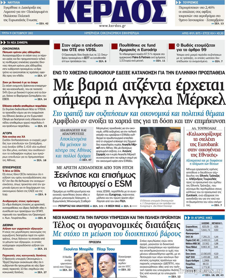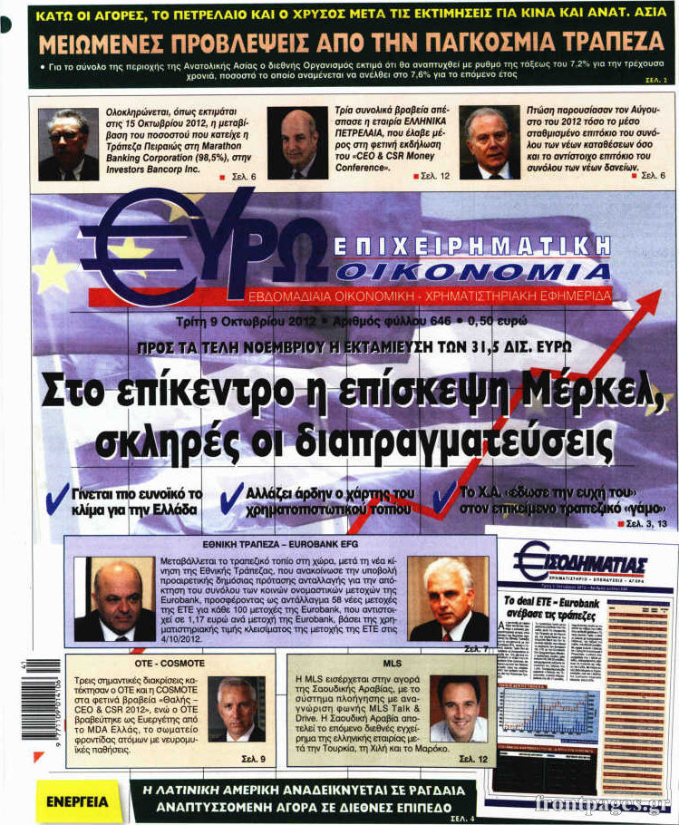Διαβάστε τα πρωτοσέλιδα των οικονομικών εφημερίδων.