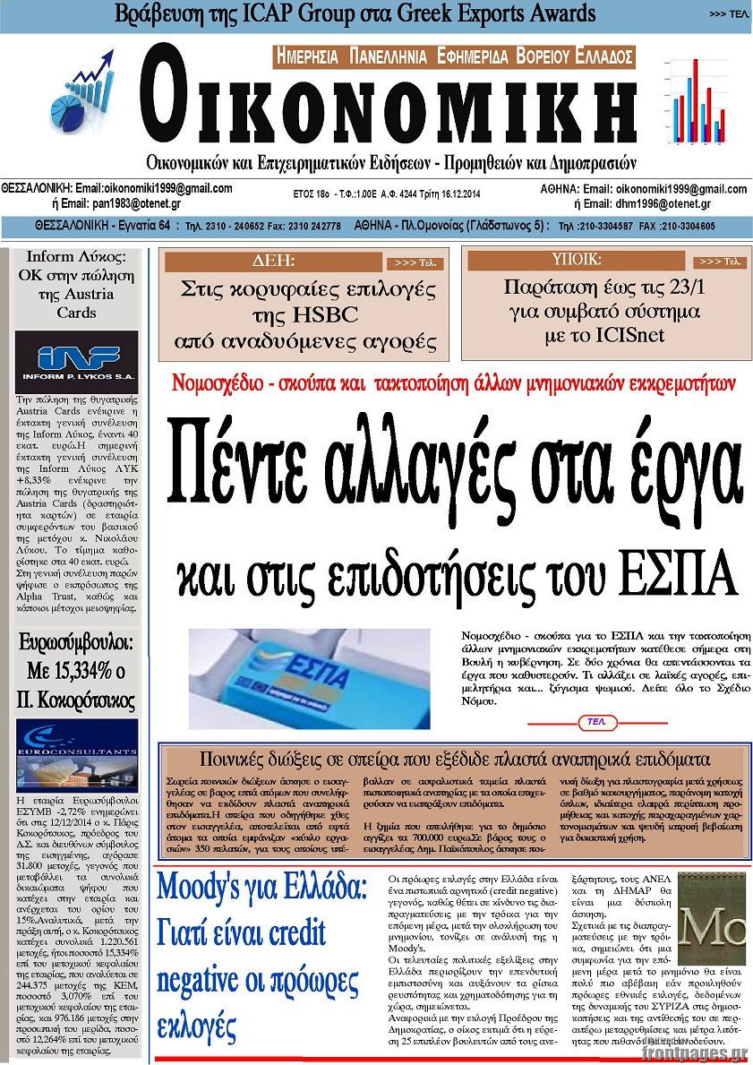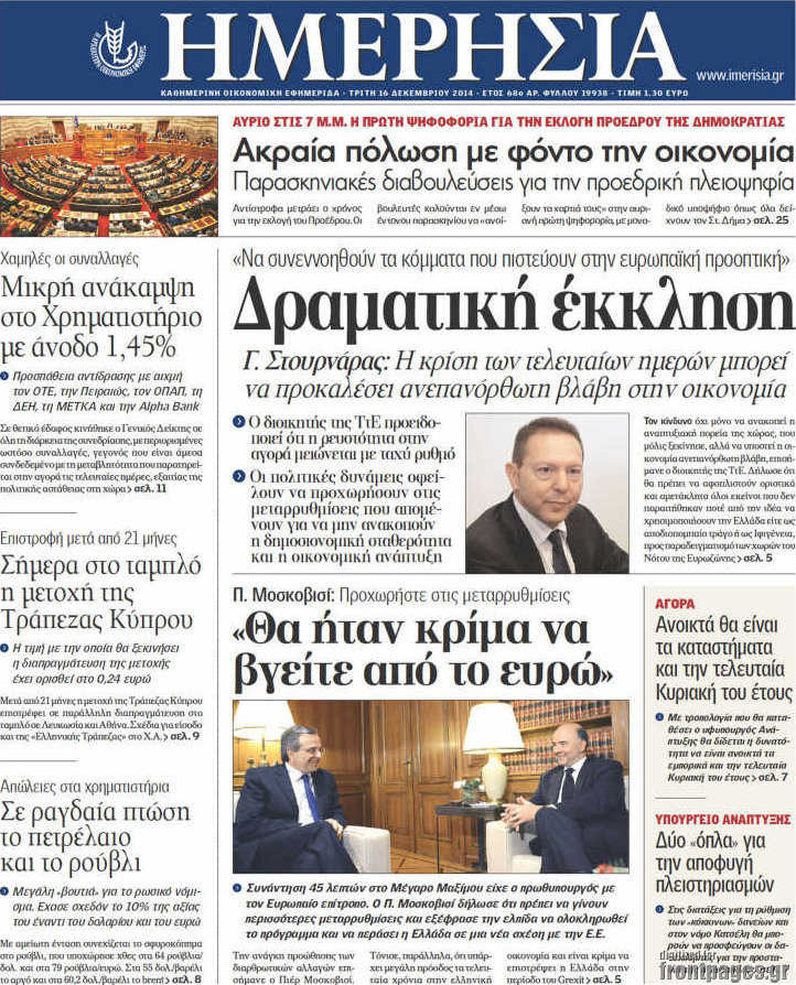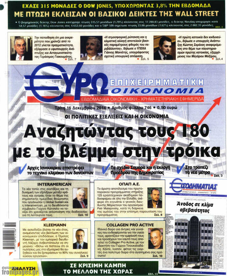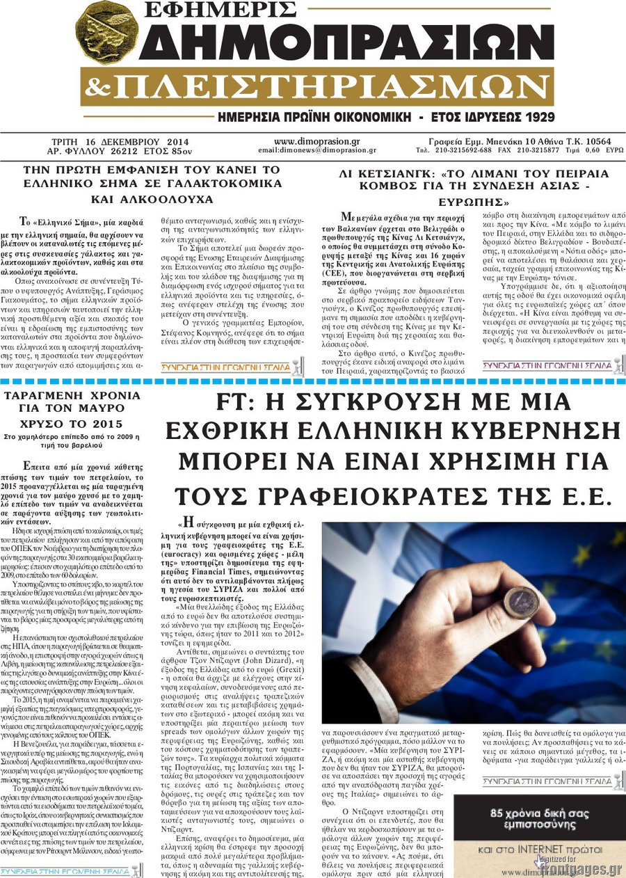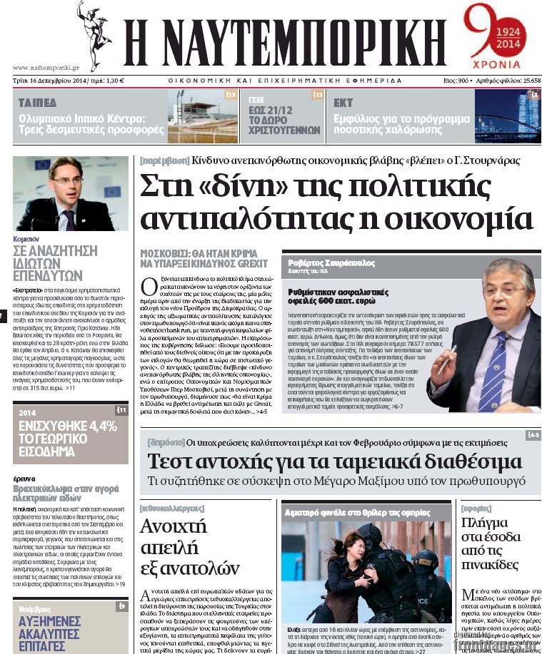 Οι oικονομικές εφημερίδες Enikos Newsroom 08:01, Τρίτη 16 Δεκεμβρίου 2014 Media Διαβάστε τα πρωτοσέλιδα των οικονομικών εφημερίδων: ΟΙΚΟΝΟΜΙΚΕΣ ΕΦΗΜΕΡΙΔΕΣ ΠΡΩΤΟΣΕΛΙΔΑ Μοιράσου το: σχολίασε κι εσύ (0 σχόλια) Ακολουθήστε το enikos.gr στο Google News και μάθετε πρώτοι όλες τις ειδήσεις Δείτε όλες τις τελευταίες ειδήσεις από την Ελλάδα και τον Κόσμο στο enikos.gr Ειδήσεις Ροή Ειδήσεων 57 λεπτά πριν Υπόθεση Έπσταϊν: Το Υπουργείο Δικαιοσύνης δημοσιοποίησε μια σειρά από εξαιρετικά επεξεργασμένα αρχεία – «Λείπουν τα πιο σημαντικά έγγραφα», λένε οι Δημοκρατικοί 3 ώρες πριν Σαρωτικοί οι έλεγχοι στους δρόμους ενόψει εορτών – Μπλόκα της τροχαίας σε κεντρικές αρτηρίες της Αττικής 1 ώρα πριν ΟΝΕΧ – MEGATUGS: Ξεκίνησε η ναυπήγηση ρυμουλκών στην Ελλάδα – Προθάλαμος πολεμικών πλοίων – Δείτε φωτογραφίες και βίντεο 1 ώρα πριν Καιρός: Αλλαγή σκηνικού σήμερα με βροχές και πτώση της θερμοκρασίας – Οι προβλέψεις των μετεωρολόγων για τα Χριστούγεννα 10 ώρες πριν Χριστούγεννα στα μπλόκα: Επιμένουν στις κινητοποιήσεις τους οι αγρότες – Ανοίγουν τα διόδια το Σαββατοκύριακο 3 ώρες πριν Αυγά: Πόσα μπορείτε να τρώτε την ημέρα με ασφάλεια για μέγιστη πρόσληψη πρωτεΐνης 3 ώρες πριν Τα ζώδια σήμερα, Σάββατο 20 Δεκεμβρίου: Παρθένοι, το σύμπαν σας δίνει το κλειδί 2 ώρες πριν Οπτική ψευδαίσθηση: Μόνο αν είσαι ο Σέρλοκ Χολμς θα βρεις τον αριθμό «87» σε 7 δευτερόλεπτα 37 λεπτά πριν Αρχαιολόγοι ανακάλυψαν σε χωράφι απεικόνιση 600 ετών ενός Αγίου – Τα στοιχεία που δείχνουν ότι μαρτύρησε 6 λεπτά πριν Ο «χάρτης» με τις αυξήσεις και τις φοροελαφρύνσεις του 2026 – Ποιοι και πόσα κερδίζουν 14 λεπτά πριν Η τέλεια συνταγή για cookies με κομμάτια σοκολάτας 22 λεπτά πριν MyHealth App: Τα στοιχεία για τον Προσωπικό Βοηθό Υγείας Πολίτη – Τι ερωτήματα έγιναν μέσα σε 7 ημέρες 30 λεπτά πριν Τρομεροί γονείς: Η Μαρία Καβογιάννη εισβάλλει στο σπίτι της οικογένειας Στεφανίδη 37 λεπτά πριν Αρχαιολόγοι ανακάλυψαν σε χωράφι απεικόνιση 600 ετών ενός Αγίου – Τα στοιχεία που δείχνουν ότι μαρτύρησε ENIKOS NETWORK Το τεστ των 10 δευτερολέπτων που μπορεί να προβλέψει το προσδόκιμο ζωής σας – Τι λέει ειδικός του Cleveland Επιλέξτε καρέκλα για να μάθετε ποια είναι τα κρυφά χαρακτηριστικά σας – Τι αποκάλυψε για εσάς αυτό το τεστ προσωπικότητας; Mega χριστουγεννιάτικη φορολοταρία: «Κλείδωσε» η ημερομηνία για την κλήρωση – Ερωτήσεις και απαντήσεις Αναστολή μέτρων αναγκαστικής εκτέλεσης για κτηνοτρόφους που πλήττονται από την ευλογιά των αιγοπροβάτων Χαρτογραφώντας το «σημείο χωρίς επιστροφή»: Για πρώτη φορά αποκαλύπτεται με λεπτομέρεια το ακανθώδες όριο της ατμόσφαιρας τ... Η Google καταργεί τη λειτουργία «dark web report» – Πώς θα μπορούν οι χρήστες να διαγράφουν τα δεδομένα τους περισσότερα 08:14 , Σάββατο 20 Δεκεμβρίου 2025 Τρομεροί γονείς: Η Μαρία Καβογιάννη εισβάλλει στο σπίτι της οικογένειας Στεφανίδη Όσα θα δούμε στο νέο διπλό επεισόδιο της σειράς «Τρομεροί γονείς», σήμερα Σάββατο 20 Δεκεμβρίο... 05:48 , Σάββατο 20 Δεκεμβρίου 2025 Οι οικονομικές εφημερίδες 20/12/2025 Διαβάστε τα πρωτοσέλιδα από τις οικονομικές εφημερίδες, σήμερα 20/12/2025. 05:43 , Σάββατο 20 Δεκεμβρίου 2025 Οι αθλητικές εφημερίδες 20/12/2025 Διαβάστε τα πρωτοσέλιδα από τις αθλητικές εφημερίδες, σήμερα 20/12/2025. 05:38 , Σάββατο 20 Δεκεμβρίου 2025 Οι πολιτικές εφημερίδες 20/12/2025 Διαβάστε τα πρωτοσέλιδα από τις πολιτικές εφημερίδες, σήμερα 20/12/2025. ΤΕΛΕΥΤΑΙΕΣ ΕΙΔΗΣΕΙΣ 6 λεπτά πριν Ο «χάρτης» με τις αυξήσεις και τις φοροελαφρύνσεις... 14 λεπ