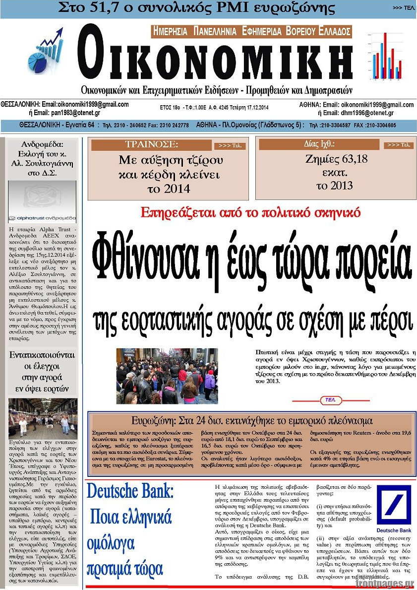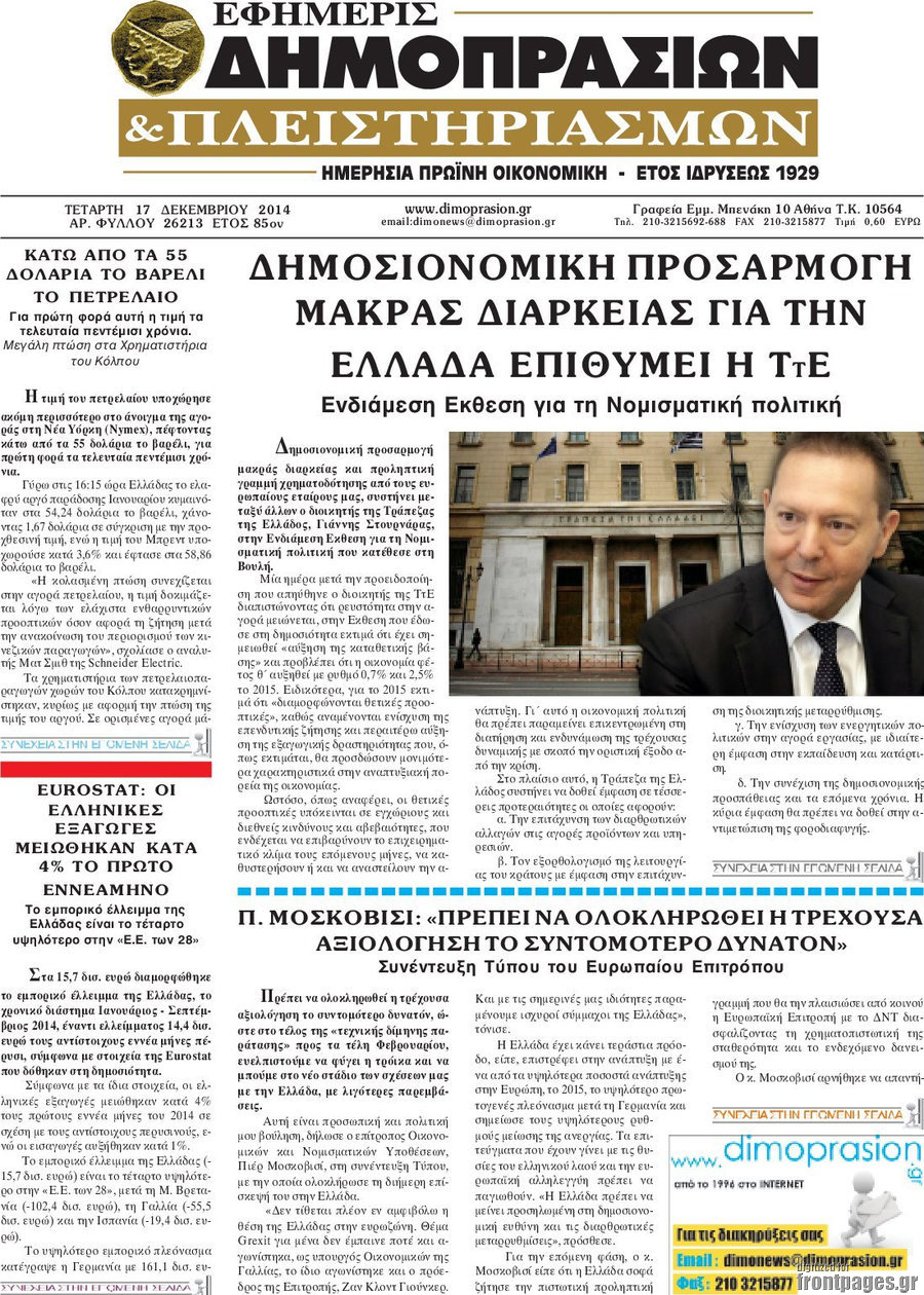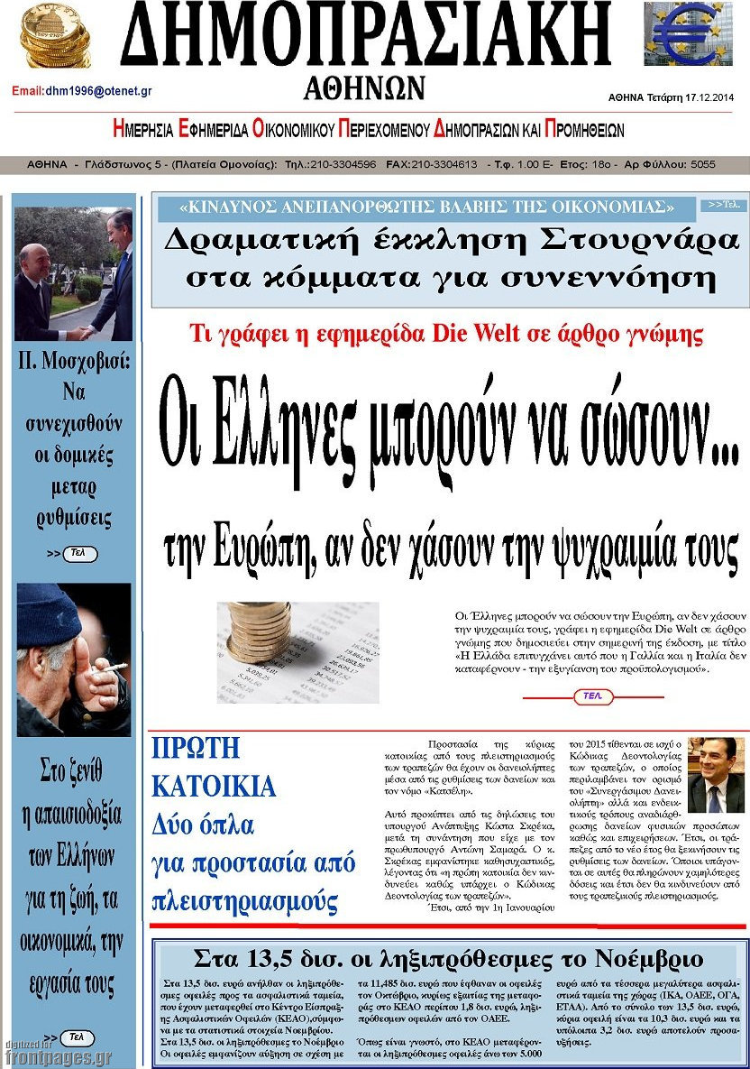 Οι oικονομικές εφημερίδες Enikos Newsroom 07:34, Τετάρτη 17 Δεκεμβρίου 2014 Media Διαβάστε τα πρωτοσέλιδα των οικονομικών εφημερίδων: ΟΙΚΟΝΟΜΙΚΕΣ ΕΦΗΜΕΡΙΔΕΣ ΠΡΩΤΟΣΕΛΙΔΑ Μοιράσου το: σχολίασε κι εσύ (0 σχόλια) Ακολουθήστε το enikos.gr στο Google News και μάθετε πρώτοι όλες τις ειδήσεις Δείτε όλες τις τελευταίες ειδήσεις από την Ελλάδα και τον Κόσμο στο enikos.gr Ειδήσεις Ροή Ειδήσεων 2 ώρες πριν Αυξάνουν την πίεση προς την κυβέρνηση οι αγρότες: Κλείνουν παρακαμπτήριους και ανοίγουν διόδια – Τι θα γίνει τις γιορτές 58 λεπτά πριν ΟΠΕΚΕΠΕ: Προφυλακιστέος ο φερόμενος αρχηγός και ο λογιστής της εγκληματικής οργάνωσης 2 ώρες πριν Φοινικούντα: Το Σάββατο απολογείται ο 30χρονος γιος γνωστού επιχειρηματία της Πλάκας που παραδόθηκε – Όσα είπε στους αστυνομικούς και ο ρόλος του στο έγκλημα 2 ώρες πριν Μπορεί ο Μαδούρο να αντέξει τον αποκλεισμό του Τραμπ; Τι θα χρειαστεί η Ουάσινγκτον για να τον ανατρέψει 3 ώρες πριν Πρίγκιπας Ουίλιαμ – Κέιτ: Η νέα οικογενειακή φωτογραφία για τις Χριστουγεννιάτικες κάρτες του 2025 3 ώρες πριν Ύπνος: Η απλή βραδινή ρουτίνα για να προστατεύσετε τα μαλλιά σας από το κρύο κατά τη διάρκεια του χειμώνα 4 ώρες πριν Manifesting: Πώς να συναντήσετε τον σύντροφο της ζωής σας, ανάλογα με τον μήνα γέννησής σας 2 ημέρες πριν 20 χρόνια τα Χριστούγεννα ξεκινούν στα Public με μεγάλη ποικιλία σε δώρα! 2 ώρες πριν Αρχαιολόγοι ανακάλυψαν ρωμαϊκά τεχνουργήματα από μια πόλη που δεν υπήρξε ποτέ – Τα τρία εντυπωσιακά κτίρια και ο αμφορέας με τις… σαρδέλες 14 λεπτά πριν Βαθμολογία UEFA: Η Πολωνία προσπέρασε την Ελλάδα 30 λεπτά πριν Conference League: Οι ομάδες που προκρίθηκαν στους «16» και τα «ζευγαρώματα» στα νοκ άουτ 38 λεπτά πριν ΑΕΚ – Κραϊόβα 3-2: Επική ανατροπή και πρόκριση στους «16» του Conference League η Ένωση 58 λεπτά πριν ΟΠΕΚΕΠΕ: Προφυλακιστέος ο φερόμενος αρχηγός και ο λογιστής της εγκληματικής οργάνωσης 1 ώρα πριν Αθηνά Μαξίμου: Η τρυφερή ανάρτηση για τα γενέθλια του Αιμίλιου Χειλάκη – «Είναι η εκλεκτική συγγένειά μου, η επιλογή και η ευθύνη μου» ENIKOS NETWORK Σε περίοδο αυξημένης δραστηριότητας η γρίπη στην Ελλάδα-Μέτρα προστασίας από τον ΕΟΔΥ Σκέφτεστε συνέχεια συζητήσεις που έχετε κάνει; Τι σημαίνει αυτό, σύμφωνα με ειδικό Στεγαστικό: Τι λέει η ΠΟΜΙΔΑ για τα νέα μέτρα που ανακοίνωσε ο Κυριάκος Μητσοτάκης Λαγκάρντ: Αισιόδοξη για την ανάπτυξη της Ευρωζώνης, αβέβαιη για τον πληθωρισμό Χαρτογραφώντας το «σημείο χωρίς επιστροφή»: Για πρώτη φορά αποκαλύπτεται με λεπτομέρεια το ακανθώδες όριο της ατμόσφαιρας τ... Η Google καταργεί τη λειτουργία «dark web report» – Πώς θα μπορούν οι χρήστες να διαγράφουν τα δεδομένα τους περισσότερα 17:45 , Πέμπτη 18 Δεκεμβρίου 2025 ROUK ZOUK: Εορταστικό επεισόδιο με καλεσμένους τους πρωταγωνιστές του «Γιατί ρε πατέρα» Το Σάββατο 20 Δεκεμβρίου στις 21:00, η Ζέτα Μακρυπούλια υποδέχεται εκλεκτούς ηθοποιούς που όλο... 17:20 , Πέμπτη 18 Δεκεμβρίου 2025 Άγιος έρωτας: Η Χριστίνα εξομολογείται στον πατέρα Νικόλαο, απόψε στις 21:00 στον Alpha Η Νότα αποφασίζει να εκδικηθεί τον Πέτρο και τον Στέφανο, για χάρη του Λούη, όμως τα πράγματα ... 16:50 , Πέμπτη 18 Δεκεμβρίου 2025 Να μ’ αγαπάς: Ζωή και Φωτεινή συμφιλιώνονται ως μάνα με κόρη, απόψε στις 20:00 Η ταυτότητα του Άγγελου αποκαλύπτεται στο νέο επεισόδιο της σειράς “Να μ’ αγαπάς... 15:52 , Πέμπτη 18 Δεκεμβρίου 2025 Το Σπίτι Δίπλα Στο Ποτάμι: Το καθηλωτικό τελευταίο επεισόδιο για το 2025 απόψε στις 22:30 Καθηλώνει το σημερινό επεισόδιο της σειράς “Το Σπίτι Δίπλα Στο Ποτάμι” που