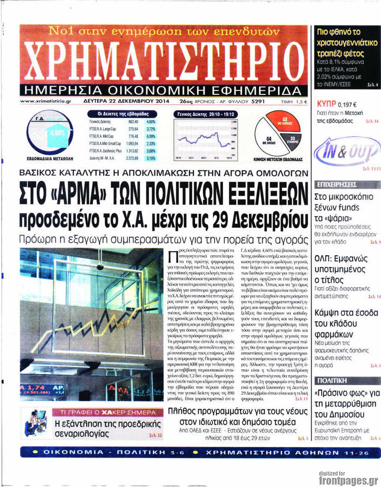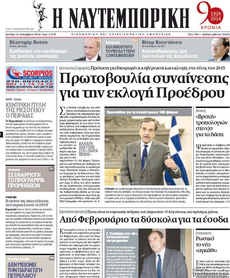 Οι οικονομικές εφημερίδες Enikos Newsroom 07:38, Δευτέρα 22 Δεκεμβρίου 2014 Media Διαβάστε τα πρωτοσέλιδα των οικονομικών εφημερίδων: ΟΙΚΟΝΟΜΙΚΕΣ ΕΦΗΜΕΡΙΔΕΣ ΠΡΩΤΟΣΕΛΙΔΑ Μοιράσου το: σχολίασε κι εσύ (0 σχόλια) Ακολουθήστε το enikos.gr στο Google News και μάθετε πρώτοι όλες τις ειδήσεις Δείτε όλες τις τελευταίες ειδήσεις από την Ελλάδα και τον Κόσμο στο enikos.gr Ειδήσεις Ροή Ειδήσεων 41 λεπτά πριν Φοροδιαφυγή: Ποιοι φορολογούμενοι κινδυνεύουν να πληρώσουν «τσουχτερά» πρόστιμα 2 λεπτά πριν Φοινικούντα: Παραδόθηκε 30χρονος στην Καλαμάτα για τη διπλή δολοφονία 19 λεπτά πριν Αγρότες: Ανυποχώρητοι στα μπλόκα – Στις Σέρρες σήμερα η κρίσιμη συνεδρίαση της Πανελλαδικής Επιτροπής 31 λεπτά πριν Τα επίσημα χρονοδιαγράμματα που η Τουρκία θα παραλάβει τα Eurofighter 9 ώρες πριν «Θύελλα» αντιδράσεων για τον Νίκο Παππά μετά την επίθεση στον δημοσιογράφο Νίκο Γιαννόπουλο – Η μήνυση, οι δηλώσεις και η έξοδος από την ευρωομάδα του ΣΥΡΙΖΑ 2 ώρες πριν Καούρα: Το μπαχαρικό που είναι «εξίσου αποτελεσματικό» με την ομεπραζόλη, σύμφωνα με ειδικούς 2 ώρες πριν Τα ζώδια σήμερα, Πέμπτη 18 Δεκεμβρίου: Λέοντες, η καρδιά σας θέλει να εκφραστεί 2 ώρες πριν Οπτική ψευδαίσθηση: Μόνο οι πιο έξυπνοι άνθρωποι θα βρουν 7 ξωτικά 15 δευτερόλεπτα 23 ώρες πριν 20 χρόνια τα Χριστούγεννα ξεκινούν στα Public με μεγάλη ποικιλία σε δώρα! 47 δευτερόλεπτα πριν Την Κυριακή με τη Realnews: Δωροεπιταγή 10€ 2 λεπτά πριν Φοινικούντα: Παραδόθηκε 30χρονος στην Καλαμάτα για τη διπλή δολοφονία 5 λεπτά πριν Έδεσσα: Χωρίς τις αισθήσεις ανασύρθηκε ηλικιωμένη έπειτα από φωτιά σε μονοκατοικία 9 λεπτά πριν «Το σόι σου»: Backstage στα γυρίσματα για το εορταστικό επεισόδιο 16 λεπτά πριν e-ΕΦΚΑ και ΔΥΠΑ: Προτελευταία ημέρα πληρωμών σήμερα ENIKOS NETWORK Ουρική αρθρίτιδα: Μεγάλη μελέτη αποκαλύπτει τι μπορεί να προκαλεί τη νόσο Τι σημαίνει όταν ο σκύλος σας σάς φέρνει τυχαία αντικείμενα, σύμφωνα με εκπαιδεύτρια Φοροδιαφυγή: Ποιοι φορολογούμενοι κινδυνεύουν να πληρώσουν «τσουχτερά» πρόστιμα ΕΛΣΤΑΤ: Τι δείχνουν τα νέα στοιχεία για τις ηλεκτρονικές παραγγελίες των επιχειρήσεων Χαρτογραφώντας το «σημείο χωρίς επιστροφή»: Για πρώτη φορά αποκαλύπτεται με λεπτομέρεια το ακανθώδες όριο της ατμόσφαιρας τ... Η Google καταργεί τη λειτουργία «dark web report» – Πώς θα μπορούν οι χρήστες να διαγράφουν τα δεδομένα τους περισσότερα 07:50 , Πέμπτη 18 Δεκεμβρίου 2025 «Το σόι σου»: Backstage στα γυρίσματα για το εορταστικό επεισόδιο «Το σόι σου» φορά τα γιορτινά του για τα Χριστούγεννα και η Όλγα Λαφαζάνη, με την κάμερα του «... 07:36 , Πέμπτη 18 Δεκεμβρίου 2025 Οι αθλητικές μεταδόσεις 18/12/2025 – Πού θα δείτε τον αγώνα της ΑΕΚ με την Κραϊόβα για το Conference League Τα ματς ΑΕΚ – Ουνιβερσιτάτεα Κραϊόβα για το Conference League και Παναθηναϊκός – Χάποελ Τελ Αβ... 05:48 , Πέμπτη 18 Δεκεμβρίου 2025 Οι οικονομικές εφημερίδες 18/12/2025 Διαβάστε τα πρωτοσέλιδα από τις οικονομικές εφημερίδες, σήμερα 18/12/2025. 05:43 , Πέμπτη 18 Δεκεμβρίου 2025 Οι αθλητικές εφημερίδες 18/12/2025 Διαβάστε τα πρωτοσέλιδα από τις αθλητικές εφημερίδες, σήμερα 18/12/2025. ΤΕΛΕΥΤΑΙΕΣ ΕΙΔΗΣΕΙΣ 2 λεπτά πριν Φοινικούντα: Παραδόθηκε 30χρονος στην Καλαμάτα για τη... 5 λεπτά πριν Έδεσσα: Χωρίς τις αισθήσεις ανασύρθηκε ηλικιωμένη... 9 λεπτά πριν «Το σόι σου»: Backstage στα γυρίσματα για το εορταστικό... 16 λεπτά πριν e-ΕΦΚΑ και ΔΥΠΑ: Προτελευταία ημέρα πληρωμών σήμερα 19 λεπτά πριν Αγρότες: Ανυποχώρητοι στα μπλόκα – Στις Σέρρες... 23 λεπτά πριν Οι αθλητικές μεταδόσεις 18/12/2025 – Πού θα δείτε τον... 27 λεπτά 