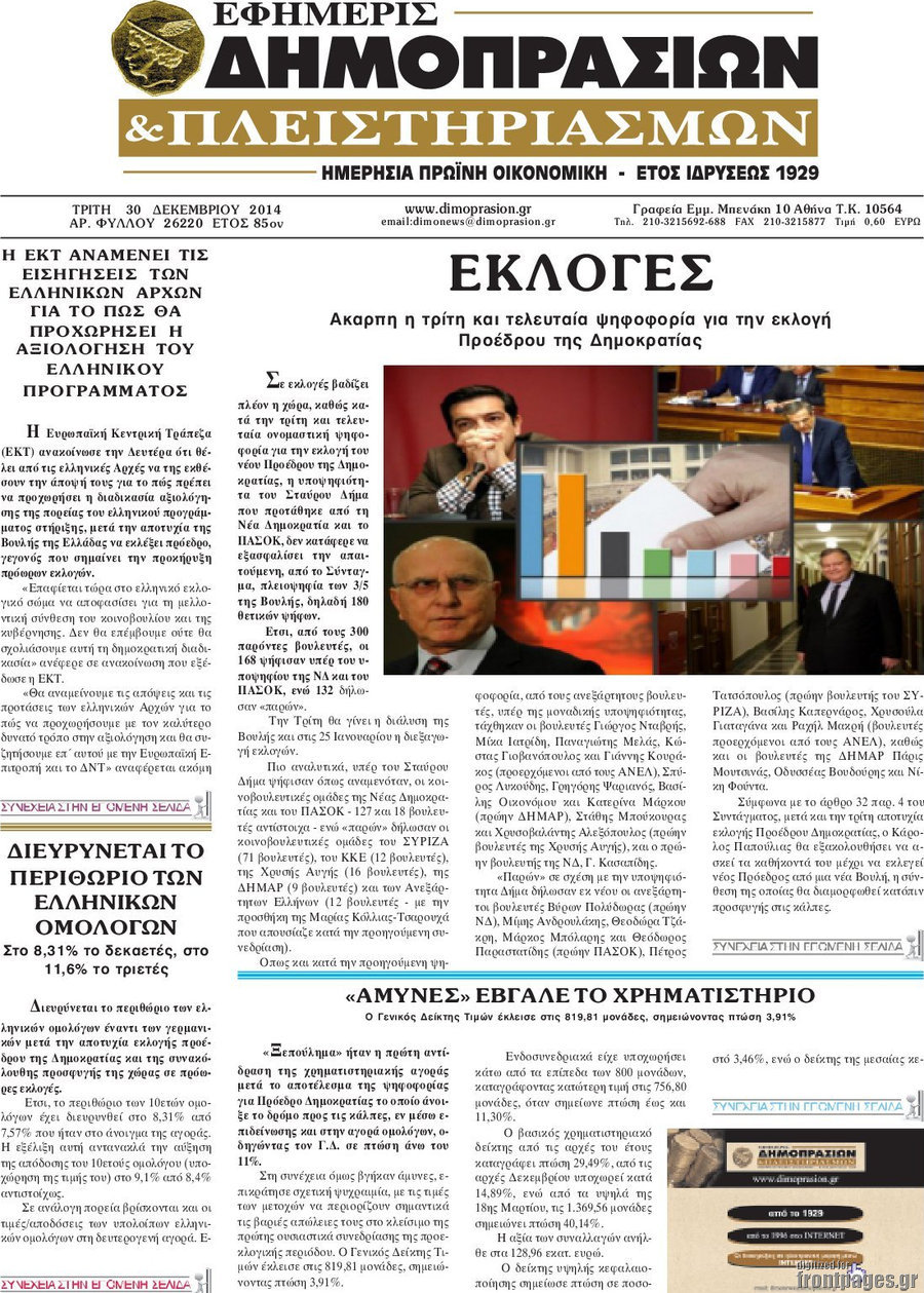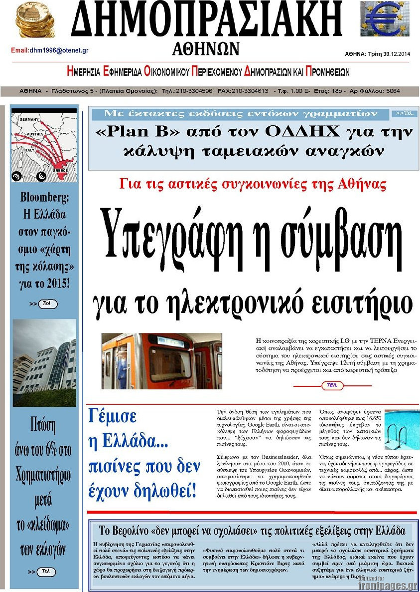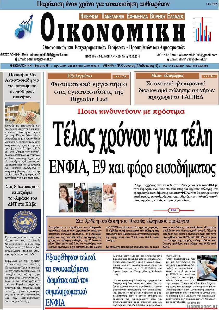 Οι οικονομικές εφημερίδες Enikos Newsroom 07:38, Τρίτη 30 Δεκεμβρίου 2014 Media Διαβάστε τα πρωτοσέλιδα των οικονομικών εφημερίδων: ΟΙΚΟΝΟΜΙΚΕΣ ΕΦΗΜΕΡΙΔΕΣ ΠΡΩΤΟΣΕΛΙΔΑ Μοιράσου το: σχολίασε κι εσύ (0 σχόλια) Ακολουθήστε το enikos.gr στο Google News και μάθετε πρώτοι όλες τις ειδήσεις Δείτε όλες τις τελευταίες ειδήσεις από την Ελλάδα και τον Κόσμο στο enikos.gr Ειδήσεις Ροή Ειδήσεων 9 λεπτά πριν Κλιμακώνουν από σήμερα τις κινητοποιήσεις οι αγρότες: Νέα μπλόκα, κλείσιμο παρακαμπτηρίων και άνοιγμα διοδίων – Το νέο μήνυμα Μητσοτάκη 36 λεπτά πριν Συντάξεις: Οι κερδισμένοι και οι χαμένοι από τις αυξήσεις – Αναλυτικός οδηγός και παραδείγματα 4 ώρες πριν Ευρωπαϊκή Ένωση: Συμφωνία για δάνειο 90 δισ. ευρώ στην Ουκρανία τη διετία 2026-2027 – Μητσοτάκης: Η λύση που προκρίθηκε είναι η ενδεδειγμένη 55 λεπτά πριν Θανατηφόρο τροχαίο στη Νέα Φιλαδέλφεια: Νεκρός 27χρονος οδηγός μηχανής ύστερα από σύγκρουση με τρόλεϊ 8 ώρες πριν ΟΠΕΚΕΠΕ: Προφυλακιστέος ο φερόμενος αρχηγός και ο λογιστής της εγκληματικής οργάνωσης 2 ώρες πριν Οπτική ψευδαίσθηση: Μόνο αν έχεις αετίσια ματιά θα βρεις τον παπαγάλο σε 12 δευτερόλεπτα 2 ώρες πριν Κρύα χέρια και πόδια: Γιατρός εξηγεί ποια είναι η αίτια και πότε πρέπει να ανησυχήσετε 2 ώρες πριν Τα ζώδια σήμερα, Παρασκευή 19 Δεκεμβρίου: Τοξότες, με τη Νέα Σελήνη έρχεται η προσωπική ανανέωσή σας 2 ημέρες πριν 20 χρόνια τα Χριστούγεννα ξεκινούν στα Public με μεγάλη ποικιλία σε δώρα! 4 λεπτά πριν Την Κυριακή με τη Realnews: Δωροεπιταγή 10€ 2 λεπτά πριν Πανεπιστήμιο Μπράουν: Νεκρός ο ύποπτος για την επίθεση 8 λεπτά πριν Τέμπη: Συνεχίζεται σήμερα η δίκη για τη διαχείριση του βιντεοληπτικού υλικού 9 λεπτά πριν Κλιμακώνουν από σήμερα τις κινητοποιήσεις οι αγρότες: Νέα μπλόκα, κλείσιμο παρακαμπτηρίων και άνοιγμα διοδίων – Το νέο μήνυμα Μητσοτάκη 17 λεπτά πριν e-ΕΦΚΑ και ΔΥΠΑ: Τελευταία ημέρα πληρωμών σήμερα ENIKOS NETWORK Άνοια: Ειδικοί προειδοποιούν για 5 κοινές συνήθειες που μπορεί να αυξήσουν τον κίνδυνο 6 Χριστουγεννιάτικα δώρα για όσους τα έχουν όλα – Θα τους εκπλήξουν Συντάξεις: Οι κερδισμένοι και οι χαμένοι από τις αυξήσεις – Αναλυτικός οδηγός Στεγαστικό: Τι λέει η ΠΟΜΙΔΑ για τα νέα μέτρα που ανακοίνωσε ο Κυριάκος Μητσοτάκης Χαρτογραφώντας το «σημείο χωρίς επιστροφή»: Για πρώτη φορά αποκαλύπτεται με λεπτομέρεια το ακανθώδες όριο της ατμόσφαιρας τ... Η Google καταργεί τη λειτουργία «dark web report» – Πώς θα μπορούν οι χρήστες να διαγράφουν τα δεδομένα τους περισσότερα 05:48 , Παρασκευή 19 Δεκεμβρίου 2025 Οι οικονομικές εφημερίδες 19/12/2025 Διαβάστε τα πρωτοσέλιδα από τις οικονομικές εφημερίδες, σήμερα 19/12/2025. 05:43 , Παρασκευή 19 Δεκεμβρίου 2025 Οι αθλητικές εφημερίδες 19/12/2025 Διαβάστε τα πρωτοσέλιδα από τις αθλητικές εφημερίδες, σήμερα 19/12/2025. 05:38 , Παρασκευή 19 Δεκεμβρίου 2025 Οι πολιτικές εφημερίδες 19/12/2025 Διαβάστε τα πρωτοσέλιδα από τις πολιτικές εφημερίδες, σήμερα 19/12/2025. 02:50 , Παρασκευή 19 Δεκεμβρίου 2025 GNTM: «Κλείδωσαν» οι τέσσερις φιναλίστ – Μεγάλη ανατροπή στις τελευταίες αποχωρήσεις Για προτελευταία φορά εμφανίστηκαν στο πλατό του GNTM οι φιναλίστ του φετινού κύκλου, το βράδυ... ΤΕΛΕΥΤΑΙΕΣ ΕΙΔΗΣΕΙΣ 8 λεπτά πριν Τέμπη: Συνεχίζεται σήμερα η δίκη για τη διαχείριση του... 9 λεπτά πριν Κλιμακώνουν από σήμερα τις κινητοποιήσεις οι αγρότες:... 17 λεπτά πριν e-ΕΦΚΑ και ΔΥΠΑ: Τελευταία ημέρα πληρωμών σήμερα 24 λεπτά πριν Καιρός: Ηλιοφάνεια σήμερα – Έρχονται κρύο, βροχές... 31 λεπτά πριν Ελλάδα – Γαλλία προς υπογραφή νέας ανα