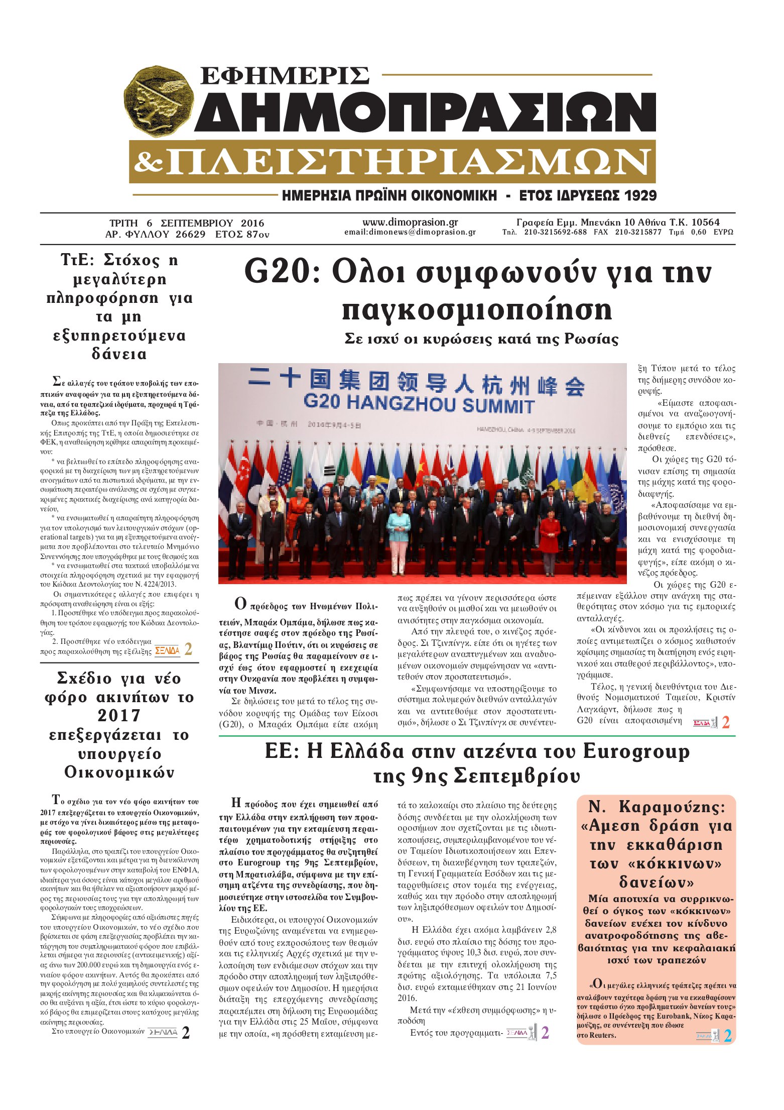 Οι οικονομικές εφημερίδες 6/9/2016 Enikos Newsroom 04:55, Τρίτη 06 Σεπτεμβρίου 2016 Media Διαβάστε τα σημερινά πρωτοσέλιδα των οικονομικών εφημερίδων: ΟΙΚΟΝΟΜΙΚΕΣ ΕΦΗΜΕΡΙΔΕΣ ΠΡΩΤΟΣΕΛΙΔΑ Μοιράσου το: σχολίασε κι εσύ (0 σχόλια) Ακολουθήστε το enikos.gr στο Google News και μάθετε πρώτοι όλες τις ειδήσεις Δείτε όλες τις τελευταίες ειδήσεις από την Ελλάδα και τον Κόσμο στο enikos.gr Ειδήσεις Ροή Ειδήσεων 4 ώρες πριν Εκτός ευρωομάδας ΣΥΡΙΖΑ ο Νίκος Παππάς μετά την επίθεση στον δημοσιογράφο Νίκο Γιαννόπουλο – Η μήνυση και οι νέες δηλώσεις 5 ώρες πριν «Αγριεύουν» οι αγρότες: «Δεν συντρέχει λόγος συνάντησης με τον πρωθυπουργό» – Ώρα αποφάσεων στη σύσκεψη της Πέμπτης 5 ώρες πριν Κυψέλη: Χωρίς την οικογένειά της δίπλα της απολογήθηκε η 16χρονη – «Της είχε επιτεθεί κάποιος για να την βιάσει, φοβήθηκε και κυκλοφορούσε με μαχαίρι» 4 ώρες πριν Politico: Το πρόβλημα της Ευρώπης δεν είναι το Βέλγιο αλλά ο Ντόναλντ Τραμπ 6 ώρες πριν Αλεξανδρούπολη: Πολυοργανική ανεπάρκεια λόγω υποσιτισμού η αιτία θανάτου του 3χρονου αγοριού 5 ώρες πριν Μυστήριο με τεράστιες κυκλικές πέτρες 200 κιλών – Ανακαλύφθηκαν τυχαία κατά τη διάρκεια οδικών έργων και κανείς δεν ξέρει από πού προέρχονται 6 ώρες πριν Ύπνος: Ειδικός εξηγεί τον πραγματικό λόγο που ξυπνάτε στις 4 τα ξημερώματα – Ο ρόλος των ορμονών και του κιρκάδιου ρυθμού 7 ώρες πριν Αριθμολογία: Οι άνθρωποι που έχουν γεννηθεί αυτές τις 4 ημερομηνίες, είναι τρυφεροί και αγαπούν ανιδιοτελώς 18 ώρες πριν 20 χρόνια τα Χριστούγεννα ξεκινούν στα Public με μεγάλη ποικιλία σε δώρα! 17 λεπτά πριν Βραζιλία: Το Κογκρέσο ενέκρινε σχέδιο νόμου για τη μείωση της ποινής του πρώην προέδρου Μπολσονάρου 32 λεπτά πριν Ένταση στο περιφερειακό συμβούλιο Δυτικής Μακεδονίας: Φωνές, σπρωξιές και διακοπή – Δείτε βίντεο 46 λεπτά πριν Σουδάν: Επιδρομή drone σε χωριό του Νότιου Κορντοφάν – Οκτώ νεκροί 1 ώρα πριν Αλ Τσαντίρι Νιουζ: Η κόρη της Πάολα στο κοινό – Η ατάκα Λαζόπουλου που την έκανε να «κοκκινήσει» 1 ώρα πριν Ρωσία: Ουκρανικές δυνάμεις έπληξαν πλοίο στο λιμάνι του Ροστόφ – Αναφορές για θύματα ENIKOS NETWORK Αϋπνία: Το κόλπο που θα σας βοηθήσει να κοιμηθείτε απόψε – Είναι απλό και έχει αποτέλεσμα 2,6 εκατομμύρια πολίτες έχουν ήδη εμβολιαστεί κατά της γρίπης ΕΛΣΤΑΤ: Τι δείχνουν τα νέα στοιχεία για τις ηλεκτρονικές παραγγελίες των επιχειρήσεων ΚΕΠΕ: Οι 3 διακριτές συμβολές των ΜμΕ και της μεταποίησης στην ελληνική οικονομία Χαρτογραφώντας το «σημείο χωρίς επιστροφή»: Για πρώτη φορά αποκαλύπτεται με λεπτομέρεια το ακανθώδες όριο της ατμόσφαιρας τ... Η Google καταργεί τη λειτουργία «dark web report» – Πώς θα μπορούν οι χρήστες να διαγράφουν τα δεδομένα τους περισσότερα 02:30 , Πέμπτη 18 Δεκεμβρίου 2025 Αλ Τσαντίρι Νιουζ: Η κόρη της Πάολα στο κοινό – Η ατάκα Λαζόπουλου που την έκανε να «κοκκινήσει» Γιορτινή διάθεση και ευχάριστες στιγμές γέμισε η αποψινή, τελευταία για το 2025, εκπομπή του «... 22:24 , Τετάρτη 17 Δεκεμβρίου 2025 Το Σπίτι Δίπλα Στο Ποτάμι: Σε κίνδυνο η υγεία του Απόστολου – Τι θα δούμε απόψε “Το Σπίτι Δίπλα στο Ποτάμι” ξετυλίγει το νήμα της ζωής των πέντε αδελφών με καταισ... 21:14 , Τετάρτη 17 Δεκεμβρίου 2025 Παιχνίδια Εκδίκησης: Θα καταφέρει ο Χρήστος να κλονίσει την εμπιστοσύνη της Μάγιας απέναντι στον Άγη; Τα «Παιχνίδια Εκδίκησης» έρχονται απόψε στις 22:30, στον Αντ1, με το τελευταίο επεισόδιο της χ... 20:57 , Τετάρτη 17 Δεκεμβρίου 2025 Άγιος Έρωτας: Η Χλόη καταθέτει εναντίον του πατέρα της και ο Χάρης αποκαλύπτει στ