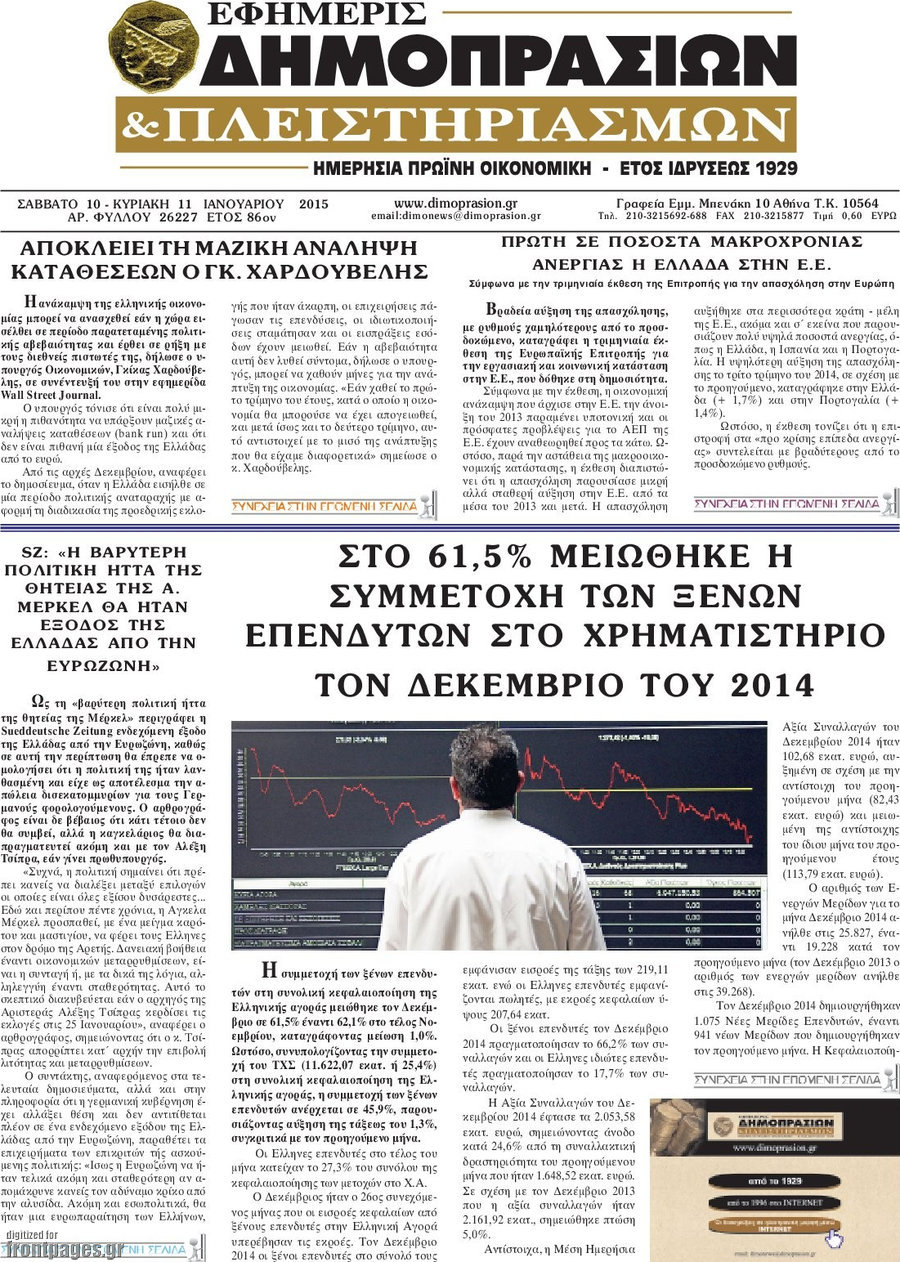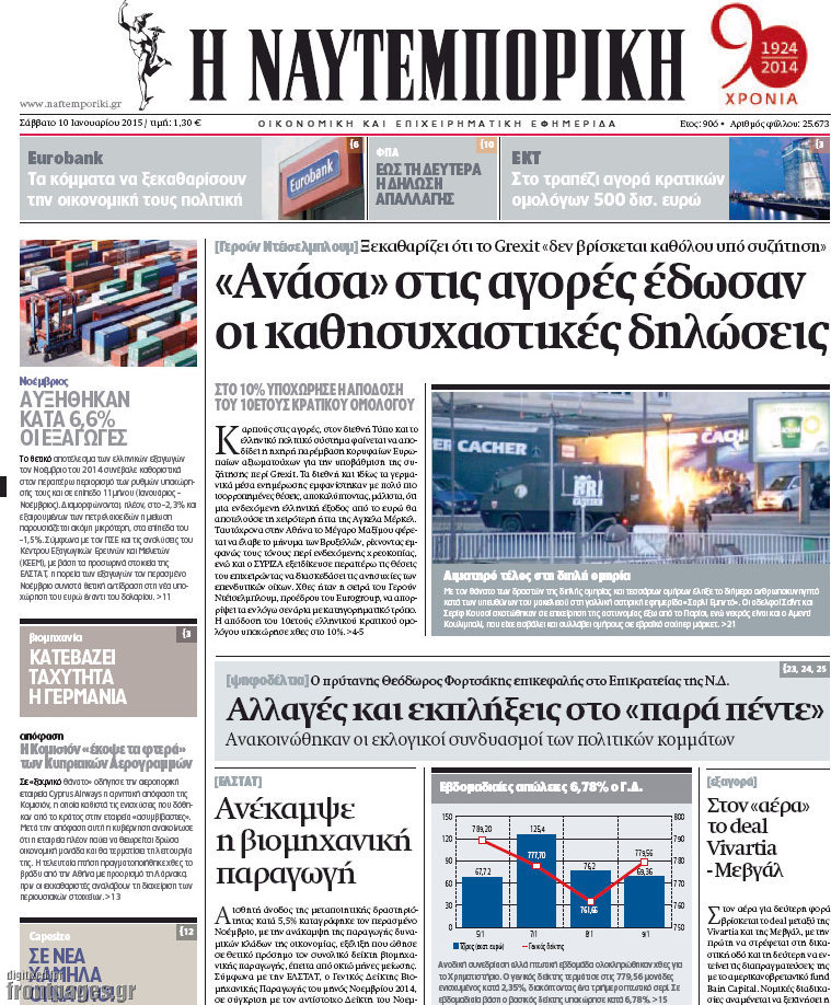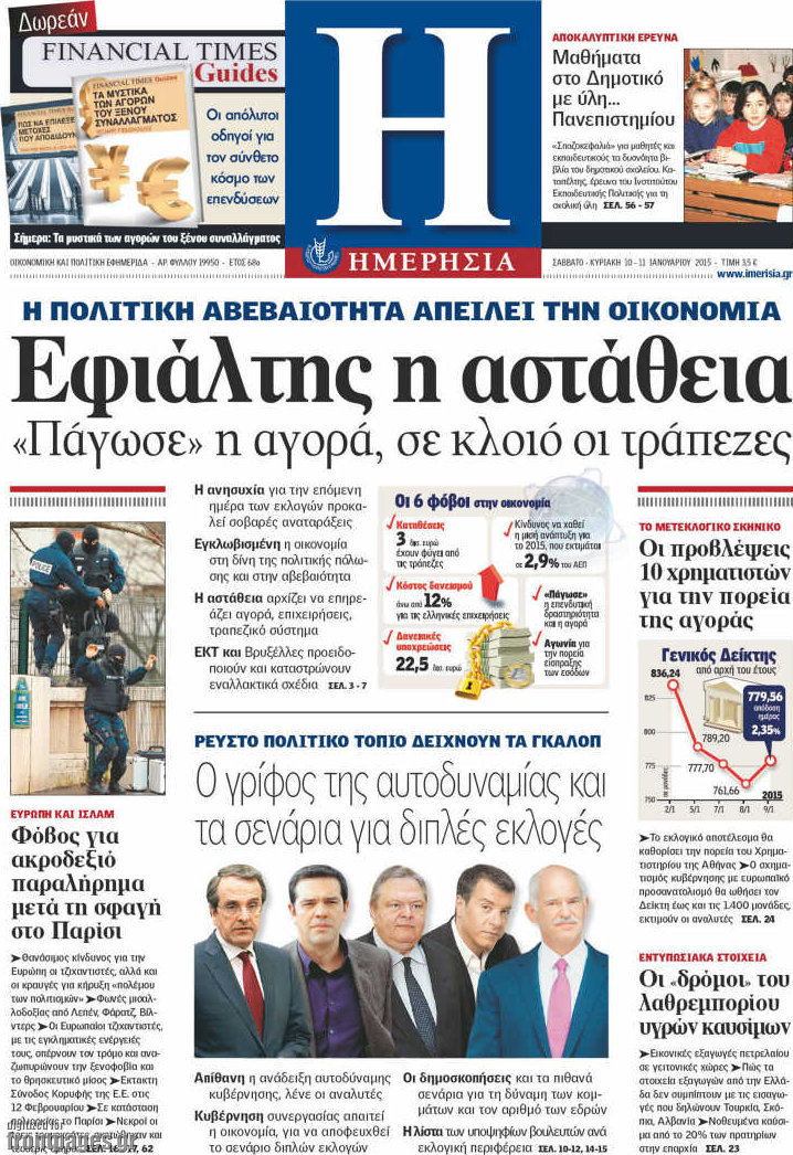 Οι οικονομικές εφημερίδες Enikos Newsroom 08:22, Σάββατο 10 Ιανουαρίου 2015 Media Διαβάστε τα πρωτοσέλιδα των οικονομικών εφημερίδων: ΕΦΗΜΕΡΙΔΕΣ ΟΙΚΟΝΟΜΙΚΕΣ ΕΦΗΜΕΡΙΔΕΣ ΠΡΩΤΟΣΕΛΙΔΑ Μοιράσου το: σχολίασε κι εσύ (0 σχόλια) Ακολουθήστε το enikos.gr στο Google News και μάθετε πρώτοι όλες τις ειδήσεις Δείτε όλες τις τελευταίες ειδήσεις από την Ελλάδα και τον Κόσμο στο enikos.gr Ειδήσεις Ροή Ειδήσεων 3 ώρες πριν Από το Ορμένιο ως τα Μάλγαρα κι από τη Σιάτιστα μέχρι τη Νίκαια: Μπλόκα σε όλη την Ελλάδα – Το Σάββατο ανοίγουν τα διόδια οι αγρότες 43 λεπτά πριν Εμπλοκή και αερομαχίες με οπλισμένα τουρκικά F-16 στο Αιγαίο 2 ώρες πριν Αττική: Θρίλερ με νεκρό βρέφος 5 μηνών – Κοιμόταν στο ίδιο κρεβάτι με τους γονείς του 33 λεπτά πριν Πούτιν: «Ναι, είμαι ερωτευμένος» – Βίντεο από τη σπάνια προσωπική παραδοχή του 2 ώρες πριν Μεσόγειος: Η διαδρομή του ρωσικού τάνκερ «Qendil» και η στοχευμένη επίθεση της Ουκρανίας με drone – Ο Πούτιν προειδοποίησε για αντίποινα 4 ώρες πριν Τα 5 ζώδια που ευνοούνται στην ερωτική ζωή τους την επόμενη εβδομάδα – «Η ενέργεια του Αιγόκερου φέρνει αγάπη και σταθερότητα» 5 ώρες πριν Αυτό το έξυπνο μαθηματικό κόλπο θα μπορούσε να αλλάξει τον τρόπο με τον οποίο οι επιστήμονες μελετούν τους σεισμούς 1 ώρα πριν Μήπως έχετε χάσει τον εαυτό σας στη σχέση σας; 7 «αθόρυβες» υποχωρήσεις που μάλλον κάνατε, χωρίς να το συνειδητοποιήσετε 3 ώρες πριν Κουίζ για την παλιά Αθήνα: Αναγνωρίζετε την περιοχή; Έχετε περάσει 100% από εκεί 6 λεπτά πριν Νίκος Γιαννόπουλος: «Μου επιτέθηκε ο Παππάς – Ήμουν νηφάλιος, δεν τον προκάλεσα» – ΒΙΝΤΕΟ 14 λεπτά πριν Γιώργος Τράγκας: Ανατροπή από το Πριγκιπάτο του Μονακό για την υπόθεση της κληρονομιάς – Η ανακοίνωση της δικηγόρου της Μαρίας Καρρά 21 λεπτά πριν Ξεχάστε το καθάρισμα το Σαββατοκύριακο: Ο «κανόνας των 20 λεπτών» που θα σας λύσει τα χέρια 23 λεπτά πριν Αγρότες: Έκλεισαν την υψηλή γέφυρα της Χαλκίδας – ΒΙΝΤΕΟ 26 λεπτά πριν Ρούμπιο: Έχει υπάρξει πρόοδος στις συνομιλίες για την Ουκρανία – Τα τελευταία ζητήματα είναι τα πιο δύσκολα ENIKOS NETWORK Έχετε πραγματικά μεγάλη καρδιά; 10 χαρακτηριστικά όσων έχουν καλοσύνη «Η σούπερ» γρίπη εξαπλώνεται στην Ευρώπη-Στοιχεία από το ECDC για την αποτελεσματικότητα του εμβολίου Επίδομα παιδιού: Πότε ανοίγει ξανά η πλατφόρμα για τις αιτήσεις Προκήρυξη ΑΣΕΠ για 397 μόνιμες προσλήψεις στο Δημόσιο: Βγήκαν τα προσωρινά αποτελέσματα – Πότε αρχίζει η υποβολή ενστάσεων Χαρτογραφώντας το «σημείο χωρίς επιστροφή»: Για πρώτη φορά αποκαλύπτεται με λεπτομέρεια το ακανθώδες όριο της ατμόσφαιρας τ... Η Google καταργεί τη λειτουργία «dark web report» – Πώς θα μπορούν οι χρήστες να διαγράφουν τα δεδομένα τους περισσότερα 19:31 , Παρασκευή 19 Δεκεμβρίου 2025 GNTM: Απόψε ο μεγάλος τελικός για τους 4 φιναλίστ Έπειτα από μήνες γεμάτους μόδα, δημιουργία και έντονες αναμετρήσεις, το GNTM 2025 κορυφώνεται,... 18:11 , Παρασκευή 19 Δεκεμβρίου 2025 Το σόι σου: Ο Άρης έρχεται στην Ελλάδα για τις γιορτές των Χριστουγέννων – Τι θα δούμε στο αποψινό εορταστικό επεισόδιο Ένα απολαυστικό, εορταστικό επεισόδιο της σειράς “Το σόι σου”, γεμάτο ευτράπελα αλ... 15:15 , Παρασκευή 19 Δεκεμβρίου 2025 Την Κυριακή με τη Realnews: Ό,τι και αν αγοράσεις, σκανάρεις και κερδίζεις! Την Κυριακή με τη Realnews: Ό,τι και αν αγοράσεις, σκανάρεις και κερδίζεις! Με το PADU app, το... 08:00 , Παρασκευή 19 Δεκεμβρίου 2025 Την Κυριακή με τη Realnews: Δωροεπιταγή 10€ Δωροεπιταγή αξίας 10€ για αγορές άνω των 60€ από τα πολυκαταστήματα FactoryOu