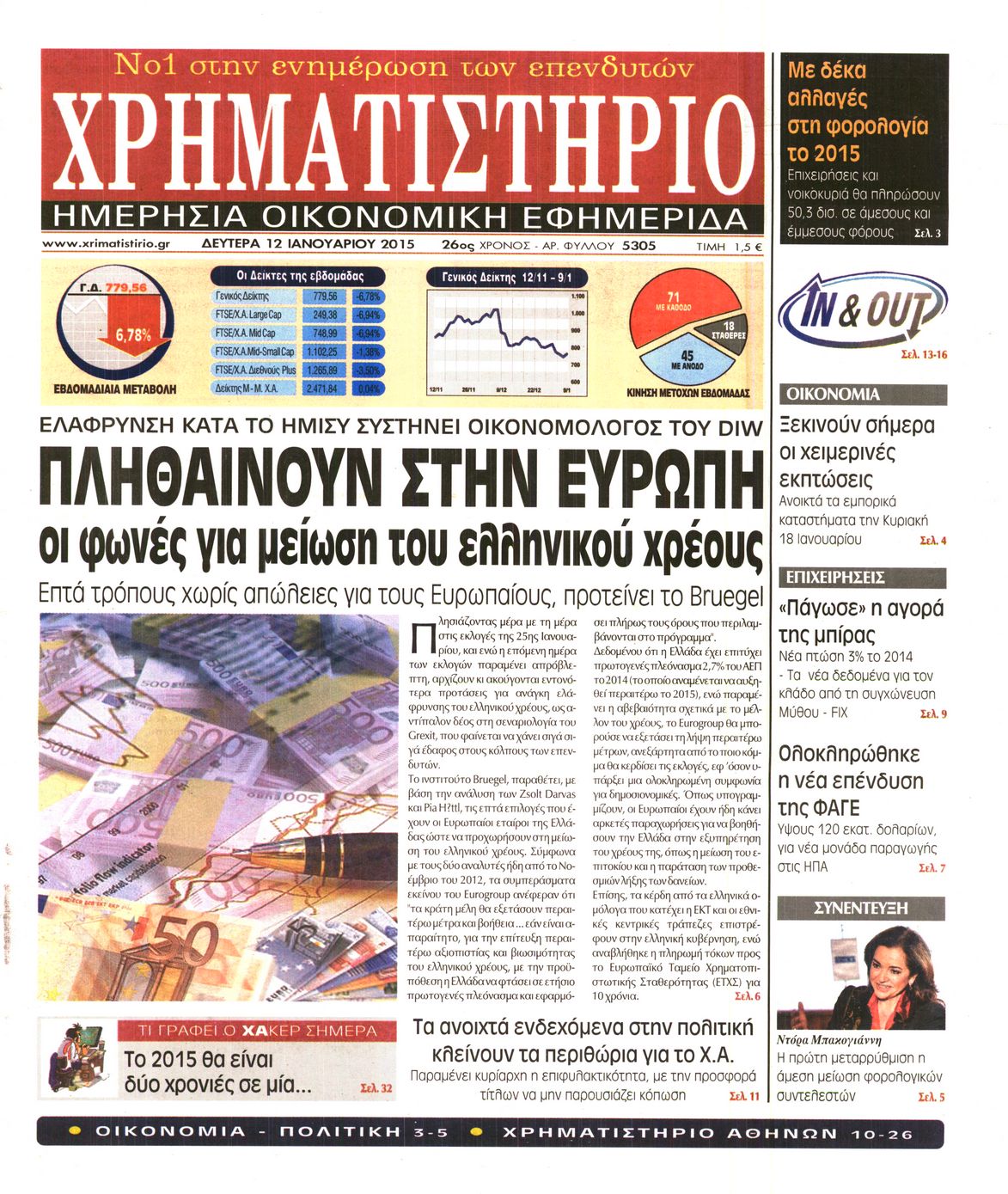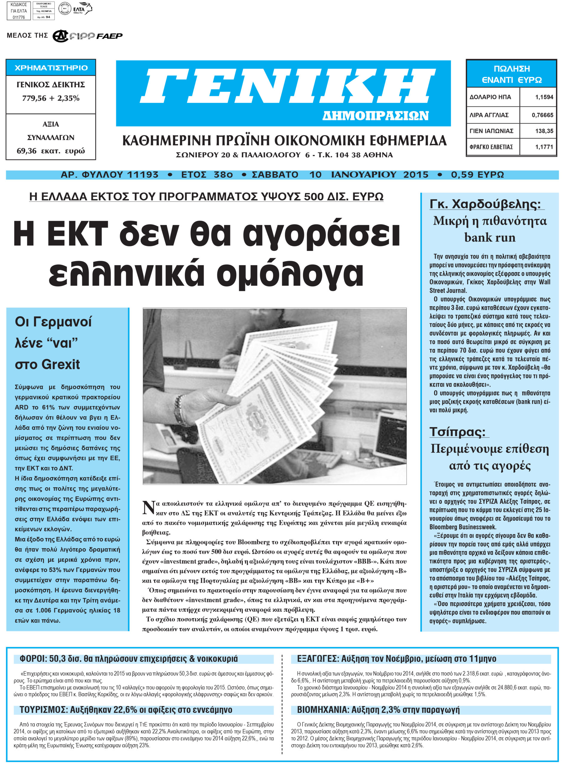 Οι oικονομικές εφημερίδες Enikos Newsroom 08:34, Δευτέρα 12 Ιανουαρίου 2015 Media Διαβάστε τα πρωτοσέλιδα των οικονομικών εφημερίδων: ΕΦΗΜΕΡΙΔΕΣ ΟΙΚΟΝΟΜΙΚΕΣ ΕΦΗΜΕΡΙΔΕΣ ΠΡΩΤΟΣΕΛΙΔΑ Μοιράσου το: σχολίασε κι εσύ (0 σχόλια) Ακολουθήστε το enikos.gr στο Google News και μάθετε πρώτοι όλες τις ειδήσεις Δείτε όλες τις τελευταίες ειδήσεις από την Ελλάδα και τον Κόσμο στο enikos.gr Ειδήσεις Ροή Ειδήσεων 37 λεπτά πριν LIVE από Λοριάν: Η ύψωση της ελληνικής σημαίας στην πρώτη φρεγάτα FDI Belharra ΚΙΜΩΝ 49 λεπτά πριν Στην Ευελπίδων ο 22χρονος που καταγγέλλει τον Γιώργο Μαζωνάκη για ασελγείς πράξεις – «Έχουμε εμπιστοσύνη στη Δικαιοσύνη, καμία εκβίαση» λέει ο δικηγόρος του 3 ώρες πριν Νίκος Παππάς: Άφαντος παραμένει ο ευρωβουλευτής μετά την επίθεση στον Νίκο Γιαννόπουλο 2 ώρες πριν Βρυξέλλες: Ένταση με τους αγρότες – Πέταξαν πατάτες και κροτίδες 3 ώρες πριν Συναγερμός και στην Ελλάδα για τη «σούπερ γρίπη»: Πόσο σοβαρή είναι και ποιοι θεωρούνται πιο ευάλωτοι – 3 ειδικοί μιλούν στο enikos.gr 4 ώρες πριν Τα 4 ζώδια που λαμβάνουν ένα ισχυρό σημάδι από το σύμπαν – «Αποκαλύπτεται κάτι που μπορεί να αλλάξει τη ζωή μας» 5 ώρες πριν Η σύζυγός του παραπονιέται για τα χρήματα που της δίνει για ψώνια κάθε μήνα – «Λέει ότι νιώθει φτωχή και της είπα να βρει δουλειά» 3 ώρες πριν Αν κάνετε συνεχώς αυτά τα 8 πράγματα με τα κατοικίδιά σας, σας λείπει η ανθρώπινη επαφή 1 ημέρα πριν 20 χρόνια τα Χριστούγεννα ξεκινούν στα Public με μεγάλη ποικιλία σε δώρα! 2 λεπτά πριν Γιώργος Μαζωνάκης: «Δεν ζήτησα χρήματα, παρά μόνο ηθική δικαίωση» – Οι πρώτες δηλώσεις του 22χρονου μετά την κατάθεση της μήνυσης 6 λεπτά πριν Χριστουγεννιάτικο τραπέζι: Πόσο θα κοστίσει φέτος – Σε ποια είδη τραβούν… την ανηφόρα οι τιμές 15 λεπτά πριν Σκέρτσος για Κωνσταντοπούλου: «Είναι αδίστακτη, βαθιά κυνική και ουσιαστικά αδιάφορη απέναντι στην αλήθεια και τη δικαιοσύνη» 23 λεπτά πριν Χαρίτσης: «Ο κ. Μητσοτάκης έδωσε το πράσινο φως για το λουκέτο στα ΕΛΤΑ» 27 λεπτά πριν Κατερίνα Καινούργιου για Γιώργο Μαζωνάκη: «Θεωρώ φρικτό αυτό το τσίρκο που έχει συμβεί τις τελευταίες μέρες στα Μέσα» ENIKOS NETWORK Όμιλος ΙΑΤΡΟΠΟΛΙΣ: Πρωτοπόροι στη μοριακή απεικόνιση και στην πυρηνική ιατρική Τι περιλαμβάνει το σχέδιο της ΕΕ για την καρδιαγγειακή υγεία-Οι προτάσεις της Ελληνικής Καρδιολογικής Εταιρείας Χριστουγεννιάτικο τραπέζι: Πόσο θα κοστίσει φέτος – Σε ποια είδη τραβούν… την ανηφόρα οι τιμές Ενοίκια: Τι αλλάζει με τη νέα τροπολογία στην πληρωμή Χαρτογραφώντας το «σημείο χωρίς επιστροφή»: Για πρώτη φορά αποκαλύπτεται με λεπτομέρεια το ακανθώδες όριο της ατμόσφαιρας τ... Η Google καταργεί τη λειτουργία «dark web report» – Πώς θα μπορούν οι χρήστες να διαγράφουν τα δεδομένα τους περισσότερα 08:00 , Πέμπτη 18 Δεκεμβρίου 2025 Την Κυριακή με τη Realnews: Δωροεπιταγή 10€ Δωροεπιταγή αξίας 10€ για αγορές άνω των 60€ από τα πολυκαταστήματα FactoryOutlet H προσφορά ι... 07:50 , Πέμπτη 18 Δεκεμβρίου 2025 «Το σόι σου»: Backstage στα γυρίσματα για το εορταστικό επεισόδιο «Το σόι σου» φορά τα γιορτινά του για τα Χριστούγεννα και η Όλγα Λαφαζάνη, με την κάμερα του «... 07:36 , Πέμπτη 18 Δεκεμβρίου 2025 Οι αθλητικές μεταδόσεις 18/12/2025 – Πού θα δείτε τον αγώνα της ΑΕΚ με την Κραϊόβα για το Conference League Τα ματς ΑΕΚ – Ουνιβερσιτάτεα Κραϊόβα για το Conference League και Παναθηναϊκός – Χάποελ Τελ Αβ... 05:48 , Πέμπτη 18 Δεκεμβρίου 2025 Οι οικονομικές εφημερίδες 18/12/2025 Διαβάστε τα πρωτοσέλιδα από τις οικονομικές εφημερίδες, σήμερα 18/12/2025. ΤΕΛΕΥΤΑΙΕΣ ΕΙΔΗΣ
