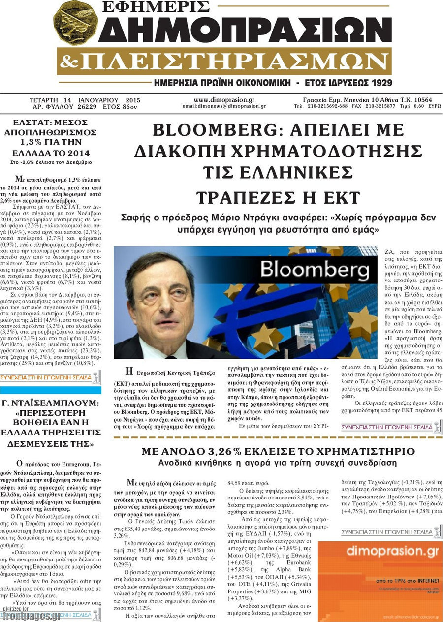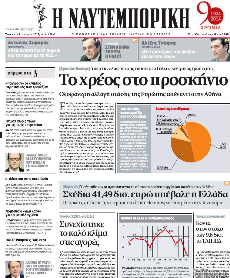 Οι οικονομικές εφημερίδες Enikos Newsroom 07:38, Τετάρτη 14 Ιανουαρίου 2015 Media Διαβάστε τα πρωτοσέλιδα των οικονομικών εφημερίδων: ΟΙΚΟΝΟΜΙΚΕΣ ΕΦΗΜΕΡΙΔΕΣ ΠΡΩΤΟΣΕΛΙΔΑ Μοιράσου το: σχολίασε κι εσύ (0 σχόλια) Ακολουθήστε το enikos.gr στο Google News και μάθετε πρώτοι όλες τις ειδήσεις Δείτε όλες τις τελευταίες ειδήσεις από την Ελλάδα και τον Κόσμο στο enikos.gr Ειδήσεις Ροή Ειδήσεων 21 λεπτά πριν ΣΥΡΙΖΑ: Διέγραψε τον ευρωβουλευτή Νίκο Παππά μετά την μήνυση δημοσιογράφου για ξυλοδαρμό 1 ώρα πριν Πώς στήθηκε η επιχείρηση «Ίπαλλος» που οδήγησε στη σύλληψη του «Έλληνα Εσκομπάρ» – «Ο πόλεμος ενάντια στους εμπόρους ναρκωτικών θα συνεχιστεί» 1 ώρα πριν Δίκη Χρυσής Αυγής: Την ενοχή και των 42 κατηγορουμένων ζητά η εισαγγελέας 1 ώρα πριν Κυψέλη: Στη φυλακή η 16χρονη που μαχαίρωσε συμμαθήτριά της 4 ώρες πριν Αμοργός: «Θα προσπαθήσω να το κάνω κάθε μέρα» – Ποιος είναι ο αγρότης που έστησε μόνος του το πρώτο μπλόκο στο νησί 2 ώρες πριν Τα 3 ζώδια που θα δουν τη ζωή τους να αλλάζει ριζικά το 2026 – «Όλα γίνονται καλύτερα σταδιακά» 7 ώρες πριν «Δεν είχα κλάψει από τότε που διαγνώστηκα με καρκίνο, ώσπου ένα τηλεφώνημα με έκανε να λυγίσω» – Η συγκλονιστική εξομολόγηση ενός άνδρα 2 ώρες πριν Ο σπάνιος σεισμός που έλυσε τα χέρια των επιστημόνων – Αποκάλυψε ακριβώς όσα αναζητούσαν 8 ώρες πριν 20 χρόνια τα Χριστούγεννα ξεκινούν στα Public με μεγάλη ποικιλία σε δώρα! 4 λεπτά πριν Μαργαρίτα Θεοδωράκη για Γιώργο Χατζιδάκι: Προσβλητικό το εξώδικο – Ο Μίκης έγραψε «απαγορεύεται το απαγορεύεται» 10 λεπτά πριν Ρόδος: Ανήλικος που βρισκόταν σε σχολική εκδρομή μεταφέρθηκε μεθυσμένος στο νοσοκομείο – 2 συλλήψεις 16 λεπτά πριν Γέννησε η Ευάννα Ζουμπούρογλου: «Είμαστε και οι δύο πολύ καλά – Είναι η πιο όμορφη όλου του κόσμου» 21 λεπτά πριν ΣΥΡΙΖΑ: Διέγραψε τον ευρωβουλευτή Νίκο Παππά μετά την μήνυση δημοσιογράφου για ξυλοδαρμό 23 λεπτά πριν Απολαυστικό «Ρουκ…Σουτ» με παίκτες του Παναθηναϊκού AKTOR – ΒΙΝΤΕΟ ENIKOS NETWORK Γιατί αναζητούμε τα Χριστούγεννα όλο και νωρίτερα; Ποιοι οι ψυχολογικοί και οι συναισθηματικοί λόγοι Σοβαροί κίνδυνοι από τη λάθος χορήγηση φαρμάκου για τις αιμορραγίες-Συστάσεις προς τους γιατρούς Δάνεια σε ελβετικό φράγκο: Αύριο η κατάθεση της τροπολογίας στη Βουλή – Όλες οι λεπτομέρειες Επίδομα παιδιού: Πότε θα δοθεί η τελευταία δόση για το 2025 από τον ΟΠΕΚΑ και τι πρέπει να γνωρίζετε Χαρτογραφώντας το «σημείο χωρίς επιστροφή»: Για πρώτη φορά αποκαλύπτεται με λεπτομέρεια το ακανθώδες όριο της ατμόσφαιρας τ... Η Google καταργεί τη λειτουργία «dark web report» – Πώς θα μπορούν οι χρήστες να διαγράφουν τα δεδομένα τους περισσότερα 12:35 , Τετάρτη 17 Δεκεμβρίου 2025 Μίρκα Παπακωνσταντίνου: «Δεν ήμουν αισιόδοξη για τα νούμερα – Είμαι ρεαλίστρια» Στα γυρίσματα του εορταστικού επεισοδίου της αγαπημένης σειράς “Το Σόι Σου”, βρέθηκε η κάμερα ... 12:12 , Τετάρτη 17 Δεκεμβρίου 2025 Ακούστε την εκπομπή του Νίκου Χατζηνικολάου 17/12/2025 Ακούστε την εκπομπή του Νίκου Χατζηνικολάου στον ραδιοφωνικό σταθμό RealFm 97,8, την Τετάρτη 1... 11:35 , Τετάρτη 17 Δεκεμβρίου 2025 Home Alone: Το σπίτι της ταινίας θα ανακαινιστεί – Επιστροφή στην αισθητική της δεκαετίας του ’90 Οι νέοι ιδιοκτήτες του πραγματικού σπιτιού που παρουσιάζεται στην κλασική ταινία του 1990 «Hom... 11:25 , Τετάρτη 17 Δεκεμβρίου 2025 Grand Hotel: Απόψε το τελευταίο επεισόδιο της χρονιάς – Όλα τα μυστικά μένουν εδώ Το τελευταίο επεισόδιο της χρονιάς της σειράς «Grand Hotel» θα προβληθεί απόψε στις 21:00. 