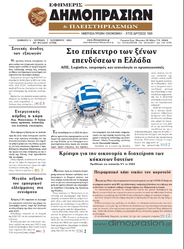 Οι οικονομικές εφημερίδες 7/11/2021 Διονύσης Νίκκας 07:20, Κυριακή 07 Νοεμβρίου 2021 Media Διαβάστε τα πρωτοσέλιδα από τις οικονομικές εφημερίδες… ΟΙΚΟΝΟΜΙΚΕΣ ΕΦΗΜΕΡΙΔΕΣ Μοιράσου το: σχολίασε κι εσύ (0 σχόλια) Ακολουθήστε το enikos.gr στο Google News και μάθετε πρώτοι όλες τις ειδήσεις Δείτε όλες τις τελευταίες ειδήσεις από την Ελλάδα και τον Κόσμο στο enikos.gr Ειδήσεις Ροή Ειδήσεων 35 λεπτά πριν LIVE από Λοριάν: Η ύψωση της ελληνικής σημαίας στην πρώτη φρεγάτα FDI Belharra ΚΙΜΩΝ 47 λεπτά πριν Στην Ευελπίδων ο 22χρονος που καταγγέλλει τον Γιώργο Μαζωνάκη για ασελγείς πράξεις – «Έχουμε εμπιστοσύνη στη Δικαιοσύνη, καμία εκβίαση» λέει ο δικηγόρος του 3 ώρες πριν Νίκος Παππάς: Άφαντος παραμένει ο ευρωβουλευτής μετά την επίθεση στον Νίκο Γιαννόπουλο 1 ώρα πριν Βρυξέλλες: Ένταση με τους αγρότες – Πέταξαν πατάτες και κροτίδες 3 ώρες πριν Συναγερμός και στην Ελλάδα για τη «σούπερ γρίπη»: Πόσο σοβαρή είναι και ποιοι θεωρούνται πιο ευάλωτοι – 3 ειδικοί μιλούν στο enikos.gr 4 ώρες πριν Τα 4 ζώδια που λαμβάνουν ένα ισχυρό σημάδι από το σύμπαν – «Αποκαλύπτεται κάτι που μπορεί να αλλάξει τη ζωή μας» 5 ώρες πριν Η σύζυγός του παραπονιέται για τα χρήματα που της δίνει για ψώνια κάθε μήνα – «Λέει ότι νιώθει φτωχή και της είπα να βρει δουλειά» 3 ώρες πριν Αν κάνετε συνεχώς αυτά τα 8 πράγματα με τα κατοικίδιά σας, σας λείπει η ανθρώπινη επαφή 1 ημέρα πριν 20 χρόνια τα Χριστούγεννα ξεκινούν στα Public με μεγάλη ποικιλία σε δώρα! 47 δευτερόλεπτα πριν Γιώργος Μαζωνάκης: «Δεν ζήτησα χρήματα, παρά μόνο ηθική δικαίωση» – Οι πρώτες δηλώσεις του 22χρονου μετά την κατάθεση της μήνυσης 5 λεπτά πριν Χριστουγεννιάτικο τραπέζι: Πόσο θα κοστίσει φέτος – Σε ποια είδη τραβούν… την ανηφόρα οι τιμές 14 λεπτά πριν Σκέρτσος για Κωνσταντοπούλου: «Είναι αδίστακτη, βαθιά κυνική και ουσιαστικά αδιάφορη απέναντι στην αλήθεια και τη δικαιοσύνη» 22 λεπτά πριν Χαρίτσης: «Ο κ. Μητσοτάκης έδωσε το πράσινο φως για το λουκέτο στα ΕΛΤΑ» 26 λεπτά πριν Κατερίνα Καινούργιου για Γιώργο Μαζωνάκη: «Θεωρώ φρικτό αυτό το τσίρκο που έχει συμβεί τις τελευταίες μέρες στα Μέσα» ENIKOS NETWORK Όμιλος ΙΑΤΡΟΠΟΛΙΣ: Πρωτοπόροι στη μοριακή απεικόνιση και στην πυρηνική ιατρική Τι περιλαμβάνει το σχέδιο της ΕΕ για την καρδιαγγειακή υγεία-Οι προτάσεις της Ελληνικής Καρδιολογικής Εταιρείας Χριστουγεννιάτικο τραπέζι: Πόσο θα κοστίσει φέτος – Σε ποια είδη τραβούν… την ανηφόρα οι τιμές Ενοίκια: Τι αλλάζει με τη νέα τροπολογία στην πληρωμή Χαρτογραφώντας το «σημείο χωρίς επιστροφή»: Για πρώτη φορά αποκαλύπτεται με λεπτομέρεια το ακανθώδες όριο της ατμόσφαιρας τ... Η Google καταργεί τη λειτουργία «dark web report» – Πώς θα μπορούν οι χρήστες να διαγράφουν τα δεδομένα τους περισσότερα 08:00 , Πέμπτη 18 Δεκεμβρίου 2025 Την Κυριακή με τη Realnews: Δωροεπιταγή 10€ Δωροεπιταγή αξίας 10€ για αγορές άνω των 60€ από τα πολυκαταστήματα FactoryOutlet H προσφορά ι... 07:50 , Πέμπτη 18 Δεκεμβρίου 2025 «Το σόι σου»: Backstage στα γυρίσματα για το εορταστικό επεισόδιο «Το σόι σου» φορά τα γιορτινά του για τα Χριστούγεννα και η Όλγα Λαφαζάνη, με την κάμερα του «... 07:36 , Πέμπτη 18 Δεκεμβρίου 2025 Οι αθλητικές μεταδόσεις 18/12/2025 – Πού θα δείτε τον αγώνα της ΑΕΚ με την Κραϊόβα για το Conference League Τα ματς ΑΕΚ – Ουνιβερσιτάτεα Κραϊόβα για το Conference League και Παναθηναϊκός – Χάποελ Τελ Αβ... 05:48 , Πέμπτη 18 Δεκεμβρίου 2025 Οι οικονομικές εφημερίδες 18/12/2025 Διαβάστε τα πρωτοσέλιδα από τις οικονομικές εφημερίδες, σήμερα 18/12/2025. ΤΕΛΕΥΤΑΙΕΣ ΕΙΔΗΣ