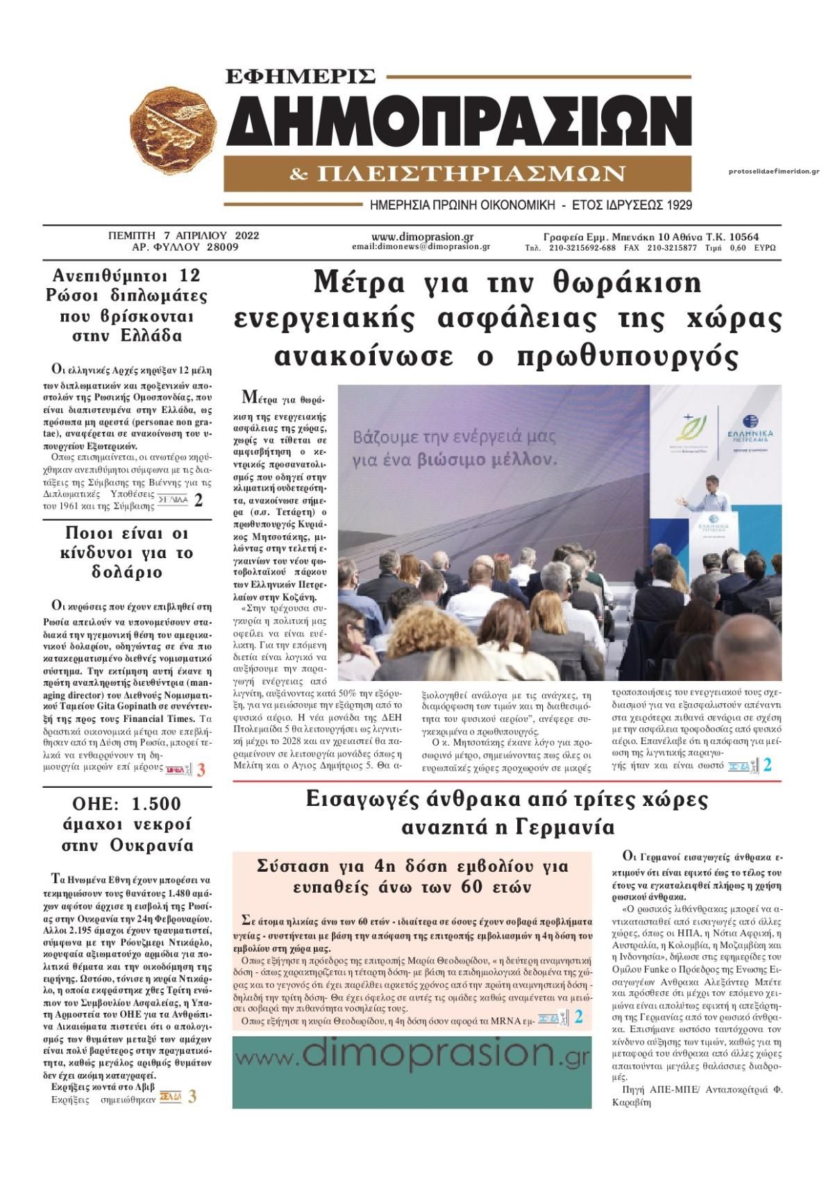 Οι οικονομικές εφημερίδες 7/4/2022 Σήφης Γαρυφαλάκης 06:09, Πέμπτη 07 Απριλίου 2022 Media Διαβάστε τα πρωτοσέλιδα από τις οικονομικές εφημερίδες… ΕΦΗΜΕΡΙΔΕΣ ΟΙΚΟΝΟΜΙΚΕΣ ΕΦΗΜΕΡΙΔΕΣ ΠΡΩΤΟΣΕΛΙΔΑ Μοιράσου το: Οι οικονομικές εφημερίδες 6/4/2022 Οι οικονομικές εφημερίδες 5/4/2022 Οι οικονομικές εφημερίδες 4/4/2022 σχολίασε κι εσύ (0 σχόλια) Ακολουθήστε το enikos.gr στο Google News και μάθετε πρώτοι όλες τις ειδήσεις Δείτε όλες τις τελευταίες ειδήσεις από την Ελλάδα και τον Κόσμο στο enikos.gr Ειδήσεις Ροή Ειδήσεων 1 ώρα πριν Νίκος Παππάς: Άφαντος παραμένει ο ευρωβουλευτής μετά την επίθεση στον Νίκο Γιαννόπουλο 44 λεπτά πριν Μητσοτάκης: Η Ελλάδα στηρίζει την Ουκρανία και θα υποστηρίξει οποιαδήποτε λύση της παρέχει χρηματοδοτική σταθερότητα 1 ώρα πριν Συναγερμός και στην Ελλάδα για τη «σούπερ γρίπη»: Πόσο σοβαρή είναι και ποιοι θεωρούνται πιο ευάλωτοι – 3 ειδικοί μιλούν στο enikos.gr 1 ώρα πριν Με το βλέμμα στραμμένο στις Σέρρες οι αγρότες – Ο χάρτης των μπλόκων στη Βόρεια Ελλάδα 3 ώρες πριν Ντόναλντ Τραμπ: Το διάγγελμα, η πτώση στις δημοσκοπήσεις και το… χάος που κληρονόμησε από τον Μπάιντεν 2 ώρες πριν Τα 4 ζώδια που λαμβάνουν ένα ισχυρό σημάδι από το σύμπαν – «Αποκαλύπτεται κάτι που μπορεί να αλλάξει τη ζωή μας» 3 ώρες πριν Η σύζυγός του παραπονιέται για τα χρήματα που της δίνει για ψώνια κάθε μήνα – «Λέει ότι νιώθει φτωχή και της είπα να βρει δουλειά» 1 ώρα πριν Αν κάνετε συνεχώς αυτά τα 8 πράγματα με τα κατοικίδιά σας, σας λείπει η ανθρώπινη επαφή 1 ημέρα πριν 20 χρόνια τα Χριστούγεννα ξεκινούν στα Public με μεγάλη ποικιλία σε δώρα! 1 λεπτό πριν Καμμένος σε Καρυστιανού: Σας πολεμάνε, γιατί σας φοβούνται – Η ανάγκη για Οξυγόνο θα επικρατήσει 3 λεπτά πριν Σύνοδος Κορυφής: Δεν θα φύγουμε χωρίς απόφαση, λένε Κόστα και Φον Ντερ Λάιεν – «Καμπανάκι» Ζελένσκι για τη χρηματοδότηση της Ουκρανίας 9 λεπτά πριν Άνδρας 30 ετών αποκαλύπτει πώς έχασε 45 κιλά σε 1 χρόνο: «Ήμουν νωθρός και ανασφαλής – Πλέον νιώθω ικανός για οτιδήποτε» 15 λεπτά πριν Ανατροπή για τα ενοίκια: Παράταση 3 μηνών για την υποχρεωτική πληρωμή μέσω τράπεζας 21 λεπτά πριν Φωκίδα: «Τώρα θα πάω στους αγγέλους»: Τα τελευταία λόγια του άνδρα που βρέθηκε απανθρακωμένος στο αυτοκίνητό του ENIKOS NETWORK Τι περιλαμβάνει το σχέδιο της ΕΕ για την καρδιαγγειακή υγεία-Οι προτάσεις της Ελληνικής Καρδιολογικής Εταιρείας Σύγχρονες τεχνικές αποκατάστασης χόνδρινων βλαβών & διατήρησης της άρθρωσης Ειδικό επιδοτούμενο πρόγραμμα κατάρτισης από ΔΥΠΑ και ΕΛΓΟ – ΔΗΜΗΤΡΑ: Έως αύριο οι ενστάσεις – Όσα πρέπει να γνωρίζετε Συντάξεις Ιανουαρίου 2026: Ποια ταμεία πιστώνουν σήμερα τα ποσά Χαρτογραφώντας το «σημείο χωρίς επιστροφή»: Για πρώτη φορά αποκαλύπτεται με λεπτομέρεια το ακανθώδες όριο της ατμόσφαιρας τ... Η Google καταργεί τη λειτουργία «dark web report» – Πώς θα μπορούν οι χρήστες να διαγράφουν τα δεδομένα τους περισσότερα 08:00 , Πέμπτη 18 Δεκεμβρίου 2025 Την Κυριακή με τη Realnews: Δωροεπιταγή 10€ Δωροεπιταγή αξίας 10€ για αγορές άνω των 60€ από τα πολυκαταστήματα FactoryOutlet H προσφορά ι... 07:50 , Πέμπτη 18 Δεκεμβρίου 2025 «Το σόι σου»: Backstage στα γυρίσματα για το εορταστικό επεισόδιο «Το σόι σου» φορά τα γιορτινά του για τα Χριστούγεννα και η Όλγα Λαφαζάνη, με την κάμερα του «... 07:36 , Πέμπτη 18 Δεκεμβρίου 2025 Οι αθλητικές μεταδόσεις 18/12/2025 – Πού θα δείτε τον αγώνα της ΑΕΚ με την Κραϊόβα για το Conference League Τα ματς ΑΕΚ – Ουνιβερσιτάτεα Κραϊόβα για το Conference League και Παναθηναϊκός – Χάποελ Τελ Αβ...