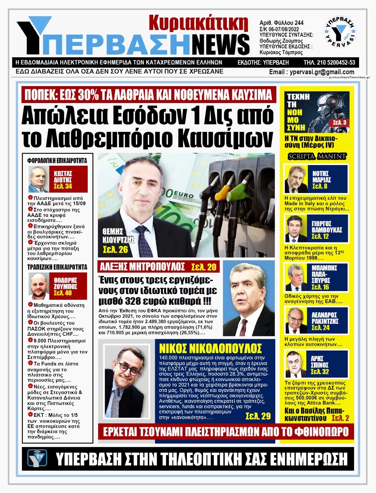 Οι οικονομικές εφημερίδες 7/8/2022 Σταύρος Ιωακείμ 07:33, Κυριακή 07 Αυγούστου 2022 Media Διαβάστε τα πρωτοσέλιδα από τις οικονομικές εφημερίδες, σήμερα 07/08/2022. ΕΦΗΜΕΡΙΔΕΣ ΟΙΚΟΝΟΜΙΚΕΣ ΕΦΗΜΕΡΙΔΕΣ ΠΡΩΤΟΣΕΛΙΔΑ Μοιράσου το: ΗΠΑ: Το φιλόδοξο νομοσχέδιο για την αντιμετώπιση της κλιματικής αλλαγής Κατερίνα Παπουτσάκη: Το οικογενειακό άλμπουμ από τις διακοπές της στη Σητεία Εφημερεύοντα φαρμακεία σε Αθήνα και Θεσσαλονίκη (7/8) σχολίασε κι εσύ (0 σχόλια) Ακολουθήστε το enikos.gr στο Google News και μάθετε πρώτοι όλες τις ειδήσεις Δείτε όλες τις τελευταίες ειδήσεις από την Ελλάδα και τον Κόσμο στο enikos.gr Ειδήσεις Ροή Ειδήσεων 29 λεπτά πριν Έρευνα MRB: Η πρόθεση ψήφου και τα σημαντικότερα προβλήματα – Οι «λέξεις» που εκφράζουν τους πολίτες 21 λεπτά πριν Αλαλούμ με τις πληρωμές στους αγρότες: Δεν καταβλήθηκε η Βασική Ενίσχυση, αλλά έγινε παρακράτηση της εισφοράς στον ΕΛΓΑ – Τι απαντά η κυβέρνηση 1 ώρα πριν Αγρότες: Πολύωροι αποκλεισμοί και σήμερα στα τελωνεία Ευζώνων, Νίκης, Προμαχώνα και Εξοχής 2 ώρες πριν Ρομπ Ράινερ: Το δείπνο με τους Ομπάμα που δεν έγινε ποτέ και νέα στοιχεία για τον «καβγά» στο πάρτι – Βίντεο με τον γιο του να περιφέρεται κοντά στο σπίτι της τραγωδίας 1 ώρα πριν Κυψέλη: Μαθητές κλείδωσαν τους καθηγητές μέσα στο Γυμνάσιο μετά την επίθεση με μαχαίρι 14 λεπτά πριν Τα 4 ζώδια που ξαναβρίσκουν τον εαυτό τους – «Μπαίνετε επιτέλους στην ουσία των πραγμάτων» 4 ώρες πριν Οπτική ψευδαίσθηση: Μόνο αν είσαι ο Σέρλοκ Χολμς θα βρεις τον σκύλο σε 15 δευτερόλεπτα 3 ώρες πριν Νεολιθικός σκύλος βρέθηκε προσεκτικά θαμμένος στον βυθό λίμνης – Δίπλα του βρέθηκε ένα στιλέτο 2 ώρες πριν Έλαβε τελεσίγραφο από τη σύντροφό του – «Μου είπε πως ή θα της κάνω πρόταση στα δύο χρόνια σχέσης ή θα με χωρίσει» 4 λεπτά πριν Λούκας Γιώρκας: «Έχω δεχθεί παρατραβηγμένες συμπεριφορές – Άφησα τον άνθρωπο να εκτονωθεί και συνέχισα» 8 λεπτά πριν Οι Νιου Γιορκ Νικς κατέκτησαν το NBA Cup – MVP ο Τζέιλεν Μπράνσον με 25 πόντους και 8 ασίστ 14 λεπτά πριν Τα 4 ζώδια που ξαναβρίσκουν τον εαυτό τους – «Μπαίνετε επιτέλους στην ουσία των πραγμάτων» 14 λεπτά πριν «Οδύσσεια»: Νέες εντυπωσιακές φωτογραφίες από το κινηματογραφικό έπος του Κρίστοφερ Νόλαν 19 λεπτά πριν Κλιμάκωση από την Παρασκευή προαναγγέλλουν οι αγρότες – «Ψίχουλα οι εξαγγελίες Χατζηδάκη» λέει ο Σωκράτης Αλειφτήρας ENIKOS NETWORK Αδενώματα Υπόφυσης: Μια πάθηση καλοήθης, αλλά όχι αθώα Χρόνια Αναπνευστικά Νοσήματα: 400.000 θάνατοι ετησίως στην Ευρώπη Ειδικό επιδοτούμενο πρόγραμμα κατάρτισης της ΔΥΠΑ για ανέργους: Αρχίζει σήμερα η υποβολή ενστάσεων-Ποιους αφορά Δώρο Χριστουγέννων και επιδόματα της ΔΥΠΑ: Σήμερα αρχίζει η προπληρωμή τους-Ποιους αφορά Σύγχρονος Νοστράδαμος: Προειδοποιεί για «μεγάλο γεγονός» τους επόμενους μήνες που θα συγκλονίσει τη Βρετανία και τον κόσμο Τεστ παρατηρητικότητας: Μπορείτε να βρείτε τις 3 διαφορές στις εικόνες με έναν πιγκουίνο σε 14 δευτερόλεπτα περισσότερα 09:08 , Τετάρτη 17 Δεκεμβρίου 2025 Τηλεθέαση (16/12): Ανακατατάξεις στην πρωινή ψυχαγωγική ζώνη Ξεκάθαρη πρωτιά στην τηλεθέαση για την «Super Κατερίνα» στο δυναμικό κοινό με ποσοστό 18,5%, α... 08:00 , Τετάρτη 17 Δεκεμβρίου 2025 Την Κυριακή με τη Realnews: Δωροεπιταγή 10€ Δωροεπιταγή αξίας 10€ για αγορές άνω των 60€ από τα πολυκαταστήματα FactoryOutlet H προσφορά ι... 07:00 , Τετάρτη 17 Δεκεμβρίου 2025 Την Κυριακή με τη Realnews: Ό,τι και αν αγοράσεις, σκανάρεις και κερδίζεις! Την Κυριακή με τη Realnews: Ό,τι και αν αγορά