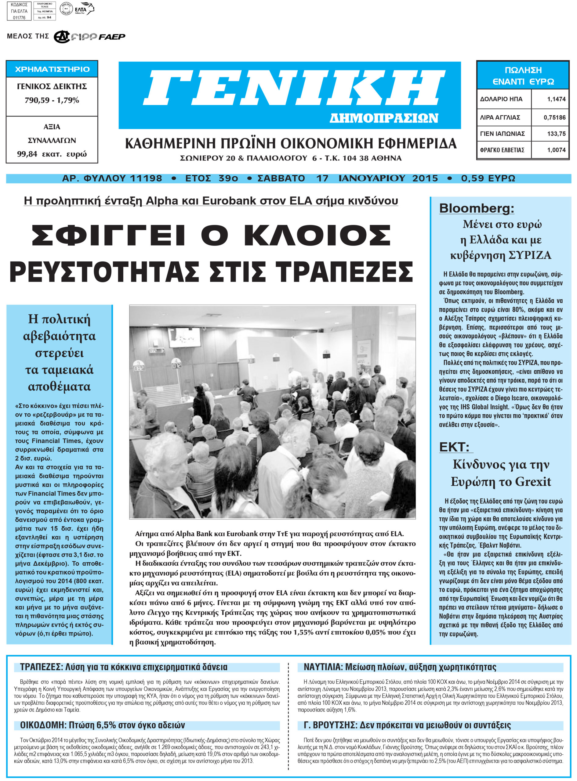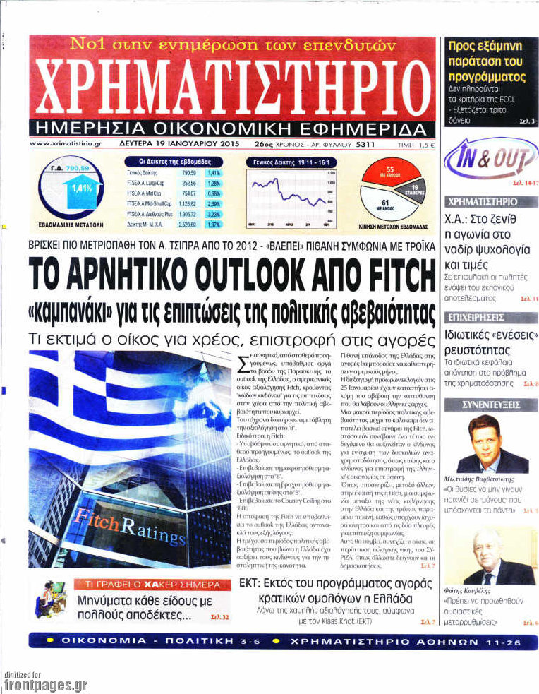 Οι οικονομικές εφημερίδες Enikos Newsroom 07:50, Δευτέρα 19 Ιανουαρίου 2015 Media Διαβάστε τα πρωτοσέλιδα των οικονομικών εφημερίδων: ΟΙΚΟΝΟΜΙΚΕΣ ΕΦΗΜΕΡΙΔΕΣ ΠΡΩΤΟΣΕΛΙΔΑ Μοιράσου το: σχολίασε κι εσύ (0 σχόλια) Ακολουθήστε το enikos.gr στο Google News και μάθετε πρώτοι όλες τις ειδήσεις Δείτε όλες τις τελευταίες ειδήσεις από την Ελλάδα και τον Κόσμο στο enikos.gr Ειδήσεις Ροή Ειδήσεων 45 λεπτά πριν Εκτός ευρωομάδας ΣΥΡΙΖΑ ο Νίκος Παππάς μετά την επίθεση στον δημοσιογράφο Νίκο Γιαννόπουλο – Η μήνυση και οι νέες δηλώσεις 1 ώρα πριν «Αγριεύουν» οι αγρότες: «Δεν συντρέχει λόγος συνάντησης με τον πρωθυπουργό» – Ώρα αποφάσεων στη σύσκεψη της Πέμπτης 1 ώρα πριν Κυψέλη: Χωρίς την οικογένειά της δίπλα της απολογήθηκε η 16χρονη – «Της είχε επιτεθεί κάποιος για να την βιάσει, φοβήθηκε και κυκλοφορούσε με μαχαίρι» 40 λεπτά πριν Politico: Το πρόβλημα της Ευρώπης δεν είναι το Βέλγιο αλλά ο Ντόναλντ Τραμπ 2 ώρες πριν Αλεξανδρούπολη: Πολυοργανική ανεπάρκεια λόγω υποσιτισμού η αιτία θανάτου του 3χρονου αγοριού 58 λεπτά πριν Μυστήριο με τεράστιες κυκλικές πέτρες 200 κιλών – Ανακαλύφθηκαν τυχαία κατά τη διάρκεια οδικών έργων και κανείς δεν ξέρει από πού προέρχονται 2 ώρες πριν Ύπνος: Ειδικός εξηγεί τον πραγματικό λόγο που ξυπνάτε στις 4 τα ξημερώματα – Ο ρόλος των ορμονών και του κιρκάδιου ρυθμού 3 ώρες πριν Αριθμολογία: Οι άνθρωποι που έχουν γεννηθεί αυτές τις 4 ημερομηνίες, είναι τρυφεροί και αγαπούν ανιδιοτελώς 15 ώρες πριν 20 χρόνια τα Χριστούγεννα ξεκινούν στα Public με μεγάλη ποικιλία σε δώρα! 11 λεπτά πριν Ελένη Κρίτα για το reunion του «Παρά Πέντε»: «Ήταν πραγματικά σαν να μην είχαμε χαθεί ποτέ» 24 λεπτά πριν Κύπελλο Ελλάδας: Αυτά είναι τα ζευγάρια στα νοκ-άουτ, οι διασταυρώσεις στους «8» κι ο δρόμος προς τον τελικό 40 λεπτά πριν Politico: Το πρόβλημα της Ευρώπης δεν είναι το Βέλγιο αλλά ο Ντόναλντ Τραμπ 45 λεπτά πριν Εκτός ευρωομάδας ΣΥΡΙΖΑ ο Νίκος Παππάς μετά την επίθεση στον δημοσιογράφο Νίκο Γιαννόπουλο – Η μήνυση και οι νέες δηλώσεις 46 λεπτά πριν Κύπελλο Ελλάδας: Η Μαρκό έστειλε τον ΠΑΟΚ στον Ολυμπιακό… μέσω Ατρόμητου ENIKOS NETWORK Αϋπνία: Το κόλπο που θα σας βοηθήσει να κοιμηθείτε απόψε – Είναι απλό και έχει αποτέλεσμα 2,6 εκατομμύρια πολίτες έχουν ήδη εμβολιαστεί κατά της γρίπης ΕΛΣΤΑΤ: Τι δείχνουν τα νέα στοιχεία για τις ηλεκτρονικές παραγγελίες των επιχειρήσεων ΚΕΠΕ: Οι 3 διακριτές συμβολές των ΜμΕ και της μεταποίησης στην ελληνική οικονομία Χαρτογραφώντας το «σημείο χωρίς επιστροφή»: Για πρώτη φορά αποκαλύπτεται με λεπτομέρεια το ακανθώδες όριο της ατμόσφαιρας τ... Η Google καταργεί τη λειτουργία «dark web report» – Πώς θα μπορούν οι χρήστες να διαγράφουν τα δεδομένα τους περισσότερα 22:24 , Τετάρτη 17 Δεκεμβρίου 2025 Το Σπίτι Δίπλα Στο Ποτάμι: Σε κίνδυνο η υγεία του Απόστολου – Τι θα δούμε απόψε “Το Σπίτι Δίπλα στο Ποτάμι” ξετυλίγει το νήμα της ζωής των πέντε αδελφών με καταισ... 21:14 , Τετάρτη 17 Δεκεμβρίου 2025 Παιχνίδια Εκδίκησης: Θα καταφέρει ο Χρήστος να κλονίσει την εμπιστοσύνη της Μάγιας απέναντι στον Άγη; Τα «Παιχνίδια Εκδίκησης» έρχονται απόψε στις 22:30, στον Αντ1, με το τελευταίο επεισόδιο της χ... 20:57 , Τετάρτη 17 Δεκεμβρίου 2025 Άγιος Έρωτας: Η Χλόη καταθέτει εναντίον του πατέρα της και ο Χάρης αποκαλύπτει στον Κλεάνθη ότι δεν είναι ο βιολογικός του πατέρας. Γεμάτο αποκαλύψεις είναι το νέο επεισόδιο της σειράς “Άγιος Έρωτας” απόψε στις 21:... 20:15 , Τετάρτη 17 Δεκεμβρίου 2025 Η ανακοίνωση της ΕΣΗΕΑ για την επίθεση το