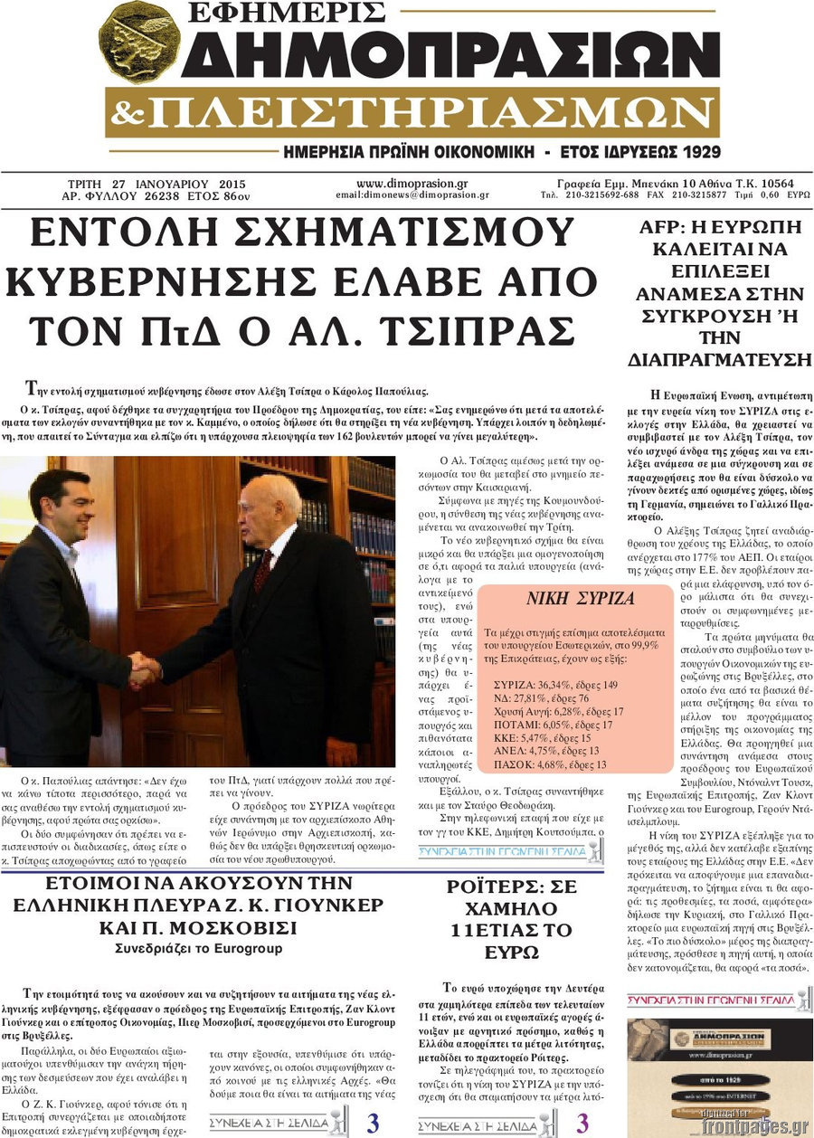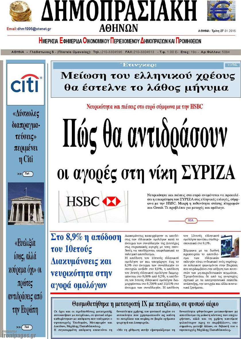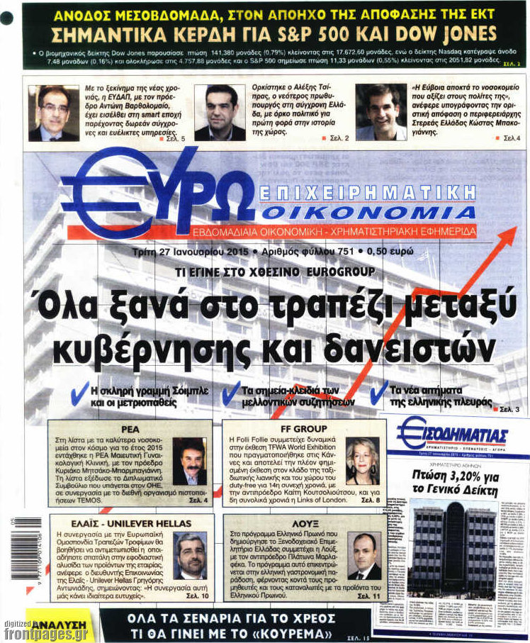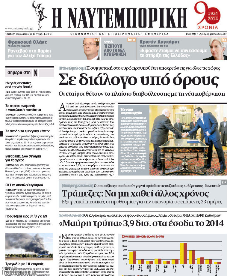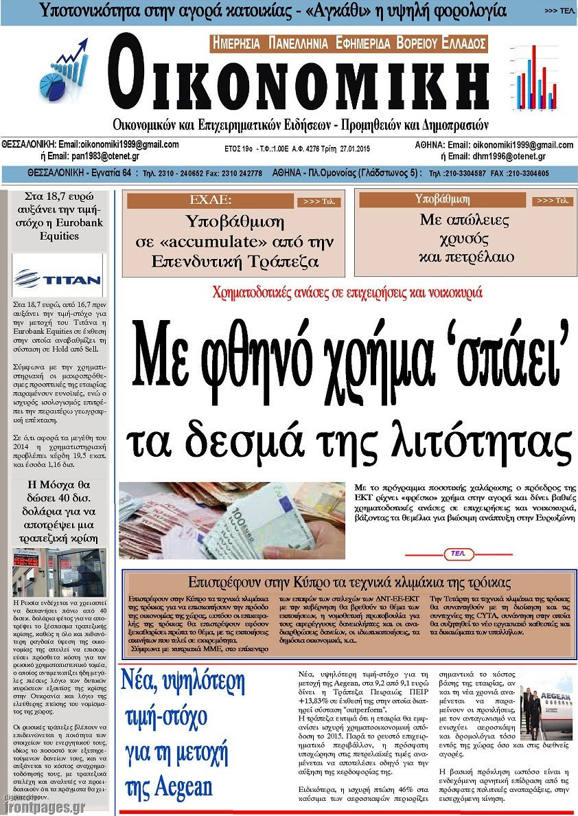 Οι οικονομικές εφημερίδες Enikos Newsroom 08:04, Τρίτη 27 Ιανουαρίου 2015 Media Διαβάστε τα πρωτοσέλιδα των οικονομικών εφημερίδων: ΕΦΗΜΕΡΙΔΕΣ ΟΙΚΟΝΟΜΙΚΕΣ ΕΦΗΜΕΡΙΔΕΣ ΠΡΩΤΟΣΕΛΙΔΑ Μοιράσου το: σχολίασε κι εσύ (0 σχόλια) Ακολουθήστε το enikos.gr στο Google News και μάθετε πρώτοι όλες τις ειδήσεις Δείτε όλες τις τελευταίες ειδήσεις από την Ελλάδα και τον Κόσμο στο enikos.gr Ειδήσεις Ροή Ειδήσεων 2 ώρες πριν Πούτιν: «Ανοησίες» και «υστερίες» οι ισχυρισμοί της Ευρώπης για πιθανή σύγκρουση με τη Ρωσία – «Κάνουν πλύση εγκεφάλου» 6 ώρες πριν Έρευνα MRB: Η πρόθεση ψήφου και τα σημαντικότερα προβλήματα – Οι «λέξεις» που εκφράζουν τους πολίτες 3 ώρες πριν Αμοργός: «Θα προσπαθήσω να το κάνω κάθε μέρα» – Ποιος είναι ο αγρότης που έστησε μόνος του το πρώτο μπλόκο στο νησί 47 λεπτά πριν Τραγωδία στην Αλεξανδρούπολη: Παιδάκι 3 ετών μεταφέρθηκε νεκρό από τη μητέρα του στο νοσοκομείο 1 ώρα πριν Συνάντηση Μητσοτάκη με την Κ.Ο. της ΝΔ: Οι αφίξεις των βουλευτών, τα γλυκά και τα «πηγαδάκια» 6 ώρες πριν Τα 4 ζώδια που ξαναβρίσκουν τον εαυτό τους – «Μπαίνετε επιτέλους στην ουσία των πραγμάτων» 7 ώρες πριν 20 χρόνια τα Χριστούγεννα ξεκινούν στα Public με μεγάλη ποικιλία σε δώρα! 5 ώρες πριν «Δεν είχα κλάψει από τότε που διαγνώστηκα με καρκίνο, ώσπου ένα τηλεφώνημα με έκανε να λυγίσω» – Η συγκλονιστική εξομολόγηση ενός άνδρα 4 ώρες πριν Τα 7 σπάνια χαρακτηριστικά που κάνουν κάποιους ανθρώπους ακαταμάχητους 2 λεπτά πριν Νέο επεισόδιο στην Εξεταστική ανάμεσα σε Κωνσταντοπούλου και Συρεγγέλα – Διακόπηκε προσωρινά η συνεδρίαση 8 λεπτά πριν Εξαφάνιση 33χρονου γιατρού στην Κρήτη: Για απάτη κατηγορείται ο ιδιωτικός ερευνητής που συνελήφθη 14 λεπτά πριν Εξεταστική για ΟΠΕΚΕΠΕ-Μυλωνάκης: Διαχρονικές, διακομματικές οι παθογένειες – Τι είπε για Μπουκώρο και Βάρρα 20 λεπτά πριν Παναθηναϊκός: Θέλει τον Κέπα της Άρσεναλ δανεικό για 6 μήνες 26 λεπτά πριν Το Λαϊκό Λαχείο στον ρυθμό των Χριστουγέννων: Μοιράζει μέχρι και 1.000.000 ευρώ στην ειδική κλήρωση της Παρασκευής 19 Δεκεμβρίου ENIKOS NETWORK 5 πράγματα που αποφεύγει γαστρεντερολόγος για να μειώσει τον κίνδυνο καρκίνου του εντέρου Ανησυχητική αύξηση της υπέρτασης στα παιδιά – Πώς θα τα προστατέψουμε; ΕΛΕΤΑΕΝ: Πόσα χρήματα θα δοθούν σε δήμους και νοικοκυριά από τις ΑΠΕ «IRIS Παντού»: Στην κορυφή της Ευρώπης η Ελλάδα με 120 εκατ. ευρώ συναλλαγές το 2025 – Η σύγκριση με τις άλλες χώρες της Ευ... Σύγχρονος Νοστράδαμος: Προειδοποιεί για «μεγάλο γεγονός» τους επόμενους μήνες που θα συγκλονίσει τη Βρετανία και τον κόσμο Τεστ παρατηρητικότητας: Μπορείτε να βρείτε τις 3 διαφορές στις εικόνες με έναν πιγκουίνο σε 14 δευτερόλεπτα περισσότερα 12:35 , Τετάρτη 17 Δεκεμβρίου 2025 Μίρκα Παπακωνσταντίνου: «Δεν ήμουν αισιόδοξη για τα νούμερα – Είμαι ρεαλίστρια» Στα γυρίσματα του εορταστικού επεισοδίου της αγαπημένης σειράς “Το Σόι Σου”, βρέθηκε η κάμερα ... 12:12 , Τετάρτη 17 Δεκεμβρίου 2025 Ακούστε την εκπομπή του Νίκου Χατζηνικολάου 17/12/2025 Ακούστε την εκπομπή του Νίκου Χατζηνικολάου στον ραδιοφωνικό σταθμό RealFm 97,8, την Τετάρτη 1... 11:35 , Τετάρτη 17 Δεκεμβρίου 2025 Home Alone: Το σπίτι της ταινίας θα ανακαινιστεί – Επιστροφή στην αισθητική της δεκαετίας του ’90 Οι νέοι ιδιοκτήτες του πραγματικού σπιτιού που παρουσιάζεται στην κλασική ταινία του 1990 «Hom... 11:25 , Τετάρτη 17 Δεκεμβρίου 2025 Grand Hotel: Απόψε το τελευταίο επεισόδιο της χρονιάς – Όλα τα μυστικά μένουν εδώ Το τελευταίο επεισόδιο της χρονιάς της σειράς «Grand Hotel» θα 