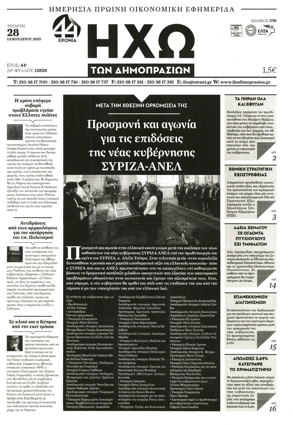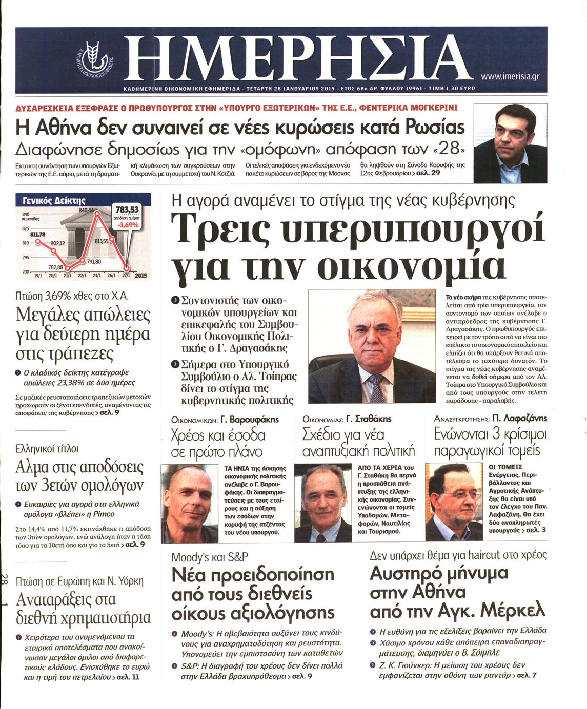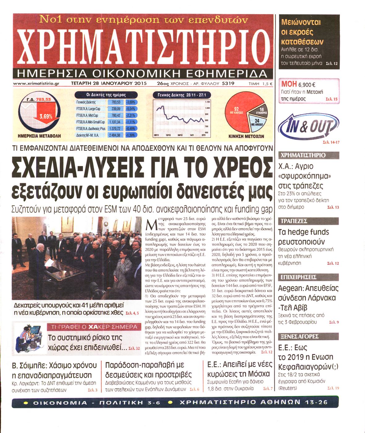 Οι oικονομικές εφημερίδες Enikos Newsroom 07:51, Τετάρτη 28 Ιανουαρίου 2015 Media Διαβάστε τα πρωτοσέλιδα των οικονομικών εφημερίδων: ΕΦΗΜΕΡΙΔΕΣ ΟΙΚΟΝΟΜΙΚΕΣ ΕΦΗΜΕΡΙΔΕΣ ΠΡΩΤΟΣΕΛΙΔΑ Μοιράσου το: σχολίασε κι εσύ (0 σχόλια) Ακολουθήστε το enikos.gr στο Google News και μάθετε πρώτοι όλες τις ειδήσεις Δείτε όλες τις τελευταίες ειδήσεις από την Ελλάδα και τον Κόσμο στο enikos.gr Ειδήσεις Ροή Ειδήσεων 3 ώρες πριν Νίκος Παππάς: «Είχα λάθος αντίδραση στη δική του δράση-πρόκληση – Δεν θα αναλύσω σε τι κατάσταση ήταν ο δημοσιογράφος» 58 λεπτά πριν Νίκος Γιαννόπουλος για Νίκο Παππά: «Είναι επικίνδυνος, θα του κάνω ασφαλιστικά» – ΒΙΝΤΕΟ 2 ώρες πριν Αλεξανδρούπολη: Πολυοργανική ανεπάρκεια λόγω υποσιτισμού η αιτία θανάτου του 3χρονου αγοριού 2 ώρες πριν Δημοσκόπηση Pulse: Η διαφορά ΝΔ-ΠΑΣΟΚ – Με ποια κριτήρια θα ψηφίσουν οι πολίτες στις επόμενες εκλογές 4 ώρες πριν Συγκλονιστικό βίντεο: Τρόμος για τουρίστες που σώθηκαν την τελευταία στιγμή από λεωφορείο που κατρακυλούσε σε φαράγγι 1 ώρα πριν Ύπνος: Ειδικός εξηγεί τον πραγματικό λόγο που ξυπνάτε στις 4 τα ξημερώματα – Ο ρόλος των ορμονών και του κιρκάδιου ρυθμού 2 ώρες πριν Αριθμολογία: Οι άνθρωποι που έχουν γεννηθεί αυτές τις 4 ημερομηνίες, είναι τρυφεροί και αγαπούν ανιδιοτελώς 3 ώρες πριν Καθρέφτες μπάνιου: Το απλό κόλπο με την οδοντόκρεμα για να μην θολώνουν 14 ώρες πριν 20 χρόνια τα Χριστούγεννα ξεκινούν στα Public με μεγάλη ποικιλία σε δώρα! 5 δευτερόλεπτα πριν Εκτός ευρωομάδας ΣΥΡΙΖΑ ο Νίκος Παππάς μετά την επίθεση στον δημοσιογράφο Νίκο Γιαννόπουλο – Η μήνυση και οι νέες δηλώσεις 21 δευτερόλεπτα πριν Κύπελλο Ελλάδας: Η Μαρκό έστειλε τον ΠΑΟΚ στον Ολυμπιακό… μέσω Ατρόμητου 4 λεπτά πριν Άκης Σκέρτσος: Μήνυση και αγωγή κατά της Ζωής Κωνσταντοπούλου θα καταθέσει ο υπουργός Επικρατείας 13 λεπτά πριν Μυστήριο με τεράστιες κυκλικές πέτρες 200 κιλών – Ανακαλύφθηκαν τυχαία κατά τη διάρκεια οδικών έργων και κανείς δεν ξέρει από πού προέρχονται 16 λεπτά πριν Τάκης Ζαχαράτος και Έλενα Παπαρίζου μαζί στη σκηνή – Πότε κάνουν πρεμιέρα; ENIKOS NETWORK Αϋπνία: Το κόλπο που θα σας βοηθήσει να κοιμηθείτε απόψε – Είναι απλό και έχει αποτέλεσμα 2,6 εκατομμύρια πολίτες έχουν ήδη εμβολιαστεί κατά της γρίπης ΚΕΠΕ: Οι 3 διακριτές συμβολές των ΜμΕ και της μεταποίησης στην ελληνική οικονομία Χειμερινές εκπτώσεις: Πότε αρχίζουν και τι πρέπει να προσέξουν οι καταναλωτές Χαρτογραφώντας το «σημείο χωρίς επιστροφή»: Για πρώτη φορά αποκαλύπτεται με λεπτομέρεια το ακανθώδες όριο της ατμόσφαιρας τ... Η Google καταργεί τη λειτουργία «dark web report» – Πώς θα μπορούν οι χρήστες να διαγράφουν τα δεδομένα τους περισσότερα 22:24 , Τετάρτη 17 Δεκεμβρίου 2025 Το Σπίτι Δίπλα Στο Ποτάμι: Σε κίνδυνο η υγεία του Απόστολου – Τι θα δούμε απόψε “Το Σπίτι Δίπλα στο Ποτάμι” ξετυλίγει το νήμα της ζωής των πέντε αδελφών με καταισ... 21:14 , Τετάρτη 17 Δεκεμβρίου 2025 Παιχνίδια Εκδίκησης: Θα καταφέρει ο Χρήστος να κλονίσει την εμπιστοσύνη της Μάγιας απέναντι στον Άγη; Τα «Παιχνίδια Εκδίκησης» έρχονται απόψε στις 22:30, στον Αντ1, με το τελευταίο επεισόδιο της χ... 20:57 , Τετάρτη 17 Δεκεμβρίου 2025 Άγιος Έρωτας: Η Χλόη καταθέτει εναντίον του πατέρα της και ο Χάρης αποκαλύπτει στον Κλεάνθη ότι δεν είναι ο βιολογικός του πατέρας. Γεμάτο αποκαλύψεις είναι το νέο επεισόδιο της σειράς “Άγιος Έρωτας” απόψε στις 21:... 20:15 , Τετάρτη 17 Δεκεμβρίου 2025 Η ανακοίνωση της ΕΣΗΕΑ για την επίθεση του Ευρωβουλευτή Νίκου Παππά κατά του δημ