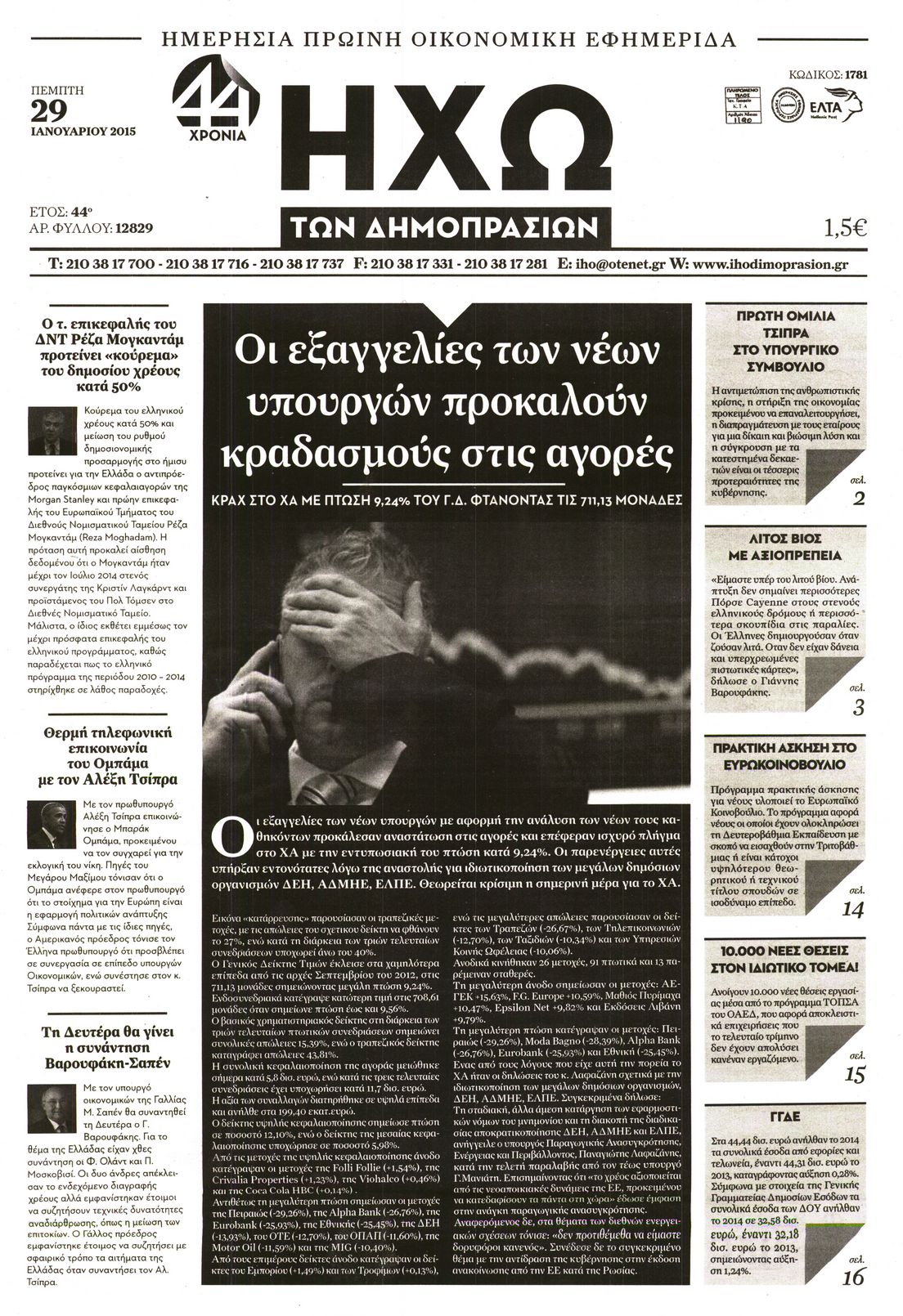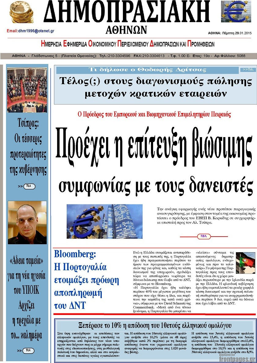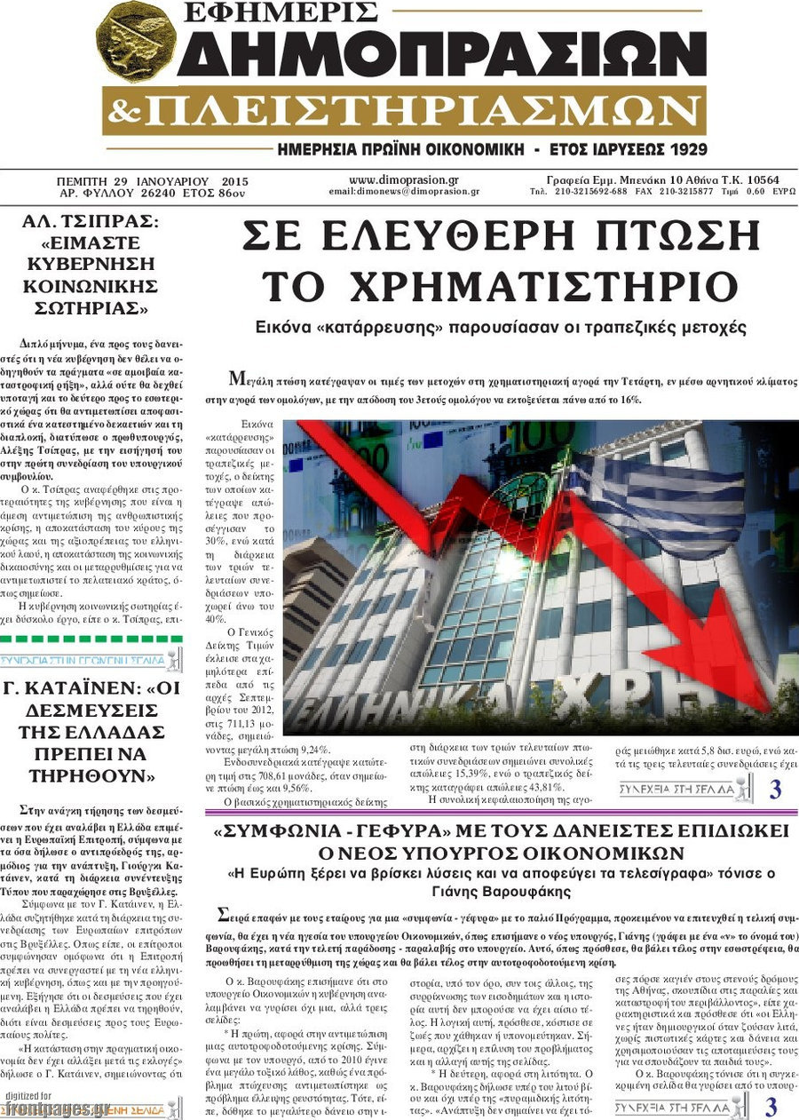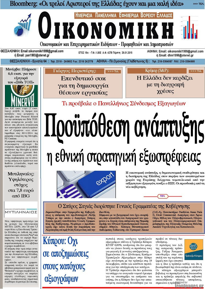 Οι oικονομικές εφημερίδες Enikos Newsroom 07:52, Πέμπτη 29 Ιανουαρίου 2015 Media Διαβάστε τα πρωτοσέλιδα των οικονομικών εφημερίδων: ΕΦΗΜΕΡΙΔΕΣ ΟΙΚΟΝΟΜΙΚΕΣ ΕΦΗΜΕΡΙΔΕΣ ΠΡΩΤΟΣΕΛΙΔΑ Μοιράσου το: σχολίασε κι εσύ (0 σχόλια) Ακολουθήστε το enikos.gr στο Google News και μάθετε πρώτοι όλες τις ειδήσεις Δείτε όλες τις τελευταίες ειδήσεις από την Ελλάδα και τον Κόσμο στο enikos.gr Ειδήσεις Ροή Ειδήσεων 35 λεπτά πριν Πώς στήθηκε η επιχείρηση «Ίπαλλος» που οδήγησε στη σύλληψη του «Έλληνα Εσκομπάρ» – «Ο πόλεμος ενάντια στους εμπόρους ναρκωτικών θα συνεχιστεί» 20 λεπτά πριν Δίκη Χρυσής Αυγής: Την ενοχή και των 42 κατηγορουμένων ζητά η εισαγγελέας 40 λεπτά πριν Κυψέλη: Στη φυλακή η 16χρονη που μαχαίρωσε συμμαθήτριά της 3 ώρες πριν Αμοργός: «Θα προσπαθήσω να το κάνω κάθε μέρα» – Ποιος είναι ο αγρότης που έστησε μόνος του το πρώτο μπλόκο στο νησί 2 ώρες πριν Τραγωδία στην Αλεξανδρούπολη: Παιδάκι 3 ετών μεταφέρθηκε νεκρό από τη μητέρα του στο νοσοκομείο 45 λεπτά πριν Τα 3 ζώδια που θα δουν τη ζωή τους να αλλάζει ριζικά το 2026 – «Όλα γίνονται καλύτερα σταδιακά» 6 ώρες πριν «Δεν είχα κλάψει από τότε που διαγνώστηκα με καρκίνο, ώσπου ένα τηλεφώνημα με έκανε να λυγίσω» – Η συγκλονιστική εξομολόγηση ενός άνδρα 2 ώρες πριν Ο σπάνιος σεισμός που έλυσε τα χέρια των επιστημόνων – Αποκάλυψε ακριβώς όσα αναζητούσαν 7 ώρες πριν 20 χρόνια τα Χριστούγεννα ξεκινούν στα Public με μεγάλη ποικιλία σε δώρα! 7 λεπτά πριν Θεσσαλονίκη: Ακυρώνονται τρεις παραστάσεις του ΚΘΒΕ λόγω στάσης εργασίας των εργαζομένων 13 λεπτά πριν Τραγωδία στην Αχαΐα: 48χρονος κατέρρευσε στο κυνήγι μπροστά στα μάτια του πατέρα του 20 λεπτά πριν Δίκη Χρυσής Αυγής: Την ενοχή και των 42 κατηγορουμένων ζητά η εισαγγελέας 21 λεπτά πριν Μαρκέλλα Γιαννάτου: «Είμαι κοντά στα 14 χρόνια σε ψυχανάλυση – Είχα αρχίσει να έχω κρίσεις άγχους, νόμιζα ότι θα πεθάνω» 28 λεπτά πριν Υπουργείο Αγροτικής Ανάπτυξης: Πώς θα γίνει η πληρωμή αγροτεμαχίων έως 20 στρέμματα παρά τα ζητήματα ΚΑΕΚ ENIKOS NETWORK Σοβαροί κίνδυνοι από τη λάθος χορήγηση φαρμάκου για τις αιμορραγίες-Συστάσεις προς τους γιατρούς 5 πράγματα που αποφεύγει γαστρεντερολόγος για να μειώσει τον κίνδυνο καρκίνου του εντέρου Eurostat: Κάτω από την αρχική εκτίμηση της Υπηρεσίας ο πληθωρισμός στην Ελλάδα τον Νοέμβριο του 2025 – Tα στοιχεία για την ... Συντάξεις Ιανουαρίου 2026: Σε ποιους θα πιστωθούν την Πέμπτη τα χρήματα και τι αυξήσεις θα δοθούν – Δείτε αναλυτικά παραδεί... Χαρτογραφώντας το «σημείο χωρίς επιστροφή»: Για πρώτη φορά αποκαλύπτεται με λεπτομέρεια το ακανθώδες όριο της ατμόσφαιρας τ... Η Google καταργεί τη λειτουργία «dark web report» – Πώς θα μπορούν οι χρήστες να διαγράφουν τα δεδομένα τους περισσότερα 12:35 , Τετάρτη 17 Δεκεμβρίου 2025 Μίρκα Παπακωνσταντίνου: «Δεν ήμουν αισιόδοξη για τα νούμερα – Είμαι ρεαλίστρια» Στα γυρίσματα του εορταστικού επεισοδίου της αγαπημένης σειράς “Το Σόι Σου”, βρέθηκε η κάμερα ... 12:12 , Τετάρτη 17 Δεκεμβρίου 2025 Ακούστε την εκπομπή του Νίκου Χατζηνικολάου 17/12/2025 Ακούστε την εκπομπή του Νίκου Χατζηνικολάου στον ραδιοφωνικό σταθμό RealFm 97,8, την Τετάρτη 1... 11:35 , Τετάρτη 17 Δεκεμβρίου 2025 Home Alone: Το σπίτι της ταινίας θα ανακαινιστεί – Επιστροφή στην αισθητική της δεκαετίας του ’90 Οι νέοι ιδιοκτήτες του πραγματικού σπιτιού που παρουσιάζεται στην κλασική ταινία του 1990 «Hom... 11:25 , Τετάρτη 17 Δεκεμβρίου 2025 Grand Hotel: Απόψε το τελευταίο επεισόδιο της χρονιάς – Όλα τα μυστικά μένουν εδώ Το τελευταίο επεισό