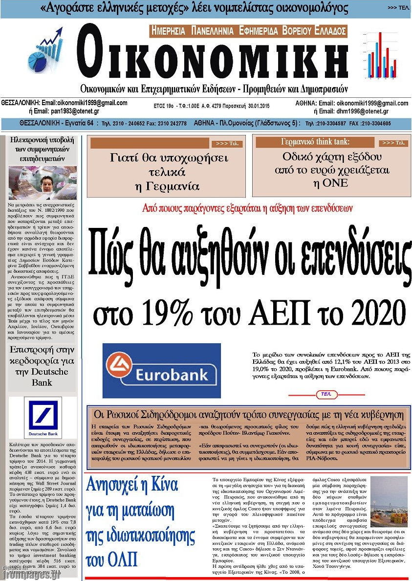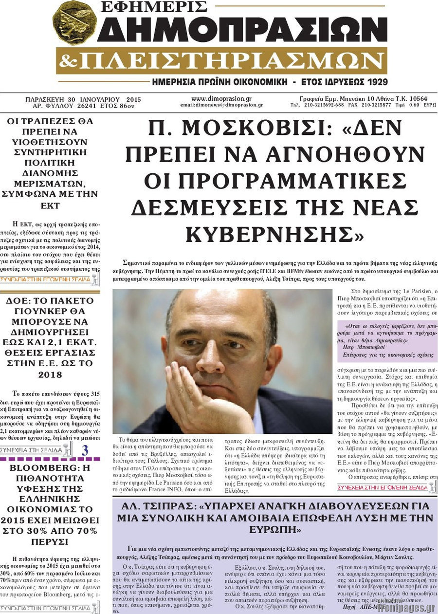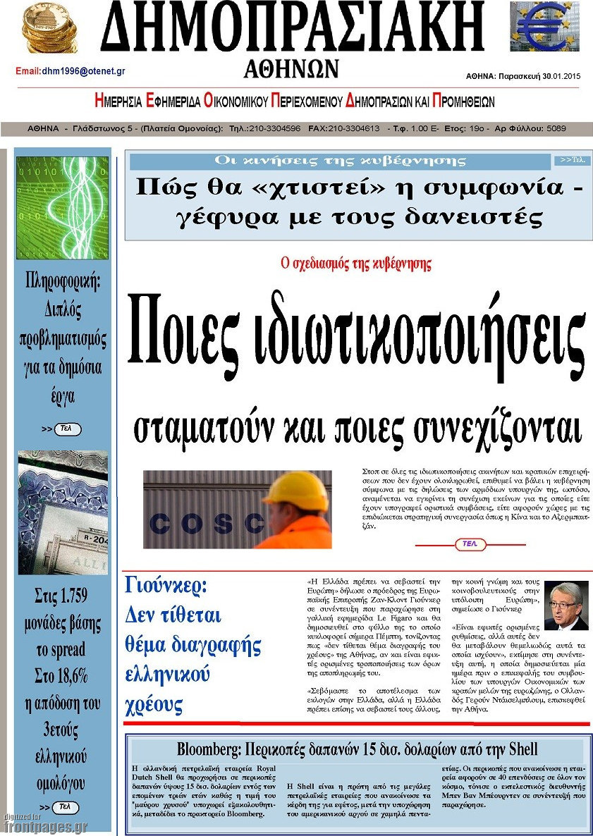 Οι οικονομικές εφημερίδες Enikos Newsroom 07:36, Παρασκευή 30 Ιανουαρίου 2015 Media Διαβάστε τα πρωτοσέλιδα των οικονομικών εφημερίδων: ΟΙΚΟΝΟΜΙΚΕΣ ΕΦΗΜΕΡΙΔΕΣ ΠΡΩΤΟΣΕΛΙΔΑ Μοιράσου το: σχολίασε κι εσύ (0 σχόλια) Ακολουθήστε το enikos.gr στο Google News και μάθετε πρώτοι όλες τις ειδήσεις Δείτε όλες τις τελευταίες ειδήσεις από την Ελλάδα και τον Κόσμο στο enikos.gr Ειδήσεις Ροή Ειδήσεων 20 λεπτά πριν ΣΥΡΙΖΑ: Διέγραψε τον ευρωβουλευτή Νίκο Παππά μετά την μήνυση δημοσιογράφου για ξυλοδαρμό 1 ώρα πριν Πώς στήθηκε η επιχείρηση «Ίπαλλος» που οδήγησε στη σύλληψη του «Έλληνα Εσκομπάρ» – «Ο πόλεμος ενάντια στους εμπόρους ναρκωτικών θα συνεχιστεί» 1 ώρα πριν Δίκη Χρυσής Αυγής: Την ενοχή και των 42 κατηγορουμένων ζητά η εισαγγελέας 1 ώρα πριν Κυψέλη: Στη φυλακή η 16χρονη που μαχαίρωσε συμμαθήτριά της 4 ώρες πριν Αμοργός: «Θα προσπαθήσω να το κάνω κάθε μέρα» – Ποιος είναι ο αγρότης που έστησε μόνος του το πρώτο μπλόκο στο νησί 1 ώρα πριν Τα 3 ζώδια που θα δουν τη ζωή τους να αλλάζει ριζικά το 2026 – «Όλα γίνονται καλύτερα σταδιακά» 6 ώρες πριν «Δεν είχα κλάψει από τότε που διαγνώστηκα με καρκίνο, ώσπου ένα τηλεφώνημα με έκανε να λυγίσω» – Η συγκλονιστική εξομολόγηση ενός άνδρα 2 ώρες πριν Ο σπάνιος σεισμός που έλυσε τα χέρια των επιστημόνων – Αποκάλυψε ακριβώς όσα αναζητούσαν 8 ώρες πριν 20 χρόνια τα Χριστούγεννα ξεκινούν στα Public με μεγάλη ποικιλία σε δώρα! 3 λεπτά πριν Μαργαρίτα Θεοδωράκη για Γιώργο Χατζιδάκι: Προσβλητικό το εξώδικο – Ο Μίκης έγραψε «απαγορεύεται το απαγορεύεται» 9 λεπτά πριν Ρόδος: Ανήλικος που βρισκόταν σε σχολική εκδρομή μεταφέρθηκε μεθυσμένος στο νοσοκομείο – 2 συλλήψεις 15 λεπτά πριν Γέννησε η Ευάννα Ζουμπούρογλου: «Είμαστε και οι δύο πολύ καλά – Είναι η πιο όμορφη όλου του κόσμου» 20 λεπτά πριν ΣΥΡΙΖΑ: Διέγραψε τον ευρωβουλευτή Νίκο Παππά μετά την μήνυση δημοσιογράφου για ξυλοδαρμό 22 λεπτά πριν Απολαυστικό «Ρουκ…Σουτ» με παίκτες του Παναθηναϊκού AKTOR – ΒΙΝΤΕΟ ENIKOS NETWORK Γιατί αναζητούμε τα Χριστούγεννα όλο και νωρίτερα; Ποιοι οι ψυχολογικοί και οι συναισθηματικοί λόγοι Σοβαροί κίνδυνοι από τη λάθος χορήγηση φαρμάκου για τις αιμορραγίες-Συστάσεις προς τους γιατρούς Δάνεια σε ελβετικό φράγκο: Αύριο η κατάθεση της τροπολογίας στη Βουλή – Όλες οι λεπτομέρειες Επίδομα παιδιού: Πότε θα δοθεί η τελευταία δόση για το 2025 από τον ΟΠΕΚΑ και τι πρέπει να γνωρίζετε Χαρτογραφώντας το «σημείο χωρίς επιστροφή»: Για πρώτη φορά αποκαλύπτεται με λεπτομέρεια το ακανθώδες όριο της ατμόσφαιρας τ... Η Google καταργεί τη λειτουργία «dark web report» – Πώς θα μπορούν οι χρήστες να διαγράφουν τα δεδομένα τους περισσότερα 12:35 , Τετάρτη 17 Δεκεμβρίου 2025 Μίρκα Παπακωνσταντίνου: «Δεν ήμουν αισιόδοξη για τα νούμερα – Είμαι ρεαλίστρια» Στα γυρίσματα του εορταστικού επεισοδίου της αγαπημένης σειράς “Το Σόι Σου”, βρέθηκε η κάμερα ... 12:12 , Τετάρτη 17 Δεκεμβρίου 2025 Ακούστε την εκπομπή του Νίκου Χατζηνικολάου 17/12/2025 Ακούστε την εκπομπή του Νίκου Χατζηνικολάου στον ραδιοφωνικό σταθμό RealFm 97,8, την Τετάρτη 1... 11:35 , Τετάρτη 17 Δεκεμβρίου 2025 Home Alone: Το σπίτι της ταινίας θα ανακαινιστεί – Επιστροφή στην αισθητική της δεκαετίας του ’90 Οι νέοι ιδιοκτήτες του πραγματικού σπιτιού που παρουσιάζεται στην κλασική ταινία του 1990 «Hom... 11:25 , Τετάρτη 17 Δεκεμβρίου 2025 Grand Hotel: Απόψε το τελευταίο επεισόδιο της χρονιάς – Όλα τα μυστικά μένουν εδώ Το τελευταίο επεισόδιο της χρονιάς της σειράς «Grand Hotel» θα προβληθεί απόψε στις 21:00.