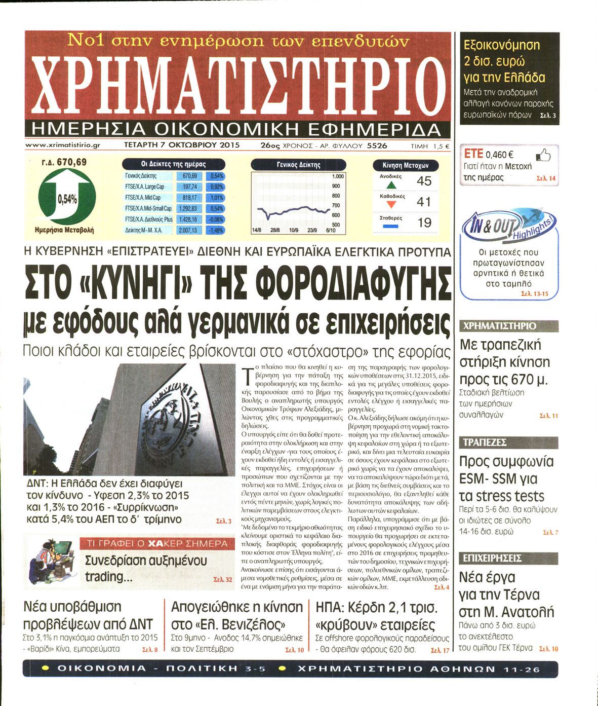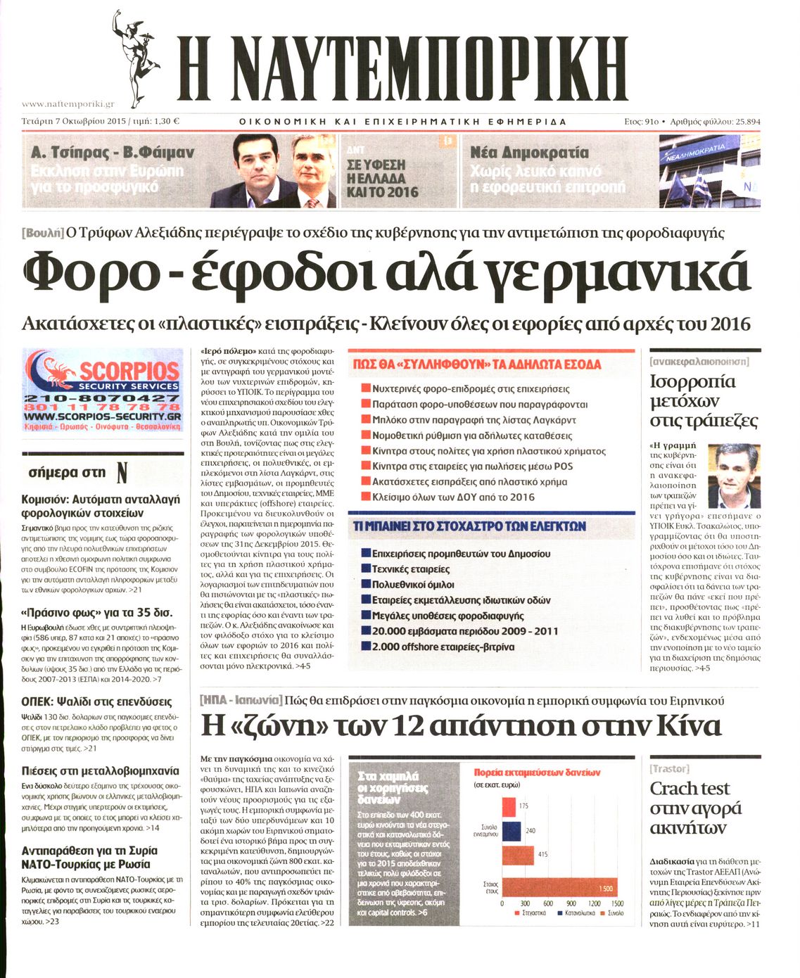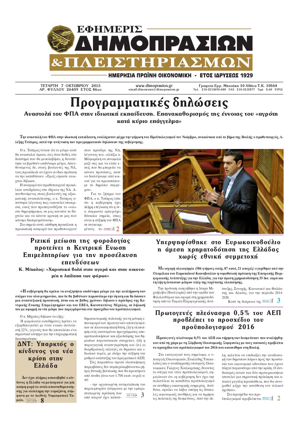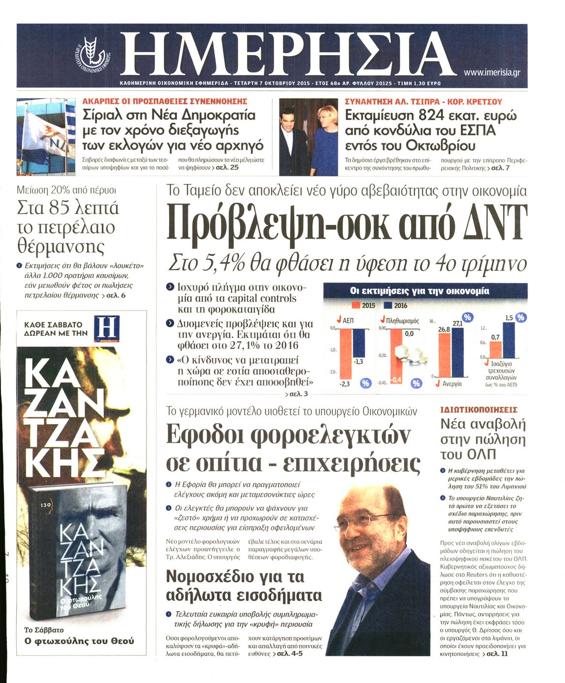 Οι οικονομικές εφημερίδες 7/10/2015 Enikos Newsroom 06:27, Τετάρτη 07 Οκτωβρίου 2015 Media Διαβάστε τα σημερινά πρωτοσέλιδα των οικονομικών εφημερίδων: ΟΙΚΟΝΟΜΙΚΕΣ ΕΦΗΜΕΡΙΔΕΣ ΠΡΩΤΟΣΕΛΙΔΑ Μοιράσου το: σχολίασε κι εσύ (0 σχόλια) Ακολουθήστε το enikos.gr στο Google News και μάθετε πρώτοι όλες τις ειδήσεις Δείτε όλες τις τελευταίες ειδήσεις από την Ελλάδα και τον Κόσμο στο enikos.gr Ειδήσεις Ροή Ειδήσεων 1 ώρα πριν Μεσόγειος: Η διαδρομή του ρωσικού τάνκερ «Qendil» και η στοχευμένη επίθεση της Ουκρανίας με drone – Ο Πούτιν προειδοποίησε για αντίποινα 1 ώρα πριν Αττική: Θρίλερ με νεκρό βρέφος 5 μηνών – Κοιμόταν στο ίδιο κρεβάτι με τους γονείς του 2 ώρες πριν Από το Ορμένιο ως τα Μάλγαρα κι από τη Σιάτιστα μέχρι τη Νίκαια: Μπλόκα σε όλη την Ελλάδα – Το Σάββατο ανοίγουν τα διόδια οι αγρότες 2 ώρες πριν «Έλληνας Εσκομπάρ»: Φωτογραφίες με τους 4 τόνους κοκαΐνης που κατασχέθηκαν από το σκάφος «Ουρανία» 4 ώρες πριν Πούτιν: Σαρκαστικά μηνύματα, παράπονα και απρόοπτα στη συνέντευξη Τύπου – Η πρόταση γάμου on air και οι ερωτήσεις για τα αγγούρια και τους… εξωγήινους 3 ώρες πριν Τα 5 ζώδια που ευνοούνται στην ερωτική ζωή τους την επόμενη εβδομάδα – «Η ενέργεια του Αιγόκερου φέρνει αγάπη και σταθερότητα» 7 ώρες πριν Ειδικός μοιράζεται 6 κόλπα για να διατηρείστε σε φόρμα με πάνω από 40 ώρες εργασίας την εβδομάδα: «Προπονηθείτε πριν από τη δουλειά, όχι μετά» 4 ώρες πριν Αυτό το έξυπνο μαθηματικό κόλπο θα μπορούσε να αλλάξει τον τρόπο με τον οποίο οι επιστήμονες μελετούν τους σεισμούς 2 ώρες πριν Κουίζ για την παλιά Αθήνα: Αναγνωρίζετε την περιοχή; Έχετε περάσει 100% από εκεί 3 λεπτά πριν ΗΠΑ: Νέος γύρος συνομιλιών στο Μαϊάμι – Σήμερα συνάντηση Γουίτκοφ με Ουκρανούς και Ευρωπαίους διαπραγματευτές, το Σαββατοκύριακο με Ρώσους αξιωματούχους 7 λεπτά πριν Νέα σειρά γραμματοσήμων «ΕΛΠΙΔΑ-Μαριάννα Β. Βαρδινογιάννη» 11 λεπτά πριν Ιταλία: Με εισιτήριο από την 1η Φεβρουαρίου 2026 η πρόσβαση στη Φοντάνα ντι Τρέβι – Πόσο θα κοστίζει 19 λεπτά πριν Μήπως έχετε χάσει τον εαυτό σας στη σχέση σας; 7 «αθόρυβες» υποχωρήσεις που μάλλον κάνατε, χωρίς να το συνειδητοποιήσετε 25 λεπτά πριν Λάρισα: Ασθενοφόρο έπεσε πάνω σε κλούβα της ΕΛ.ΑΣ στον Πλατύκαμπο – Τραυματίστηκε ο συνοδηγός – ΒΙΝΤΕΟ ENIKOS NETWORK «Η σούπερ» γρίπη εξαπλώνεται στην Ευρώπη-Στοιχεία από το ECDC για την αποτελεσματικότητα του εμβολίου ΕΛΣΤΑΤ: Αύξηση κατά 1,7% των επαγγελματιών υγείας το 2024 Προκήρυξη ΑΣΕΠ για 397 μόνιμες προσλήψεις στο Δημόσιο: Βγήκαν τα προσωρινά αποτελέσματα – Πότε αρχίζει η υποβολή ενστάσεων Η απάντηση της κυβέρνησης στα αιτήματα των αγροτών: 16 έχουν ικανοποιηθεί, 4 βρίσκονται υπό επεξεργασία και 7 δεν είναι εφι... Χαρτογραφώντας το «σημείο χωρίς επιστροφή»: Για πρώτη φορά αποκαλύπτεται με λεπτομέρεια το ακανθώδες όριο της ατμόσφαιρας τ... Η Google καταργεί τη λειτουργία «dark web report» – Πώς θα μπορούν οι χρήστες να διαγράφουν τα δεδομένα τους περισσότερα 18:11 , Παρασκευή 19 Δεκεμβρίου 2025 Το σόι σου: Ο Άρης έρχεται στην Ελλάδα για τις γιορτές των Χριστουγέννων – Τι θα δούμε στο αποψινό εορταστικό επεισόδιο Ένα απολαυστικό, εορταστικό επεισόδιο της σειράς “Το σόι σου”, γεμάτο ευτράπελα αλ... 15:15 , Παρασκευή 19 Δεκεμβρίου 2025 Την Κυριακή με τη Realnews: Ό,τι και αν αγοράσεις, σκανάρεις και κερδίζεις! Την Κυριακή με τη Realnews: Ό,τι και αν αγοράσεις, σκανάρεις και κερδίζεις! Με το PADU app, το... 08:00 , Παρασκευή 19 Δεκεμβρίου 2025 Την Κυριακή με τη Realnews: Δωροεπιταγή 10€ Δωροεπιταγή αξ