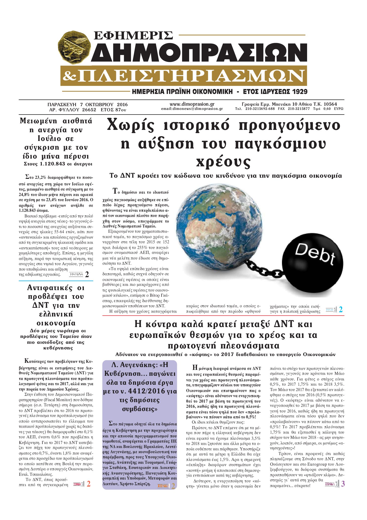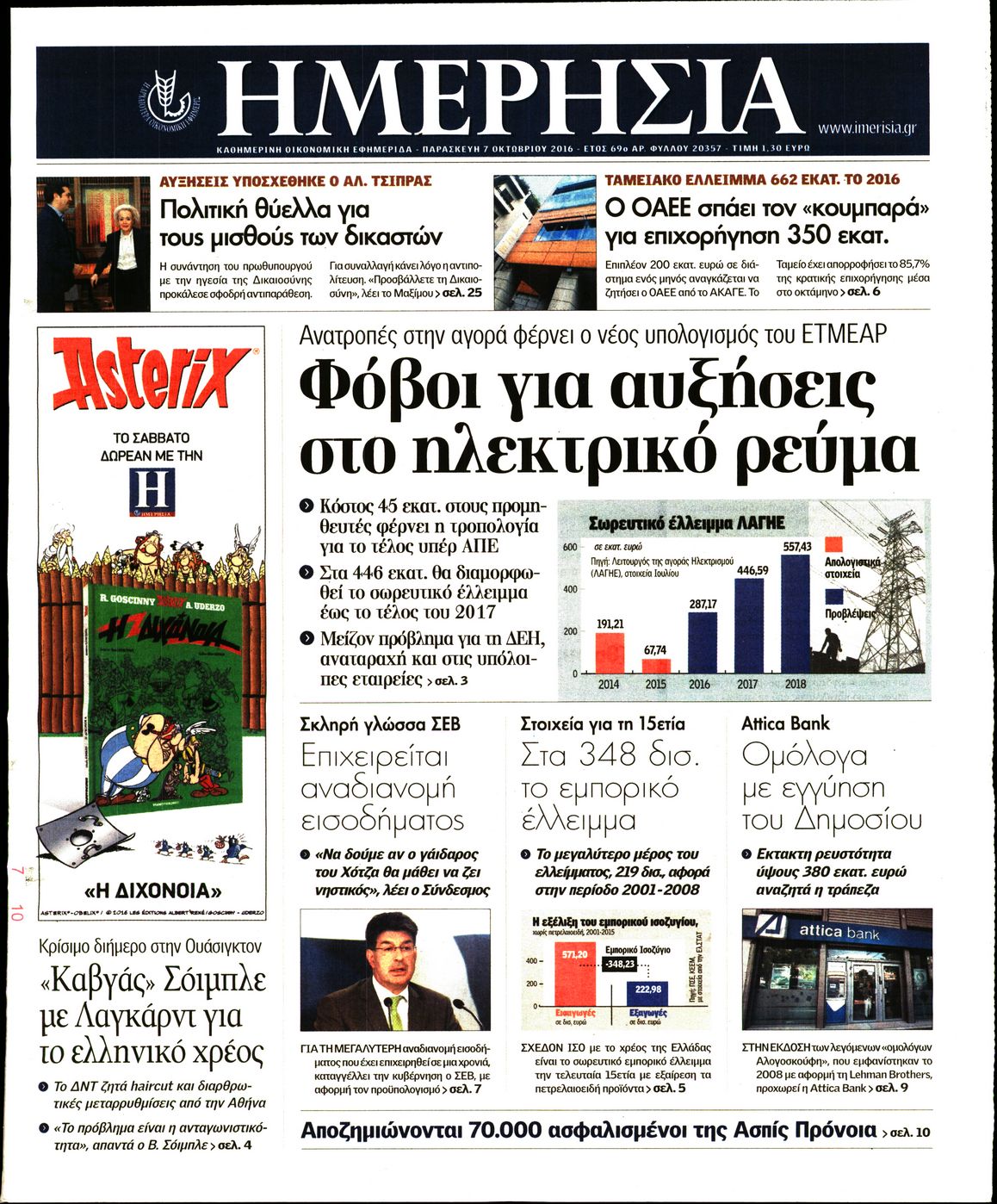 Οι οικονομικές εφημερίδες 7/10/2016 Enikos Newsroom 05:29, Παρασκευή 07 Οκτωβρίου 2016 Media Διαβάστε τα σημερινά πρωτοσέλιδα των οικονομικών εφημερίδων: ΟΙΚΟΝΟΜΙΚΕΣ ΕΦΗΜΕΡΙΔΕΣ ΠΡΩΤΟΣΕΛΙΔΑ Μοιράσου το: σχολίασε κι εσύ (0 σχόλια) Ακολουθήστε το enikos.gr στο Google News και μάθετε πρώτοι όλες τις ειδήσεις Δείτε όλες τις τελευταίες ειδήσεις από την Ελλάδα και τον Κόσμο στο enikos.gr Ειδήσεις Ροή Ειδήσεων 3 ώρες πριν ΣΥΡΙΖΑ: Διαγράφεται ο ευρωβουλευτής Νίκος Παππάς μετά την μήνυση δημοσιογράφου για ξυλοδαρμό 15 λεπτά πριν Δημοσκόπηση Opinion Poll: Στις 12,9 μονάδες η διαφορά ΝΔ-ΠΑΣΟΚ – Τι λένε οι πολίτες για αγρότες, ΟΠΕΚΕΠΕ, Τσίπρα και Σαμαρά 2 ώρες πριν ΟΠΕΚΕΠΕ: Ελεύθερες με όρους η σύζυγος και η αδελφή του φερόμενου αρχηγού – Τι υποστήριξαν 4 ώρες πριν Πώς στήθηκε η επιχείρηση «Ίπαλλος» που οδήγησε στη σύλληψη του «Έλληνα Εσκομπάρ» – «Ο πόλεμος ενάντια στους εμπόρους ναρκωτικών θα συνεχιστεί» 4 ώρες πριν Κυψέλη: Στη φυλακή η 16χρονη που μαχαίρωσε συμμαθήτριά της 1 ώρα πριν Οι άνθρωποι που θυμούνται τα όνειρά τους, συνήθως μοιράζονται αυτά τα 6 σπάνια χαρακτηριστικά 4 ώρες πριν Τα 3 ζώδια που θα δουν τη ζωή τους να αλλάζει ριζικά το 2026 – «Όλα γίνονται καλύτερα σταδιακά» 5 ώρες πριν Ο σπάνιος σεισμός που έλυσε τα χέρια των επιστημόνων – Αποκάλυψε ακριβώς όσα αναζητούσαν 11 ώρες πριν 20 χρόνια τα Χριστούγεννα ξεκινούν στα Public με μεγάλη ποικιλία σε δώρα! 3 λεπτά πριν «Η αξιοπρέπεια δεν είναι διαπραγματεύσιμη» έγραψε στα social media o 21χρονος που αναμένεται να καταγγείλει τον πασίγνωστο τραγουδιστή 8 λεπτά πριν Καθρέφτες μπάνιου: Το απλό κόλπο με την οδοντόκρεμα για να μην θολώνουν 12 λεπτά πριν Στη ΜΕΘ του νοσοκομείου Ζακύνθου ο Μητροπολίτης Δωδώνης 15 λεπτά πριν Δημοσκόπηση Opinion Poll: Στις 12,9 μονάδες η διαφορά ΝΔ-ΠΑΣΟΚ – Τι λένε οι πολίτες για αγρότες, ΟΠΕΚΕΠΕ, Τσίπρα και Σαμαρά 23 λεπτά πριν ΠΑΣΟΚ: Καταδικάζουμε τον ξυλοδαρμό και την τραμπούκικη συμπεριφορά του ευρωβουλευτή Νίκου Παππά σε βάρος του δημοσιογράφου Νίκου Γιαννόπουλου ENIKOS NETWORK Αϋπνία: Το κόλπο που θα σας βοηθήσει να κοιμηθείτε απόψε – Είναι απλό και έχει αποτέλεσμα 2,6 εκατομμύρια πολίτες έχουν ήδη εμβολιαστεί κατά της γρίπης Ελληνικά ομόλογα: Τι λέει η S&P Global Προκήρυξη ΑΣΕΠ για 4.276 μόνιμες προσλήψεις στο Δημόσιο: Βγήκαν τα προσωρινά αποτελέσματα – Ποιοι μπορούν να υποβάλουν ένσ... Χαρτογραφώντας το «σημείο χωρίς επιστροφή»: Για πρώτη φορά αποκαλύπτεται με λεπτομέρεια το ακανθώδες όριο της ατμόσφαιρας τ... Η Google καταργεί τη λειτουργία «dark web report» – Πώς θα μπορούν οι χρήστες να διαγράφουν τα δεδομένα τους περισσότερα 12:35 , Τετάρτη 17 Δεκεμβρίου 2025 Μίρκα Παπακωνσταντίνου: «Δεν ήμουν αισιόδοξη για τα νούμερα – Είμαι ρεαλίστρια» Στα γυρίσματα του εορταστικού επεισοδίου της αγαπημένης σειράς “Το Σόι Σου”, βρέθηκε η κάμερα ... 12:12 , Τετάρτη 17 Δεκεμβρίου 2025 Ακούστε την εκπομπή του Νίκου Χατζηνικολάου 17/12/2025 Ακούστε την εκπομπή του Νίκου Χατζηνικολάου στον ραδιοφωνικό σταθμό RealFm 97,8, την Τετάρτη 1... 11:35 , Τετάρτη 17 Δεκεμβρίου 2025 Home Alone: Το σπίτι της ταινίας θα ανακαινιστεί – Επιστροφή στην αισθητική της δεκαετίας του ’90 Οι νέοι ιδιοκτήτες του πραγματικού σπιτιού που παρουσιάζεται στην κλασική ταινία του 1990 «Hom... 11:25 , Τετάρτη 17 Δεκεμβρίου 2025 Grand Hotel: Απόψε το τελευταίο επεισόδιο της χρονιάς – Όλα τα μυστικά μένουν εδώ Το τελευταίο επεισόδιο της χρονιάς της σειράς «Grand Hotel» θα προβληθεί απόψε στις 21:00. Ο Ά... ΤΕΛΕΥΤΑΙΕΣ ΕΙΔΗΣΕΙΣ 3 λεπτά πριν «Η α