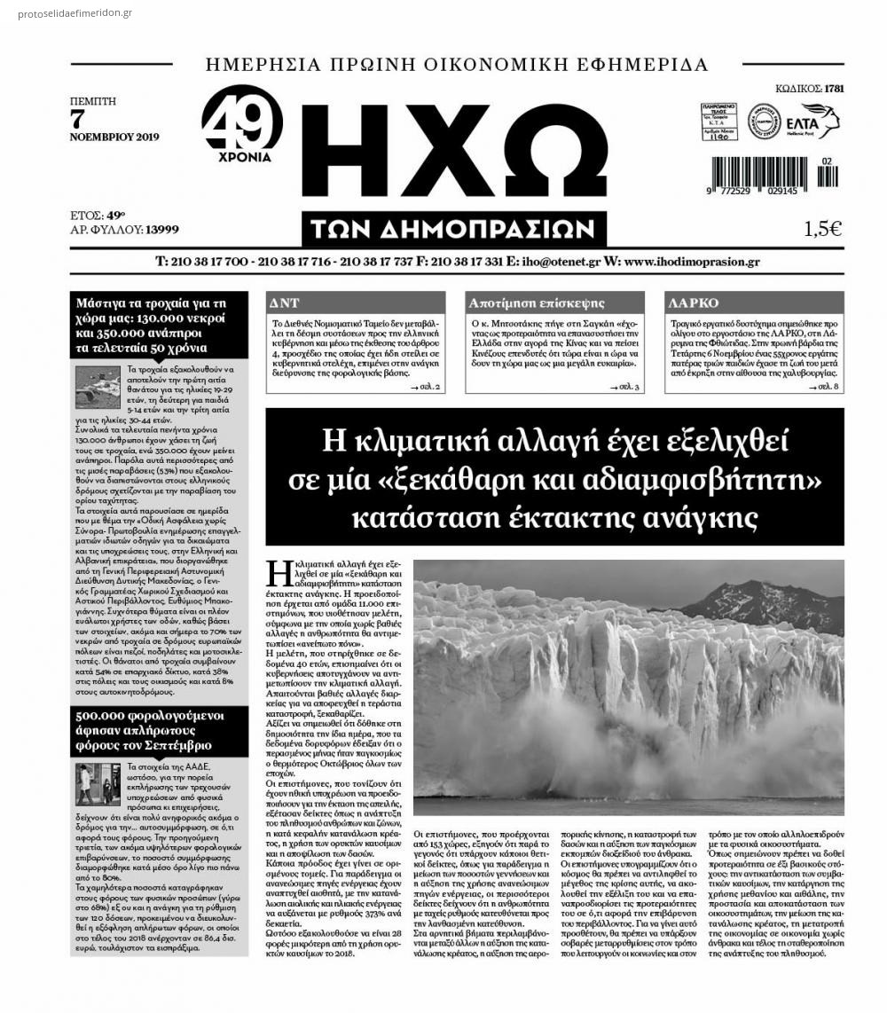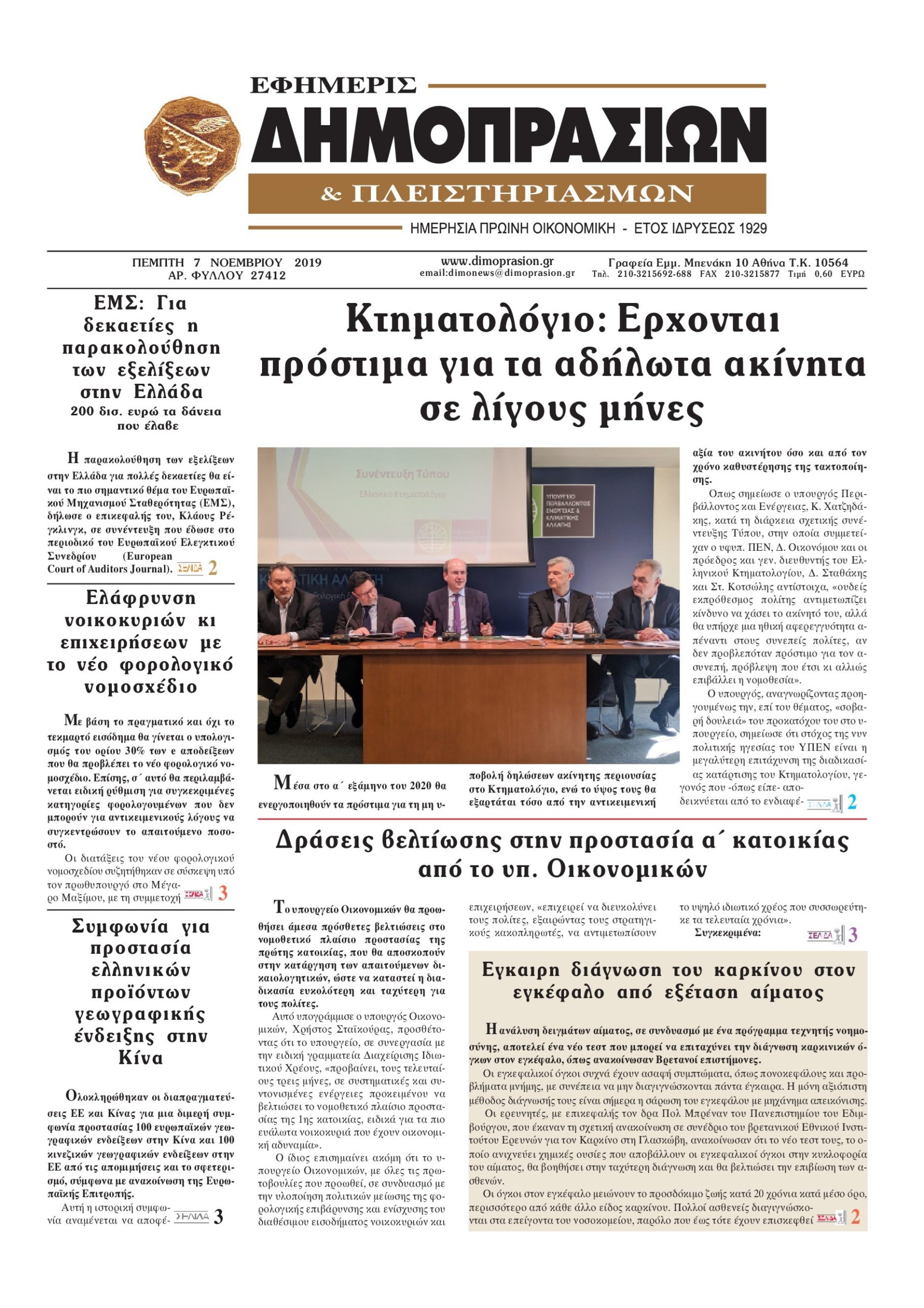 Οι οικονομικές εφημερίδες 7/11/19 Διονύσης Νίκκας 06:43, Πέμπτη 07 Νοεμβρίου 2019 Media Διαβάστε τα πρωτοσέλιδα των οικονομικών εφημερίδων… ΕΦΗΜΕΡΙΔΕΣ ΟΙΚΟΝΟΜΙΚΕΣ Μοιράσου το: σχολίασε κι εσύ (0 σχόλια) Ακολουθήστε το enikos.gr στο Google News και μάθετε πρώτοι όλες τις ειδήσεις Δείτε όλες τις τελευταίες ειδήσεις από την Ελλάδα και τον Κόσμο στο enikos.gr Ειδήσεις Ροή Ειδήσεων 6 ώρες πριν Μητσοτάκης: Αναγκαία η μεταρρύθμιση του πρωτογενούς τομέα – Τα 6 νέα μέτρα για το στεγαστικό και οι αναφορές σε «Ιθάκη» και «πολιτικούς του καναπέ» 5 ώρες πριν Δάνεια σε ελβετικό φράγκο: Τα βασικά σημεία της ρύθμισης – ανάσας για 40.000 δανειολήπτες – Αναλυτικός οδηγός με ερωτήσεις και απαντήσεις 5 ώρες πριν Κυψέλη: Εξιτήριο πήρε η 14χρονη μαθήτρια που μαχαιρώθηκε από την 16χρονη σε σχολείο – «Θέλω να βοηθήσω το παιδί, έχει μπλέξει με κακές παρέες» 5 ώρες πριν Τραμπ: Γιατί κατέθεσε τώρα την αγωγή κατά του BBC – Πώς η κίνησή του εξυπηρετεί το νέο δόγμα του για «αντίσταση» στην Ευρώπη, υπέρ των συντηρητικών 6 ώρες πριν ΟΠΕΚΕΠΕ – Παράνομες επιδοτήσεις: Ελεύθεροι με περιοριστικούς όρους και οι 7 κατηγορούμενοι που απολογήθηκαν σήμερα 5 ώρες πριν Ανακαλύφθηκε βυθισμένη πέτρινη κατασκευή ανοιχτά της Κριμαίας – Αποτελεί μέρος αρχαίας ελληνικής αποικίας 6 ώρες πριν Ύπνος: Αυτό μπορεί να είναι το χειρότερο λάθος για το βιολογικό ρολόι σας, σύμφωνα με ειδικό 7 ώρες πριν Αριθμολογία: Οι άνθρωποι που έχουν γεννηθεί αυτές τις 3 ημερομηνίες, προσελκύουν μεγάλη τύχη πριν από το τέλος του 2025 9 ώρες πριν Οι 7 συμπεριφορές που μαρτυρούν ότι ένας άνδρας επενδύει μακροπρόθεσμα σε μια σχέση 6 λεπτά πριν Ντόναλντ Τραμπ: Ξένη τρομοκρατική οργάνωση η Βενεζουέλα – Πλήρης αποκλεισμός των δεξαμενόπλοιων από και προς το Καράκας 21 λεπτά πριν Παναγιώτης Μπουγιούρης: «Έχω μια αφέλεια σε σχέση με τη δουλειά μου» 36 λεπτά πριν Παναθηναϊκός: Η έντονη επιθυμία του Ματίας Λεσόρ να επιστρέψει στα γήπεδα – «Μου λείπει πολύ το γ@@@@». 51 λεπτά πριν Νίκος Πλακιάς: Η Μαρία Καρυστιανού πλέον θα κρίνεται ως πολιτικός και όχι ως συγγενής 1 ώρα πριν Ντόναλντ Τραμπ: Κάλυψε απόλυτα την προσωπάρχη του Λευκού Οίκου: «Ναι, έχω προσωπικότητα αλκοολικού» ENIKOS NETWORK Αίτημα ΙΣΑ για την εξαίρεση των προσωπικών γιατρών από τις κατ’ οίκον επισκέψεις Η σκανδιναβική μέθοδος στον ύπνο που μπορεί να σώσει έναν γάμο Πιερρακάκης: Ο προϋπολογισμός συμβάλλει ουσιαστικά στην ενίσχυση της αγοραστικής δύναμης της πλειονότητας των εργαζομένων e-ΕΦΚΑ: Παρατείνεται η προθεσμία για την υποβολή ΑΠΔ – Ποιους αφορά Σύγχρονος Νοστράδαμος: Προειδοποιεί για «μεγάλο γεγονός» τους επόμενους μήνες που θα συγκλονίσει τη Βρετανία και τον κόσμο Τεστ παρατηρητικότητας: Μπορείτε να βρείτε τις 3 διαφορές στις εικόνες με έναν πιγκουίνο σε 14 δευτερόλεπτα περισσότερα 20:06 , Τρίτη 16 Δεκεμβρίου 2025 Ο ΣΚΑΙ καταγγέλλει τον ΕΚΚΟΜΕΔ Επιστολή με την οποία καταγράφει την έντονη διαμαρτυρία του προς τον διευθύνοντα σύμβουλο του... 17:40 , Τρίτη 16 Δεκεμβρίου 2025 Eurovision: Στις 4 Ιανουαρίου αποκαλύπτονται τα 28 τραγούδια του ελληνικού τελικού Η αγωνία τελειώνει, η γιορτή της Eurovision αρχίζει στην ΕΡΤ από τις πρώτες ημέρες της νέας χρ... 17:09 , Τρίτη 16 Δεκεμβρίου 2025 Alter Ego Media: Βαθύτατη θλίψη και ειλικρινή συλλυπητήρια για την απώλεια της Ειρήνης Μαρινάκη Τη βαθύτατη θλίψη και τα ειλικρινή συλλυπητήριά της εκφράζει η Alter Ego Media για τον θάνατο ... 13:00 , Τρίτη 16 Δεκεμβρίου 2025 «Στο Παρά Πέντε – 20 Χρόνια Με