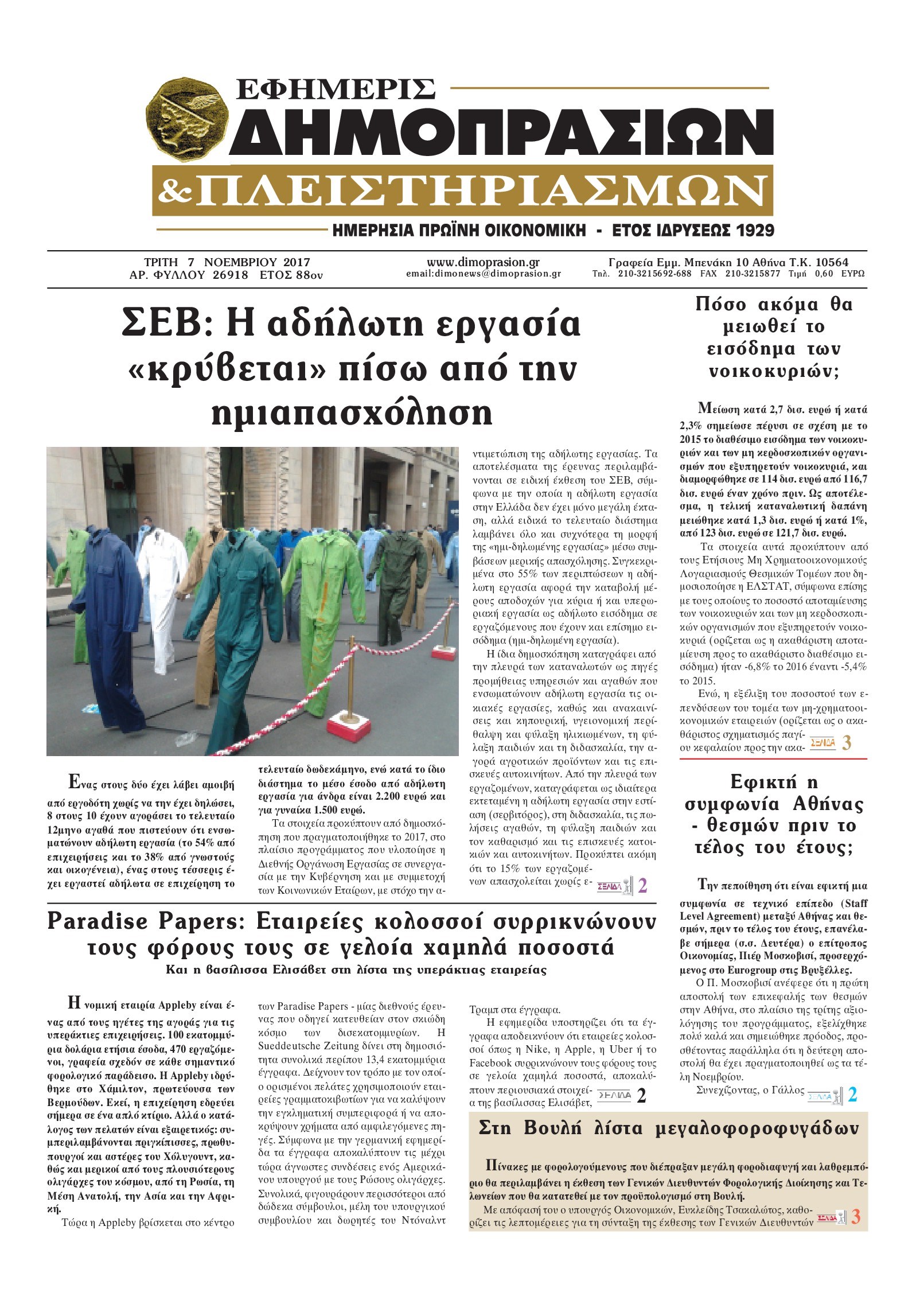 Οι οικονομικές εφημερίδες 7/11/2017 Κώστας Τεό 07:03, Τρίτη 07 Νοεμβρίου 2017 Media Διαβάστε τα σημερινά πρωτοσέλιδα των οικονομικών εφημερίδων: ΟΙΚΟΝΟΜΙΚΕΣ ΕΦΗΜΕΡΙΔΕΣ ΠΡΩΤΟΣΕΛΙΔΑ Μοιράσου το: σχολίασε κι εσύ (0 σχόλια) Ακολουθήστε το enikos.gr στο Google News και μάθετε πρώτοι όλες τις ειδήσεις Δείτε όλες τις τελευταίες ειδήσεις από την Ελλάδα και τον Κόσμο στο enikos.gr Ειδήσεις Ροή Ειδήσεων 5 ώρες πριν Αυξάνουν την πίεση προς την κυβέρνηση οι αγρότες: Κλείνουν παρακαμπτήριους και ανοίγουν διόδια – Τι θα γίνει τις γιορτές 4 ώρες πριν ΟΠΕΚΕΠΕ: Προφυλακιστέος ο φερόμενος αρχηγός και ο λογιστής της εγκληματικής οργάνωσης 23 λεπτά πριν Ευρωπαϊκή Ένωση: Χωρίς συμφωνία, για την μακροπρόθεσμη χρηματοδότηση της Ουκρανίας, ολοκληρώθηκε η Σύνοδος Κορυφής στις Βρυξέλλες 3 ώρες πριν ΑΕΚ – Κραϊόβα 3-2: Επική ανατροπή και πρόκριση στους «16» του Conference League η Ένωση 5 ώρες πριν Φοινικούντα: Το Σάββατο απολογείται ο 30χρονος γιος γνωστού επιχειρηματία της Πλάκας που παραδόθηκε – Όσα είπε στους αστυνομικούς και ο ρόλος του στο έγκλημα 4 ώρες πριν Αρχαιολόγοι ανακάλυψαν ρωμαϊκά τεχνουργήματα από μια πόλη που δεν υπήρξε ποτέ – Τα τρία εντυπωσιακά κτίρια και ο αμφορέας με τις… σαρδέλες 5 ώρες πριν Ύπνος: Η απλή βραδινή ρουτίνα για να προστατεύσετε τα μαλλιά σας από το κρύο κατά τη διάρκεια του χειμώνα 6 ώρες πριν Manifesting: Πώς να συναντήσετε τον σύντροφο της ζωής σας, ανάλογα με τον μήνα γέννησής σας 2 ημέρες πριν 20 χρόνια τα Χριστούγεννα ξεκινούν στα Public με μεγάλη ποικιλία σε δώρα! 23 λεπτά πριν Ευρωπαϊκή Ένωση: Χωρίς συμφωνία, για την μακροπρόθεσμη χρηματοδότηση της Ουκρανίας, ολοκληρώθηκε η Σύνοδος Κορυφής στις Βρυξέλλες 39 λεπτά πριν GNTM: «Κλείδωσαν» οι τέσσερις φιναλίστ – Μεγάλη ανατροπή στις τελευταίες αποχωρήσεις 53 λεπτά πριν Γιώργος Μαζωνάκης: Αποθεώθηκε στην πρεμιέρα του στην «Ακτή Πειραιώς» λίγες ώρες μετά τις καταγγελίες – «Είμαι αληθινός», είπε με νόημα 1 ώρα πριν Πόλεμος στην Ουκρανία: Ρωσικά drones έπληξαν την Οδησσό – Μία νεκρή και ζημιές σε ενεργειακές υποδομές 1 ώρα πριν ΑΕΚ-Κραϊόβα: Τα highlights της μυθικής ανατροπής της «Ένωσης» ENIKOS NETWORK Σε περίοδο αυξημένης δραστηριότητας η γρίπη στην Ελλάδα-Μέτρα προστασίας από τον ΕΟΔΥ Σκέφτεστε συνέχεια συζητήσεις που έχετε κάνει; Τι σημαίνει αυτό, σύμφωνα με ειδικό Στεγαστικό: Τι λέει η ΠΟΜΙΔΑ για τα νέα μέτρα που ανακοίνωσε ο Κυριάκος Μητσοτάκης Λαγκάρντ: Αισιόδοξη για την ανάπτυξη της Ευρωζώνης, αβέβαιη για τον πληθωρισμό Χαρτογραφώντας το «σημείο χωρίς επιστροφή»: Για πρώτη φορά αποκαλύπτεται με λεπτομέρεια το ακανθώδες όριο της ατμόσφαιρας τ... Η Google καταργεί τη λειτουργία «dark web report» – Πώς θα μπορούν οι χρήστες να διαγράφουν τα δεδομένα τους περισσότερα 02:50 , Παρασκευή 19 Δεκεμβρίου 2025 GNTM: «Κλείδωσαν» οι τέσσερις φιναλίστ – Μεγάλη ανατροπή στις τελευταίες αποχωρήσεις Για προτελευταία φορά εμφανίστηκαν στο πλατό του GNTM οι φιναλίστ του φετινού κύκλου, το βράδυ... 17:45 , Πέμπτη 18 Δεκεμβρίου 2025 ROUK ZOUK: Εορταστικό επεισόδιο με καλεσμένους τους πρωταγωνιστές του «Γιατί ρε πατέρα» Το Σάββατο 20 Δεκεμβρίου στις 21:00, η Ζέτα Μακρυπούλια υποδέχεται εκλεκτούς ηθοποιούς που όλο... 17:20 , Πέμπτη 18 Δεκεμβρίου 2025 Άγιος έρωτας: Η Χριστίνα εξομολογείται στον πατέρα Νικόλαο, απόψε στις 21:00 στον Alpha Η Νότα αποφασίζει να εκδικηθεί τον Πέτρο και τον Στέφανο, για χάρη του Λούη, όμως τα πράγματα ... 16:50 , Πέμπτη 18 Δεκεμβρίου 2025 Να μ’ αγαπάς: Ζωή και Φωτεινή συμφιλ