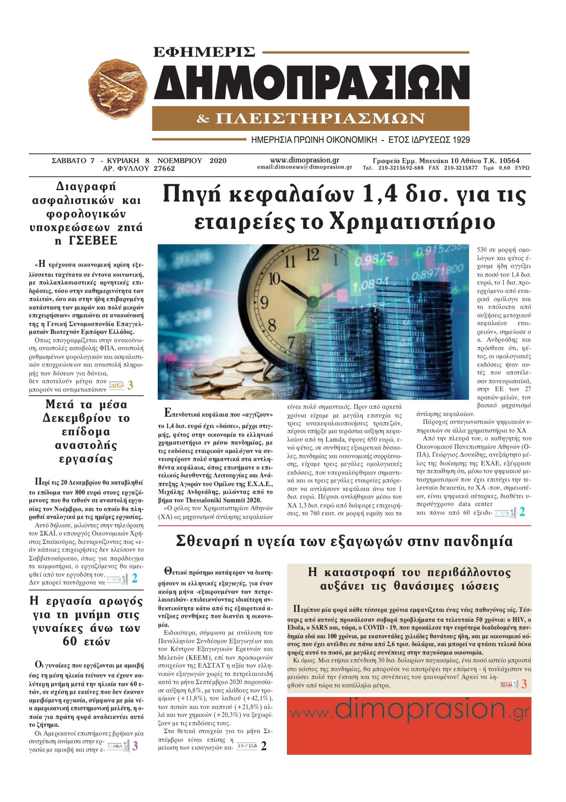 Οι οικονομικές εφημερίδες 7/11/2020 Διονύσης Νίκκας 07:30, Σάββατο 07 Νοεμβρίου 2020 Media Διαβάστε τα πρωτοσέλιδα των οικονομικών εφημερίδων… ΟΙΚΟΝΟΜΙΚΕΣ ΕΦΗΜΕΡΙΔΕΣ Μοιράσου το: σχολίασε κι εσύ (0 σχόλια) Ακολουθήστε το enikos.gr στο Google News και μάθετε πρώτοι όλες τις ειδήσεις Δείτε όλες τις τελευταίες ειδήσεις από την Ελλάδα και τον Κόσμο στο enikos.gr Ειδήσεις Ροή Ειδήσεων 4 ώρες πριν «Κόκκινη κάρτα» από τους ορκωτούς ελεγκτές στην Κεντρική Συνεταιριστική Οργάνωση Σουλτανίνας και τον Γιώργο Ξυλούρη – «Αρνητική γνώμη» και εντοπισμός παραβάσεων 45 λεπτά πριν Συγγενής εκτελεσθέντα Καισαριανής: Ο παππούς μου, Δημήτρης Κυριακούδης, ήταν μέρος αυτής της Ιστορίας – Η αξιοπρέπειά τους αντανακλάται στα πρόσωπά τους 1 ώρα πριν Η κυβέρνηση εξετάζει τη μείωση του ΦΠΑ 12 λεπτά πριν Παναγιώτης Παρασκευαΐδης: «Απόλυτα κατανοητή για τον κοινό νου η έκφρασή μου – Δεν με αγγίζουν τα βαθύτερα αίτια της διαγραφής μου» 2 ώρες πριν Βιολάντα: Έβγαλαν οικοδομική άδεια για εργασίες σε εγκαταστάσεις της εταιρείας στις 12 Φεβρουαρίου – Αποκαλυπτικά έγγραφα 5 ώρες πριν Οπτική ψευδαίσθηση: Μόνο αν είσαι ο Σέρλοκ Χολμς θα βρεις το κοτοπουλάκι σε 9 δευτερόλεπτα 3 ώρες πριν Ανακαλύφθηκε πριγκιπικός τάφος της Εποχής του Χαλκού με 31 αιχμές βελών από πυρόλιθο και δύο εξαιρετικά στιλέτα 1 ώρα πριν Τα 4 ζώδια που λαμβάνουν ένα σημαντικό σημάδι απ’ το σύμπαν – «Εμπιστευτείτε τον εαυτό σας» 2 ώρες πριν Η μητέρα της την μάλωσε επειδή αντί να δώσει τα μωρουδιακά της στην έγκυο αδελφή της, τα δώρισε – «Δεν θα έπρεπε να κάνει παιδιά» 4 λεπτά πριν Ζιζέλ Πελικό: Κυκλοφόρησε το βιβλίο της «Ένας Ύμνος στη Ζωή» – Η στιγμή που σκέφτηκε να αυτοκτονήσει και η «εκδίκησή» της 10 λεπτά πριν Καιρός: Έκτακτο δελτίο Επιδείνωσης από την ΕΜΥ – Ισχυρές καταιγίδες και θυελλώδεις άνεμοι έως το πρωί της Τετάρτης 10 λεπτά πριν Ακούστε το σχόλιο του Νίκου Χατζηνικολάου 17/2/2026 12 λεπτά πριν Παναγιώτης Παρασκευαΐδης: «Απόλυτα κατανοητή για τον κοινό νου η έκφρασή μου – Δεν με αγγίζουν τα βαθύτερα αίτια της διαγραφής μου» 17 λεπτά πριν Από τα 92 στα 78 κιλά: Γυναίκα αποκαλύπτει πώς έχασε βάρος σε 8 μήνες έπειτα από μια περίοδο στασιμότητας ENIKOS NETWORK Πότε να πάω στον γιατρό για τον πόνο στη μέση; Ειδικός του Cleveland απαντά ΕΟΔΥ: Μόνο το 22% του προσωπικού στα νοσοκομεία κάνει το αντιγριπικό εμβόλιο ΑΑΔΕ: Αυτές είναι οι εφαρμογές που θα τεθούν εκτός λειτουργίας την Πέμπτη-Όλες οι λεπτομέρειες Αττική: Νέα απεργία πραγματοποιούν από σήμερα οι οδηγοί και οι ιδιοκτήτες -Τι ζητούν Ευπάθεια στο moltbook ai αποκαλύπτει email, tokens σύνδεσης και api keys Αυτός είναι ο ρόλος της μικρής τρύπας στους νυχοκόπτες – «Είμαι ο μόνος που δεν το ήξερε;»» περισσότερα 10:18 , Τρίτη 17 Φεβρουαρίου 2026 Παναγιώτης Στάθης: Βαρύ πένθος για τον παρουσιαστή – Πέθανε η μητέρα του Βαρύ πένθος για τον Παναγιώτη Στάθη, ο οποίος έχασε την μητέρα του. Ο γνωστός παρουσιαστής έμα... 09:58 , Τρίτη 17 Φεβρουαρίου 2026 LIVE – Ακούστε την εκπομπή του Νίκου Χατζηνικολάου 17/2/2026 Ακούστε την εκπομπή του Νίκου Χατζηνικολάου, στον Realfm 97,8. Ακούστε LIVE εδώ. 08:00 , Τρίτη 17 Φεβρουαρίου 2026 Την Κυριακή με τη Realnews: Ό,τι και αν αγοράσεις, σκανάρεις και κερδίζεις! Την Κυριακή με τη Realnews: Ό,τι και αν αγοράσεις, σκανάρεις και κερδίζεις! Με το PADU app, το... 05:05 , Τρίτη 17 Φεβρουαρίου 2026 MasterChef: Βγάλαν τα «φτυάρια» πάλι στο Χ απέναντι στη Μενεξιά: «Δεν κάνεις κοπελιά» – «Όλο μέλι μέλι κι από τηγανίτα τίποτα» Τα… φτυάρια έβγαλαν πά