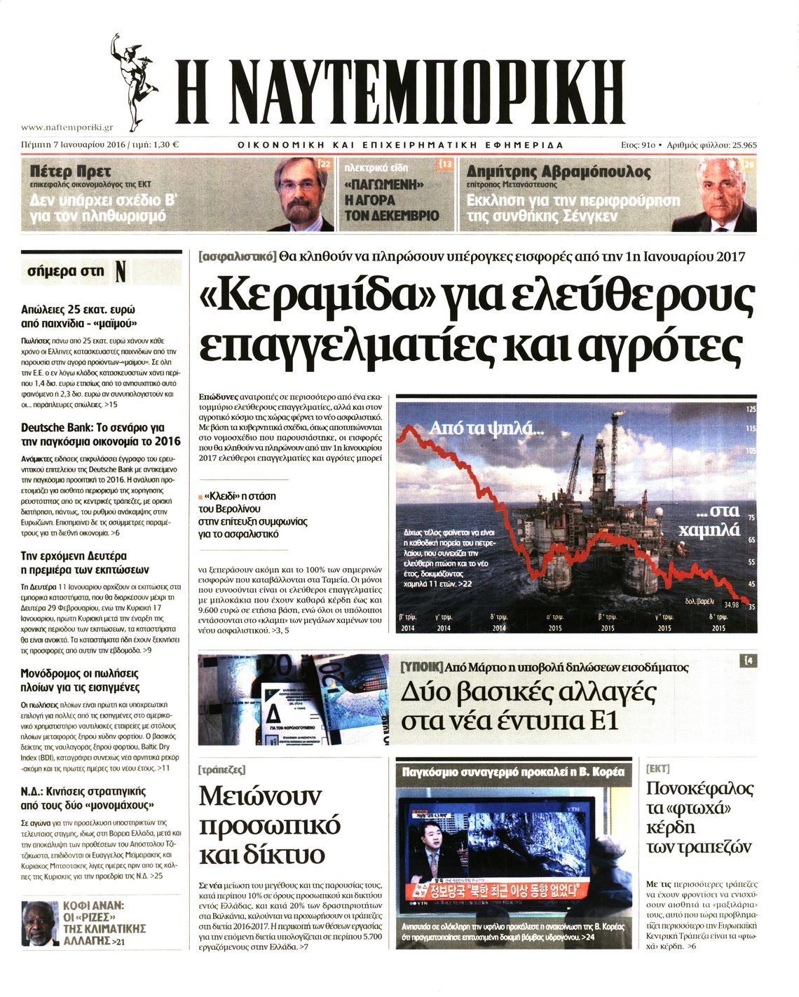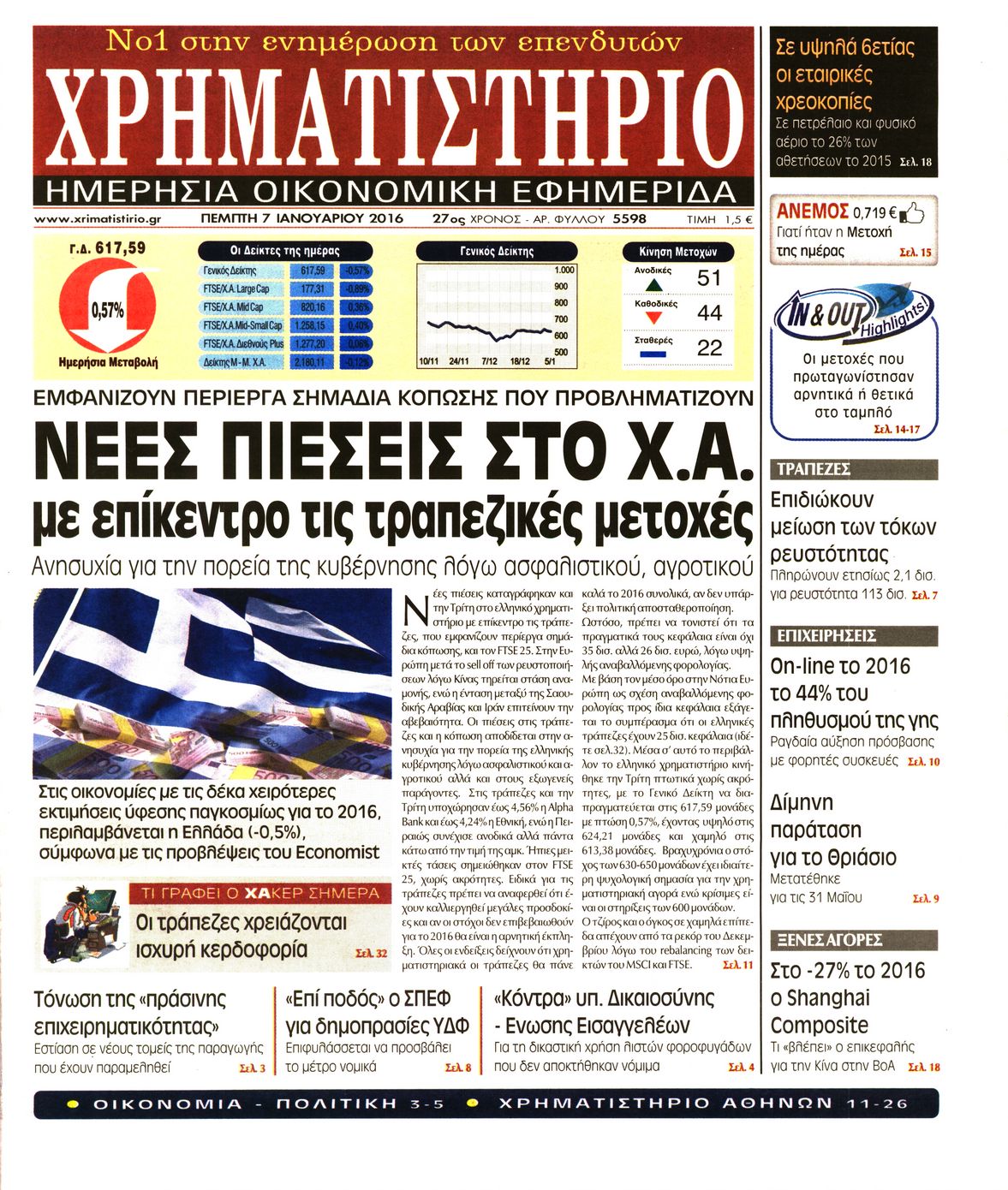Oι οικονομικές εφημερίδες 7/1/2016 Enikos Newsroom 05:52, Πέμπτη 07 Ιανουαρίου 2016 Media Διαβάστε τα σημερινά πρωτοσέλιδα των οικονομικών εφημερίδων: ΟΙΚΟΝΟΜΙΚΕΣ ΕΦΗΜΕΡΙΔΕΣ ΠΡΩΤΟΣΕΛΙΔΑ Μοιράσου το: σχολίασε κι εσύ (0 σχόλια) Ακολουθήστε το enikos.gr στο Google News και μάθετε πρώτοι όλες τις ειδήσεις Δείτε όλες τις τελευταίες ειδήσεις από την Ελλάδα και τον Κόσμο στο enikos.gr Ειδήσεις Ροή Ειδήσεων 1 ώρα πριν Εκτός ευρωομάδας ΣΥΡΙΖΑ ο Νίκος Παππάς μετά την επίθεση στον δημοσιογράφο Νίκο Γιαννόπουλο – Η μήνυση και οι νέες δηλώσεις 2 ώρες πριν «Αγριεύουν» οι αγρότες: «Δεν συντρέχει λόγος συνάντησης με τον πρωθυπουργό» – Ώρα αποφάσεων στη σύσκεψη της Πέμπτης 2 ώρες πριν Κυψέλη: Χωρίς την οικογένειά της δίπλα της απολογήθηκε η 16χρονη – «Της είχε επιτεθεί κάποιος για να την βιάσει, φοβήθηκε και κυκλοφορούσε με μαχαίρι» 1 ώρα πριν Politico: Το πρόβλημα της Ευρώπης δεν είναι το Βέλγιο αλλά ο Ντόναλντ Τραμπ 3 ώρες πριν Αλεξανδρούπολη: Πολυοργανική ανεπάρκεια λόγω υποσιτισμού η αιτία θανάτου του 3χρονου αγοριού 2 ώρες πριν Μυστήριο με τεράστιες κυκλικές πέτρες 200 κιλών – Ανακαλύφθηκαν τυχαία κατά τη διάρκεια οδικών έργων και κανείς δεν ξέρει από πού προέρχονται 3 ώρες πριν Ύπνος: Ειδικός εξηγεί τον πραγματικό λόγο που ξυπνάτε στις 4 τα ξημερώματα – Ο ρόλος των ορμονών και του κιρκάδιου ρυθμού 4 ώρες πριν Αριθμολογία: Οι άνθρωποι που έχουν γεννηθεί αυτές τις 4 ημερομηνίες, είναι τρυφεροί και αγαπούν ανιδιοτελώς 15 ώρες πριν 20 χρόνια τα Χριστούγεννα ξεκινούν στα Public με μεγάλη ποικιλία σε δώρα! 4 λεπτά πριν Βέλγους πολιτικούς και επικεφαλής χρηματοπιστωτικών ιδρυμάτων στοχοποιεί η Μόσχα για τα κατασχεθέντα περιουσιακά στοιχεία 18 λεπτά πριν ΗΠΑ: Αναζητείται δεύτερος ύποπτος για την επίθεση στο πανεπιστήμιο Μπράουν 33 λεπτά πριν Λεωφόρος Αλεξάνδρας: Δεν εντοπίστηκε βόμβα έξω από το κολλέγιο – Προσήχθη άνδρας για το προειδοποιητικό σημείωμα 50 λεπτά πριν Ελένη Κρίτα για το reunion του «Παρά Πέντε»: «Ήταν πραγματικά σαν να μην είχαμε χαθεί ποτέ» 1 ώρα πριν Κύπελλο Ελλάδας: Αυτά είναι τα ζευγάρια στα νοκ-άουτ, οι διασταυρώσεις στους «8» κι ο δρόμος προς τον τελικό ENIKOS NETWORK Αϋπνία: Το κόλπο που θα σας βοηθήσει να κοιμηθείτε απόψε – Είναι απλό και έχει αποτέλεσμα 2,6 εκατομμύρια πολίτες έχουν ήδη εμβολιαστεί κατά της γρίπης ΕΛΣΤΑΤ: Τι δείχνουν τα νέα στοιχεία για τις ηλεκτρονικές παραγγελίες των επιχειρήσεων ΚΕΠΕ: Οι 3 διακριτές συμβολές των ΜμΕ και της μεταποίησης στην ελληνική οικονομία Χαρτογραφώντας το «σημείο χωρίς επιστροφή»: Για πρώτη φορά αποκαλύπτεται με λεπτομέρεια το ακανθώδες όριο της ατμόσφαιρας τ... Η Google καταργεί τη λειτουργία «dark web report» – Πώς θα μπορούν οι χρήστες να διαγράφουν τα δεδομένα τους περισσότερα 22:24 , Τετάρτη 17 Δεκεμβρίου 2025 Το Σπίτι Δίπλα Στο Ποτάμι: Σε κίνδυνο η υγεία του Απόστολου – Τι θα δούμε απόψε “Το Σπίτι Δίπλα στο Ποτάμι” ξετυλίγει το νήμα της ζωής των πέντε αδελφών με καταισ... 21:14 , Τετάρτη 17 Δεκεμβρίου 2025 Παιχνίδια Εκδίκησης: Θα καταφέρει ο Χρήστος να κλονίσει την εμπιστοσύνη της Μάγιας απέναντι στον Άγη; Τα «Παιχνίδια Εκδίκησης» έρχονται απόψε στις 22:30, στον Αντ1, με το τελευταίο επεισόδιο της χ... 20:57 , Τετάρτη 17 Δεκεμβρίου 2025 Άγιος Έρωτας: Η Χλόη καταθέτει εναντίον του πατέρα της και ο Χάρης αποκαλύπτει στον Κλεάνθη ότι δεν είναι ο βιολογικός του πατέρας. Γεμάτο αποκαλύψεις είναι το νέο επεισόδιο της σειράς “Άγιος Έρωτας” απόψε στις 21:... 20:15 , Τετάρτη 17 Δεκ