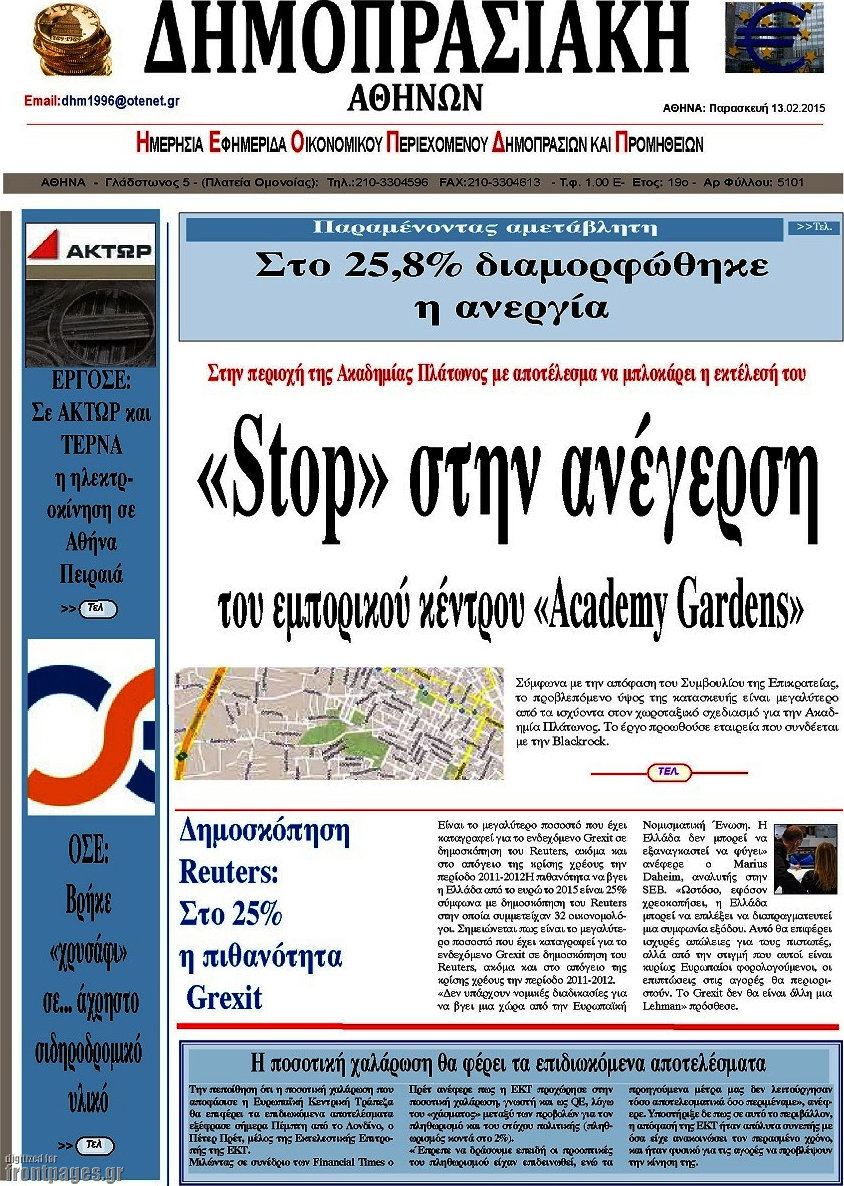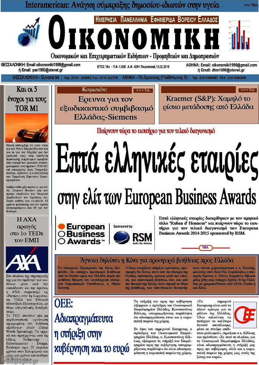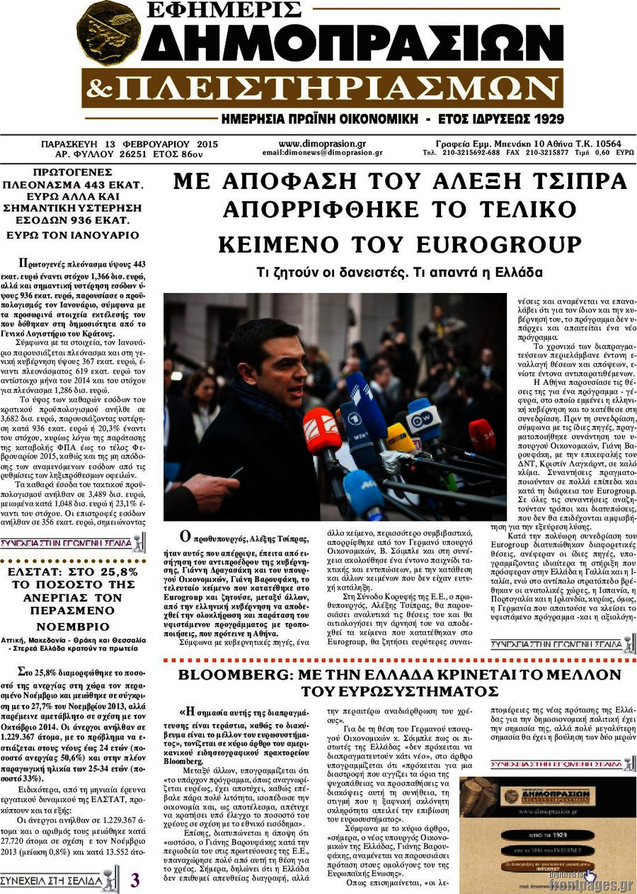 Οι οικονομικές εφημερίδες Enikos Newsroom 07:49, Παρασκευή 13 Φεβρουαρίου 2015 Media Διαβάστε τα πρωτοσέλιδα των οικονομικών εφημερίδων: ΟΙΚΟΝΟΜΙΚΕΣ ΕΦΗΜΕΡΙΔΕΣ ΠΡΩΤΟΣΕΛΙΔΑ Μοιράσου το: σχολίασε κι εσύ (0 σχόλια) Ακολουθήστε το enikos.gr στο Google News και μάθετε πρώτοι όλες τις ειδήσεις Δείτε όλες τις τελευταίες ειδήσεις από την Ελλάδα και τον Κόσμο στο enikos.gr Ειδήσεις Ροή Ειδήσεων 2 ώρες πριν Γιορτές με μπλόκα για τους αγρότες: Ανοίγουν διόδια και μοιράζουν προϊόντα στους ταξιδιώτες 2 ώρες πριν Τα αρχεία του Έπσταϊν αποκαλύπτουν φωτογραφία του έκπτωτου πρίγκιπα Άντριου – Είναι ξαπλωμένος στην αγκαλιά 5 γυναικών 1 ώρα πριν Νέες ταυτότητες: Μεγάλη αναμονή για ραντεβού στην Αττική – Τέλος τα ταξίδια εκτός Ελλάδος από τον Αύγουστο για όσους δεν έχουν αλλάξει 2 ώρες πριν Εξαφάνιση 33χρονου γιατρού στην Κρήτη: «Άναψα τα φώτα, τρόμαξε και άρχισε να τρέχει στα χωράφια» – Η τελευταία διαδρομή και η μαρτυρία «κλειδί» 21 λεπτά πριν Ινδία: Επτά ελέφαντες σκοτώθηκαν κατά τη σύγκρουση επιβατικού τρένου με κοπάδι 2 ώρες πριν Μία νέα «χρυσή» περίοδος αρχίζει για 3 ζώδια από σήμερα – «Μία αναπάντεχη ευκαιρία οδηγεί στην επιτυχία» 4 ώρες πριν Αρχαιολόγοι ανακάλυψαν σε χωράφι απεικόνιση 600 ετών ενός Αγίου – Τα στοιχεία που δείχνουν ότι μαρτύρησε 3 ώρες πριν Αγχώνεται για το χριστουγεννιάτικο δώρο που πήρε στην πλούσια σύντροφό του – «Φοβάμαι πως θα το βρει φθηνιάρικο, φοράει βραχιόλια Cartier» 19 λεπτά πριν Διαιτολόγος αποκαλύπτει 9 πρωινές συνήθειες που «λιώνουν» το κοιλιακό λίπος – «Υποστηρίζουν την υγιεινή απώλεια βάρους» 5 λεπτά πριν Εντυπωσιακό βίντεο από «τσουνάμι» πάγου στη Σιβηρία – Πώς προκαλείται το σπάνιο φαινόμενο 13 λεπτά πριν Μυλωνάκης κατά Τζάκρη: Την καλώ να ανασκευάσει το αδιανόητο ψέμα της. Η ανοχή έχει και τα όρια της» 19 λεπτά πριν Διαιτολόγος αποκαλύπτει 9 πρωινές συνήθειες που «λιώνουν» το κοιλιακό λίπος – «Υποστηρίζουν την υγιεινή απώλεια βάρους» 21 λεπτά πριν Ινδία: Επτά ελέφαντες σκοτώθηκαν κατά τη σύγκρουση επιβατικού τρένου με κοπάδι 30 λεπτά πριν Βούλα: Συνελήφθη 24χρονος με 69 κιλά ακατέργαστης κάνναβης – Κυκλοφορούσε με κλεμμένο αυτοκίνητο ENIKOS NETWORK Είστε μόνιμα απρόσεκτοι; 3 σημάδια που δείχνουν ότι μπορεί να είναι σύμπτωμα πάθησης Πόσα κιλά παίρνουμε πραγματικά τα Χριστούγεννα, σύμφωνα με την επιστήμη – Πώς να το αποτρέψουμε; Χριστούγεννα και Πρωτοχρονιά: Πώς αμείβονται όσοι εργαστούν e-ΕΦΚΑ και ΔΥΠΑ: Έρχονται νέες πληρωμές έως τις 24 Δεκεμβρίου – Ποιοι πάνε ταμείο Χαρτογραφώντας το «σημείο χωρίς επιστροφή»: Για πρώτη φορά αποκαλύπτεται με λεπτομέρεια το ακανθώδες όριο της ατμόσφαιρας τ... Η Google καταργεί τη λειτουργία «dark web report» – Πώς θα μπορούν οι χρήστες να διαγράφουν τα δεδομένα τους περισσότερα 11:41 , Σάββατο 20 Δεκεμβρίου 2025 «Η αγάπη δεν χάνεται ποτέ»: Η μικρού μήκους ταινία κινουμένων σχεδίων που θέτει ερωτήματα για τη ζωή και τον θάνατο Ο θάνατος είναι ένα από τα πιο σκληρά θέματα που καλείται να διαχειριστεί κάποιος στη διάρκεια... 09:30 , Σάββατο 20 Δεκεμβρίου 2025 «Porto Leone: Στη γειτονιά με τα κόκκινα φανάρια» – Ο Χρόνης αποκαλύπτει στην Αλεξάνδρα το μυστικό για το παιδί της Λένας Η μεγάλη δραματική σειρά του Apha «Porto Leone: Στη γειτονιά με τα κόκκινα φανάρια» μας μεταφέ... 08:14 , Σάββατο 20 Δεκεμβρίου 2025 Τρομεροί γονείς: Η Μαρία Καβογιάννη εισβάλλει στο σπίτι της οικογένειας Στεφανίδη Όσα θα δούμε στο νέο διπλό επεισόδιο της σειράς «Τρομεροί γονείς», σήμ