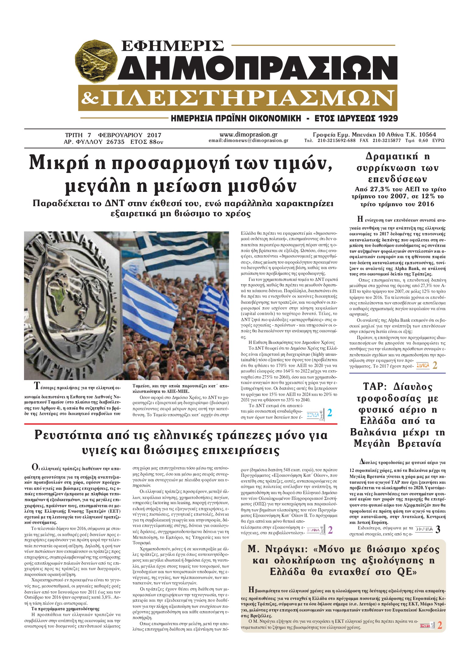 Οι οικονομικές εφημερίδες 7/2/2017 Enikos Newsroom 04:38, Τρίτη 07 Φεβρουαρίου 2017 Media Διαβάστε τα σημερινά πρωτοσέλιδα των οικονομικών εφημερίδων: ΟΙΚΟΝΟΜΙΚΕΣ ΕΦΗΜΕΡΙΔΕΣ ΠΡΩΤΟΣΕΛΙΔΑ Μοιράσου το: σχολίασε κι εσύ (0 σχόλια) Ακολουθήστε το enikos.gr στο Google News και μάθετε πρώτοι όλες τις ειδήσεις Δείτε όλες τις τελευταίες ειδήσεις από την Ελλάδα και τον Κόσμο στο enikos.gr Ειδήσεις Ροή Ειδήσεων 42 λεπτά πριν Ευρωπαϊκή Ένωση: Συμφωνία για δάνειο 90 δισ. ευρώ στην Ουκρανία τη διετία 2026-2027 5 ώρες πριν ΟΠΕΚΕΠΕ: Προφυλακιστέος ο φερόμενος αρχηγός και ο λογιστής της εγκληματικής οργάνωσης 6 ώρες πριν Αυξάνουν την πίεση προς την κυβέρνηση οι αγρότες: Κλείνουν παρακαμπτήριους και ανοίγουν διόδια – Τι θα γίνει τις γιορτές 6 ώρες πριν Φοινικούντα: Το Σάββατο απολογείται ο 30χρονος γιος γνωστού επιχειρηματία της Πλάκας που παραδόθηκε – Όσα είπε στους αστυνομικούς και ο ρόλος του στο έγκλημα 5 ώρες πριν ΑΕΚ – Κραϊόβα 3-2: Επική ανατροπή και πρόκριση στους «16» του Conference League η Ένωση 6 ώρες πριν Αρχαιολόγοι ανακάλυψαν ρωμαϊκά τεχνουργήματα από μια πόλη που δεν υπήρξε ποτέ – Τα τρία εντυπωσιακά κτίρια και ο αμφορέας με τις… σαρδέλες 7 ώρες πριν Ύπνος: Η απλή βραδινή ρουτίνα για να προστατεύσετε τα μαλλιά σας από το κρύο κατά τη διάρκεια του χειμώνα 8 ώρες πριν Manifesting: Πώς να συναντήσετε τον σύντροφο της ζωής σας, ανάλογα με τον μήνα γέννησής σας 2 ημέρες πριν 20 χρόνια τα Χριστούγεννα ξεκινούν στα Public με μεγάλη ποικιλία σε δώρα! 6 λεπτά πριν Αυστραλία: Κήρυξε την Κυριακή (21/12) ημέρα εθνικού πένθους για τη φονική επίθεση στην παραλία Μπόνταϊ 16 λεπτά πριν Ρόδος: Δάσκαλος καράτε καταδικάστηκε για ασέλγεια σε ανήλικες αθλήτριες – Μαρτυρίες για αγγίγματα σε ευαίσθητα σημεία 30 λεπτά πριν Γουατεμάλα: Εξαρθρώθηκε κύκλωμα διακίνησης μεταναστών προς τις ΗΠΑ – Συνελήφθησαν 14 άτομα 35 λεπτά πριν Βουλγαρία: Χιλιάδες πολίτες στους δρόμους κατά της απερχόμενης κυβέρνησης και της διαφθοράς 42 λεπτά πριν Ευρωπαϊκή Ένωση: Συμφωνία για δάνειο 90 δισ. ευρώ στην Ουκρανία τη διετία 2026-2027 ENIKOS NETWORK Σε περίοδο αυξημένης δραστηριότητας η γρίπη στην Ελλάδα-Μέτρα προστασίας από τον ΕΟΔΥ Σκέφτεστε συνέχεια συζητήσεις που έχετε κάνει; Τι σημαίνει αυτό, σύμφωνα με ειδικό Στεγαστικό: Τι λέει η ΠΟΜΙΔΑ για τα νέα μέτρα που ανακοίνωσε ο Κυριάκος Μητσοτάκης Λαγκάρντ: Αισιόδοξη για την ανάπτυξη της Ευρωζώνης, αβέβαιη για τον πληθωρισμό Χαρτογραφώντας το «σημείο χωρίς επιστροφή»: Για πρώτη φορά αποκαλύπτεται με λεπτομέρεια το ακανθώδες όριο της ατμόσφαιρας τ... Η Google καταργεί τη λειτουργία «dark web report» – Πώς θα μπορούν οι χρήστες να διαγράφουν τα δεδομένα τους περισσότερα 02:50 , Παρασκευή 19 Δεκεμβρίου 2025 GNTM: «Κλείδωσαν» οι τέσσερις φιναλίστ – Μεγάλη ανατροπή στις τελευταίες αποχωρήσεις Για προτελευταία φορά εμφανίστηκαν στο πλατό του GNTM οι φιναλίστ του φετινού κύκλου, το βράδυ... 17:45 , Πέμπτη 18 Δεκεμβρίου 2025 ROUK ZOUK: Εορταστικό επεισόδιο με καλεσμένους τους πρωταγωνιστές του «Γιατί ρε πατέρα» Το Σάββατο 20 Δεκεμβρίου στις 21:00, η Ζέτα Μακρυπούλια υποδέχεται εκλεκτούς ηθοποιούς που όλο... 17:20 , Πέμπτη 18 Δεκεμβρίου 2025 Άγιος έρωτας: Η Χριστίνα εξομολογείται στον πατέρα Νικόλαο, απόψε στις 21:00 στον Alpha Η Νότα αποφασίζει να εκδικηθεί τον Πέτρο και τον Στέφανο, για χάρη του Λούη, όμως τα πράγματα ... 16:50 , Πέμπτη 18 Δεκεμβρίου 2025 Να μ’ αγαπάς: Ζωή και Φωτεινή συμφιλιώνονται ως μάνα με κόρη, απόψε στις 20:00 Η ταυτότητα του Άγγελου αποκαλύπτετα