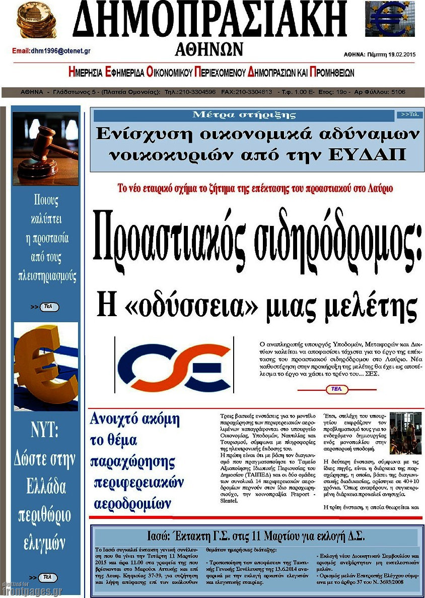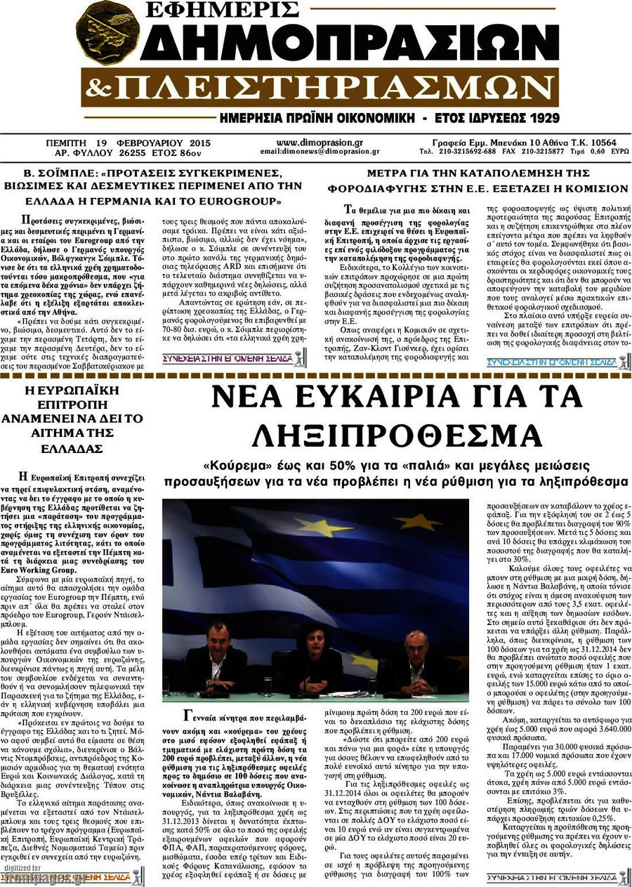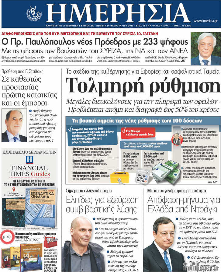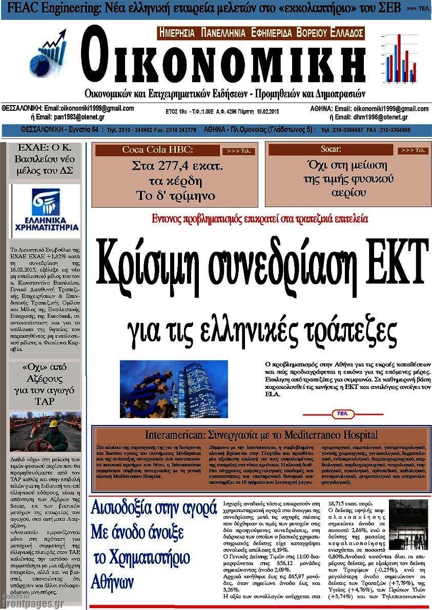 Οι οικονομικές εφημερίδες Enikos Newsroom 07:52, Πέμπτη 19 Φεβρουαρίου 2015 Media Διαβάστε τα σημερινά πρωτοσέλιδα των οικονομικών εφημερίδων: ΟΙΚΟΝΟΜΙΚΕΣ ΕΦΗΜΕΡΙΔΕΣ ΠΡΩΤΟΣΕΛΙΔΑ Μοιράσου το: σχολίασε κι εσύ (0 σχόλια) Ακολουθήστε το enikos.gr στο Google News και μάθετε πρώτοι όλες τις ειδήσεις Δείτε όλες τις τελευταίες ειδήσεις από την Ελλάδα και τον Κόσμο στο enikos.gr Ειδήσεις Ροή Ειδήσεων 1 ώρα πριν Δημοσκόπηση Metron Analysis: Στις 10 μονάδες η διαφορά ΝΔ-ΠΑΣΟΚ, στην 3η θέση η Πλεύση Ελευθερίας – 8 στους 10 στηρίζουν τον αγώνα των αγροτών 6 ώρες πριν Αγρότες: «Όχι στον διάλογο, μας εμπαίζει η κυβέρνηση» – Αποφάσισαν κλιμάκωση των κινητοποιήσεων, τι θα γίνει τα Χριστούγεννα 1 ώρα πριν Νίκος Παππάς στον ΑΝΤ1: «Δεν κρύβομαι – Μετά το συμβάν ακολούθησα κανονικά το πρόγραμμά μου» – ΒΙΝΤΕΟ 3 ώρες πριν Αθήνα: Εξαρθρώθηκε εγκληματική οργάνωση που διακινούσε ναρκωτικά σε μορφή σοκολάτας – Δύο τράπερ ανάμεσα στους 4 συλληφθέντες – ΒΙΝΤΕΟ 1 ώρα πριν Διαμαντής Καραναστάσης: Οδηγούσε υπό την επήρεια αλκοόλ – Του αφαιρέθηκε το δίπλωμα και του επιβλήθηκε πρόστιμο 350 ευρώ 2 ώρες πριν Manifesting: Πώς να συναντήσετε τον σύντροφο της ζωής σας, ανάλογα με τον μήνα γέννησής σας 4 ώρες πριν Γάμος: 11 ψυχρές αλλά ευγενικές φράσεις, που λέει ένας άνδρας όταν σκέφτεται τον χωρισμό 3 ώρες πριν Σφουγγάρισμα: Η συνήθεια που θα σας βοηθήσει να διατηρήσετε το σπίτι σας καθαρό και τακτοποιημένο 2 ημέρες πριν 20 χρόνια τα Χριστούγεννα ξεκινούν στα Public με μεγάλη ποικιλία σε δώρα! 40 δευτερόλεπτα πριν Αυξάνουν την πίεση προς την κυβέρνηση οι αγρότες: Κλείνουν παρακαμπτήριους και ανοίγουν διόδια – Τι θα γίνει τις γιορτές 6 λεπτά πριν Ελισάβετ Κωνσταντινίδου για τον Γεράσιμο Μιχελή και την Πόπη Χριστοδούλου: «Ξέρω ότι έχουν πάει απλώς κάπου αλλού, ότι δεν είναι ο θάνατος έτσι όπως τον έχουμε στο μυαλό μας» 10 λεπτά πριν Κρήτη: Νέες αποκαλύψεις για τον 54χρονο που κατηγορείται ότι εξαπάτησε τους γονείς του 33χρονου – Ζητούσε τρίχες αγνοουμένων 17 λεπτά πριν Τσιάρας: Δεν θα κινδυνέψουν οι πληρωμές των αγροτών – Χρειαζόμαστε μια νέα πολιτική, ένα restart 24 λεπτά πριν Δέσποινα Βανδή: Το βίντεο που δημοσίευσε με τον Γιώργο Νικολαΐδη – «Έχουμε καταστραφεί από τα μελομακάρονά σου» ENIKOS NETWORK Σε περίοδο αυξημένης δραστηριότητας η γρίπη στην Ελλάδα-Μέτρα προστασίας από τον ΕΟΔΥ Σκέφτεστε συνέχεια συζητήσεις που έχετε κάνει; Τι σημαίνει αυτό, σύμφωνα με ειδικό ΑΣΕΠ 2ΓΒ/2025: Σήμερα αρχίζει η υποβολή ενστάσεων – Πότε θα βγουν τα οριστικά αποτελέσματα ΕΛΤΑ: Αυτό είναι το νέο σχέδιο μετασχηματισμού του Οργανισμού- Τι δήλωσαν Πιερρακάκης και Παπαστεργίου Χαρτογραφώντας το «σημείο χωρίς επιστροφή»: Για πρώτη φορά αποκαλύπτεται με λεπτομέρεια το ακανθώδες όριο της ατμόσφαιρας τ... Η Google καταργεί τη λειτουργία «dark web report» – Πώς θα μπορούν οι χρήστες να διαγράφουν τα δεδομένα τους περισσότερα 17:45 , Πέμπτη 18 Δεκεμβρίου 2025 ROUK ZOUK: Εορταστικό επεισόδιο με καλεσμένους τους πρωταγωνιστές του «Γιατί ρε πατέρα» Το Σάββατο 20 Δεκεμβρίου στις 21:00, η Ζέτα Μακρυπούλια υποδέχεται εκλεκτούς ηθοποιούς που όλο... 17:20 , Πέμπτη 18 Δεκεμβρίου 2025 Άγιος έρωτας: Η Χριστίνα εξομολογείται στον πατέρα Νικόλαο, απόψε στις 21:00 στον Alpha Η Νότα αποφασίζει να εκδικηθεί τον Πέτρο και τον Στέφανο, για χάρη του Λούη, όμως τα πράγματα ... 16:50 , Πέμπτη 18 Δεκεμβρίου 2025 Να μ’ αγαπάς: Ζωή και Φωτεινή συμφιλιώνονται ως μάνα με κόρη, απόψε στις 20:00 Η ταυτότητα του Άγγελου αποκαλύπτεται 
