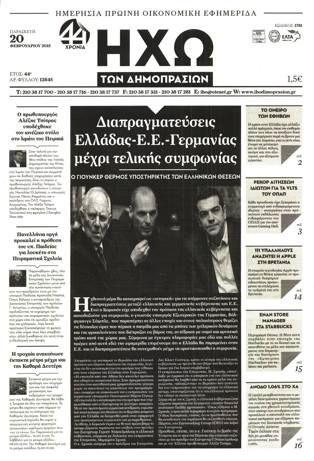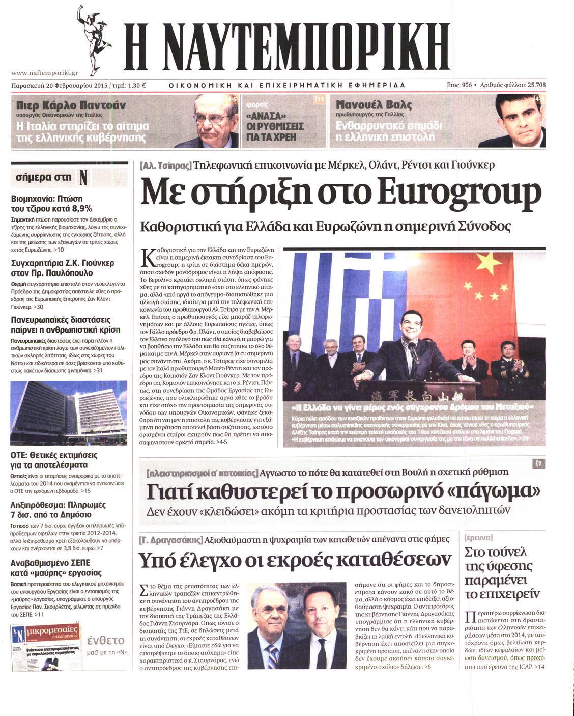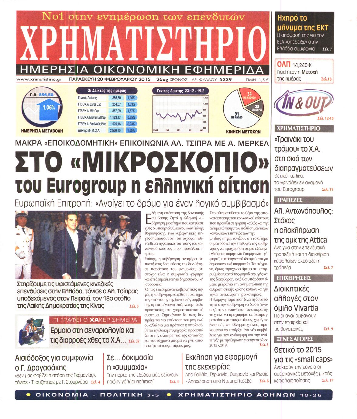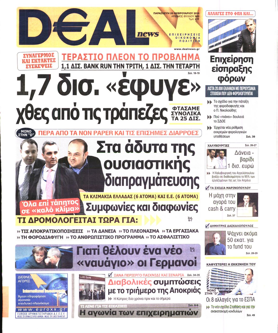 Οι οικονομικές εφημερίδες Enikos Newsroom 07:52, Παρασκευή 20 Φεβρουαρίου 2015 Media Διαβάστε τα πρωτοσέλιδα των σημερινών οικονομικών εφημερίδων: ΕΦΗΜΕΡΙΔΕΣ ΟΙΚΟΝΟΜΙΚΕΣ ΕΦΗΜΕΡΙΔΕΣ ΠΡΩΤΟΣΕΛΙΔΑ Μοιράσου το: σχολίασε κι εσύ (0 σχόλια) Ακολουθήστε το enikos.gr στο Google News και μάθετε πρώτοι όλες τις ειδήσεις Δείτε όλες τις τελευταίες ειδήσεις από την Ελλάδα και τον Κόσμο στο enikos.gr Ειδήσεις Ροή Ειδήσεων 2 ώρες πριν Πούτιν: «Ανοησίες» και «υστερίες» οι ισχυρισμοί της Ευρώπης για πιθανή σύγκρουση με τη Ρωσία – «Κάνουν πλύση εγκεφάλου» 6 ώρες πριν Έρευνα MRB: Η πρόθεση ψήφου και τα σημαντικότερα προβλήματα – Οι «λέξεις» που εκφράζουν τους πολίτες 3 ώρες πριν Αμοργός: «Θα προσπαθήσω να το κάνω κάθε μέρα» – Ποιος είναι ο αγρότης που έστησε μόνος του το πρώτο μπλόκο στο νησί 48 λεπτά πριν Τραγωδία στην Αλεξανδρούπολη: Παιδάκι 3 ετών μεταφέρθηκε νεκρό από τη μητέρα του στο νοσοκομείο 1 ώρα πριν Συνάντηση Μητσοτάκη με την Κ.Ο. της ΝΔ: Οι αφίξεις των βουλευτών, τα γλυκά και τα «πηγαδάκια» 6 ώρες πριν Τα 4 ζώδια που ξαναβρίσκουν τον εαυτό τους – «Μπαίνετε επιτέλους στην ουσία των πραγμάτων» 7 ώρες πριν 20 χρόνια τα Χριστούγεννα ξεκινούν στα Public με μεγάλη ποικιλία σε δώρα! 5 ώρες πριν «Δεν είχα κλάψει από τότε που διαγνώστηκα με καρκίνο, ώσπου ένα τηλεφώνημα με έκανε να λυγίσω» – Η συγκλονιστική εξομολόγηση ενός άνδρα 4 ώρες πριν Τα 7 σπάνια χαρακτηριστικά που κάνουν κάποιους ανθρώπους ακαταμάχητους 2 λεπτά πριν Νέο επεισόδιο στην Εξεταστική ανάμεσα σε Κωνσταντοπούλου και Συρεγγέλα – Διακόπηκε προσωρινά η συνεδρίαση 9 λεπτά πριν Εξαφάνιση 33χρονου γιατρού στην Κρήτη: Για απάτη κατηγορείται ο ιδιωτικός ερευνητής που συνελήφθη 14 λεπτά πριν Εξεταστική για ΟΠΕΚΕΠΕ-Μυλωνάκης: Διαχρονικές, διακομματικές οι παθογένειες – Τι είπε για Μπουκώρο και Βάρρα 20 λεπτά πριν Παναθηναϊκός: Θέλει τον Κέπα της Άρσεναλ δανεικό για 6 μήνες 26 λεπτά πριν Το Λαϊκό Λαχείο στον ρυθμό των Χριστουγέννων: Μοιράζει μέχρι και 1.000.000 ευρώ στην ειδική κλήρωση της Παρασκευής 19 Δεκεμβρίου ENIKOS NETWORK 5 πράγματα που αποφεύγει γαστρεντερολόγος για να μειώσει τον κίνδυνο καρκίνου του εντέρου Ανησυχητική αύξηση της υπέρτασης στα παιδιά – Πώς θα τα προστατέψουμε; ΕΛΕΤΑΕΝ: Πόσα χρήματα θα δοθούν σε δήμους και νοικοκυριά από τις ΑΠΕ «IRIS Παντού»: Στην κορυφή της Ευρώπης η Ελλάδα με 120 εκατ. ευρώ συναλλαγές το 2025 – Η σύγκριση με τις άλλες χώρες της Ευ... Σύγχρονος Νοστράδαμος: Προειδοποιεί για «μεγάλο γεγονός» τους επόμενους μήνες που θα συγκλονίσει τη Βρετανία και τον κόσμο Τεστ παρατηρητικότητας: Μπορείτε να βρείτε τις 3 διαφορές στις εικόνες με έναν πιγκουίνο σε 14 δευτερόλεπτα περισσότερα 12:35 , Τετάρτη 17 Δεκεμβρίου 2025 Μίρκα Παπακωνσταντίνου: «Δεν ήμουν αισιόδοξη για τα νούμερα – Είμαι ρεαλίστρια» Στα γυρίσματα του εορταστικού επεισοδίου της αγαπημένης σειράς “Το Σόι Σου”, βρέθηκε η κάμερα ... 12:12 , Τετάρτη 17 Δεκεμβρίου 2025 Ακούστε την εκπομπή του Νίκου Χατζηνικολάου 17/12/2025 Ακούστε την εκπομπή του Νίκου Χατζηνικολάου στον ραδιοφωνικό σταθμό RealFm 97,8, την Τετάρτη 1... 11:35 , Τετάρτη 17 Δεκεμβρίου 2025 Home Alone: Το σπίτι της ταινίας θα ανακαινιστεί – Επιστροφή στην αισθητική της δεκαετίας του ’90 Οι νέοι ιδιοκτήτες του πραγματικού σπιτιού που παρουσιάζεται στην κλασική ταινία του 1990 «Hom... 11:25 , Τετάρτη 17 Δεκεμβρίου 2025 Grand Hotel: Απόψε το τελευταίο επεισόδιο της χρονιάς – Όλα τα μυστικά μένουν εδώ Το τελευταίο επεισόδιο της χρονιάς της σε