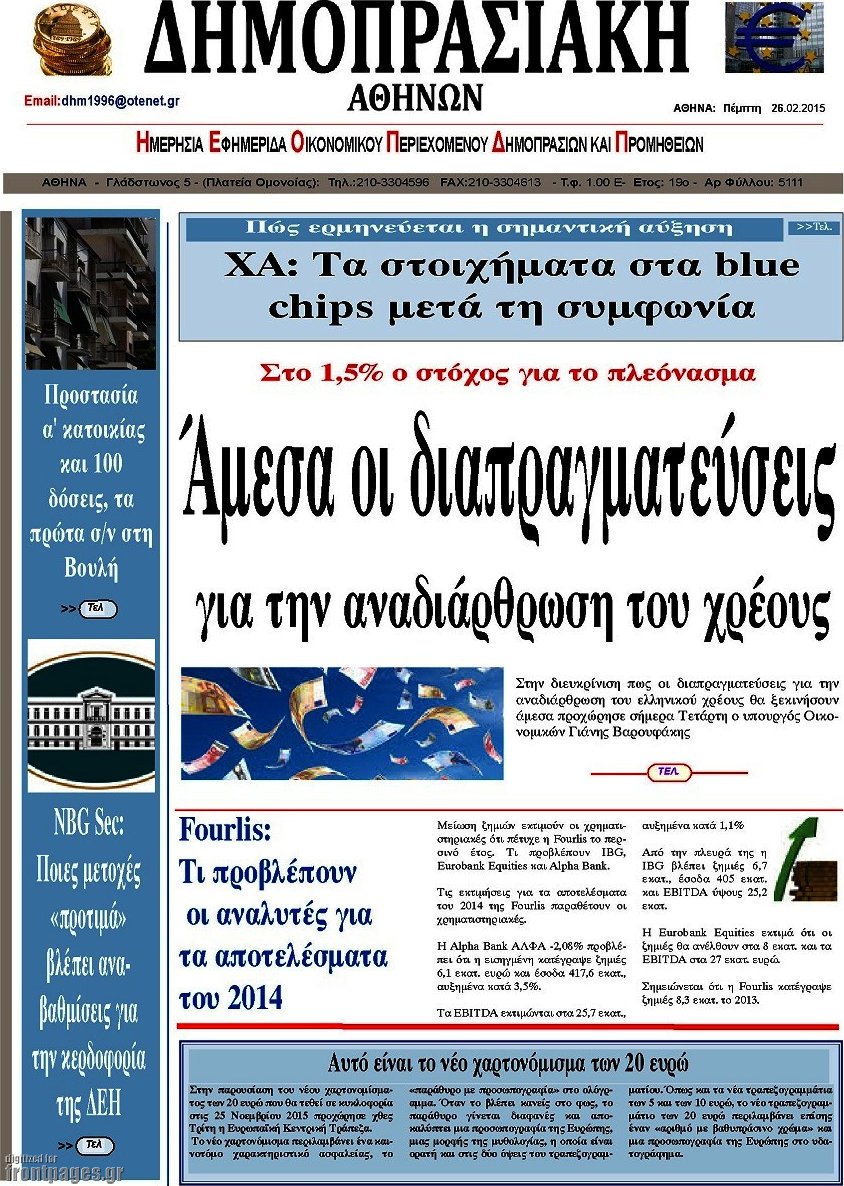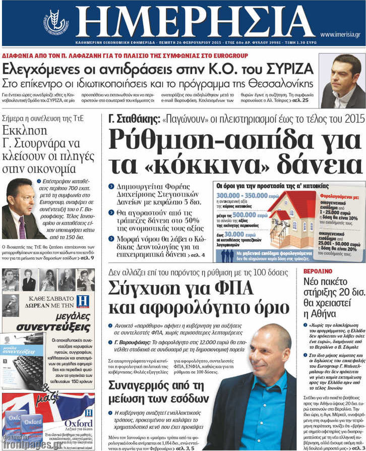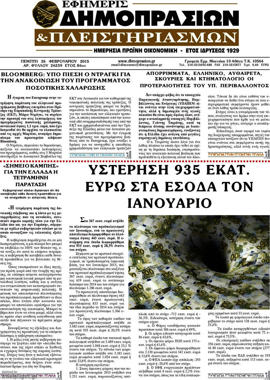 Οι οικονομικές εφημερίδες Enikos Newsroom 07:59, Πέμπτη 26 Φεβρουαρίου 2015 Media Διαβάστε τα σημερινά πρωτοσέλιδα των οικονομικών εφημερίδων: ΕΦΗΜΕΡΙΔΕΣ ΟΙΚΟΝΟΜΙΚΕΣ ΕΦΗΜΕΡΙΔΕΣ ΠΡΩΤΟΣΕΛΙΔΑ Μοιράσου το: σχολίασε κι εσύ (0 σχόλια) Ακολουθήστε το enikos.gr στο Google News και μάθετε πρώτοι όλες τις ειδήσεις Δείτε όλες τις τελευταίες ειδήσεις από την Ελλάδα και τον Κόσμο στο enikos.gr Ειδήσεις Ροή Ειδήσεων 51 λεπτά πριν Πώς στήθηκε η επιχείρηση «Ίπαλλος» που οδήγησε στη σύλληψη του «Έλληνα Εσκομπάρ» – «Ο πόλεμος ενάντια στους εμπόρους ναρκωτικών θα συνεχιστεί» 36 λεπτά πριν Δίκη Χρυσής Αυγής: Την ενοχή και των 42 κατηγορουμένων ζητά η εισαγγελέας 56 λεπτά πριν Κυψέλη: Στη φυλακή η 16χρονη που μαχαίρωσε συμμαθήτριά της 4 ώρες πριν Αμοργός: «Θα προσπαθήσω να το κάνω κάθε μέρα» – Ποιος είναι ο αγρότης που έστησε μόνος του το πρώτο μπλόκο στο νησί 2 ώρες πριν Τραγωδία στην Αλεξανδρούπολη: Παιδάκι 3 ετών μεταφέρθηκε νεκρό από τη μητέρα του στο νοσοκομείο 1 ώρα πριν Τα 3 ζώδια που θα δουν τη ζωή τους να αλλάζει ριζικά το 2026 – «Όλα γίνονται καλύτερα σταδιακά» 6 ώρες πριν «Δεν είχα κλάψει από τότε που διαγνώστηκα με καρκίνο, ώσπου ένα τηλεφώνημα με έκανε να λυγίσω» – Η συγκλονιστική εξομολόγηση ενός άνδρα 2 ώρες πριν Ο σπάνιος σεισμός που έλυσε τα χέρια των επιστημόνων – Αποκάλυψε ακριβώς όσα αναζητούσαν 8 ώρες πριν 20 χρόνια τα Χριστούγεννα ξεκινούν στα Public με μεγάλη ποικιλία σε δώρα! 33 δευτερόλεπτα πριν Νίκος Παππάς: Δημοσιογράφος καταγγέλλει τον ευρωβουλευτή του ΣΥΡΙΖΑ για επίθεση 6 λεπτά πριν ΥΠΕΞ σε Μίτσκοσκι: «Κάθε προσπάθεια αλλοίωσης της Συμφωνίας των Πρεσπών δεν πρόκειται να γίνει αποδεκτή» 11 λεπτά πριν Θεσσαλονίκη: Επίθεση αδέσποτου σκύλου σε κάτοικο στον Χορτιάτη – Διακομίστηκε στο νοσοκομείο 23 λεπτά πριν Θεσσαλονίκη: Ακυρώνονται τρεις παραστάσεις του ΚΘΒΕ λόγω στάσης εργασίας των εργαζομένων 29 λεπτά πριν Τραγωδία στην Αχαΐα: 48χρονος κατέρρευσε στο κυνήγι μπροστά στα μάτια του πατέρα του ENIKOS NETWORK Γιατί αναζητούμε τα Χριστούγεννα όλο και νωρίτερα; Ποιοι οι ψυχολογικοί και οι συναισθηματικοί λόγοι Σοβαροί κίνδυνοι από τη λάθος χορήγηση φαρμάκου για τις αιμορραγίες-Συστάσεις προς τους γιατρούς Επίδομα παιδιού: Πότε θα δοθεί η τελευταία δόση για το 2025 από τον ΟΠΕΚΑ και τι πρέπει να γνωρίζετε Eurostat: Κάτω από την αρχική εκτίμηση της Υπηρεσίας ο πληθωρισμός στην Ελλάδα τον Νοέμβριο του 2025 – Tα στοιχεία για την ... Χαρτογραφώντας το «σημείο χωρίς επιστροφή»: Για πρώτη φορά αποκαλύπτεται με λεπτομέρεια το ακανθώδες όριο της ατμόσφαιρας τ... Η Google καταργεί τη λειτουργία «dark web report» – Πώς θα μπορούν οι χρήστες να διαγράφουν τα δεδομένα τους περισσότερα 12:35 , Τετάρτη 17 Δεκεμβρίου 2025 Μίρκα Παπακωνσταντίνου: «Δεν ήμουν αισιόδοξη για τα νούμερα – Είμαι ρεαλίστρια» Στα γυρίσματα του εορταστικού επεισοδίου της αγαπημένης σειράς “Το Σόι Σου”, βρέθηκε η κάμερα ... 12:12 , Τετάρτη 17 Δεκεμβρίου 2025 Ακούστε την εκπομπή του Νίκου Χατζηνικολάου 17/12/2025 Ακούστε την εκπομπή του Νίκου Χατζηνικολάου στον ραδιοφωνικό σταθμό RealFm 97,8, την Τετάρτη 1... 11:35 , Τετάρτη 17 Δεκεμβρίου 2025 Home Alone: Το σπίτι της ταινίας θα ανακαινιστεί – Επιστροφή στην αισθητική της δεκαετίας του ’90 Οι νέοι ιδιοκτήτες του πραγματικού σπιτιού που παρουσιάζεται στην κλασική ταινία του 1990 «Hom... 11:25 , Τετάρτη 17 Δεκεμβρίου 2025 Grand Hotel: Απόψε το τελευταίο επεισόδιο της χρονιάς – Όλα τα μυστικά μένουν εδώ Το τελευταίο επεισόδιο της χρονιάς