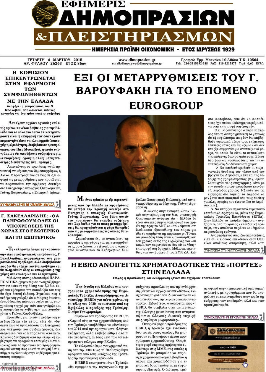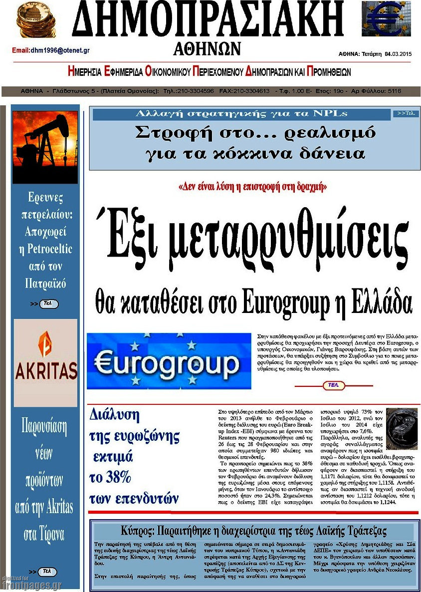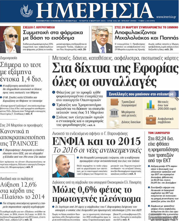 Οι οικονομικές εφημερίδες Enikos Newsroom 07:50, Τετάρτη 04 Μαρτίου 2015 Media Διαβάστε τα σημερινά πρωτοσέλιδα των Οικονομικών εφημερίδων: ΕΦΗΜΕΡΙΔΕΣ ΟΙΚΟΝΟΜΙΚΕΣ ΕΦΗΜΕΡΙΔΕΣ ΠΡΩΤΟΣΕΛΙΔΑ Μοιράσου το: σχολίασε κι εσύ (0 σχόλια) Ακολουθήστε το enikos.gr στο Google News και μάθετε πρώτοι όλες τις ειδήσεις Δείτε όλες τις τελευταίες ειδήσεις από την Ελλάδα και τον Κόσμο στο enikos.gr Ειδήσεις Ροή Ειδήσεων 4 ώρες πριν Εκτός ευρωομάδας ΣΥΡΙΖΑ ο Νίκος Παππάς μετά την επίθεση στον δημοσιογράφο Νίκο Γιαννόπουλο – Η μήνυση και οι νέες δηλώσεις 4 ώρες πριν «Αγριεύουν» οι αγρότες: «Δεν συντρέχει λόγος συνάντησης με τον πρωθυπουργό» – Ώρα αποφάσεων στη σύσκεψη της Πέμπτης 4 ώρες πριν Κυψέλη: Χωρίς την οικογένειά της δίπλα της απολογήθηκε η 16χρονη – «Της είχε επιτεθεί κάποιος για να την βιάσει, φοβήθηκε και κυκλοφορούσε με μαχαίρι» 4 ώρες πριν Politico: Το πρόβλημα της Ευρώπης δεν είναι το Βέλγιο αλλά ο Ντόναλντ Τραμπ 6 ώρες πριν Αλεξανδρούπολη: Πολυοργανική ανεπάρκεια λόγω υποσιτισμού η αιτία θανάτου του 3χρονου αγοριού 4 ώρες πριν Μυστήριο με τεράστιες κυκλικές πέτρες 200 κιλών – Ανακαλύφθηκαν τυχαία κατά τη διάρκεια οδικών έργων και κανείς δεν ξέρει από πού προέρχονται 5 ώρες πριν Ύπνος: Ειδικός εξηγεί τον πραγματικό λόγο που ξυπνάτε στις 4 τα ξημερώματα – Ο ρόλος των ορμονών και του κιρκάδιου ρυθμού 6 ώρες πριν Αριθμολογία: Οι άνθρωποι που έχουν γεννηθεί αυτές τις 4 ημερομηνίες, είναι τρυφεροί και αγαπούν ανιδιοτελώς 18 ώρες πριν 20 χρόνια τα Χριστούγεννα ξεκινούν στα Public με μεγάλη ποικιλία σε δώρα! 22 λεπτά πριν Σουδάν: Επιδρομή drone σε χωριό του Νότιου Κορντοφάν – Οκτώ νεκροί 38 λεπτά πριν Αλ Τσαντίρι Νιουζ: Η κόρη της Πάολα στο κοινό – Η ατάκα Λαζόπουλου που την έκανε να «κοκκινήσει» 52 λεπτά πριν Ρωσία: Ουκρανικές δυνάμεις έπληξαν πλοίο στο λιμάνι του Ροστόφ – Αναφορές για θύματα 1 ώρα πριν Βρυξέλλες: Νυχτερινό… μπλόκο αγροτών μπροστά από το κτίριο της Ευρωπαϊκής Επιτροπής – Πάνω από 100 τρακτέρ απέκλεισαν την λεωφόρο 1 ώρα πριν Euroleague: Απρόσμενη ήττα για την Μονακό του Βασίλη Σπανούλη – Η βαθμολογία μετά το τέλος της 16ης αγωνιστικής ENIKOS NETWORK Αϋπνία: Το κόλπο που θα σας βοηθήσει να κοιμηθείτε απόψε – Είναι απλό και έχει αποτέλεσμα 2,6 εκατομμύρια πολίτες έχουν ήδη εμβολιαστεί κατά της γρίπης ΕΛΣΤΑΤ: Τι δείχνουν τα νέα στοιχεία για τις ηλεκτρονικές παραγγελίες των επιχειρήσεων ΚΕΠΕ: Οι 3 διακριτές συμβολές των ΜμΕ και της μεταποίησης στην ελληνική οικονομία Χαρτογραφώντας το «σημείο χωρίς επιστροφή»: Για πρώτη φορά αποκαλύπτεται με λεπτομέρεια το ακανθώδες όριο της ατμόσφαιρας τ... Η Google καταργεί τη λειτουργία «dark web report» – Πώς θα μπορούν οι χρήστες να διαγράφουν τα δεδομένα τους περισσότερα 02:30 , Πέμπτη 18 Δεκεμβρίου 2025 Αλ Τσαντίρι Νιουζ: Η κόρη της Πάολα στο κοινό – Η ατάκα Λαζόπουλου που την έκανε να «κοκκινήσει» Γιορτινή διάθεση και ευχάριστες στιγμές γέμισε η αποψινή, τελευταία για το 2025, εκπομπή του «... 22:24 , Τετάρτη 17 Δεκεμβρίου 2025 Το Σπίτι Δίπλα Στο Ποτάμι: Σε κίνδυνο η υγεία του Απόστολου – Τι θα δούμε απόψε “Το Σπίτι Δίπλα στο Ποτάμι” ξετυλίγει το νήμα της ζωής των πέντε αδελφών με καταισ... 21:14 , Τετάρτη 17 Δεκεμβρίου 2025 Παιχνίδια Εκδίκησης: Θα καταφέρει ο Χρήστος να κλονίσει την εμπιστοσύνη της Μάγιας απέναντι στον Άγη; Τα «Παιχνίδια Εκδίκησης» έρχονται απόψε στις 22:30, στον Αντ1, με το τελευταίο επεισόδιο της χ... 20:57 , Τετάρτη 17 Δεκεμβρίου 2025 Άγιος Έρωτας: Η Χλόη καταθέτει εναντίο