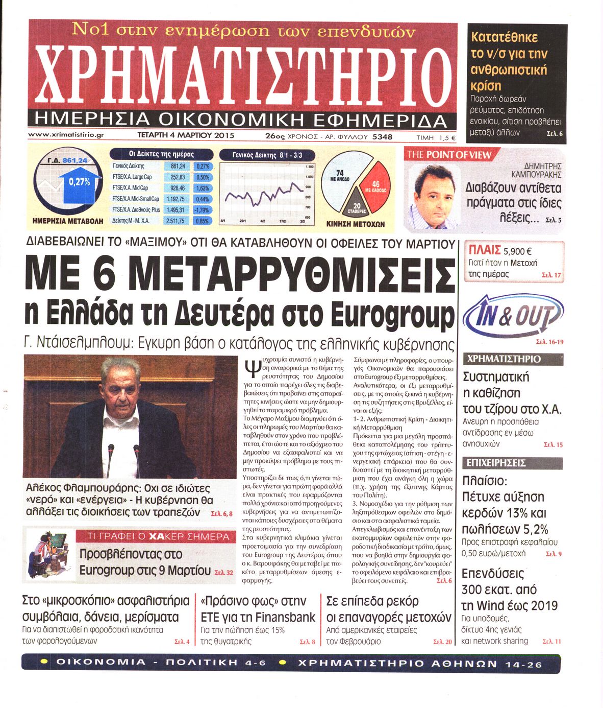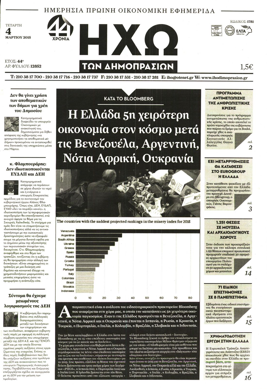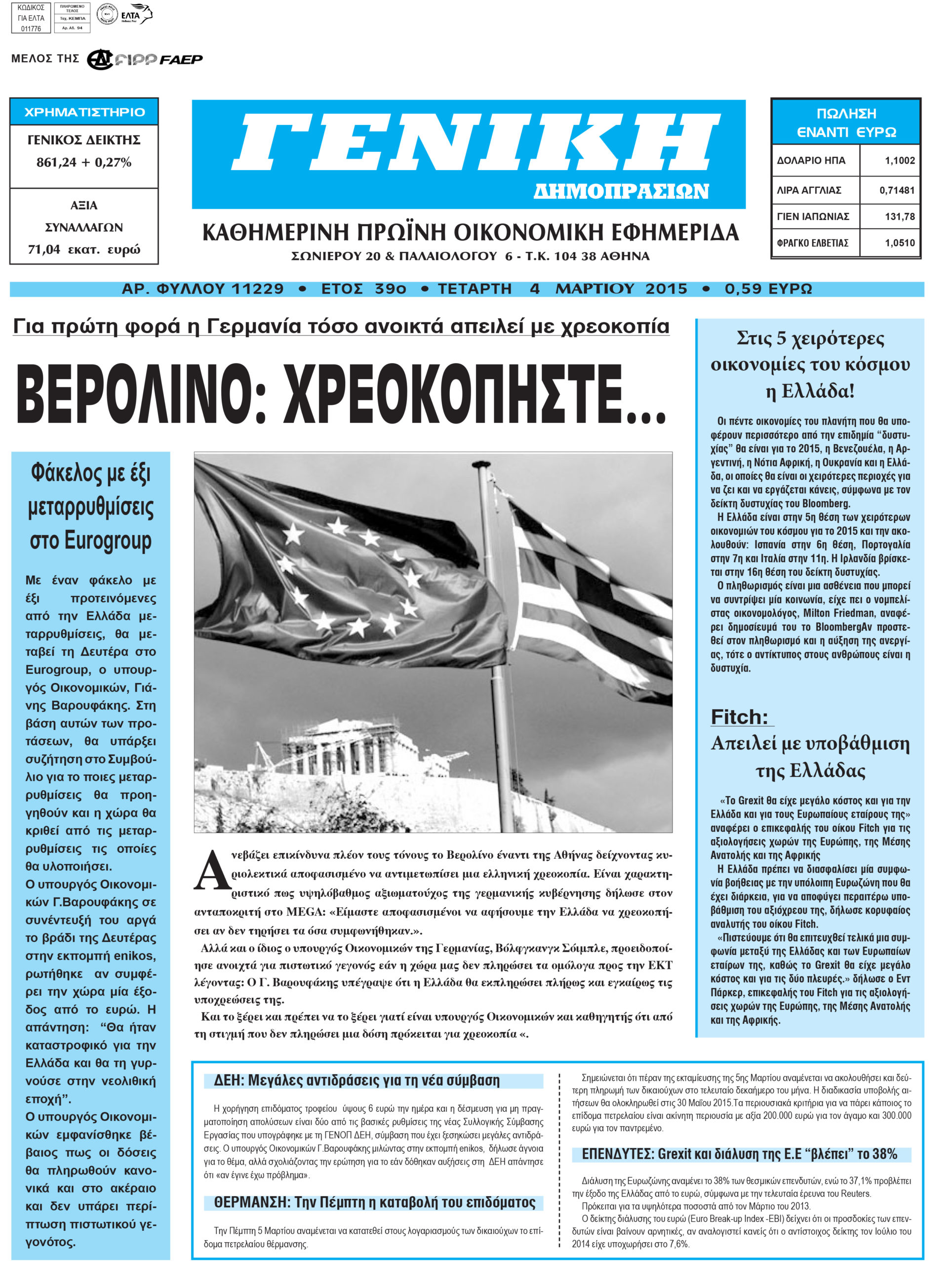 Οι οικονομικές εφημερίδες Enikos Newsroom 07:50, Τετάρτη 04 Μαρτίου 2015 Media Διαβάστε τα σημερινά πρωτοσέλιδα των Οικονομικών εφημερίδων: ΕΦΗΜΕΡΙΔΕΣ ΟΙΚΟΝΟΜΙΚΕΣ ΕΦΗΜΕΡΙΔΕΣ ΠΡΩΤΟΣΕΛΙΔΑ Μοιράσου το: σχολίασε κι εσύ (0 σχόλια) Ακολουθήστε το enikos.gr στο Google News και μάθετε πρώτοι όλες τις ειδήσεις Δείτε όλες τις τελευταίες ειδήσεις από την Ελλάδα και τον Κόσμο στο enikos.gr Ειδήσεις Ροή Ειδήσεων 4 ώρες πριν Εκτός ευρωομάδας ΣΥΡΙΖΑ ο Νίκος Παππάς μετά την επίθεση στον δημοσιογράφο Νίκο Γιαννόπουλο – Η μήνυση και οι νέες δηλώσεις 4 ώρες πριν «Αγριεύουν» οι αγρότες: «Δεν συντρέχει λόγος συνάντησης με τον πρωθυπουργό» – Ώρα αποφάσεων στη σύσκεψη της Πέμπτης 4 ώρες πριν Κυψέλη: Χωρίς την οικογένειά της δίπλα της απολογήθηκε η 16χρονη – «Της είχε επιτεθεί κάποιος για να την βιάσει, φοβήθηκε και κυκλοφορούσε με μαχαίρι» 4 ώρες πριν Politico: Το πρόβλημα της Ευρώπης δεν είναι το Βέλγιο αλλά ο Ντόναλντ Τραμπ 6 ώρες πριν Αλεξανδρούπολη: Πολυοργανική ανεπάρκεια λόγω υποσιτισμού η αιτία θανάτου του 3χρονου αγοριού 4 ώρες πριν Μυστήριο με τεράστιες κυκλικές πέτρες 200 κιλών – Ανακαλύφθηκαν τυχαία κατά τη διάρκεια οδικών έργων και κανείς δεν ξέρει από πού προέρχονται 5 ώρες πριν Ύπνος: Ειδικός εξηγεί τον πραγματικό λόγο που ξυπνάτε στις 4 τα ξημερώματα – Ο ρόλος των ορμονών και του κιρκάδιου ρυθμού 6 ώρες πριν Αριθμολογία: Οι άνθρωποι που έχουν γεννηθεί αυτές τις 4 ημερομηνίες, είναι τρυφεροί και αγαπούν ανιδιοτελώς 18 ώρες πριν 20 χρόνια τα Χριστούγεννα ξεκινούν στα Public με μεγάλη ποικιλία σε δώρα! 22 λεπτά πριν Σουδάν: Επιδρομή drone σε χωριό του Νότιου Κορντοφάν – Οκτώ νεκροί 38 λεπτά πριν Αλ Τσαντίρι Νιουζ: Η κόρη της Πάολα στο κοινό – Η ατάκα Λαζόπουλου που την έκανε να «κοκκινήσει» 52 λεπτά πριν Ρωσία: Ουκρανικές δυνάμεις έπληξαν πλοίο στο λιμάνι του Ροστόφ – Αναφορές για θύματα 1 ώρα πριν Βρυξέλλες: Νυχτερινό… μπλόκο αγροτών μπροστά από το κτίριο της Ευρωπαϊκής Επιτροπής – Πάνω από 100 τρακτέρ απέκλεισαν την λεωφόρο 1 ώρα πριν Euroleague: Απρόσμενη ήττα για την Μονακό του Βασίλη Σπανούλη – Η βαθμολογία μετά το τέλος της 16ης αγωνιστικής ENIKOS NETWORK Αϋπνία: Το κόλπο που θα σας βοηθήσει να κοιμηθείτε απόψε – Είναι απλό και έχει αποτέλεσμα 2,6 εκατομμύρια πολίτες έχουν ήδη εμβολιαστεί κατά της γρίπης ΕΛΣΤΑΤ: Τι δείχνουν τα νέα στοιχεία για τις ηλεκτρονικές παραγγελίες των επιχειρήσεων ΚΕΠΕ: Οι 3 διακριτές συμβολές των ΜμΕ και της μεταποίησης στην ελληνική οικονομία Χαρτογραφώντας το «σημείο χωρίς επιστροφή»: Για πρώτη φορά αποκαλύπτεται με λεπτομέρεια το ακανθώδες όριο της ατμόσφαιρας τ... Η Google καταργεί τη λειτουργία «dark web report» – Πώς θα μπορούν οι χρήστες να διαγράφουν τα δεδομένα τους περισσότερα 02:30 , Πέμπτη 18 Δεκεμβρίου 2025 Αλ Τσαντίρι Νιουζ: Η κόρη της Πάολα στο κοινό – Η ατάκα Λαζόπουλου που την έκανε να «κοκκινήσει» Γιορτινή διάθεση και ευχάριστες στιγμές γέμισε η αποψινή, τελευταία για το 2025, εκπομπή του «... 22:24 , Τετάρτη 17 Δεκεμβρίου 2025 Το Σπίτι Δίπλα Στο Ποτάμι: Σε κίνδυνο η υγεία του Απόστολου – Τι θα δούμε απόψε “Το Σπίτι Δίπλα στο Ποτάμι” ξετυλίγει το νήμα της ζωής των πέντε αδελφών με καταισ... 21:14 , Τετάρτη 17 Δεκεμβρίου 2025 Παιχνίδια Εκδίκησης: Θα καταφέρει ο Χρήστος να κλονίσει την εμπιστοσύνη της Μάγιας απέναντι στον Άγη; Τα «Παιχνίδια Εκδίκησης» έρχονται απόψε στις 22:30, στον Αντ1, με το τελευταίο επεισόδιο της χ... 20:57 , Τετάρτη 17 Δεκεμβρίου 2025 Άγιος Έρωτας: Η Χλόη καταθέτει εναντίο