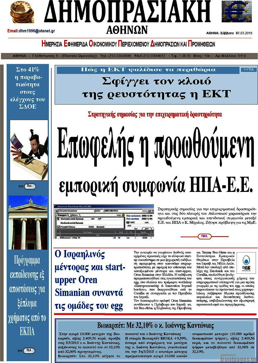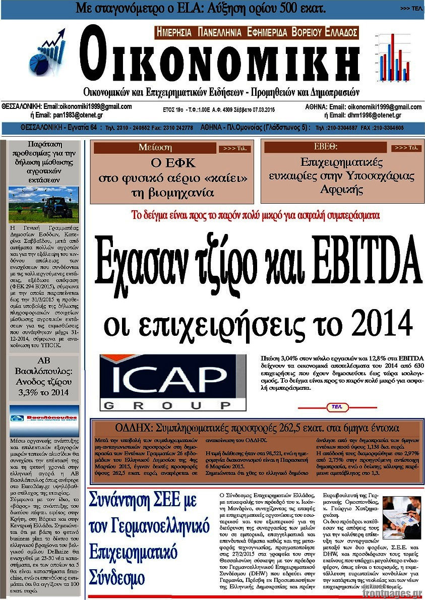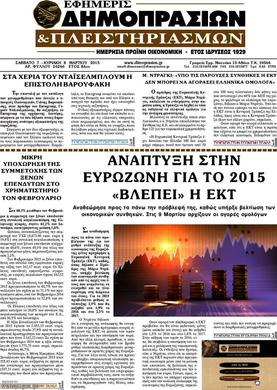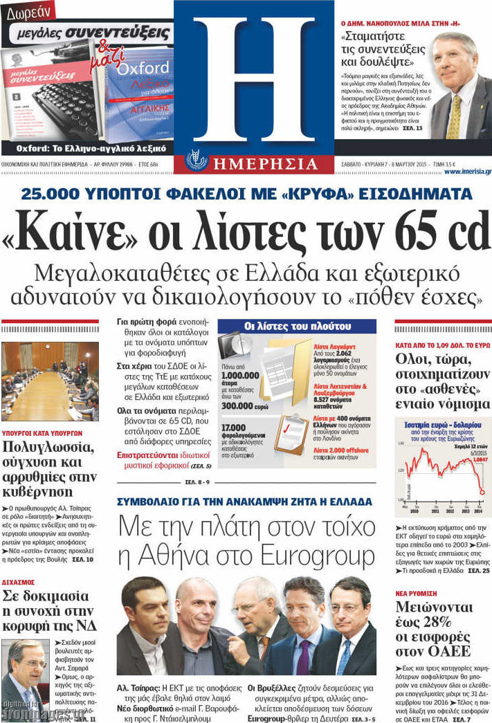 Οι οικονομικές εφημερίδες Enikos Newsroom 08:12, Σάββατο 07 Μαρτίου 2015 Media Διαβάστε τα πρωτοσέλιδα των οικονομικών εφημερίδων: ΕΦΗΜΕΡΙΔΕΣ ΟΙΚΟΝΟΜΙΚΕΣ ΕΦΗΜΕΡΙΔΕΣ ΠΡΩΤΟΣΕΛΙΔΑ Μοιράσου το: σχολίασε κι εσύ (0 σχόλια) Ακολουθήστε το enikos.gr στο Google News και μάθετε πρώτοι όλες τις ειδήσεις Δείτε όλες τις τελευταίες ειδήσεις από την Ελλάδα και τον Κόσμο στο enikos.gr Ειδήσεις Ροή Ειδήσεων 2 ώρες πριν Κλιμακώνουν από σήμερα τις κινητοποιήσεις οι αγρότες: Νέα μπλόκα, κλείσιμο παρακαμπτηρίων και άνοιγμα διοδίων – Το νέο μήνυμα Μητσοτάκη 2 ώρες πριν Ευρωπαϊκό Συμβούλιο: Όλες οι λεπτομέρειες για το δάνειο των 90 δισ. ευρώ στην Ουκρανία – Τα συμπεράσματα της Συνόδου Κορυφής 1 ώρα πριν Νίκος Παππάς: Δρομολογήθηκαν οι διαδικασίες για τη διαγραφή του από τον ΣΥΡΙΖΑ μέσα στις γιορτές 3 ώρες πριν Συντάξεις: Οι κερδισμένοι και οι χαμένοι από τις αυξήσεις – Αναλυτικός οδηγός και παραδείγματα 2 ώρες πριν Peter Greene: Ο πρωταγωνιστής του «Pulp Fiction» είχε τραύματα στο σώμα του όταν βρέθηκε νεκρός στο αιματοβαμμένο διαμέρισμα 2 ώρες πριν Πώς το αρχαίο DNA του κυνηγού – συλλέκτη ξεκλείδωσε τα μυστικά της μακροζωίας 2 ημέρες πριν 20 χρόνια τα Χριστούγεννα ξεκινούν στα Public με μεγάλη ποικιλία σε δώρα! 1 ώρα πριν Ο σύζυγός της συμπεριφέρεται όπως το παιδί τους – «Χρησιμοποιεί αστείες δικαιολογίες για να μην κάνει δουλειές και να ξοδεύει λεφτά» 17 λεπτά πριν Αλλαγή σελίδας για 3 ζώδια – «Μία δύσκολη περίοδος φτάνει στο τέλος της» 2 λεπτά πριν Κόστα σε αγρότες: «Η Ευρώπη σας ακούει» – Μικρή αναβολή στην υπογραφή της συμφωνίας με την Mercosur, λέει η Φον Ντερ Λάιεν 7 λεπτά πριν Ελένη Χατζίδου: «Έχω δεχτεί σεξουαλική παρενόχληση, δεν ήμουν αρκετά γενναία για να το καταγγείλω» – Η αποκάλυψη που σόκαρε τους συνεργάτες της 12 λεπτά πριν Τα νούμερα τηλεθέασης της πρωινής ζώνης – Πρώτο το «Super Κατερίνα» 17 λεπτά πριν Αλλαγή σελίδας για 3 ζώδια – «Μία δύσκολη περίοδος φτάνει στο τέλος της» 25 λεπτά πριν Κρούσμα μηνιγγίτιδας σε Λύκειο των Χανίων – Στο νοσοκομείο μια μαθήτρια ENIKOS NETWORK Πότε μπορεί το χλωμό δέρμα να σχετίζεται με σοβαρή νόσο Ενίσχυση του μεταβολισμού: Η Νο1 άσκηση που πρέπει να κάνουν οι γυναίκες μετά τα 35 Συντάξεις: Οι κερδισμένοι και οι χαμένοι από τις αυξήσεις – Αναλυτικός οδηγός Στεγαστικό: Τι λέει η ΠΟΜΙΔΑ για τα νέα μέτρα που ανακοίνωσε ο Κυριάκος Μητσοτάκης Χαρτογραφώντας το «σημείο χωρίς επιστροφή»: Για πρώτη φορά αποκαλύπτεται με λεπτομέρεια το ακανθώδες όριο της ατμόσφαιρας τ... Η Google καταργεί τη λειτουργία «dark web report» – Πώς θα μπορούν οι χρήστες να διαγράφουν τα δεδομένα τους περισσότερα 08:00 , Παρασκευή 19 Δεκεμβρίου 2025 Την Κυριακή με τη Realnews: Δωροεπιταγή 10€ Δωροεπιταγή αξίας 10€ για αγορές άνω των 60€ από τα πολυκαταστήματα FactoryOutlet H προσφορά ι... 05:48 , Παρασκευή 19 Δεκεμβρίου 2025 Οι οικονομικές εφημερίδες 19/12/2025 Διαβάστε τα πρωτοσέλιδα από τις οικονομικές εφημερίδες, σήμερα 19/12/2025. 05:43 , Παρασκευή 19 Δεκεμβρίου 2025 Οι αθλητικές εφημερίδες 19/12/2025 Διαβάστε τα πρωτοσέλιδα από τις αθλητικές εφημερίδες, σήμερα 19/12/2025. 05:38 , Παρασκευή 19 Δεκεμβρίου 2025 Οι πολιτικές εφημερίδες 19/12/2025 Διαβάστε τα πρωτοσέλιδα από τις πολιτικές εφημερίδες, σήμερα 19/12/2025. ΤΕΛΕΥΤΑΙΕΣ ΕΙΔΗΣΕΙΣ 7 λεπτά πριν Ελένη Χατζίδου: «Έχω δεχτεί σεξουαλική παρενόχληση,... 12 λεπτά πριν Τα νούμερα τηλεθέασης της πρωινής ζώνης – Πρώτο το... 17 λεπτά πριν Αλλαγή σελίδας για 3 ζώδια – «Μία δύσκολη περίοδος... 25 λεπτά πριν Κρούσμα μηνιγγίτιδας σε Λύκ