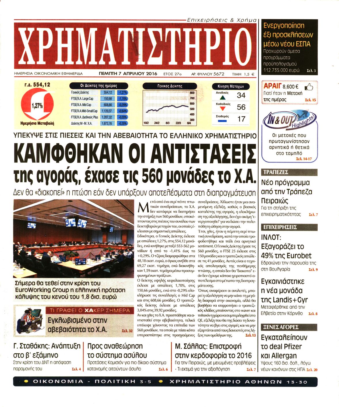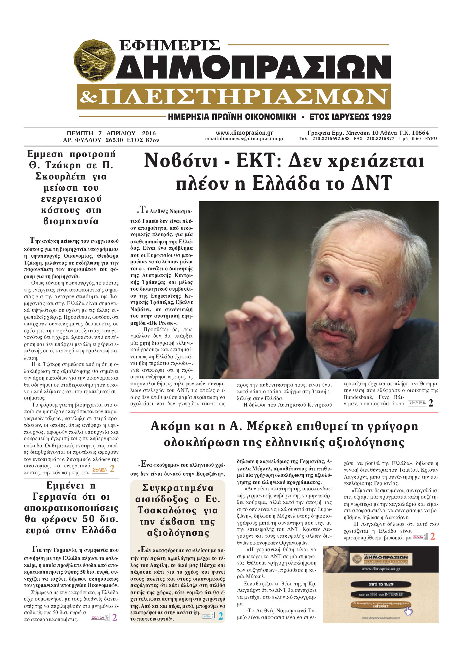 Οι οικονομικές εφημερίδες 7/4/2016 Enikos Newsroom 06:25, Πέμπτη 07 Απριλίου 2016 Media Διαβάστε τα σημερινά πρωτοσέλιδα των οικονομικών εφημερίδων: ΟΙΚΟΝΟΜΙΚΕΣ ΕΦΗΜΕΡΙΔΕΣ ΠΡΩΤΟΣΕΛΙΔΑ Μοιράσου το: σχολίασε κι εσύ (0 σχόλια) Ακολουθήστε το enikos.gr στο Google News και μάθετε πρώτοι όλες τις ειδήσεις Δείτε όλες τις τελευταίες ειδήσεις από την Ελλάδα και τον Κόσμο στο enikos.gr Ειδήσεις Ροή Ειδήσεων 6 ώρες πριν Εκτός ευρωομάδας ΣΥΡΙΖΑ ο Νίκος Παππάς μετά την επίθεση στον δημοσιογράφο Νίκο Γιαννόπουλο – Η μήνυση και οι νέες δηλώσεις 6 ώρες πριν «Αγριεύουν» οι αγρότες: «Δεν συντρέχει λόγος συνάντησης με τον πρωθυπουργό» – Ώρα αποφάσεων στη σύσκεψη της Πέμπτης 6 ώρες πριν Κυψέλη: Χωρίς την οικογένειά της δίπλα της απολογήθηκε η 16χρονη – «Της είχε επιτεθεί κάποιος για να την βιάσει, φοβήθηκε και κυκλοφορούσε με μαχαίρι» 6 ώρες πριν Politico: Το πρόβλημα της Ευρώπης δεν είναι το Βέλγιο αλλά ο Ντόναλντ Τραμπ 7 ώρες πριν Αλεξανδρούπολη: Πολυοργανική ανεπάρκεια λόγω υποσιτισμού η αιτία θανάτου του 3χρονου αγοριού 6 ώρες πριν Μυστήριο με τεράστιες κυκλικές πέτρες 200 κιλών – Ανακαλύφθηκαν τυχαία κατά τη διάρκεια οδικών έργων και κανείς δεν ξέρει από πού προέρχονται 7 ώρες πριν Ύπνος: Ειδικός εξηγεί τον πραγματικό λόγο που ξυπνάτε στις 4 τα ξημερώματα – Ο ρόλος των ορμονών και του κιρκάδιου ρυθμού 8 ώρες πριν Αριθμολογία: Οι άνθρωποι που έχουν γεννηθεί αυτές τις 4 ημερομηνίες, είναι τρυφεροί και αγαπούν ανιδιοτελώς 20 ώρες πριν 20 χρόνια τα Χριστούγεννα ξεκινούν στα Public με μεγάλη ποικιλία σε δώρα! 10 λεπτά πριν Ντόναλντ Τραμπ: Παρουσίασε τα επιτεύγματα της διακυβέρνησής του – Σκληρή κριτική στον Τζο Μπάιντεν 25 λεπτά πριν Κτηνοτρόφοι: Με δάκρυα στα μάτια ζουν τον εφιάλτη των άδειων στάβλων – «Καταστράφηκαν οι ζωές μας» 40 λεπτά πριν Νέο αμερικανικό πλήγμα σε σκάφος που φέρεται να μετέφερε ναρκωτικά στον Ειρηνικό – Τέσσερις νεκροί 55 λεπτά πριν Αλ Τσαντίρι Νιουζ: «Λύγισε» ο Δημήτρης Λάλος για τον Δημήτρη Ήμελλο – «Τον μνημονεύω, να ‘ναι καλά εκεί που είναι» 1 ώρα πριν GNTM: Με δάκρυα τον αποχαιρέτησε η Ηλιάνα Παπαγεωργίου πριν από τον ημιτελικό – «Αισθάνομαι πολύ παράξενα» ENIKOS NETWORK Αϋπνία: Το κόλπο που θα σας βοηθήσει να κοιμηθείτε απόψε – Είναι απλό και έχει αποτέλεσμα 2,6 εκατομμύρια πολίτες έχουν ήδη εμβολιαστεί κατά της γρίπης ΕΛΣΤΑΤ: Τι δείχνουν τα νέα στοιχεία για τις ηλεκτρονικές παραγγελίες των επιχειρήσεων ΚΕΠΕ: Οι 3 διακριτές συμβολές των ΜμΕ και της μεταποίησης στην ελληνική οικονομία Χαρτογραφώντας το «σημείο χωρίς επιστροφή»: Για πρώτη φορά αποκαλύπτεται με λεπτομέρεια το ακανθώδες όριο της ατμόσφαιρας τ... Η Google καταργεί τη λειτουργία «dark web report» – Πώς θα μπορούν οι χρήστες να διαγράφουν τα δεδομένα τους περισσότερα 02:30 , Πέμπτη 18 Δεκεμβρίου 2025 Αλ Τσαντίρι Νιουζ: Η κόρη της Πάολα στο κοινό – Η ατάκα Λαζόπουλου που την έκανε να «κοκκινήσει» Γιορτινή διάθεση και ευχάριστες στιγμές γέμισε η αποψινή, τελευταία για το 2025, εκπομπή του «... 22:24 , Τετάρτη 17 Δεκεμβρίου 2025 Το Σπίτι Δίπλα Στο Ποτάμι: Σε κίνδυνο η υγεία του Απόστολου – Τι θα δούμε απόψε “Το Σπίτι Δίπλα στο Ποτάμι” ξετυλίγει το νήμα της ζωής των πέντε αδελφών με καταισ... 21:14 , Τετάρτη 17 Δεκεμβρίου 2025 Παιχνίδια Εκδίκησης: Θα καταφέρει ο Χρήστος να κλονίσει την εμπιστοσύνη της Μάγιας απέναντι στον Άγη; Τα «Παιχνίδια Εκδίκησης» έρχονται απόψε στις 22:30, στον Αντ1, με το τελευταίο επεισόδιο της χ... 20:57 , Τετάρτη 17 Δεκεμβρίου 2025 Άγιο
