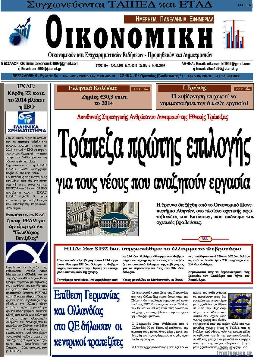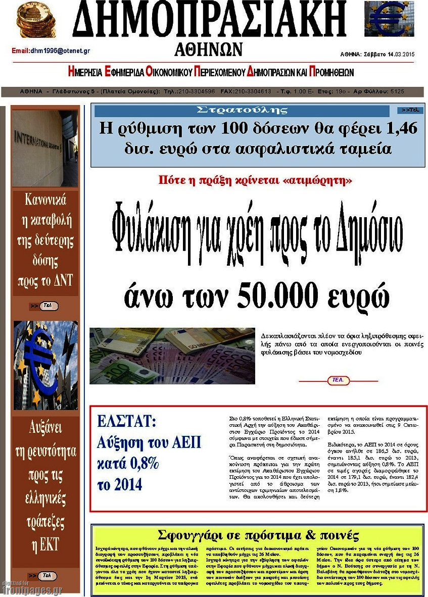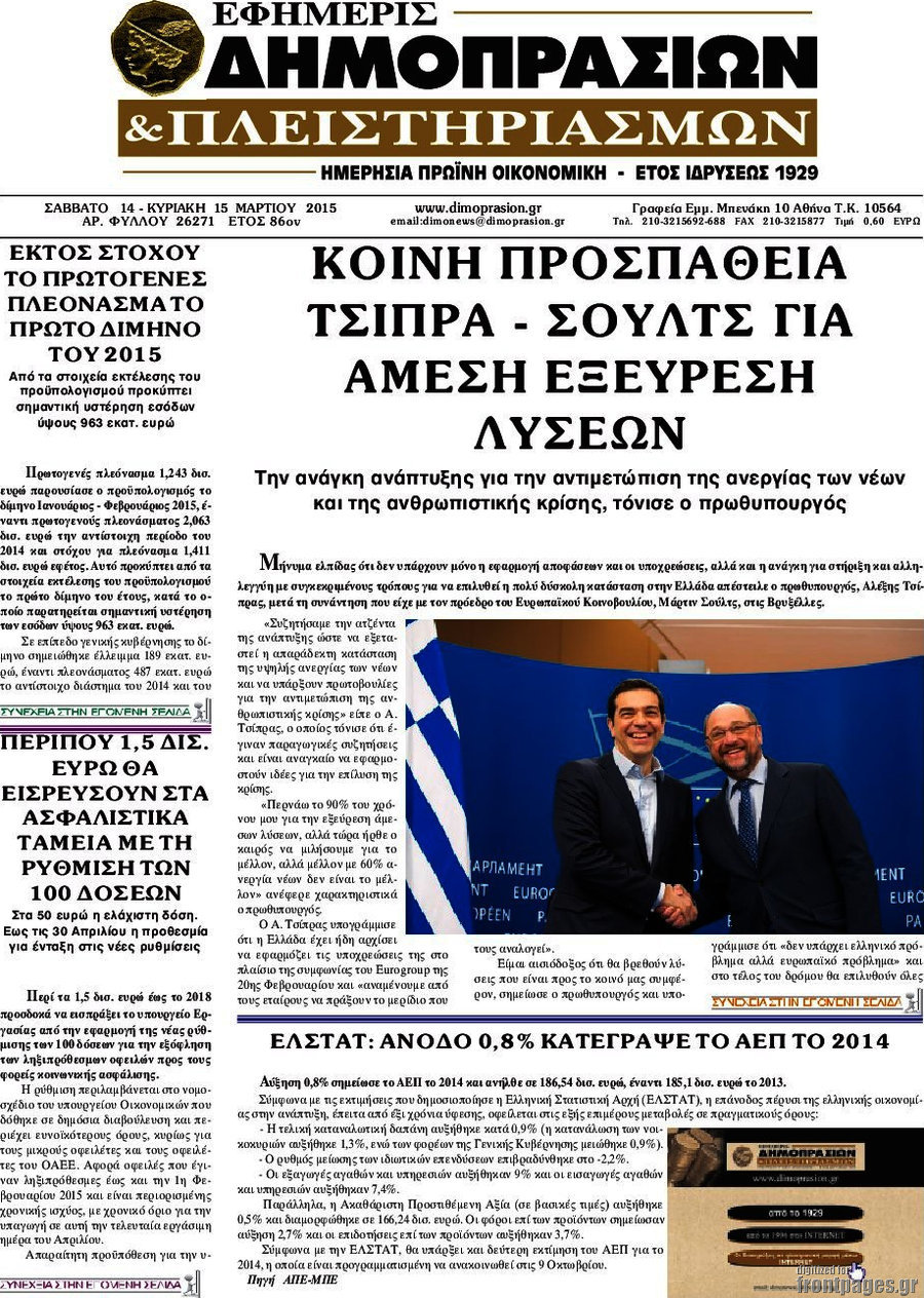 Οι οικονομικές εφημερίδες Enikos Newsroom 07:42, Σάββατο 14 Μαρτίου 2015 Media Διαβάστε τα σημερινά πρωτοσέλιδα των οικονομικών εφημερίδων: ΕΦΗΜΕΡΙΔΕΣ ΟΙΚΟΝΟΜΙΚΕΣ ΕΦΗΜΕΡΙΔΕΣ ΠΡΩΤΟΣΕΛΙΔΑ Μοιράσου το: σχολίασε κι εσύ (0 σχόλια) Ακολουθήστε το enikos.gr στο Google News και μάθετε πρώτοι όλες τις ειδήσεις Δείτε όλες τις τελευταίες ειδήσεις από την Ελλάδα και τον Κόσμο στο enikos.gr Ειδήσεις Ροή Ειδήσεων 5 ώρες πριν Μητσοτάκης: Αναγκαία η μεταρρύθμιση του πρωτογενούς τομέα – Τα 6 νέα μέτρα για το στεγαστικό και οι αναφορές σε «Ιθάκη» και «πολιτικούς του καναπέ» 5 ώρες πριν Δάνεια σε ελβετικό φράγκο: Τα βασικά σημεία της ρύθμισης – ανάσας για 40.000 δανειολήπτες – Αναλυτικός οδηγός με ερωτήσεις και απαντήσεις 4 ώρες πριν Κυψέλη: Εξιτήριο πήρε η 14χρονη μαθήτρια που μαχαιρώθηκε από την 16χρονη σε σχολείο – «Θέλω να βοηθήσω το παιδί, έχει μπλέξει με κακές παρέες» 4 ώρες πριν Τραμπ: Γιατί κατέθεσε τώρα την αγωγή κατά του BBC – Πώς η κίνησή του εξυπηρετεί το νέο δόγμα του για «αντίσταση» στην Ευρώπη, υπέρ των συντηρητικών 5 ώρες πριν ΟΠΕΚΕΠΕ – Παράνομες επιδοτήσεις: Ελεύθεροι με περιοριστικούς όρους και οι 7 κατηγορούμενοι που απολογήθηκαν σήμερα 4 ώρες πριν Ανακαλύφθηκε βυθισμένη πέτρινη κατασκευή ανοιχτά της Κριμαίας – Αποτελεί μέρος αρχαίας ελληνικής αποικίας 5 ώρες πριν Ύπνος: Αυτό μπορεί να είναι το χειρότερο λάθος για το βιολογικό ρολόι σας, σύμφωνα με ειδικό 6 ώρες πριν Αριθμολογία: Οι άνθρωποι που έχουν γεννηθεί αυτές τις 3 ημερομηνίες, προσελκύουν μεγάλη τύχη πριν από το τέλος του 2025 8 ώρες πριν Οι 7 συμπεριφορές που μαρτυρούν ότι ένας άνδρας επενδύει μακροπρόθεσμα σε μια σχέση 13 λεπτά πριν Νίκος Πλακιάς: Η Μαρία Καρυστιανού πλέον θα κρίνεται ως πολιτικός και όχι ως συγγενής 29 λεπτά πριν Ντόναλντ Τραμπ: Κάλυψε απόλυτα την προσωπάρχη του Λευκού Οίκου: «Ναι, έχω προσωπικότητα αλκοολικού» 44 λεπτά πριν ΗΠΑ: Στην αγορά δύο Boeing 747-8 προχωρά η Πολεμική Αεροπορία για την υποστήριξη του προεδρικού στόλου 58 λεπτά πριν Ιταλία: Λεωφορείο έπεσε πάνω σε βιτρίνα καταστήματος στο Τορίνο – Τρεις τραυματίες 1 ώρα πριν Χαλάνδρι: Καθηγητής έπιασε με κόφτη τα δάχτυλα μαθητή σε κατάληψη – «Μου έχεις πιάσει το χέρι» ENIKOS NETWORK Αίτημα ΙΣΑ για την εξαίρεση των προσωπικών γιατρών από τις κατ’ οίκον επισκέψεις Η σκανδιναβική μέθοδος στον ύπνο που μπορεί να σώσει έναν γάμο Πιερρακάκης: Ο προϋπολογισμός συμβάλλει ουσιαστικά στην ενίσχυση της αγοραστικής δύναμης της πλειονότητας των εργαζομένων e-ΕΦΚΑ: Παρατείνεται η προθεσμία για την υποβολή ΑΠΔ – Ποιους αφορά Σύγχρονος Νοστράδαμος: Προειδοποιεί για «μεγάλο γεγονός» τους επόμενους μήνες που θα συγκλονίσει τη Βρετανία και τον κόσμο Τεστ παρατηρητικότητας: Μπορείτε να βρείτε τις 3 διαφορές στις εικόνες με έναν πιγκουίνο σε 14 δευτερόλεπτα περισσότερα 20:06 , Τρίτη 16 Δεκεμβρίου 2025 Ο ΣΚΑΙ καταγγέλλει τον ΕΚΚΟΜΕΔ Επιστολή με την οποία καταγράφει την έντονη διαμαρτυρία του προς τον διευθύνοντα σύμβουλο του... 17:40 , Τρίτη 16 Δεκεμβρίου 2025 Eurovision: Στις 4 Ιανουαρίου αποκαλύπτονται τα 28 τραγούδια του ελληνικού τελικού Η αγωνία τελειώνει, η γιορτή της Eurovision αρχίζει στην ΕΡΤ από τις πρώτες ημέρες της νέας χρ... 17:09 , Τρίτη 16 Δεκεμβρίου 2025 Alter Ego Media: Βαθύτατη θλίψη και ειλικρινή συλλυπητήρια για την απώλεια της Ειρήνης Μαρινάκη Τη βαθύτατη θλίψη και τα ειλικρινή συλλυπητήριά της εκφράζει η Alter Ego Media για τον θάνατο ... 13:00 , Τρίτη 16 Δεκεμβρίου 2025 «Στο Παρά Πέντε – 20 Χρόνι
