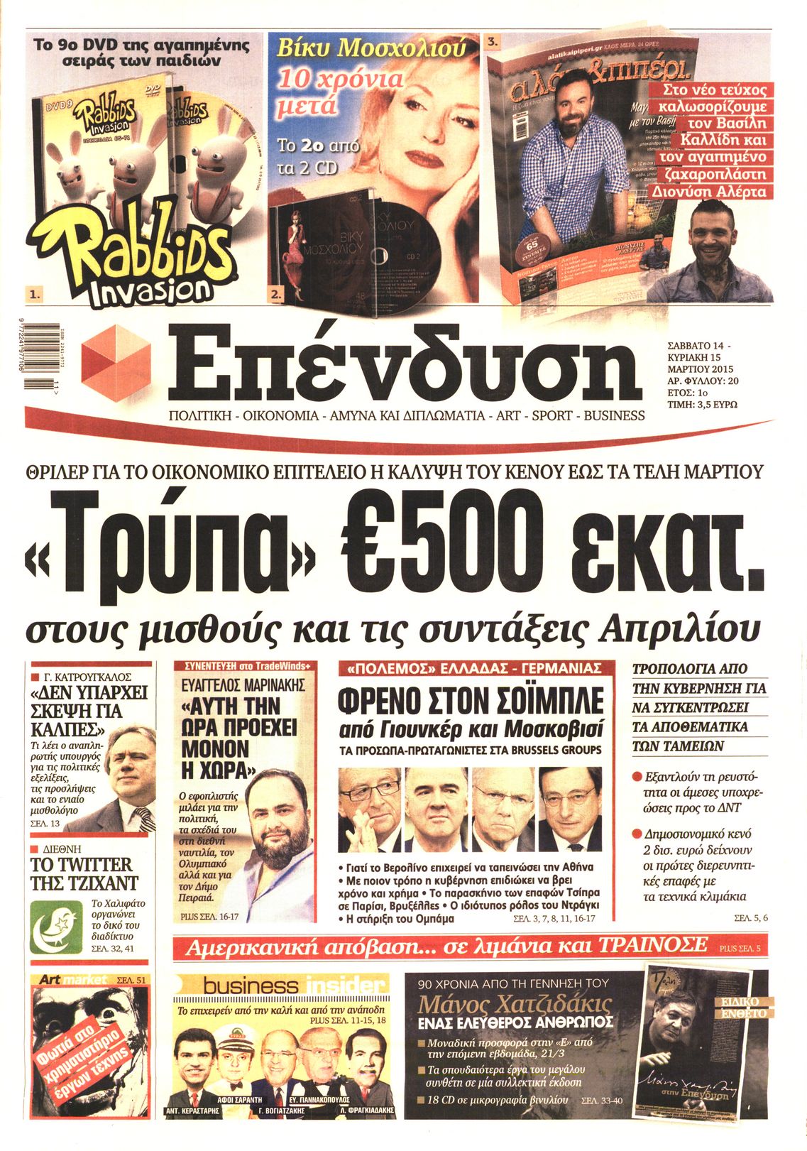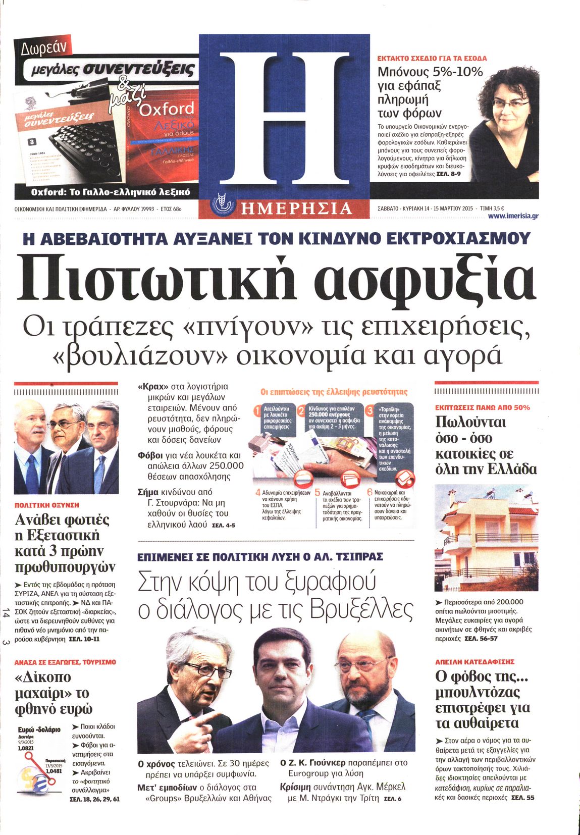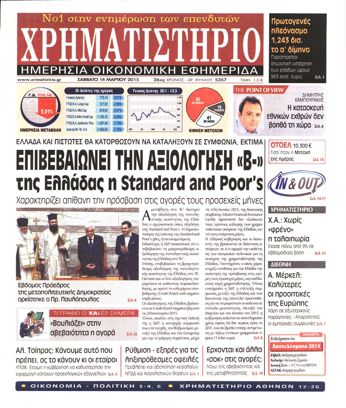 Οι οικονομικές εφημερίδες Enikos Newsroom 07:42, Σάββατο 14 Μαρτίου 2015 Media Διαβάστε τα σημερινά πρωτοσέλιδα των οικονομικών εφημερίδων: ΕΦΗΜΕΡΙΔΕΣ ΟΙΚΟΝΟΜΙΚΕΣ ΕΦΗΜΕΡΙΔΕΣ ΠΡΩΤΟΣΕΛΙΔΑ Μοιράσου το: σχολίασε κι εσύ (0 σχόλια) Ακολουθήστε το enikos.gr στο Google News και μάθετε πρώτοι όλες τις ειδήσεις Δείτε όλες τις τελευταίες ειδήσεις από την Ελλάδα και τον Κόσμο στο enikos.gr Ειδήσεις Ροή Ειδήσεων 5 ώρες πριν Μητσοτάκης: Αναγκαία η μεταρρύθμιση του πρωτογενούς τομέα – Τα 6 νέα μέτρα για το στεγαστικό και οι αναφορές σε «Ιθάκη» και «πολιτικούς του καναπέ» 5 ώρες πριν Δάνεια σε ελβετικό φράγκο: Τα βασικά σημεία της ρύθμισης – ανάσας για 40.000 δανειολήπτες – Αναλυτικός οδηγός με ερωτήσεις και απαντήσεις 4 ώρες πριν Κυψέλη: Εξιτήριο πήρε η 14χρονη μαθήτρια που μαχαιρώθηκε από την 16χρονη σε σχολείο – «Θέλω να βοηθήσω το παιδί, έχει μπλέξει με κακές παρέες» 4 ώρες πριν Τραμπ: Γιατί κατέθεσε τώρα την αγωγή κατά του BBC – Πώς η κίνησή του εξυπηρετεί το νέο δόγμα του για «αντίσταση» στην Ευρώπη, υπέρ των συντηρητικών 5 ώρες πριν ΟΠΕΚΕΠΕ – Παράνομες επιδοτήσεις: Ελεύθεροι με περιοριστικούς όρους και οι 7 κατηγορούμενοι που απολογήθηκαν σήμερα 4 ώρες πριν Ανακαλύφθηκε βυθισμένη πέτρινη κατασκευή ανοιχτά της Κριμαίας – Αποτελεί μέρος αρχαίας ελληνικής αποικίας 5 ώρες πριν Ύπνος: Αυτό μπορεί να είναι το χειρότερο λάθος για το βιολογικό ρολόι σας, σύμφωνα με ειδικό 6 ώρες πριν Αριθμολογία: Οι άνθρωποι που έχουν γεννηθεί αυτές τις 3 ημερομηνίες, προσελκύουν μεγάλη τύχη πριν από το τέλος του 2025 8 ώρες πριν Οι 7 συμπεριφορές που μαρτυρούν ότι ένας άνδρας επενδύει μακροπρόθεσμα σε μια σχέση 13 λεπτά πριν Νίκος Πλακιάς: Η Μαρία Καρυστιανού πλέον θα κρίνεται ως πολιτικός και όχι ως συγγενής 29 λεπτά πριν Ντόναλντ Τραμπ: Κάλυψε απόλυτα την προσωπάρχη του Λευκού Οίκου: «Ναι, έχω προσωπικότητα αλκοολικού» 44 λεπτά πριν ΗΠΑ: Στην αγορά δύο Boeing 747-8 προχωρά η Πολεμική Αεροπορία για την υποστήριξη του προεδρικού στόλου 58 λεπτά πριν Ιταλία: Λεωφορείο έπεσε πάνω σε βιτρίνα καταστήματος στο Τορίνο – Τρεις τραυματίες 1 ώρα πριν Χαλάνδρι: Καθηγητής έπιασε με κόφτη τα δάχτυλα μαθητή σε κατάληψη – «Μου έχεις πιάσει το χέρι» ENIKOS NETWORK Αίτημα ΙΣΑ για την εξαίρεση των προσωπικών γιατρών από τις κατ’ οίκον επισκέψεις Η σκανδιναβική μέθοδος στον ύπνο που μπορεί να σώσει έναν γάμο Πιερρακάκης: Ο προϋπολογισμός συμβάλλει ουσιαστικά στην ενίσχυση της αγοραστικής δύναμης της πλειονότητας των εργαζομένων e-ΕΦΚΑ: Παρατείνεται η προθεσμία για την υποβολή ΑΠΔ – Ποιους αφορά Σύγχρονος Νοστράδαμος: Προειδοποιεί για «μεγάλο γεγονός» τους επόμενους μήνες που θα συγκλονίσει τη Βρετανία και τον κόσμο Τεστ παρατηρητικότητας: Μπορείτε να βρείτε τις 3 διαφορές στις εικόνες με έναν πιγκουίνο σε 14 δευτερόλεπτα περισσότερα 20:06 , Τρίτη 16 Δεκεμβρίου 2025 Ο ΣΚΑΙ καταγγέλλει τον ΕΚΚΟΜΕΔ Επιστολή με την οποία καταγράφει την έντονη διαμαρτυρία του προς τον διευθύνοντα σύμβουλο του... 17:40 , Τρίτη 16 Δεκεμβρίου 2025 Eurovision: Στις 4 Ιανουαρίου αποκαλύπτονται τα 28 τραγούδια του ελληνικού τελικού Η αγωνία τελειώνει, η γιορτή της Eurovision αρχίζει στην ΕΡΤ από τις πρώτες ημέρες της νέας χρ... 17:09 , Τρίτη 16 Δεκεμβρίου 2025 Alter Ego Media: Βαθύτατη θλίψη και ειλικρινή συλλυπητήρια για την απώλεια της Ειρήνης Μαρινάκη Τη βαθύτατη θλίψη και τα ειλικρινή συλλυπητήριά της εκφράζει η Alter Ego Media για τον θάνατο ... 13:00 , Τρίτη 16 Δεκεμβρίου 2025 «Στο Παρά Πέντε – 20 Χρόνι