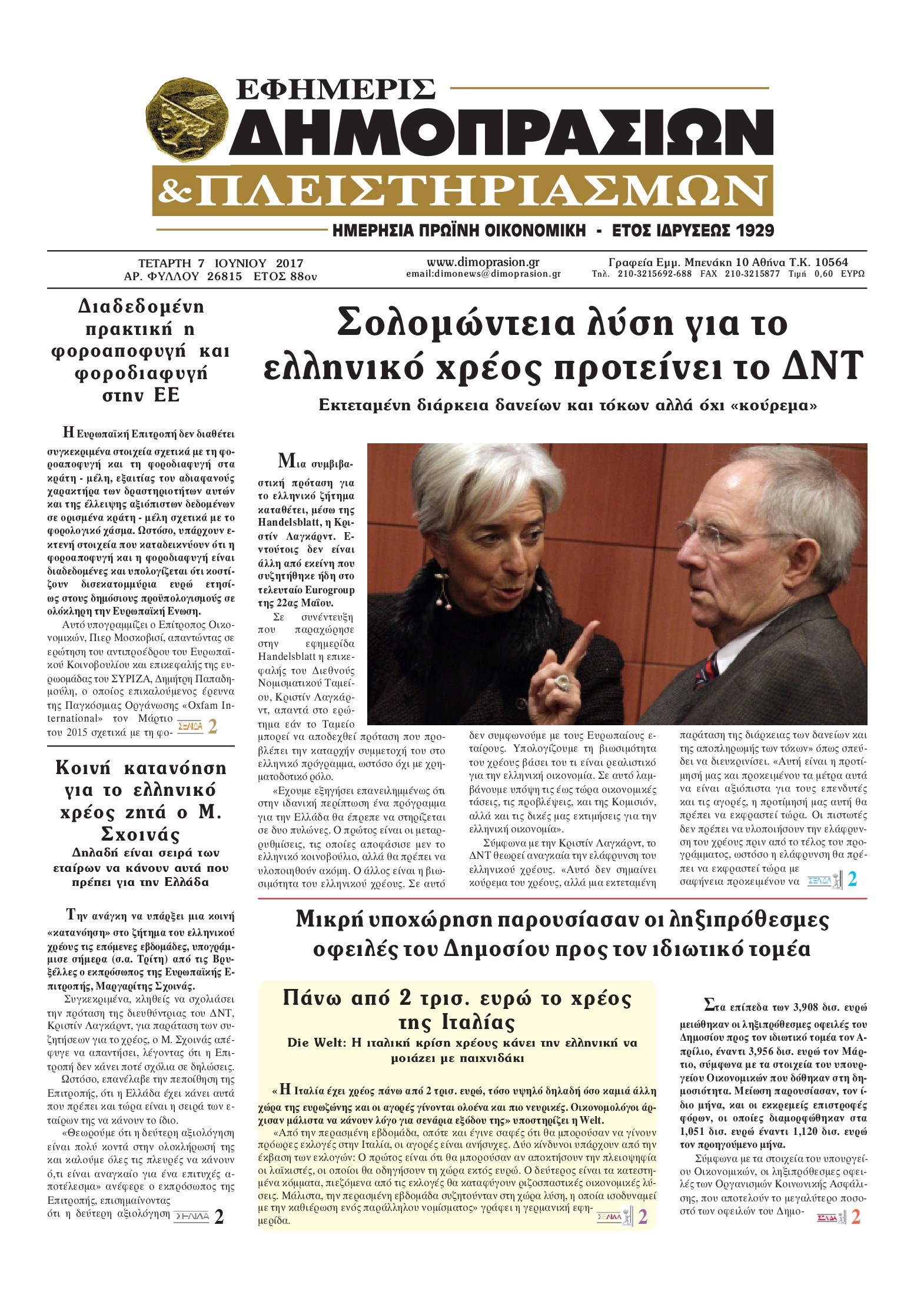 Οι οικονομικές εφημερίδες 7/6/2017 Enikos Newsroom 06:33, Τετάρτη 07 Ιουνίου 2017 Media Διαβάστε τα σημερινά πρωτοσέλιδα των οικονομικών εφημερίδων: ΟΙΚΟΝΟΜΙΚΕΣ ΕΦΗΜΕΡΙΔΕΣ ΠΡΩΤΟΣΕΛΙΔΑ Μοιράσου το: σχολίασε κι εσύ (0 σχόλια) Ακολουθήστε το enikos.gr στο Google News και μάθετε πρώτοι όλες τις ειδήσεις Δείτε όλες τις τελευταίες ειδήσεις από την Ελλάδα και τον Κόσμο στο enikos.gr Ειδήσεις Ροή Ειδήσεων 3 ώρες πριν Χριστούγεννα στα μπλόκα: Επιμένουν στις κινητοποιήσεις τους οι αγρότες – Ανοίγουν τα διόδια το Σαββατοκύριακο 3 ώρες πριν Ουκρανία: Η άνευ προηγουμένου επίθεση σε ρωσικό τάνκερ στη Μεσόγειο και το μήνυμα προς στον Πούτιν – Το «μακρύ χέρι» του Κιέβου 2 ώρες πριν Πούτιν: Τα μηνύματα σε Ευρώπη και ΝΑΤΟ από το μαραθώνιο «σόου» του – Η απαίτηση για «σεβασμό» και η ειρήνη «με τους όρους» της Μόσχας 3 ώρες πριν Τραμπ: Δεν αποκλείει την πιθανότητα ενός πολέμου στη Βενεζουέλα – «Ο Μαδούρο ξέρει καλύτερα από τον καθένα τι ακριβώς θέλω» 4 ώρες πριν Συνεχίζει να προκαλεί ο Μίτσκοσκι: «Για μένα το όνομα Μακεδονία είναι ιερό» 3 ώρες πριν Ανακαλύφθηκαν αρχαία χρυσά νομίσματα 2.200 ετών που απεικονίζουν τον θεό Απόλλωνα – Η άγνωστη σύνδεση με τον Φίλιππο Β΄ της Μακεδονίας 3 ώρες πριν Ύπνος: Μια κρυφή κατάσταση του εγκεφάλου πριν από τον ύπνο μπορεί να είναι το “κλειδί” για υψηλή ευφυΐα και δημιουργικότητα 4 ώρες πριν Αριθμολογία: Οι άνθρωποι που έχουν γεννηθεί αυτές τις 4 ημερομηνίες, συχνά παρεξηγούνται – «Η καλοσύνη τους κρύβει τεράστια δύναμη» 5 ώρες πριν Ξεχάστε το καθάρισμα το Σαββατοκύριακο: Ο «κανόνας των 20 λεπτών» που θα σας λύσει τα χέρια 20 λεπτά πριν Συρία: Μαζικά πλήγματα των ΗΠΑ σε θέσεις του Ισλαμικού Κράτους – Χέγκσεθ: «Δεν είναι αρχή πολέμου, είναι μια δήλωση εκδίκησης» για το θάνατο των στρατιωτών μας 32 λεπτά πριν Ουκρανία: Ολοκληρώθηκαν οι συνομιλίες με τους Αμερικανούς κι Ευρωπαίους διαπραγματευτές 47 λεπτά πριν Μπαρτσελόνα – Μπασκόνια 134-124: Οι «μπλαουγκράνα» πήραν το ματς της χρονιάς ύστερα από τρεις παρατάσεις 1 ώρα πριν Φαίη Σκορδά: «Παλιότερα τα κομπλιμέντα τα προσπερνούσα, τώρα τα έχω ανάγκη» 1 ώρα πριν Βασίλης Σπανούλης: Δεν εμφανίστηκε ούτε ένας δημοσιογράφος στην συνέντευξη Τύπου – «Καλησπέρα στον… κανέναν», δείτε βίντεο ENIKOS NETWORK Το ΕΚΑΒ τιμήθηκε από την Ακαδημία Αθηνών για τα 40 χρόνια προσφοράς του Έχετε πραγματικά μεγάλη καρδιά; 10 χαρακτηριστικά όσων έχουν καλοσύνη Αναστολή μέτρων αναγκαστικής εκτέλεσης για κτηνοτρόφους που πλήττονται από την ευλογιά των αιγοπροβάτων Πλήρης επάρκεια προϊόντων στις λαϊκές της Αττικής, παρά τις αγροτικές κινητοποιήσεις – Τι απαντούν οι πωλητές Χαρτογραφώντας το «σημείο χωρίς επιστροφή»: Για πρώτη φορά αποκαλύπτεται με λεπτομέρεια το ακανθώδες όριο της ατμόσφαιρας τ... Η Google καταργεί τη λειτουργία «dark web report» – Πώς θα μπορούν οι χρήστες να διαγράφουν τα δεδομένα τους περισσότερα 22:42 , Παρασκευή 19 Δεκεμβρίου 2025 Γιώργος Γιαννόπουλος για “Το σόι σου”: “Είναι ευτυχία και ευλογία αυτή η σειρά” «Είναι ευτυχία και ευλογία η συγκυρία αυτής της σειράς», θα πει ο Γιώργος Γιαννόπουλος -ο αγαπ... 20:37 , Παρασκευή 19 Δεκεμβρίου 2025 Don’t Forget The Lyrics: Η Έλλη Κοκκίνου υποδέχεται 4 παίκτες που θα κάνουν τα πάντα για να μη χάσουν ούτε… μισή λέξη από τους στίχους Το «Don’t Forget The Lyrics» επιστρέφει απόψε, Παρασκευή 19 Δεκεμβρίου, στις 21:00 με νέο επει... 19:31 , Παρασκευή 19 Δεκεμβρίου 2025 GNTM: Απόψε ο μεγάλος τελικός για τους 4 φιναλίστ Έπειτα από μήνες γ