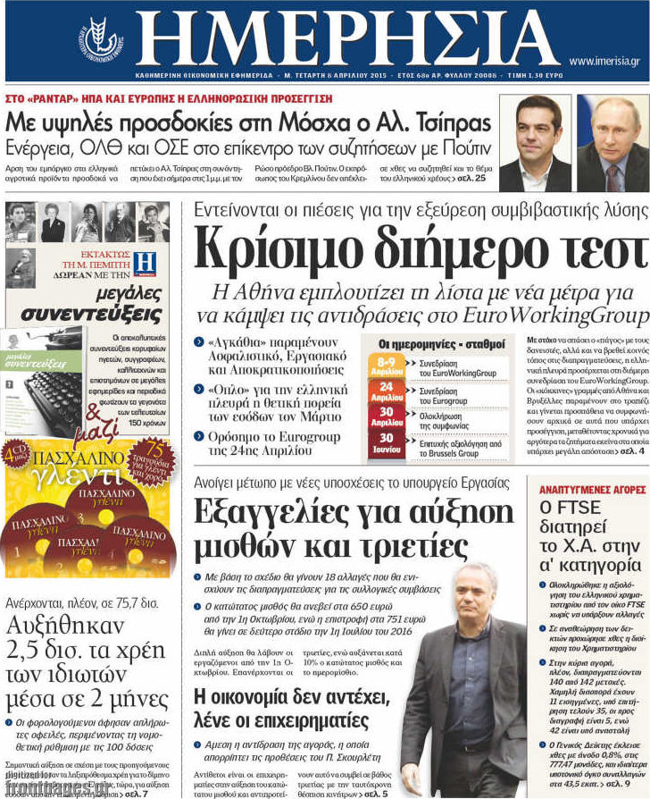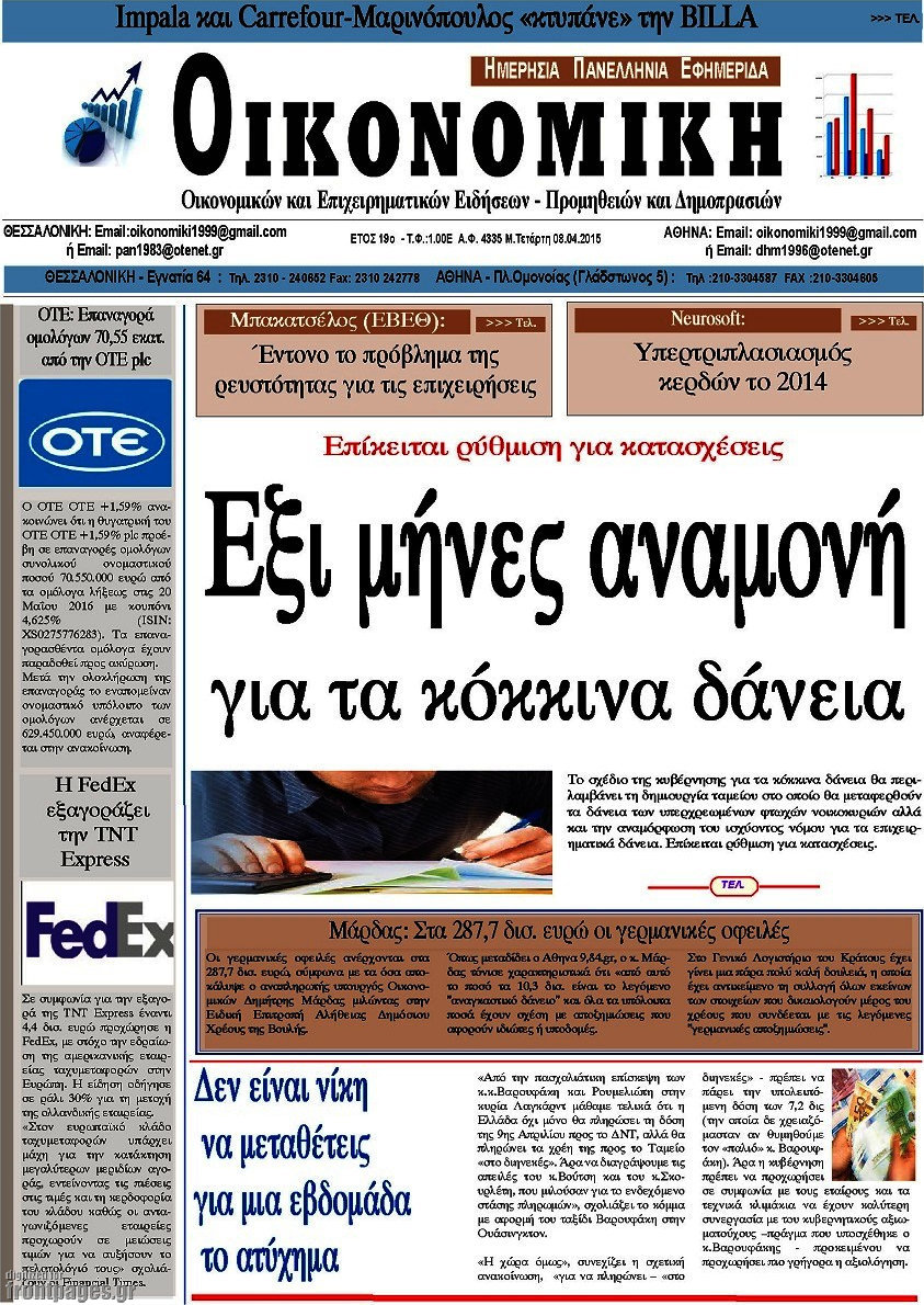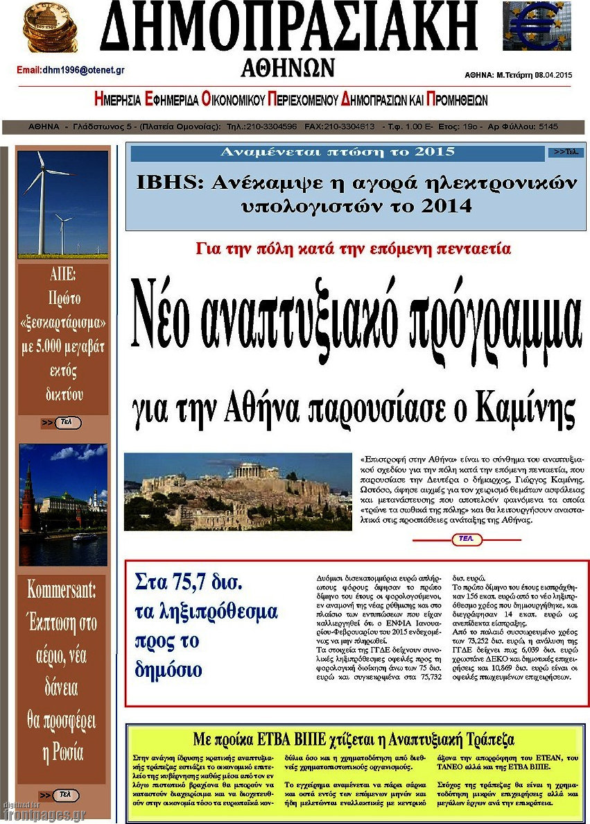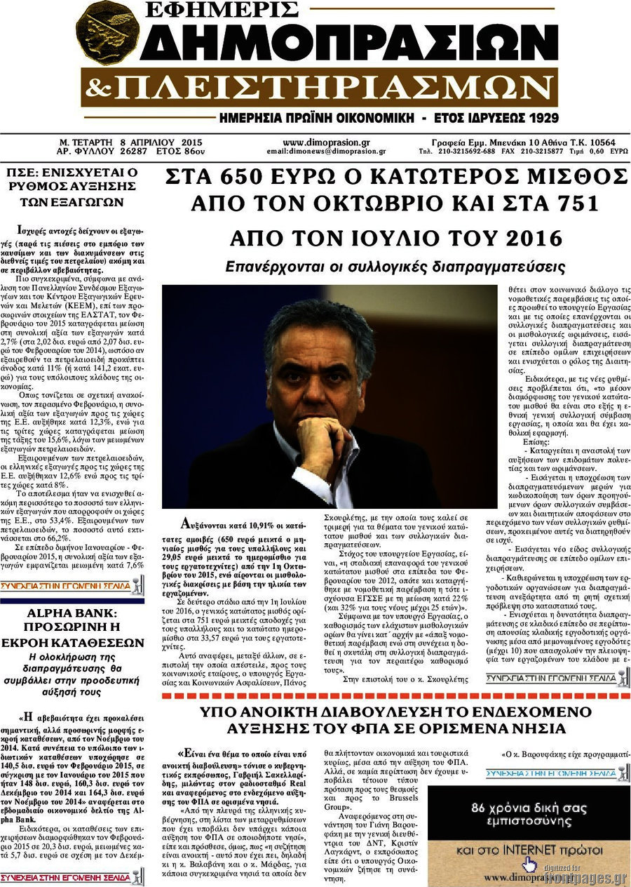 Οι οικονομικές εφημερίδες Enikos Newsroom 07:55, Τετάρτη 08 Απριλίου 2015 Media Διαβάστε τα σημερινά πρωτοσέλιδα των οικονομικών εφημερίδων: ΟΙΚΟΝΟΜΙΚΕΣ ΕΦΗΜΕΡΙΔΕΣ ΠΡΩΤΟΣΕΛΙΔΑ Μοιράσου το: σχολίασε κι εσύ (0 σχόλια) Ακολουθήστε το enikos.gr στο Google News και μάθετε πρώτοι όλες τις ειδήσεις Δείτε όλες τις τελευταίες ειδήσεις από την Ελλάδα και τον Κόσμο στο enikos.gr Ειδήσεις Ροή Ειδήσεων 11 λεπτά πριν Πώς στήθηκε η επιχείρηση «Ίπαλλος» που οδήγησε στη σύλληψη του «Έλληνα Εσκομπάρ» – «Ο πόλεμος ενάντια στους εμπόρους ναρκωτικών θα συνεχιστεί» 2 ώρες πριν Πούτιν: «Ανοησίες» και «υστερίες» οι ισχυρισμοί της Ευρώπης για πιθανή σύγκρουση με τη Ρωσία – «Κάνουν πλύση εγκεφάλου» 3 ώρες πριν Αμοργός: «Θα προσπαθήσω να το κάνω κάθε μέρα» – Ποιος είναι ο αγρότης που έστησε μόνος του το πρώτο μπλόκο στο νησί 16 λεπτά πριν Κυψέλη: Στη φυλακή η 16χρονη που μαχαίρωσε συμμαθήτριά της 1 ώρα πριν Τραγωδία στην Αλεξανδρούπολη: Παιδάκι 3 ετών μεταφέρθηκε νεκρό από τη μητέρα του στο νοσοκομείο 21 λεπτά πριν Τα 3 ζώδια που θα δουν τη ζωή τους να αλλάζει ριζικά το 2026 – «Όλα γίνονται καλύτερα σταδιακά» 5 ώρες πριν «Δεν είχα κλάψει από τότε που διαγνώστηκα με καρκίνο, ώσπου ένα τηλεφώνημα με έκανε να λυγίσω» – Η συγκλονιστική εξομολόγηση ενός άνδρα 1 ώρα πριν Ο σπάνιος σεισμός που έλυσε τα χέρια των επιστημόνων – Αποκάλυψε ακριβώς όσα αναζητούσαν 7 ώρες πριν 20 χρόνια τα Χριστούγεννα ξεκινούν στα Public με μεγάλη ποικιλία σε δώρα! 4 λεπτά πριν Υπουργείο Αγροτικής Ανάπτυξης: Πώς θα γίνει η πληρωμή αγροτεμαχίων έως 20 στρέμματα παρά τα ζητήματα ΚΑΕΚ 11 λεπτά πριν Πώς στήθηκε η επιχείρηση «Ίπαλλος» που οδήγησε στη σύλληψη του «Έλληνα Εσκομπάρ» – «Ο πόλεμος ενάντια στους εμπόρους ναρκωτικών θα συνεχιστεί» 16 λεπτά πριν Κυψέλη: Στη φυλακή η 16χρονη που μαχαίρωσε συμμαθήτριά της 21 λεπτά πριν Τα 3 ζώδια που θα δουν τη ζωή τους να αλλάζει ριζικά το 2026 – «Όλα γίνονται καλύτερα σταδιακά» 25 λεπτά πριν Νέο επεισόδιο στην Εξεταστική ανάμεσα σε Κωνσταντοπούλου και Συρεγγέλα – Διακόπηκε προσωρινά η συνεδρίαση ENIKOS NETWORK 5 πράγματα που αποφεύγει γαστρεντερολόγος για να μειώσει τον κίνδυνο καρκίνου του εντέρου Ανησυχητική αύξηση της υπέρτασης στα παιδιά – Πώς θα τα προστατέψουμε; Eurostat: Κάτω από την αρχική εκτίμηση της Υπηρεσίας ο πληθωρισμός στην Ελλάδα τον Νοέμβριο του 2025 – Tα στοιχεία για την ... Συντάξεις Ιανουαρίου 2026: Σε ποιους θα πιστωθούν την Πέμπτη τα χρήματα και τι αυξήσεις θα δοθούν – Δείτε αναλυτικά παραδεί... Σύγχρονος Νοστράδαμος: Προειδοποιεί για «μεγάλο γεγονός» τους επόμενους μήνες που θα συγκλονίσει τη Βρετανία και τον κόσμο Τεστ παρατηρητικότητας: Μπορείτε να βρείτε τις 3 διαφορές στις εικόνες με έναν πιγκουίνο σε 14 δευτερόλεπτα περισσότερα 12:35 , Τετάρτη 17 Δεκεμβρίου 2025 Μίρκα Παπακωνσταντίνου: «Δεν ήμουν αισιόδοξη για τα νούμερα – Είμαι ρεαλίστρια» Στα γυρίσματα του εορταστικού επεισοδίου της αγαπημένης σειράς “Το Σόι Σου”, βρέθηκε η κάμερα ... 12:12 , Τετάρτη 17 Δεκεμβρίου 2025 Ακούστε την εκπομπή του Νίκου Χατζηνικολάου 17/12/2025 Ακούστε την εκπομπή του Νίκου Χατζηνικολάου στον ραδιοφωνικό σταθμό RealFm 97,8, την Τετάρτη 1... 11:35 , Τετάρτη 17 Δεκεμβρίου 2025 Home Alone: Το σπίτι της ταινίας θα ανακαινιστεί – Επιστροφή στην αισθητική της δεκαετίας του ’90 Οι νέοι ιδιοκτήτες του πραγματικού σπιτιού που παρουσιάζεται στην κλασική ταινία του 1990 «Hom... 11:25 , Τετάρτη 17 Δεκεμβρίου 2025 Grand Hotel: Απόψε το τελευταίο επεισόδιο τη