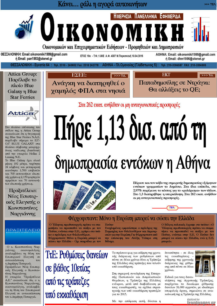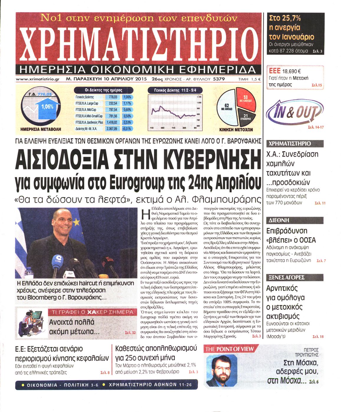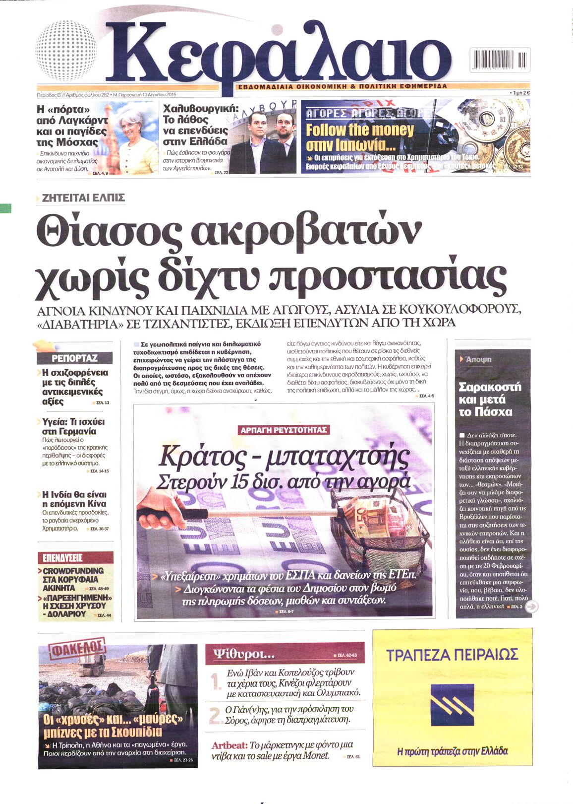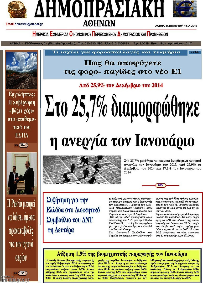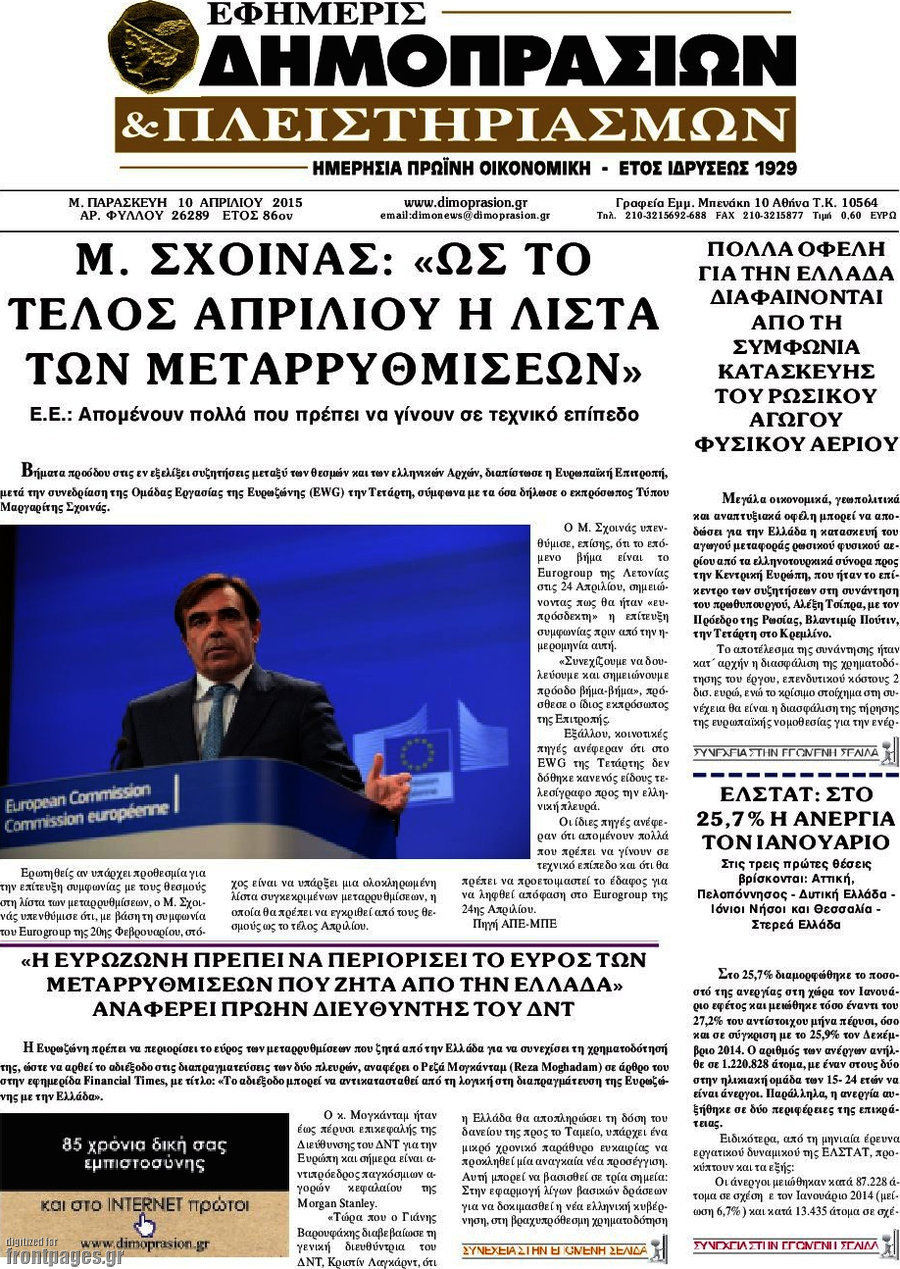Οι οικονομικές εφημερίδες Enikos Newsroom 07:53, Παρασκευή 10 Απριλίου 2015 Media Διαβάστε τα σημερινά πρωτοσέλιδα των οικονομικών εφημερίδων: ΕΦΗΜΕΡΙΔΕΣ ΟΙΚΟΝΟΜΙΚΕΣ ΕΦΗΜΕΡΙΔΕΣ ΠΡΩΤΟΣΕΛΙΔΑ Μοιράσου το: σχολίασε κι εσύ (0 σχόλια) Ακολουθήστε το enikos.gr στο Google News και μάθετε πρώτοι όλες τις ειδήσεις Δείτε όλες τις τελευταίες ειδήσεις από την Ελλάδα και τον Κόσμο στο enikos.gr Ειδήσεις Ροή Ειδήσεων 2 ώρες πριν ΣΥΡΙΖΑ: Διαγράφεται ο ευρωβουλευτής Νίκος Παππάς μετά την μήνυση δημοσιογράφου για ξυλοδαρμό 51 λεπτά πριν Τουρκία: Επιδιώκει την επιστροφή των S-400 στη Ρωσία – Οι αμερικανικές πιέσεις 1 ώρα πριν ΟΠΕΚΕΠΕ: Ελεύθερες με όρους η σύζυγος και η αδελφή του φερόμενου αρχηγού – Τι υποστήριξαν 3 ώρες πριν Πώς στήθηκε η επιχείρηση «Ίπαλλος» που οδήγησε στη σύλληψη του «Έλληνα Εσκομπάρ» – «Ο πόλεμος ενάντια στους εμπόρους ναρκωτικών θα συνεχιστεί» 3 ώρες πριν Κυψέλη: Στη φυλακή η 16χρονη που μαχαίρωσε συμμαθήτριά της 3 ώρες πριν Τα 3 ζώδια που θα δουν τη ζωή τους να αλλάζει ριζικά το 2026 – «Όλα γίνονται καλύτερα σταδιακά» 8 ώρες πριν «Δεν είχα κλάψει από τότε που διαγνώστηκα με καρκίνο, ώσπου ένα τηλεφώνημα με έκανε να λυγίσω» – Η συγκλονιστική εξομολόγηση ενός άνδρα 4 ώρες πριν Ο σπάνιος σεισμός που έλυσε τα χέρια των επιστημόνων – Αποκάλυψε ακριβώς όσα αναζητούσαν 10 ώρες πριν 20 χρόνια τα Χριστούγεννα ξεκινούν στα Public με μεγάλη ποικιλία σε δώρα! 4 λεπτά πριν Τροχαίο δυστύχημα στη Χαλκιδική: Νεκρός 42χρονος οδηγός μηχανής έπειτα από σύγκρουση με αυτοκίνητο 9 λεπτά πριν Οι άνθρωποι που θυμούνται τα όνειρά τους, συνήθως μοιράζονται αυτά τα 6 σπάνια χαρακτηριστικά 13 λεπτά πριν ΑΑΔΕ: Καταβλήθηκε η τέταρτη δόση επιστροφής ΕΦΚ αγροτικού πετρελαίου – Οδηγίες για τη διόρθωση παραστατικών 18 λεπτά πριν Μητσοτάκης: Το γούρι με τα αρχικά του για το 2026 που έδωσε στους βουλευτές της ΝΔ – ΦΩΤΟ 22 λεπτά πριν Καβάλα – Παναθηναϊκός 1-2: Ο Ταμπόρδα έστειλε τους Πράσινους απευθείας στα προημιτελικά του Κυπέλλου Ελλάδας ENIKOS NETWORK 2,6 εκατομμύρια πολίτες έχουν ήδη εμβολιαστεί κατά της γρίπης Σοβαροί κίνδυνοι από τη λάθος χορήγηση φαρμάκου για τις αιμορραγίες-Συστάσεις προς τους γιατρούς Υπουργείο Εργασίας: Ο οδικός χάρτης για την ενίσχυση του πλαισίου των Συλλογικών Διαπραγματεύσεων – Οι 5 άξονες του σχεδίου... Έρχεται νέα ενίσχυση 17.500 ευρώ από τη ΔΥΠΑ για ανέργους- Όλες οι λεπτομέρειες Χαρτογραφώντας το «σημείο χωρίς επιστροφή»: Για πρώτη φορά αποκαλύπτεται με λεπτομέρεια το ακανθώδες όριο της ατμόσφαιρας τ... Η Google καταργεί τη λειτουργία «dark web report» – Πώς θα μπορούν οι χρήστες να διαγράφουν τα δεδομένα τους περισσότερα 12:35 , Τετάρτη 17 Δεκεμβρίου 2025 Μίρκα Παπακωνσταντίνου: «Δεν ήμουν αισιόδοξη για τα νούμερα – Είμαι ρεαλίστρια» Στα γυρίσματα του εορταστικού επεισοδίου της αγαπημένης σειράς “Το Σόι Σου”, βρέθηκε η κάμερα ... 12:12 , Τετάρτη 17 Δεκεμβρίου 2025 Ακούστε την εκπομπή του Νίκου Χατζηνικολάου 17/12/2025 Ακούστε την εκπομπή του Νίκου Χατζηνικολάου στον ραδιοφωνικό σταθμό RealFm 97,8, την Τετάρτη 1... 11:35 , Τετάρτη 17 Δεκεμβρίου 2025 Home Alone: Το σπίτι της ταινίας θα ανακαινιστεί – Επιστροφή στην αισθητική της δεκαετίας του ’90 Οι νέοι ιδιοκτήτες του πραγματικού σπιτιού που παρουσιάζεται στην κλασική ταινία του 1990 «Hom... 11:25 , Τετάρτη 17 Δεκεμβρίου 2025 Grand Hotel: Απόψε το τελευταίο επεισόδιο της χρονιάς – Όλα τα μυστικά μένουν εδώ Το τελευταίο επεισόδιο της χρονιάς της σειράς «Grand Hotel» θα προβληθεί απόψε στις 2