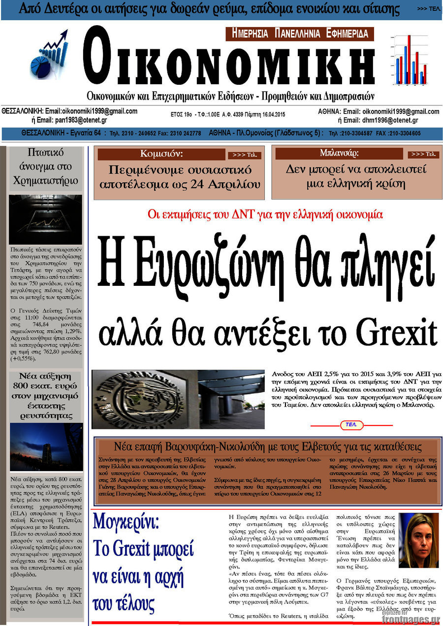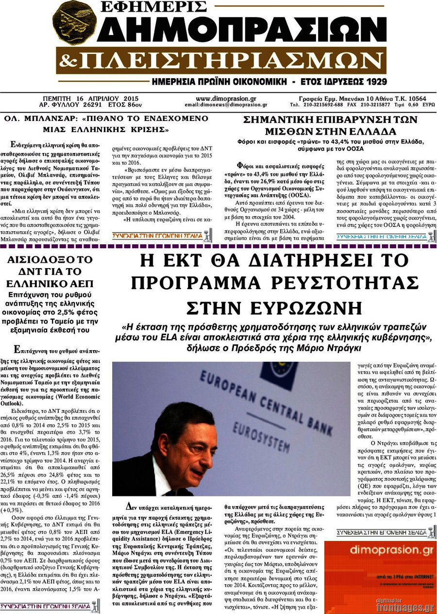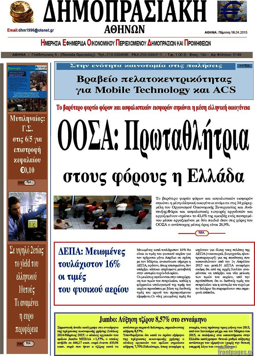 Οι οικονομικές εφημερίδες Enikos Newsroom 07:28, Πέμπτη 16 Απριλίου 2015 Media Διαβάστε τα σημερινά πρωτοσέλιδα των οικονομικών εφημερίδων: ΟΙΚΟΝΟΜΙΚΕΣ ΕΦΗΜΕΡΙΔΕΣ ΠΡΩΤΟΣΕΛΙΔΑ Μοιράσου το: σχολίασε κι εσύ (0 σχόλια) Ακολουθήστε το enikos.gr στο Google News και μάθετε πρώτοι όλες τις ειδήσεις Δείτε όλες τις τελευταίες ειδήσεις από την Ελλάδα και τον Κόσμο στο enikos.gr Ειδήσεις Ροή Ειδήσεων 4 ώρες πριν Εκτός ευρωομάδας ΣΥΡΙΖΑ ο Νίκος Παππάς μετά την επίθεση στον δημοσιογράφο Νίκο Γιαννόπουλο – Η μήνυση και οι νέες δηλώσεις 5 ώρες πριν «Αγριεύουν» οι αγρότες: «Δεν συντρέχει λόγος συνάντησης με τον πρωθυπουργό» – Ώρα αποφάσεων στη σύσκεψη της Πέμπτης 5 ώρες πριν Κυψέλη: Χωρίς την οικογένειά της δίπλα της απολογήθηκε η 16χρονη – «Της είχε επιτεθεί κάποιος για να την βιάσει, φοβήθηκε και κυκλοφορούσε με μαχαίρι» 4 ώρες πριν Politico: Το πρόβλημα της Ευρώπης δεν είναι το Βέλγιο αλλά ο Ντόναλντ Τραμπ 6 ώρες πριν Αλεξανδρούπολη: Πολυοργανική ανεπάρκεια λόγω υποσιτισμού η αιτία θανάτου του 3χρονου αγοριού 4 ώρες πριν Μυστήριο με τεράστιες κυκλικές πέτρες 200 κιλών – Ανακαλύφθηκαν τυχαία κατά τη διάρκεια οδικών έργων και κανείς δεν ξέρει από πού προέρχονται 5 ώρες πριν Ύπνος: Ειδικός εξηγεί τον πραγματικό λόγο που ξυπνάτε στις 4 τα ξημερώματα – Ο ρόλος των ορμονών και του κιρκάδιου ρυθμού 6 ώρες πριν Αριθμολογία: Οι άνθρωποι που έχουν γεννηθεί αυτές τις 4 ημερομηνίες, είναι τρυφεροί και αγαπούν ανιδιοτελώς 18 ώρες πριν 20 χρόνια τα Χριστούγεννα ξεκινούν στα Public με μεγάλη ποικιλία σε δώρα! 14 λεπτά πριν Βραζιλία: Το Κογκρέσο ενέκρινε σχέδιο νόμου για τη μείωση της ποινής του πρώην προέδρου Μπολσονάρου 29 λεπτά πριν Ένταση στο περιφερειακό συμβούλιο Δυτικής Μακεδονίας: Φωνές, σπρωξιές και διακοπή – Δείτε βίντεο 43 λεπτά πριν Σουδάν: Επιδρομή drone σε χωριό του Νότιου Κορντοφάν – Οκτώ νεκροί 59 λεπτά πριν Αλ Τσαντίρι Νιουζ: Η κόρη της Πάολα στο κοινό – Η ατάκα Λαζόπουλου που την έκανε να «κοκκινήσει» 1 ώρα πριν Ρωσία: Ουκρανικές δυνάμεις έπληξαν πλοίο στο λιμάνι του Ροστόφ – Αναφορές για θύματα ENIKOS NETWORK Αϋπνία: Το κόλπο που θα σας βοηθήσει να κοιμηθείτε απόψε – Είναι απλό και έχει αποτέλεσμα 2,6 εκατομμύρια πολίτες έχουν ήδη εμβολιαστεί κατά της γρίπης ΕΛΣΤΑΤ: Τι δείχνουν τα νέα στοιχεία για τις ηλεκτρονικές παραγγελίες των επιχειρήσεων ΚΕΠΕ: Οι 3 διακριτές συμβολές των ΜμΕ και της μεταποίησης στην ελληνική οικονομία Χαρτογραφώντας το «σημείο χωρίς επιστροφή»: Για πρώτη φορά αποκαλύπτεται με λεπτομέρεια το ακανθώδες όριο της ατμόσφαιρας τ... Η Google καταργεί τη λειτουργία «dark web report» – Πώς θα μπορούν οι χρήστες να διαγράφουν τα δεδομένα τους περισσότερα 02:30 , Πέμπτη 18 Δεκεμβρίου 2025 Αλ Τσαντίρι Νιουζ: Η κόρη της Πάολα στο κοινό – Η ατάκα Λαζόπουλου που την έκανε να «κοκκινήσει» Γιορτινή διάθεση και ευχάριστες στιγμές γέμισε η αποψινή, τελευταία για το 2025, εκπομπή του «... 22:24 , Τετάρτη 17 Δεκεμβρίου 2025 Το Σπίτι Δίπλα Στο Ποτάμι: Σε κίνδυνο η υγεία του Απόστολου – Τι θα δούμε απόψε “Το Σπίτι Δίπλα στο Ποτάμι” ξετυλίγει το νήμα της ζωής των πέντε αδελφών με καταισ... 21:14 , Τετάρτη 17 Δεκεμβρίου 2025 Παιχνίδια Εκδίκησης: Θα καταφέρει ο Χρήστος να κλονίσει την εμπιστοσύνη της Μάγιας απέναντι στον Άγη; Τα «Παιχνίδια Εκδίκησης» έρχονται απόψε στις 22:30, στον Αντ1, με το τελευταίο επεισόδιο της χ... 20:57 , Τετάρτη 17 Δεκεμβρίου 2025 Άγιος Έρωτας: Η Χλόη καταθέτει εναντίον του πατέρα της και ο Χάρης αποκαλύπτει στον Κ