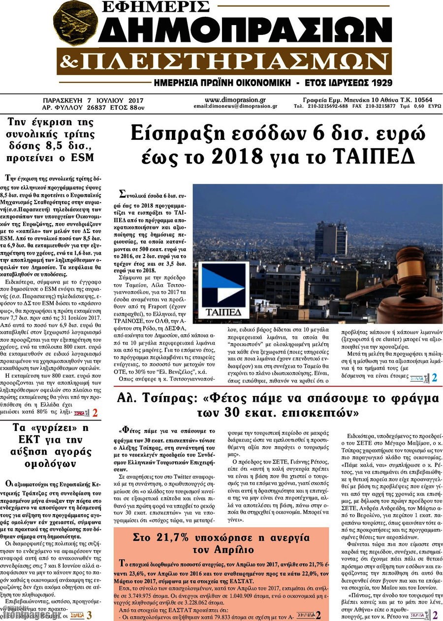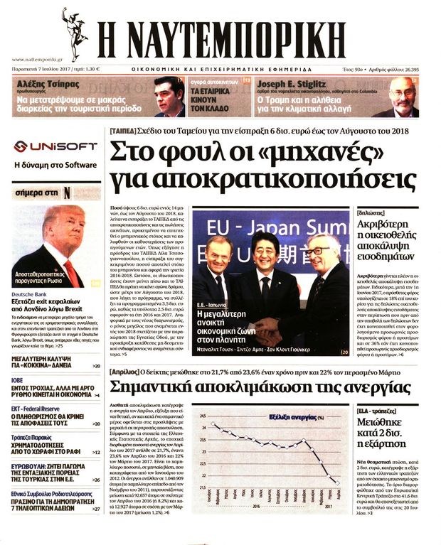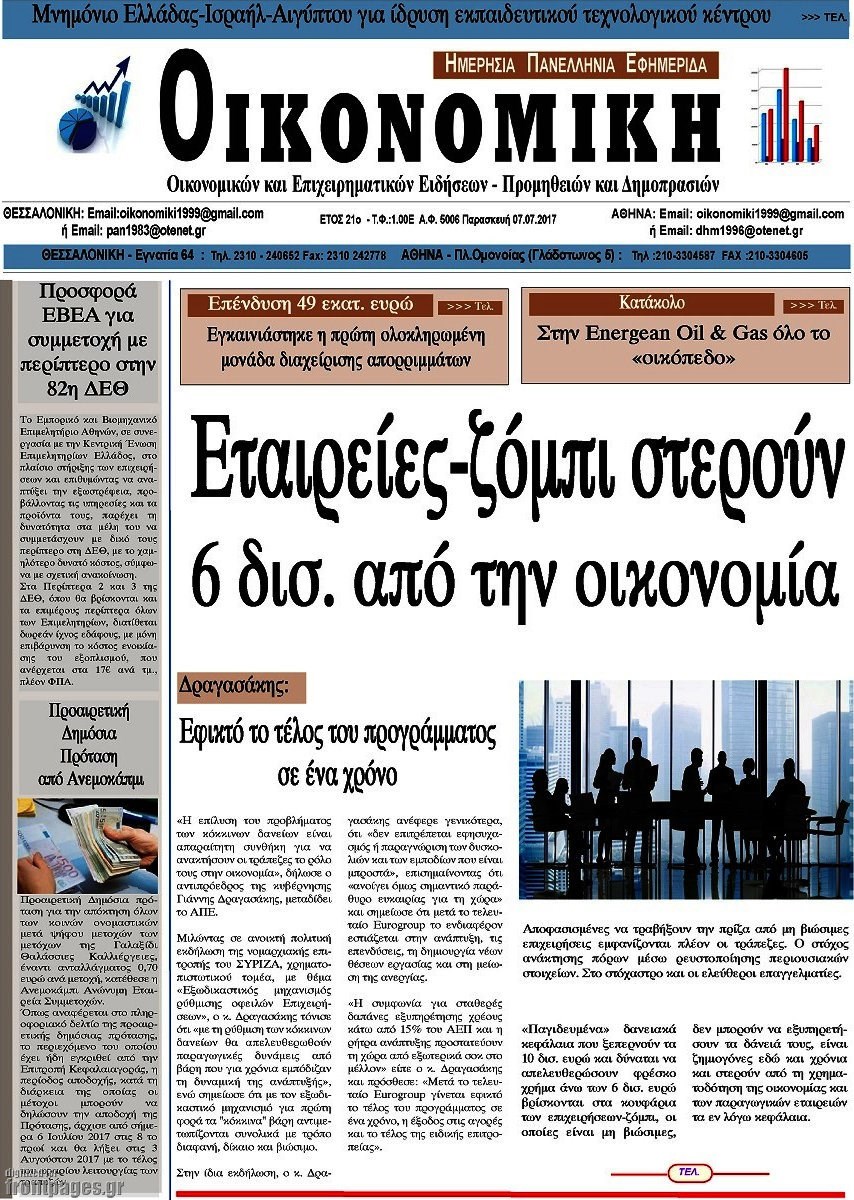 Οι οικονομικές εφημερίδες 7/7/2017 Enikos Newsroom 06:43, Παρασκευή 07 Ιουλίου 2017 Media Διαβάστε τα σημερινά πρωτοσέλιδα των οικονομικών εφημερίδων: ΟΙΚΟΝΟΜΙΚΕΣ ΕΦΗΜΕΡΙΔΕΣ ΠΡΩΤΟΣΕΛΙΔΑ Μοιράσου το: σχολίασε κι εσύ (0 σχόλια) Ακολουθήστε το enikos.gr στο Google News και μάθετε πρώτοι όλες τις ειδήσεις Δείτε όλες τις τελευταίες ειδήσεις από την Ελλάδα και τον Κόσμο στο enikos.gr Ειδήσεις Ροή Ειδήσεων 43 λεπτά πριν Ευρωπαϊκή Ένωση: Χωρίς συμφωνία, για την μακροπρόθεσμη χρηματοδότηση της Ουκρανίας, ολοκληρώθηκε η Σύνοδος Κορυφής στις Βρυξέλλες 4 ώρες πριν ΟΠΕΚΕΠΕ: Προφυλακιστέος ο φερόμενος αρχηγός και ο λογιστής της εγκληματικής οργάνωσης 5 ώρες πριν Αυξάνουν την πίεση προς την κυβέρνηση οι αγρότες: Κλείνουν παρακαμπτήριους και ανοίγουν διόδια – Τι θα γίνει τις γιορτές 5 ώρες πριν Φοινικούντα: Το Σάββατο απολογείται ο 30χρονος γιος γνωστού επιχειρηματία της Πλάκας που παραδόθηκε – Όσα είπε στους αστυνομικούς και ο ρόλος του στο έγκλημα 4 ώρες πριν ΑΕΚ – Κραϊόβα 3-2: Επική ανατροπή και πρόκριση στους «16» του Conference League η Ένωση 5 ώρες πριν Αρχαιολόγοι ανακάλυψαν ρωμαϊκά τεχνουργήματα από μια πόλη που δεν υπήρξε ποτέ – Τα τρία εντυπωσιακά κτίρια και ο αμφορέας με τις… σαρδέλες 6 ώρες πριν Ύπνος: Η απλή βραδινή ρουτίνα για να προστατεύσετε τα μαλλιά σας από το κρύο κατά τη διάρκεια του χειμώνα 7 ώρες πριν Manifesting: Πώς να συναντήσετε τον σύντροφο της ζωής σας, ανάλογα με τον μήνα γέννησής σας 2 ημέρες πριν 20 χρόνια τα Χριστούγεννα ξεκινούν στα Public με μεγάλη ποικιλία σε δώρα! 3 λεπτά πριν Σίσσυ Τουμάση: «Είμαι ασθενοφοβική πάρα πολύ και με πιάνει μια παράνοια μ’ αυτό» 27 λεπτά πριν Ντόναλντ Τραμπ: Δεν χρειάζομαι την έγκριση του Κογκρέσου για να διατάξω στρατιωτικά πλήγματα στη Βενεζουέλα 43 λεπτά πριν Ευρωπαϊκή Ένωση: Χωρίς συμφωνία, για την μακροπρόθεσμη χρηματοδότηση της Ουκρανίας, ολοκληρώθηκε η Σύνοδος Κορυφής στις Βρυξέλλες 58 λεπτά πριν GNTM: «Κλείδωσαν» οι τέσσερις φιναλίστ – Μεγάλη ανατροπή στις τελευταίες αποχωρήσεις 1 ώρα πριν Γιώργος Μαζωνάκης: Αποθεώθηκε στην πρεμιέρα του στην «Ακτή Πειραιώς» λίγες ώρες μετά τις καταγγελίες – «Είμαι αληθινός», είπε με νόημα ENIKOS NETWORK Σε περίοδο αυξημένης δραστηριότητας η γρίπη στην Ελλάδα-Μέτρα προστασίας από τον ΕΟΔΥ Σκέφτεστε συνέχεια συζητήσεις που έχετε κάνει; Τι σημαίνει αυτό, σύμφωνα με ειδικό Στεγαστικό: Τι λέει η ΠΟΜΙΔΑ για τα νέα μέτρα που ανακοίνωσε ο Κυριάκος Μητσοτάκης Λαγκάρντ: Αισιόδοξη για την ανάπτυξη της Ευρωζώνης, αβέβαιη για τον πληθωρισμό Χαρτογραφώντας το «σημείο χωρίς επιστροφή»: Για πρώτη φορά αποκαλύπτεται με λεπτομέρεια το ακανθώδες όριο της ατμόσφαιρας τ... Η Google καταργεί τη λειτουργία «dark web report» – Πώς θα μπορούν οι χρήστες να διαγράφουν τα δεδομένα τους περισσότερα 02:50 , Παρασκευή 19 Δεκεμβρίου 2025 GNTM: «Κλείδωσαν» οι τέσσερις φιναλίστ – Μεγάλη ανατροπή στις τελευταίες αποχωρήσεις Για προτελευταία φορά εμφανίστηκαν στο πλατό του GNTM οι φιναλίστ του φετινού κύκλου, το βράδυ... 17:45 , Πέμπτη 18 Δεκεμβρίου 2025 ROUK ZOUK: Εορταστικό επεισόδιο με καλεσμένους τους πρωταγωνιστές του «Γιατί ρε πατέρα» Το Σάββατο 20 Δεκεμβρίου στις 21:00, η Ζέτα Μακρυπούλια υποδέχεται εκλεκτούς ηθοποιούς που όλο... 17:20 , Πέμπτη 18 Δεκεμβρίου 2025 Άγιος έρωτας: Η Χριστίνα εξομολογείται στον πατέρα Νικόλαο, απόψε στις 21:00 στον Alpha Η Νότα αποφασίζει να εκδικηθεί τον Πέτρο και τον Στέφανο, για χάρη του Λούη, όμως τα πράγματα ... 16:50 , Πέμπτη 18 Δεκεμβρίου 2025 Ν