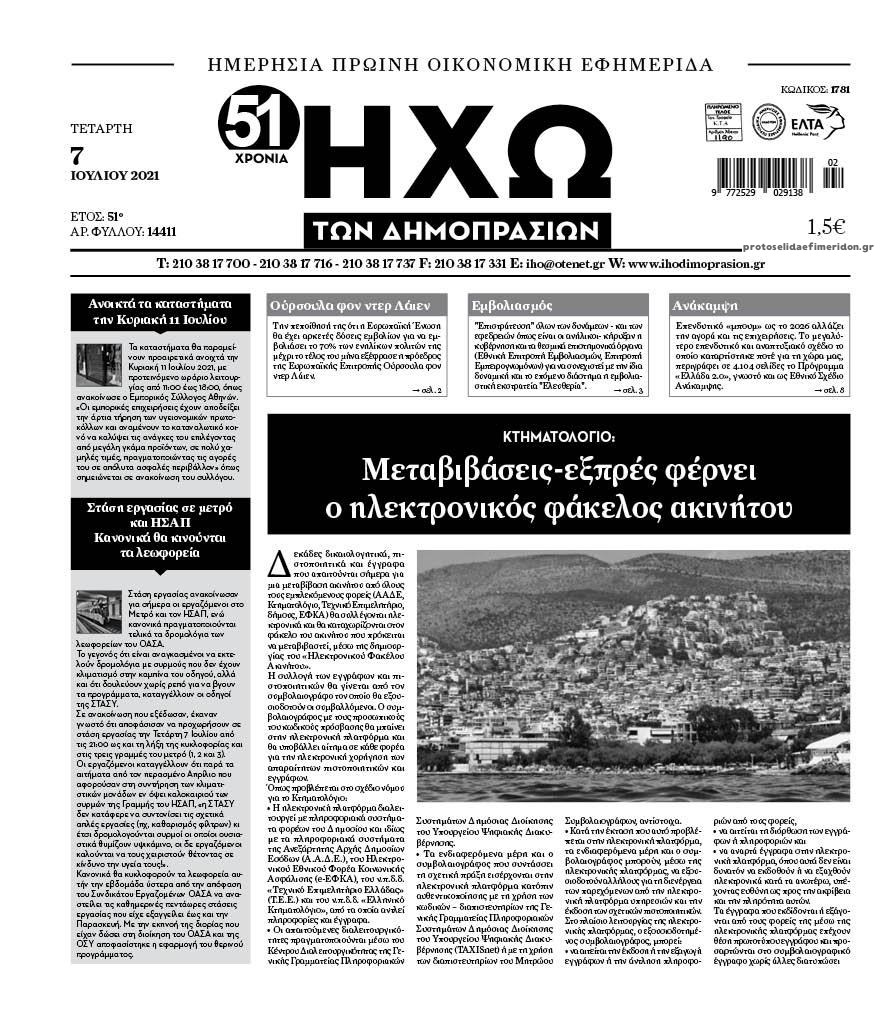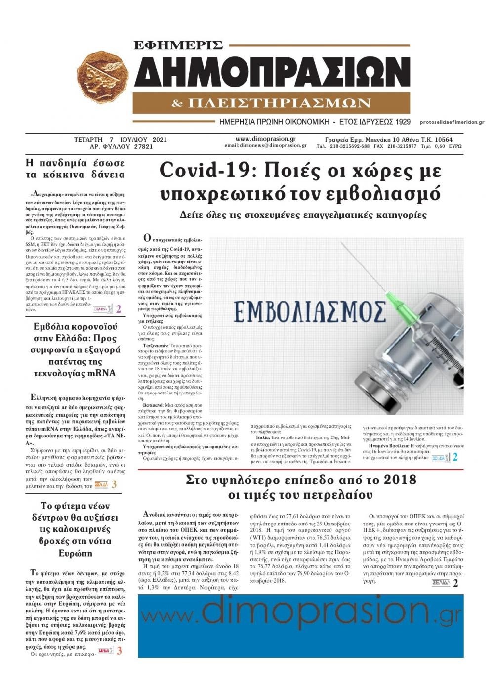 Οι οικονομικές εφημερίδες 7/7/2021 Διονύσης Νίκκας 06:52, Τετάρτη 07 Ιουλίου 2021 Media Διαβάστε τα πρωτοσέλιδα των οικονομικών εφημερίδων… ΟΙΚΟΝΟΜΙΚΕΣ ΕΦΗΜΕΡΙΔΕΣ Μοιράσου το: σχολίασε κι εσύ (0 σχόλια) Ακολουθήστε το enikos.gr στο Google News και μάθετε πρώτοι όλες τις ειδήσεις Δείτε όλες τις τελευταίες ειδήσεις από την Ελλάδα και τον Κόσμο στο enikos.gr Ειδήσεις Ροή Ειδήσεων 2 ώρες πριν Καιρός: Νέο έκτακτο δελτίο επιδείνωσης από την ΕΜΥ – Ποιες περιοχές θα «χτυπήσει» η κακοκαιρία τα Χριστούγεννα 3 ώρες πριν Live – Έξοδος Χριστουγέννων: Αυξημένη η κίνηση στις Εθνικές Οδούς – Εικόνα αποσυμφόρησης με νέες λωρίδες κυκλοφορίας στα αγροτικά μπλόκα 3 ώρες πριν Αεροπορικό δυστύχημα στην Τουρκία: Στο μικροσκόπιο ο καταγραφέας ήχου και το μαύρο κουτί – Η αεροσυνοδός Maria Pappa ανάμεσα στα θύματα 4 ώρες πριν Ο Ζελένσκι παρουσίασε νέο ειρηνευτικό σχέδιο 20 σημείων για τον τερματισμό του πολέμου στην Ουκρανία 5 ώρες πριν Φρίκη στη Θεσσαλονίκη: 13χρονη κατήγγειλε ότι έπεσε θύμα ομαδικού βιασμού από 6 αγόρια 4 ώρες πριν Η ζωή για 3 ζώδια γίνεται πολύ πιο εύκολη από εδώ και πέρα – «Εμπιστευτείτε τη διαίσθηση σας για να πάρετε αποφάσεις» 3 ώρες πριν Γυναίκα που έχασε 30 κιλά αποκαλύπτει τα μυστικά της επιτυχίας της – «Οι υδατάνθρακες είναι καύσιμο του οργανισμού, όχι εχθρός» 2 ώρες πριν Οι άνθρωποι που αποφεύγουν να γιορτάσουν τα Χριστούγεννα με την οικογένειά τους, συνήθως είχαν αυτές τις 8 εμπειρίες στην παιδική ηλικία 1 ημέρα πριν Η Coca-Cola και ο Ελληνικός Ερυθρός Σταυρός μαζί αυτά τα Χριστούγεννα: Μια μεγάλη αγκαλιά για τους συνανθρώπους μας που έχουν ανάγκη 9 λεπτά πριν Θεσσαλονίκη: Εντοπίστηκε οβίδα του Β’ Παγκοσμίου Πολέμου στον 6ο προβλήτα στο λιμάνι 15 λεπτά πριν Η Πειραιώς έγινε ξανά … ποτάμι από τη βροχή – Βίντεο αναγνώστη 22 λεπτά πριν Χριστουγεννιάτικα κάλαντα από την Πανηπειρωτική Συνομοσπονδία στον Σωκράτη Φάμελλο – Ο χορός του προέδρου του ΣΥΡΙΖΑ 31 λεπτά πριν Ιταλία: Κατασχέθηκαν 435 κιλά κοκαΐνης αξίας περίπου 70 εκατ. ευρώ 38 λεπτά πριν Κρεμλίνο: Ενήμερος ο Πούτιν για τις προτάσεις των ΗΠΑ για το ειρηνευτικό σχέδιο ENIKOS NETWORK Χριστουγεννιάτικα κάλαντα από εθελοντές του Ερυθρού Σταυρού στον Υπουργό Υγείας Άδωνι Γεωργιάδη Σύνδρομο ευερέθιστου εντέρου: Το Νο1 εορταστικό τρόφιμο που πρέπει να παραλείψετε για να αποφύγετε τα αέρια Χρυσός: Το φράγμα των 4.500 δολαρίων ανά ουγγιά έσπασε η τιμή του – Πώς θα διαμορφωθεί τους επόμενους μήνες Σχολές ΔΥΠΑ: Βγήκαν τα αποτελέσματα για τους προσωρινούς αναπληρωτές και ωρομίσθιους εκπαιδευτικούς Ο Google Assistant θα παραμείνει λίγο περισσότερο για ορισμένους χρήστες Android Τεστ προσωπικότητας: Το βάζο που θα επιλέξετε αποκαλύπτει πώς λύνετε προβλήματα στη ζωή σας περισσότερα 13:27 , Τετάρτη 24 Δεκεμβρίου 2025 Ο Χριστουγεννιάτικος Τηλεμαραθώνιος του ΑΝΤ1 ένωσε τους πολιτικούς αρχηγούς – Τα εγκωμιαστικά σχόλια για τον Θοδωρή Κυριακού Σπάνια ομοφωνία: Όλοι οι πολιτικοί αρχηγοί αποθεώνουν τον Θοδωρή Κυριακού Ο Χριστουγεννιάτικος... 12:05 , Τετάρτη 24 Δεκεμβρίου 2025 Έξοδος εκδρομέων για τα Χριστούγεννα: Στείλε βίντεο ή φωτογραφίες στο enikos.gr – Αποθήκευσε τον αριθμό 6944 05 05 05 Πολλοί έχουν επιλέξει να περάσουν τις γιορτές εκτός πόλης, ωστόσο και φέτος η μαζική έξοδος απ... 10:36 , Τετάρτη 24 Δεκεμβρίου 2025 Τηλεθέαση (23/12): Ποιες πρωινές εκπομπές της ψυχαγωγικής ζώνης πήραν προβάδισμα; Με αμείωτη ένταση συνεχίστηκε η «μάχη» στην πρωινή ζώνη την Τρίτη 23 Δεκεμβρίου, 
