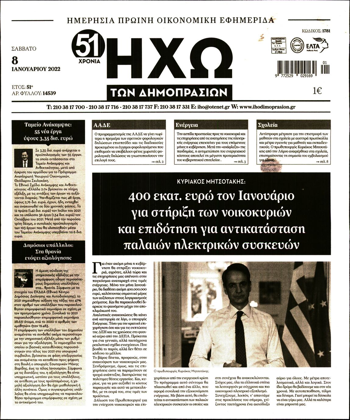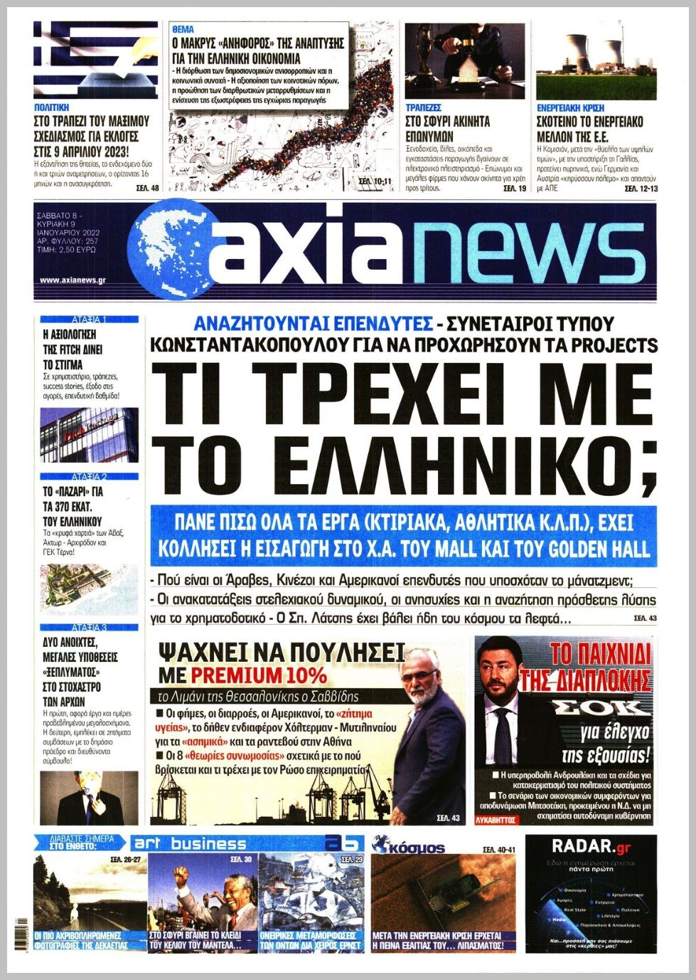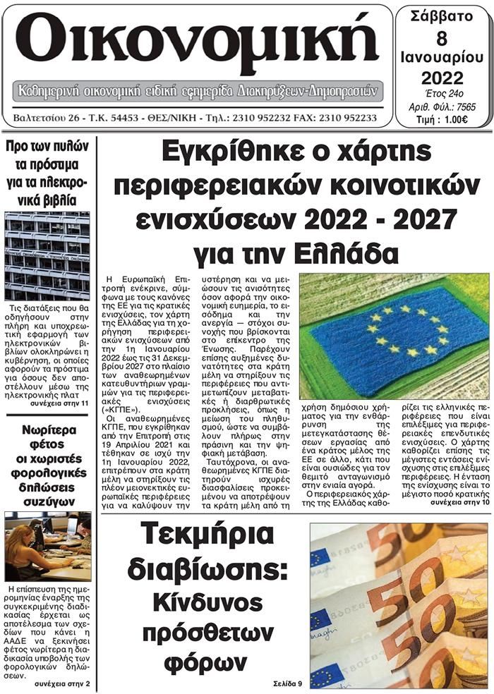 Οι οικονομικές εφημερίδες 8/1/2022 Διονύσης Νίκκας 07:17, Σάββατο 08 Ιανουαρίου 2022 Media Διαβάστε τα πρωτοσέλιδα από τις οικονομικές εφημερίδες… ΟΙΚΟΝΟΜΙΚΕΣ ΕΦΗΜΕΡΙΔΕΣ Μοιράσου το: Εμβολιασμοί: Προσέρχονται μαζικά οι πολίτες για την τρίτη αλλά και την πρώτη δόση – ΒΙΝΤΕΟ Κίνα: Τουλάχιστον 16 νεκροί και 10 τραυματίες από έκρηξη σε καντίνα – ΒΙΝΤΕΟ Κορονοϊός: Ο πλανήτης περνά το όριο των 300 εκατομμυρίων κρουσμάτων και πολεμά την “Όμικρον” σχολίασε κι εσύ (0 σχόλια) Ακολουθήστε το enikos.gr στο Google News και μάθετε πρώτοι όλες τις ειδήσεις Δείτε όλες τις τελευταίες ειδήσεις από την Ελλάδα και τον Κόσμο στο enikos.gr Ειδήσεις Ροή Ειδήσεων 1 ώρα πριν Νίκος Παππάς: Το παρασκήνιο της αποπομπής του – Οι μπουνιές, τα μηνύματα μετά την επίθεση και η διαγραφή από τον ΣΥΡΙΖΑ 13 λεπτά πριν Ντόναλντ Τραμπ: Το διάγγελμα, η πτώση στις δημοσκοπήσεις και το… χάος που κληρονόμησε από τον Μπάιντεν 59 λεπτά πριν Άστατος ο καιρός τα Χριστούγεννα: Βαρομετρικό χαμηλό από τον κόλπο της Σύρτης «ξεκλειδώνει» κακοκαιρίες – Πώς θα εξελιχθεί έως την Πρωτοχρονιά 2 ώρες πριν Φοινικούντα: Παραδόθηκε 30χρονος στην Καλαμάτα για τη διπλή δολοφονία 2 ώρες πριν Αγρότες: Ανυποχώρητοι στα μπλόκα – Στις Σέρρες σήμερα η κρίσιμη συνεδρίαση της Πανελλαδικής Επιτροπής 4 ώρες πριν Καούρα: Το μπαχαρικό που είναι «εξίσου αποτελεσματικό» με την ομεπραζόλη, σύμφωνα με ειδικούς 4 ώρες πριν Οπτική ψευδαίσθηση: Μόνο οι πιο έξυπνοι άνθρωποι θα βρουν 7 ξωτικά 15 δευτερόλεπτα 50 λεπτά πριν Η σύζυγός του παραπονιέται για τα χρήματα που της δίνει για ψώνια κάθε μήνα – «Λέει ότι νιώθει φτωχή και της είπα να βρει δουλειά» 1 ημέρα πριν 20 χρόνια τα Χριστούγεννα ξεκινούν στα Public με μεγάλη ποικιλία σε δώρα! 5 λεπτά πριν Μάριο Πινέιδα: Ο αμυντικός του Ισημερινού σκοτώθηκε σε ένοπλη επίθεση στη Γκουαγιακίλ 13 λεπτά πριν Ντόναλντ Τραμπ: Το διάγγελμα, η πτώση στις δημοσκοπήσεις και το… χάος που κληρονόμησε από τον Μπάιντεν 19 λεπτά πριν Τηλεθέαση (17/12): Η μάχη στην prime time ζώνη 24 λεπτά πριν Απολογούνται σήμερα ο Έλληνας «Εσκομπάρ» και οι υπόλοιποι συλληφθέντες για το φορτίο με την κοκαΐνη – Ο ρόλος του 73χρονου συνεργού του 30 λεπτά πριν Νέα ωκεανογραφική αποστολή στη Σαντορίνη: Στο μικροσκόπιο το σεισμικό σμήνος του 2025 – Πώς αντιδρούν τα ηφαιστειακά συστήματα της περιοχής ENIKOS NETWORK 5 ασκήσεις που εξαφανίζουν το «σωσίβιο» πιο γρήγορα από τους κοιλιακούς μετά τα 50 «Έκανα χρόνια μανικιούρ με τζελ μέχρι που κινδύνευσαν να πέσουν» – Πώς ήταν το σημάδι στο νύχι που την προειδοποίησε Οφειλές προς το Δημόσιο: «Φρένο» στα σενάρια για νέα ρύθμιση – Τι απαντά το υπουργείο Εθνικής Οικονομίας και Οικονομικών Φοροδιαφυγή: Ποιοι φορολογούμενοι κινδυνεύουν να πληρώσουν «τσουχτερά» πρόστιμα Χαρτογραφώντας το «σημείο χωρίς επιστροφή»: Για πρώτη φορά αποκαλύπτεται με λεπτομέρεια το ακανθώδες όριο της ατμόσφαιρας τ... Η Google καταργεί τη λειτουργία «dark web report» – Πώς θα μπορούν οι χρήστες να διαγράφουν τα δεδομένα τους περισσότερα 08:00 , Πέμπτη 18 Δεκεμβρίου 2025 Την Κυριακή με τη Realnews: Δωροεπιταγή 10€ Δωροεπιταγή αξίας 10€ για αγορές άνω των 60€ από τα πολυκαταστήματα FactoryOutlet H προσφορά ι... 07:50 , Πέμπτη 18 Δεκεμβρίου 2025 «Το σόι σου»: Backstage στα γυρίσματα για το εορταστικό επεισόδιο «Το σόι σου» φορά τα γιορτινά του για τα Χριστούγεννα και η Όλγα Λαφαζάνη, με την κάμερα του «... 07:36 , Πέμπτη 18 Δεκεμβρίου 2025 Οι αθλητικές μεταδόσεις 18/12/2025 – Πού θα δείτε τον αγώνα τ