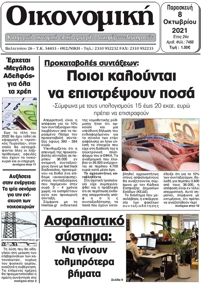 Οι οικονομικές εφημερίδες 8/10/2021 Διονύσης Νίκκας 06:32, Παρασκευή 08 Οκτωβρίου 2021 Media Διαβάστε τα πρωτοσέλιδα από τις οικονομικές εφημερίδες… ΟΙΚΟΝΟΜΙΚΕΣ ΕΦΗΜΕΡΙΔΕΣ Μοιράσου το: σχολίασε κι εσύ (0 σχόλια) Ακολουθήστε το enikos.gr στο Google News και μάθετε πρώτοι όλες τις ειδήσεις Δείτε όλες τις τελευταίες ειδήσεις από την Ελλάδα και τον Κόσμο στο enikos.gr Ειδήσεις Ροή Ειδήσεων 1 ώρα πριν Δημοσκόπηση Metron Analysis: Στις 10 μονάδες η διαφορά ΝΔ-ΠΑΣΟΚ, στην 3η θέση η Πλεύση Ελευθερίας – 8 στους 10 στηρίζουν τον αγώνα των αγροτών 6 ώρες πριν Αγρότες: «Όχι στον διάλογο, μας εμπαίζει η κυβέρνηση» – Αποφάσισαν κλιμάκωση των κινητοποιήσεων, τι θα γίνει τα Χριστούγεννα 1 ώρα πριν Νίκος Παππάς στον ΑΝΤ1: «Δεν κρύβομαι – Μετά το συμβάν ακολούθησα κανονικά το πρόγραμμά μου» – ΒΙΝΤΕΟ 3 ώρες πριν Αθήνα: Εξαρθρώθηκε εγκληματική οργάνωση που διακινούσε ναρκωτικά σε μορφή σοκολάτας – Δύο τράπερ ανάμεσα στους 4 συλληφθέντες – ΒΙΝΤΕΟ 1 ώρα πριν Διαμαντής Καραναστάσης: Οδηγούσε υπό την επήρεια αλκοόλ – Του αφαιρέθηκε το δίπλωμα και του επιβλήθηκε πρόστιμο 350 ευρώ 2 ώρες πριν Manifesting: Πώς να συναντήσετε τον σύντροφο της ζωής σας, ανάλογα με τον μήνα γέννησής σας 4 ώρες πριν Γάμος: 11 ψυχρές αλλά ευγενικές φράσεις, που λέει ένας άνδρας όταν σκέφτεται τον χωρισμό 3 ώρες πριν Σφουγγάρισμα: Η συνήθεια που θα σας βοηθήσει να διατηρήσετε το σπίτι σας καθαρό και τακτοποιημένο 2 ημέρες πριν 20 χρόνια τα Χριστούγεννα ξεκινούν στα Public με μεγάλη ποικιλία σε δώρα! 2 λεπτά πριν Αυξάνουν την πίεση προς την κυβέρνηση οι αγρότες: Κλείνουν παρακαμπτήριους και ανοίγουν διόδια – Τι θα γίνει τις γιορτές 7 λεπτά πριν Ελισάβετ Κωνσταντινίδου για τον Γεράσιμο Μιχελή και την Πόπη Χριστοδούλου: «Ξέρω ότι έχουν πάει απλώς κάπου αλλού, ότι δεν είναι ο θάνατος έτσι όπως τον έχουμε στο μυαλό μας» 12 λεπτά πριν Κρήτη: Νέες αποκαλύψεις για τον 54χρονο που κατηγορείται ότι εξαπάτησε τους γονείς του 33χρονου – Ζητούσε τρίχες αγνοουμένων 19 λεπτά πριν Τσιάρας: Δεν θα κινδυνέψουν οι πληρωμές των αγροτών – Χρειαζόμαστε μια νέα πολιτική, ένα restart 25 λεπτά πριν Δέσποινα Βανδή: Το βίντεο που δημοσίευσε με τον Γιώργο Νικολαΐδη – «Έχουμε καταστραφεί από τα μελομακάρονά σου» ENIKOS NETWORK Σε περίοδο αυξημένης δραστηριότητας η γρίπη στην Ελλάδα-Μέτρα προστασίας από τον ΕΟΔΥ Σκέφτεστε συνέχεια συζητήσεις που έχετε κάνει; Τι σημαίνει αυτό, σύμφωνα με ειδικό ΑΣΕΠ 2ΓΒ/2025: Σήμερα αρχίζει η υποβολή ενστάσεων – Πότε θα βγουν τα οριστικά αποτελέσματα ΕΛΤΑ: Αυτό είναι το νέο σχέδιο μετασχηματισμού του Οργανισμού- Τι δήλωσαν Πιερρακάκης και Παπαστεργίου Χαρτογραφώντας το «σημείο χωρίς επιστροφή»: Για πρώτη φορά αποκαλύπτεται με λεπτομέρεια το ακανθώδες όριο της ατμόσφαιρας τ... Η Google καταργεί τη λειτουργία «dark web report» – Πώς θα μπορούν οι χρήστες να διαγράφουν τα δεδομένα τους περισσότερα 17:45 , Πέμπτη 18 Δεκεμβρίου 2025 ROUK ZOUK: Εορταστικό επεισόδιο με καλεσμένους τους πρωταγωνιστές του «Γιατί ρε πατέρα» Το Σάββατο 20 Δεκεμβρίου στις 21:00, η Ζέτα Μακρυπούλια υποδέχεται εκλεκτούς ηθοποιούς που όλο... 17:20 , Πέμπτη 18 Δεκεμβρίου 2025 Άγιος έρωτας: Η Χριστίνα εξομολογείται στον πατέρα Νικόλαο, απόψε στις 21:00 στον Alpha Η Νότα αποφασίζει να εκδικηθεί τον Πέτρο και τον Στέφανο, για χάρη του Λούη, όμως τα πράγματα ... 16:50 , Πέμπτη 18 Δεκεμβρίου 2025 Να μ’ αγαπάς: Ζωή και Φωτεινή συμφιλιώνονται ως μάνα με κόρη, απόψε στις 20:00 Η ταυτότητα του Άγγελου αποκαλύπτεται στο νέο επε