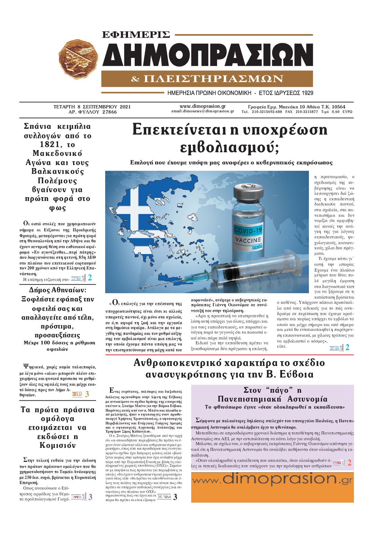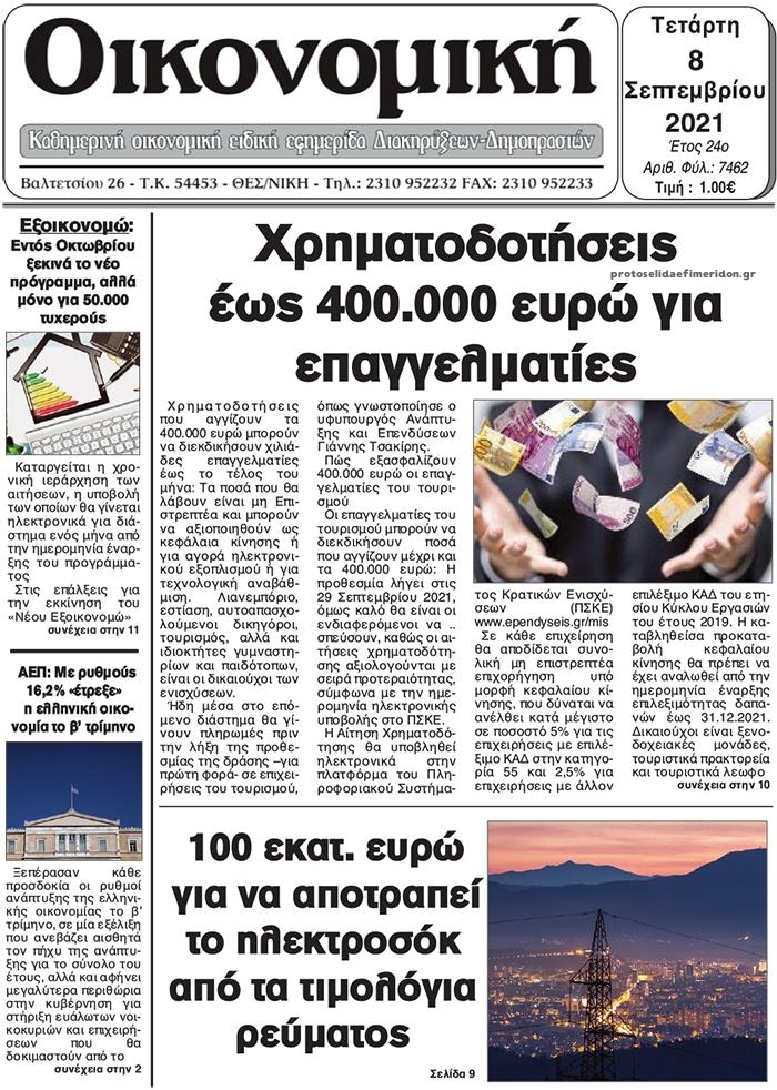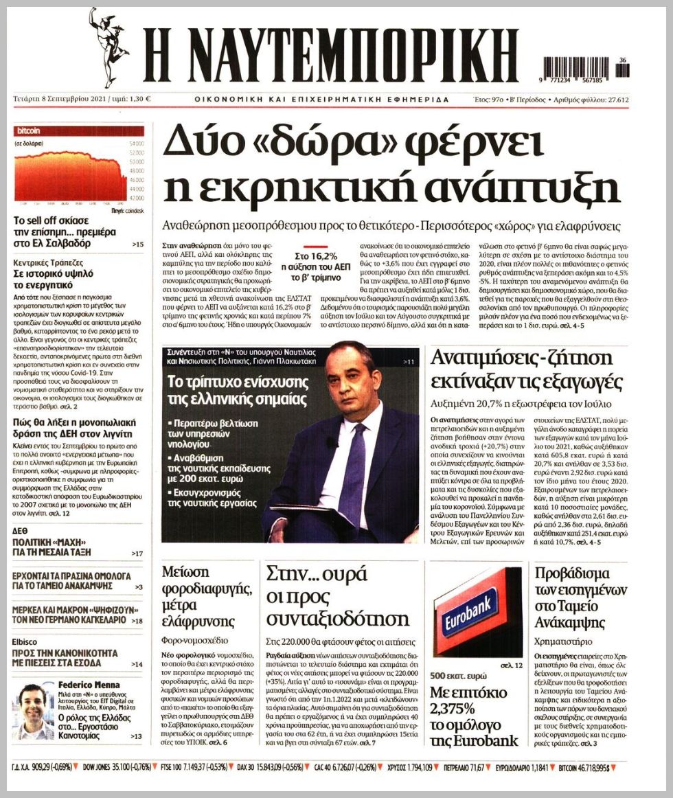 Οι οικονομικές εφημερίδες 8/9/2021 Διονύσης Νίκκας 06:52, Τετάρτη 08 Σεπτεμβρίου 2021 Media Διαβάστε τα πρωτοσέλιδα των οικονομικών εφημερίδων… ΟΙΚΟΝΟΜΙΚΕΣ ΕΦΗΜΕΡΙΔΕΣ Μοιράσου το: σχολίασε κι εσύ (0 σχόλια) Ακολουθήστε το enikos.gr στο Google News και μάθετε πρώτοι όλες τις ειδήσεις Δείτε όλες τις τελευταίες ειδήσεις από την Ελλάδα και τον Κόσμο στο enikos.gr Ειδήσεις Ροή Ειδήσεων 20 λεπτά πριν Την πρώτη Belharra παρέλαβε η χώρα μας, υψώθηκε η ελληνική σημαία στη φρεγάτα «Κίμων» – Δένδιας: «Το ισχυρότερο Πολεμικό Ναυτικό που είχε ποτέ ο ελληνισμός» 3 ώρες πριν Γιώργος Μαζωνάκης: «Δεν ζήτησα χρήματα, παρά μόνο ηθική δικαίωση» – Οι πρώτες δηλώσεις του 21χρονου μετά την κατάθεση της μήνυσης 2 ώρες πριν Δίκη Βαλυράκη: Καταθέτει ο βασικός αυτόπτης μάρτυρας – «Δέχτηκα πιέσεις να μη μιλήσω, πήγα να ψωνίσω και αυτοκίνητο με χτύπησε στο πόδι» 2 ώρες πριν Ώρα αποφάσεων για τους αγρότες – Ξεκίνησε η πανελλαδική σύσκεψη μπλόκων στις Σέρρες – ΦΩΤΟ 6 ώρες πριν Συναγερμός και στην Ελλάδα για τη «σούπερ γρίπη»: Πόσο σοβαρή είναι και ποιοι θεωρούνται πιο ευάλωτοι – 3 ειδικοί μιλούν στο enikos.gr 46 λεπτά πριν Τα 5 ζώδια που θα ευνοηθούν στα οικονομικά τους το 2026 – «Τραβούν το χρήμα σαν μαγνήτες» 6 ώρες πριν Αν κάνετε συνεχώς αυτά τα 8 πράγματα με τα κατοικίδιά σας, σας λείπει η ανθρώπινη επαφή 2 ώρες πριν Αυτό που κρύβεται κάτω από τη Γροιλανδία θα μπορούσε να ανατρέψει όσα γνωρίζουμε για την άνοδο της στάθμης των θαλασσών 1 ημέρα πριν 20 χρόνια τα Χριστούγεννα ξεκινούν στα Public με μεγάλη ποικιλία σε δώρα! 6 λεπτά πριν Εξεταστική για ΟΠΕΚΕΠΕ – Μπρατάκος: «Δεν μου τέθηκε ζήτημα για πιέσεις από τον κ. Αυγενάκη ή οποιονδήποτε» – Τι είπε για τον Σημανδράκο 7 λεπτά πριν ΤΕΧΑΝ: 1ο Πανελλήνιο Σχολικό Πρωτάθλημα Ανακύκλωσης Δευτεροβάθμιας Εκπαίδευσης 11 λεπτά πριν Τραυματίστηκε 5χρονο παιδί σε νηπιαγωγείο στο Αγρίνιο – Χτυπήθηκε από αντικείμενο που έπεσε από έπιπλο 16 λεπτά πριν Μεσσηνία: Παρέμβαση εισαγγελέα στο μπλόκο αγροτών στον κόμβο της Θουρίας έπειτα από καταγγελίες για παρακώλυση συγκοινωνιών 20 λεπτά πριν Την πρώτη Belharra παρέλαβε η χώρα μας, υψώθηκε η ελληνική σημαία στη φρεγάτα «Κίμων» – Δένδιας: «Το ισχυρότερο Πολεμικό Ναυτικό που είχε ποτέ ο ελληνισμός» ENIKOS NETWORK 100 χρόνια ΠΙΣ: Ένας αιώνας προσφοράς στην Ιατρική και την κοινωνία Ένα ποτήρι την ημέρα από αυτόν τον χυμό μειώνει τη χοληστερίνη, τη φλεγμονή και την πίεση Κρατική επιχορήγηση έως 14.500 ευρώ: Ποιοι θα λάβουν από σήμερα την προκαταβολή στον τραπεζικό λογαριασμό τους Αυτόματη απόδοση ΦΠΑ: Τα δύο σενάρια που επεξεργάζεται η ΑΑΔΕ Χαρτογραφώντας το «σημείο χωρίς επιστροφή»: Για πρώτη φορά αποκαλύπτεται με λεπτομέρεια το ακανθώδες όριο της ατμόσφαιρας τ... Η Google καταργεί τη λειτουργία «dark web report» – Πώς θα μπορούν οι χρήστες να διαγράφουν τα δεδομένα τους περισσότερα 15:52 , Πέμπτη 18 Δεκεμβρίου 2025 Το Σπίτι Δίπλα Στο Ποτάμι: Το καθηλωτικό τελευταίο επεισόδιο για το 2025 απόψε στις 22:30 Καθηλώνει το σημερινό επεισόδιο της σειράς “Το Σπίτι Δίπλα Στο Ποτάμι” που έρχεται... 15:20 , Πέμπτη 18 Δεκεμβρίου 2025 Άγιος έρωτας – Η Ελευθερία Αρβανιτάκη τραγουδά και ο Γιάννης Τσορτέκης καθηλώνει με τον χορό του Ο Κλεάνθης χορεύει στους ήχους της Ελευθερίας Αρβανιτάκη στη σειρά “Άγιος Έρωτας“.... 08:00 , Πέμπτη 18 Δεκεμβρίου 2025 Την Κυριακή με τη Realnews: Δωροεπιταγή 10€ Δωροεπιταγή αξίας 10€ για αγορές άνω των 60€ από τα πολυκαταστήματα FactoryOutlet H προσφορά ι... 07:50 , Πέμπτη 18
