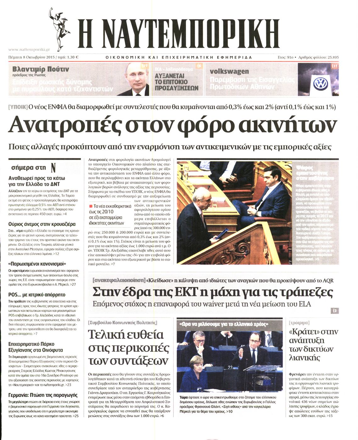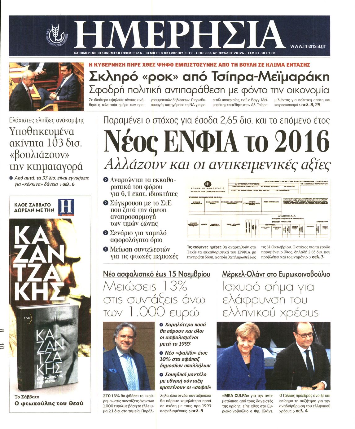 Οι οικονομικές εφημερίδες 8/10/2015 Enikos Newsroom 06:04, Πέμπτη 08 Οκτωβρίου 2015 Media Διαβάστε τα σημερινά πρωτοσέλιδα των οικονομικών εφημερίδων: ΟΙΚΟΝΟΜΙΚΕΣ ΕΦΗΜΕΡΙΔΕΣ ΠΡΩΤΟΣΕΛΙΔΑ Μοιράσου το: σχολίασε κι εσύ (0 σχόλια) Ακολουθήστε το enikos.gr στο Google News και μάθετε πρώτοι όλες τις ειδήσεις Δείτε όλες τις τελευταίες ειδήσεις από την Ελλάδα και τον Κόσμο στο enikos.gr Ειδήσεις Ροή Ειδήσεων 44 λεπτά πριν Ευρωπαϊκή Ένωση: Χωρίς συμφωνία, για την μακροπρόθεσμη χρηματοδότηση της Ουκρανίας, ολοκληρώθηκε η Σύνοδος Κορυφής στις Βρυξέλλες 4 ώρες πριν ΟΠΕΚΕΠΕ: Προφυλακιστέος ο φερόμενος αρχηγός και ο λογιστής της εγκληματικής οργάνωσης 5 ώρες πριν Αυξάνουν την πίεση προς την κυβέρνηση οι αγρότες: Κλείνουν παρακαμπτήριους και ανοίγουν διόδια – Τι θα γίνει τις γιορτές 5 ώρες πριν Φοινικούντα: Το Σάββατο απολογείται ο 30χρονος γιος γνωστού επιχειρηματία της Πλάκας που παραδόθηκε – Όσα είπε στους αστυνομικούς και ο ρόλος του στο έγκλημα 4 ώρες πριν ΑΕΚ – Κραϊόβα 3-2: Επική ανατροπή και πρόκριση στους «16» του Conference League η Ένωση 5 ώρες πριν Αρχαιολόγοι ανακάλυψαν ρωμαϊκά τεχνουργήματα από μια πόλη που δεν υπήρξε ποτέ – Τα τρία εντυπωσιακά κτίρια και ο αμφορέας με τις… σαρδέλες 6 ώρες πριν Ύπνος: Η απλή βραδινή ρουτίνα για να προστατεύσετε τα μαλλιά σας από το κρύο κατά τη διάρκεια του χειμώνα 7 ώρες πριν Manifesting: Πώς να συναντήσετε τον σύντροφο της ζωής σας, ανάλογα με τον μήνα γέννησής σας 2 ημέρες πριν 20 χρόνια τα Χριστούγεννα ξεκινούν στα Public με μεγάλη ποικιλία σε δώρα! 4 δευτερόλεπτα πριν Στη Φλόριντα σήμερα οι διαβουλεύσεις σχετικά με τα επόμενα στάδια για τη Λωρίδα της Γάζας 4 λεπτά πριν Σίσσυ Τουμάση: «Είμαι ασθενοφοβική πάρα πολύ και με πιάνει μια παράνοια μ’ αυτό» 29 λεπτά πριν Ντόναλντ Τραμπ: Δεν χρειάζομαι την έγκριση του Κογκρέσου για να διατάξω στρατιωτικά πλήγματα στη Βενεζουέλα 44 λεπτά πριν Ευρωπαϊκή Ένωση: Χωρίς συμφωνία, για την μακροπρόθεσμη χρηματοδότηση της Ουκρανίας, ολοκληρώθηκε η Σύνοδος Κορυφής στις Βρυξέλλες 59 λεπτά πριν GNTM: «Κλείδωσαν» οι τέσσερις φιναλίστ – Μεγάλη ανατροπή στις τελευταίες αποχωρήσεις ENIKOS NETWORK Σε περίοδο αυξημένης δραστηριότητας η γρίπη στην Ελλάδα-Μέτρα προστασίας από τον ΕΟΔΥ Σκέφτεστε συνέχεια συζητήσεις που έχετε κάνει; Τι σημαίνει αυτό, σύμφωνα με ειδικό Στεγαστικό: Τι λέει η ΠΟΜΙΔΑ για τα νέα μέτρα που ανακοίνωσε ο Κυριάκος Μητσοτάκης Λαγκάρντ: Αισιόδοξη για την ανάπτυξη της Ευρωζώνης, αβέβαιη για τον πληθωρισμό Χαρτογραφώντας το «σημείο χωρίς επιστροφή»: Για πρώτη φορά αποκαλύπτεται με λεπτομέρεια το ακανθώδες όριο της ατμόσφαιρας τ... Η Google καταργεί τη λειτουργία «dark web report» – Πώς θα μπορούν οι χρήστες να διαγράφουν τα δεδομένα τους περισσότερα 02:50 , Παρασκευή 19 Δεκεμβρίου 2025 GNTM: «Κλείδωσαν» οι τέσσερις φιναλίστ – Μεγάλη ανατροπή στις τελευταίες αποχωρήσεις Για προτελευταία φορά εμφανίστηκαν στο πλατό του GNTM οι φιναλίστ του φετινού κύκλου, το βράδυ... 17:45 , Πέμπτη 18 Δεκεμβρίου 2025 ROUK ZOUK: Εορταστικό επεισόδιο με καλεσμένους τους πρωταγωνιστές του «Γιατί ρε πατέρα» Το Σάββατο 20 Δεκεμβρίου στις 21:00, η Ζέτα Μακρυπούλια υποδέχεται εκλεκτούς ηθοποιούς που όλο... 17:20 , Πέμπτη 18 Δεκεμβρίου 2025 Άγιος έρωτας: Η Χριστίνα εξομολογείται στον πατέρα Νικόλαο, απόψε στις 21:00 στον Alpha Η Νότα αποφασίζει να εκδικηθεί τον Πέτρο και τον Στέφανο, για χάρη του Λούη, όμως τα πράγματα ... 16:50 , Πέμπτη 18 Δεκεμβρίου 2025 Να μ’ αγαπάς: Ζωή και Φωτεινή συμφιλιώ