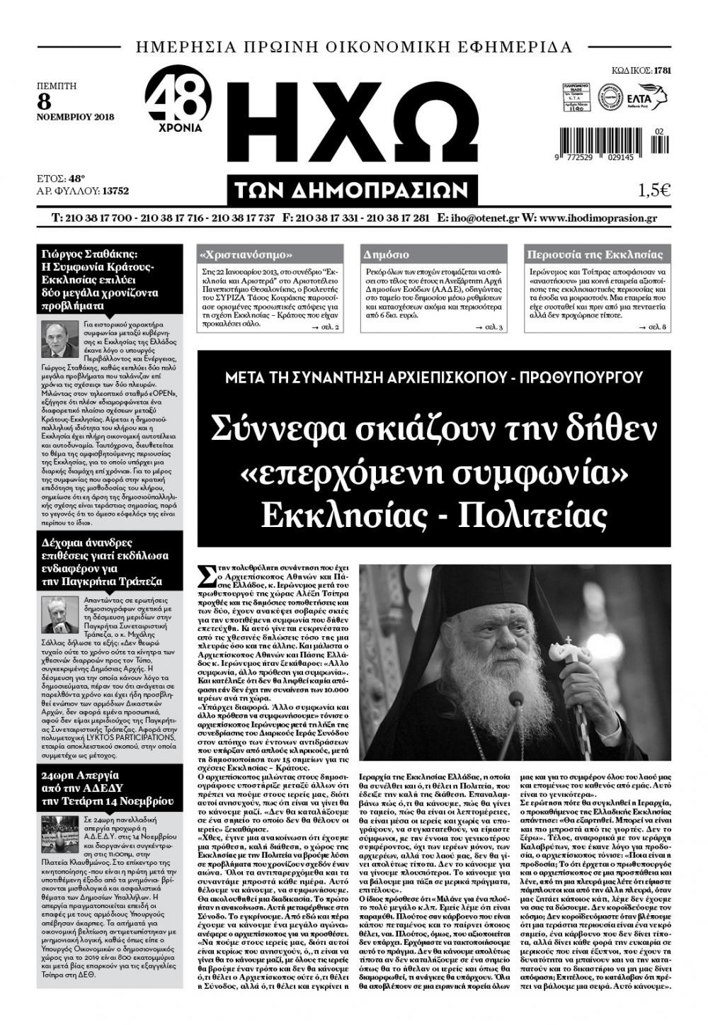 Οι οικονομικές εφημερίδες 8/11/18 Enikos Newsroom 06:46, Πέμπτη 08 Νοεμβρίου 2018 Media Διαβάστε τα πρωτοσέλιδα: ΟΙΚΟΝΟΜΙΚΕΣ ΕΦΗΜΕΡΙΔΕΣ ΠΡΩΤΟΣΕΛΙΔΑ Μοιράσου το: σχολίασε κι εσύ (0 σχόλια) Ακολουθήστε το enikos.gr στο Google News και μάθετε πρώτοι όλες τις ειδήσεις Δείτε όλες τις τελευταίες ειδήσεις από την Ελλάδα και τον Κόσμο στο enikos.gr Ειδήσεις Ροή Ειδήσεων 1 ώρα πριν Ευρωπαϊκή Ένωση: Συμφωνία για δάνειο 90 δισ. ευρώ στην Ουκρανία τη διετία 2026-2027 6 ώρες πριν ΟΠΕΚΕΠΕ: Προφυλακιστέος ο φερόμενος αρχηγός και ο λογιστής της εγκληματικής οργάνωσης 7 ώρες πριν Αυξάνουν την πίεση προς την κυβέρνηση οι αγρότες: Κλείνουν παρακαμπτήριους και ανοίγουν διόδια – Τι θα γίνει τις γιορτές 7 ώρες πριν Φοινικούντα: Το Σάββατο απολογείται ο 30χρονος γιος γνωστού επιχειρηματία της Πλάκας που παραδόθηκε – Όσα είπε στους αστυνομικούς και ο ρόλος του στο έγκλημα 5 ώρες πριν ΑΕΚ – Κραϊόβα 3-2: Επική ανατροπή και πρόκριση στους «16» του Conference League η Ένωση 6 ώρες πριν Αρχαιολόγοι ανακάλυψαν ρωμαϊκά τεχνουργήματα από μια πόλη που δεν υπήρξε ποτέ – Τα τρία εντυπωσιακά κτίρια και ο αμφορέας με τις… σαρδέλες 7 ώρες πριν Ύπνος: Η απλή βραδινή ρουτίνα για να προστατεύσετε τα μαλλιά σας από το κρύο κατά τη διάρκεια του χειμώνα 8 ώρες πριν Manifesting: Πώς να συναντήσετε τον σύντροφο της ζωής σας, ανάλογα με τον μήνα γέννησής σας 2 ημέρες πριν 20 χρόνια τα Χριστούγεννα ξεκινούν στα Public με μεγάλη ποικιλία σε δώρα! 1 λεπτό πριν Εφημερεύοντα φαρμακεία σε Αθήνα και Θεσσαλονίκη (19/12) 8 λεπτά πριν Η TikTok στις ΗΠΑ πωλείται σε Oracle, Silver Lake και MGX – Οι λεπτομέρειες του «deal» 16 λεπτά πριν Αλεξάντερ Λουκασένκο: Η Λευκορωσία βρίσκεται κοντά στην αποκατάσταση των σχέσεών της με τις ΗΠΑ 31 λεπτά πριν Αυστραλία: Κήρυξε την Κυριακή (21/12) ημέρα εθνικού πένθους για τη φονική επίθεση στην παραλία Μπόνταϊ 41 λεπτά πριν Ρόδος: Δάσκαλος καράτε καταδικάστηκε για ασέλγεια σε ανήλικες αθλήτριες – Μαρτυρίες για αγγίγματα σε ευαίσθητα σημεία ENIKOS NETWORK Σε περίοδο αυξημένης δραστηριότητας η γρίπη στην Ελλάδα-Μέτρα προστασίας από τον ΕΟΔΥ Σκέφτεστε συνέχεια συζητήσεις που έχετε κάνει; Τι σημαίνει αυτό, σύμφωνα με ειδικό Στεγαστικό: Τι λέει η ΠΟΜΙΔΑ για τα νέα μέτρα που ανακοίνωσε ο Κυριάκος Μητσοτάκης Λαγκάρντ: Αισιόδοξη για την ανάπτυξη της Ευρωζώνης, αβέβαιη για τον πληθωρισμό Χαρτογραφώντας το «σημείο χωρίς επιστροφή»: Για πρώτη φορά αποκαλύπτεται με λεπτομέρεια το ακανθώδες όριο της ατμόσφαιρας τ... Η Google καταργεί τη λειτουργία «dark web report» – Πώς θα μπορούν οι χρήστες να διαγράφουν τα δεδομένα τους περισσότερα 02:50 , Παρασκευή 19 Δεκεμβρίου 2025 GNTM: «Κλείδωσαν» οι τέσσερις φιναλίστ – Μεγάλη ανατροπή στις τελευταίες αποχωρήσεις Για προτελευταία φορά εμφανίστηκαν στο πλατό του GNTM οι φιναλίστ του φετινού κύκλου, το βράδυ... 17:45 , Πέμπτη 18 Δεκεμβρίου 2025 ROUK ZOUK: Εορταστικό επεισόδιο με καλεσμένους τους πρωταγωνιστές του «Γιατί ρε πατέρα» Το Σάββατο 20 Δεκεμβρίου στις 21:00, η Ζέτα Μακρυπούλια υποδέχεται εκλεκτούς ηθοποιούς που όλο... 17:20 , Πέμπτη 18 Δεκεμβρίου 2025 Άγιος έρωτας: Η Χριστίνα εξομολογείται στον πατέρα Νικόλαο, απόψε στις 21:00 στον Alpha Η Νότα αποφασίζει να εκδικηθεί τον Πέτρο και τον Στέφανο, για χάρη του Λούη, όμως τα πράγματα ... 16:50 , Πέμπτη 18 Δεκεμβρίου 2025 Να μ’ αγαπάς: Ζωή και Φωτεινή συμφιλιώνονται ως μάνα με κόρη, απόψε στις 20:00 Η ταυτότητα του Άγγελου αποκαλύπτεται στο νέο επεισόδιο της σειράς “Να μ’ αγαπάς... ΤΕΛΕΥΤΑΙΕΣ ΕΙΔΗΣΕΙΣ 8 λεπτά πριν Η TikTok