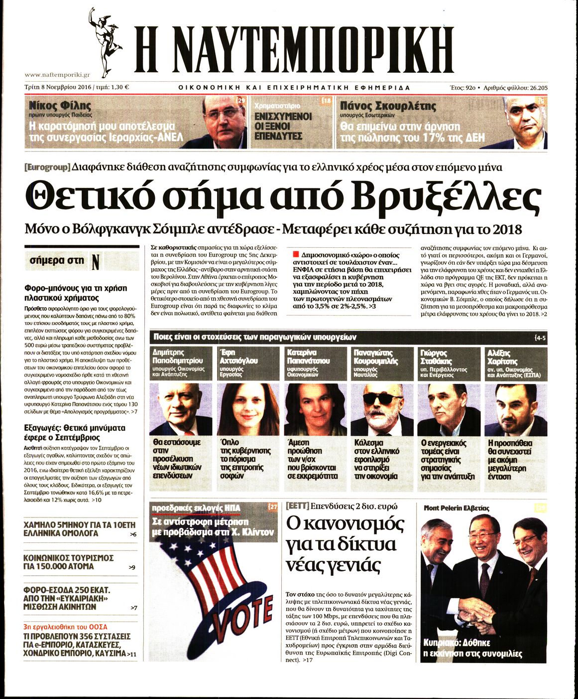 Οι οικονομικές εφημερίδες 8/11/2016 Enikos Newsroom 05:16, Τρίτη 08 Νοεμβρίου 2016 Media Διαβάστε τα σημερινά πρωτοσέλιδα των οικονομικών εφημερίδων: ΟΙΚΟΝΟΜΙΚΕΣ ΕΦΗΜΕΡΙΔΕΣ ΠΡΩΤΟΣΕΛΙΔΑ Μοιράσου το: σχολίασε κι εσύ (0 σχόλια) Ακολουθήστε το enikos.gr στο Google News και μάθετε πρώτοι όλες τις ειδήσεις Δείτε όλες τις τελευταίες ειδήσεις από την Ελλάδα και τον Κόσμο στο enikos.gr Ειδήσεις Ροή Ειδήσεων 2 ώρες πριν ΣΥΡΙΖΑ: Διαγράφεται ο ευρωβουλευτής Νίκος Παππάς μετά την μήνυση δημοσιογράφου για ξυλοδαρμό 1 ώρα πριν Τουρκία: Επιδιώκει την επιστροφή των S-400 στη Ρωσία – Οι αμερικανικές πιέσεις 1 ώρα πριν ΟΠΕΚΕΠΕ: Ελεύθερες με όρους η σύζυγος και η αδελφή του φερόμενου αρχηγού – Τι υποστήριξαν 3 ώρες πριν Πώς στήθηκε η επιχείρηση «Ίπαλλος» που οδήγησε στη σύλληψη του «Έλληνα Εσκομπάρ» – «Ο πόλεμος ενάντια στους εμπόρους ναρκωτικών θα συνεχιστεί» 3 ώρες πριν Κυψέλη: Στη φυλακή η 16χρονη που μαχαίρωσε συμμαθήτριά της 3 ώρες πριν Τα 3 ζώδια που θα δουν τη ζωή τους να αλλάζει ριζικά το 2026 – «Όλα γίνονται καλύτερα σταδιακά» 8 ώρες πριν «Δεν είχα κλάψει από τότε που διαγνώστηκα με καρκίνο, ώσπου ένα τηλεφώνημα με έκανε να λυγίσω» – Η συγκλονιστική εξομολόγηση ενός άνδρα 4 ώρες πριν Ο σπάνιος σεισμός που έλυσε τα χέρια των επιστημόνων – Αποκάλυψε ακριβώς όσα αναζητούσαν 10 ώρες πριν 20 χρόνια τα Χριστούγεννα ξεκινούν στα Public με μεγάλη ποικιλία σε δώρα! 4 λεπτά πριν Εξεταστική για ΟΠΕΚΕΠΕ: Μεγάλη ένταση μεταξύ Κωνσταντοπούλου και Λαζαρίδη – ΒΙΝΤΕΟ 9 λεπτά πριν Νίκος Γιαννόπουλος: «Τα γεγονότα μιλούν από μόνα τους» – Η ανάρτηση του δημοσιογράφου που μήνυσε τον Νίκο Παππά για ξυλοδαρμό 13 λεπτά πριν Άγιος Παντελεήμονας: Συνελήφθησαν 14 μέλη εγκληματικής οργάνωσης που διακινούσε ναρκωτικά σε πλατεία 19 λεπτά πριν Μητσοτάκης για την Ακρινή Κοζάνης: Η περιβαλλοντική ευθύνη μπορεί να συμβαδίσει με την καλύτερη ποιότητα ζωής 24 λεπτά πριν Τροχαίο δυστύχημα στη Χαλκιδική: Νεκρός 42χρονος οδηγός μηχανής έπειτα από σύγκρουση με αυτοκίνητο ENIKOS NETWORK 2,6 εκατομμύρια πολίτες έχουν ήδη εμβολιαστεί κατά της γρίπης Σοβαροί κίνδυνοι από τη λάθος χορήγηση φαρμάκου για τις αιμορραγίες-Συστάσεις προς τους γιατρούς Προκήρυξη ΑΣΕΠ για 4.276 μόνιμες προσλήψεις στο Δημόσιο: Βγήκαν τα προσωρινά αποτελέσματα – Ποιοι μπορούν να υποβάλουν ένσ... Υπουργείο Εργασίας: Ο οδικός χάρτης για την ενίσχυση του πλαισίου των Συλλογικών Διαπραγματεύσεων – Οι 5 άξονες του σχεδίου... Χαρτογραφώντας το «σημείο χωρίς επιστροφή»: Για πρώτη φορά αποκαλύπτεται με λεπτομέρεια το ακανθώδες όριο της ατμόσφαιρας τ... Η Google καταργεί τη λειτουργία «dark web report» – Πώς θα μπορούν οι χρήστες να διαγράφουν τα δεδομένα τους περισσότερα 12:35 , Τετάρτη 17 Δεκεμβρίου 2025 Μίρκα Παπακωνσταντίνου: «Δεν ήμουν αισιόδοξη για τα νούμερα – Είμαι ρεαλίστρια» Στα γυρίσματα του εορταστικού επεισοδίου της αγαπημένης σειράς “Το Σόι Σου”, βρέθηκε η κάμερα ... 12:12 , Τετάρτη 17 Δεκεμβρίου 2025 Ακούστε την εκπομπή του Νίκου Χατζηνικολάου 17/12/2025 Ακούστε την εκπομπή του Νίκου Χατζηνικολάου στον ραδιοφωνικό σταθμό RealFm 97,8, την Τετάρτη 1... 11:35 , Τετάρτη 17 Δεκεμβρίου 2025 Home Alone: Το σπίτι της ταινίας θα ανακαινιστεί – Επιστροφή στην αισθητική της δεκαετίας του ’90 Οι νέοι ιδιοκτήτες του πραγματικού σπιτιού που παρουσιάζεται στην κλασική ταινία του 1990 «Hom... 11:25 , Τετάρτη 17 Δεκεμβρίου 2025 Grand Hotel: Απόψε το τελευταίο επεισόδιο της χρονιάς – Όλα τα μυστικά μένουν εδώ Το τελευταίο επεισό